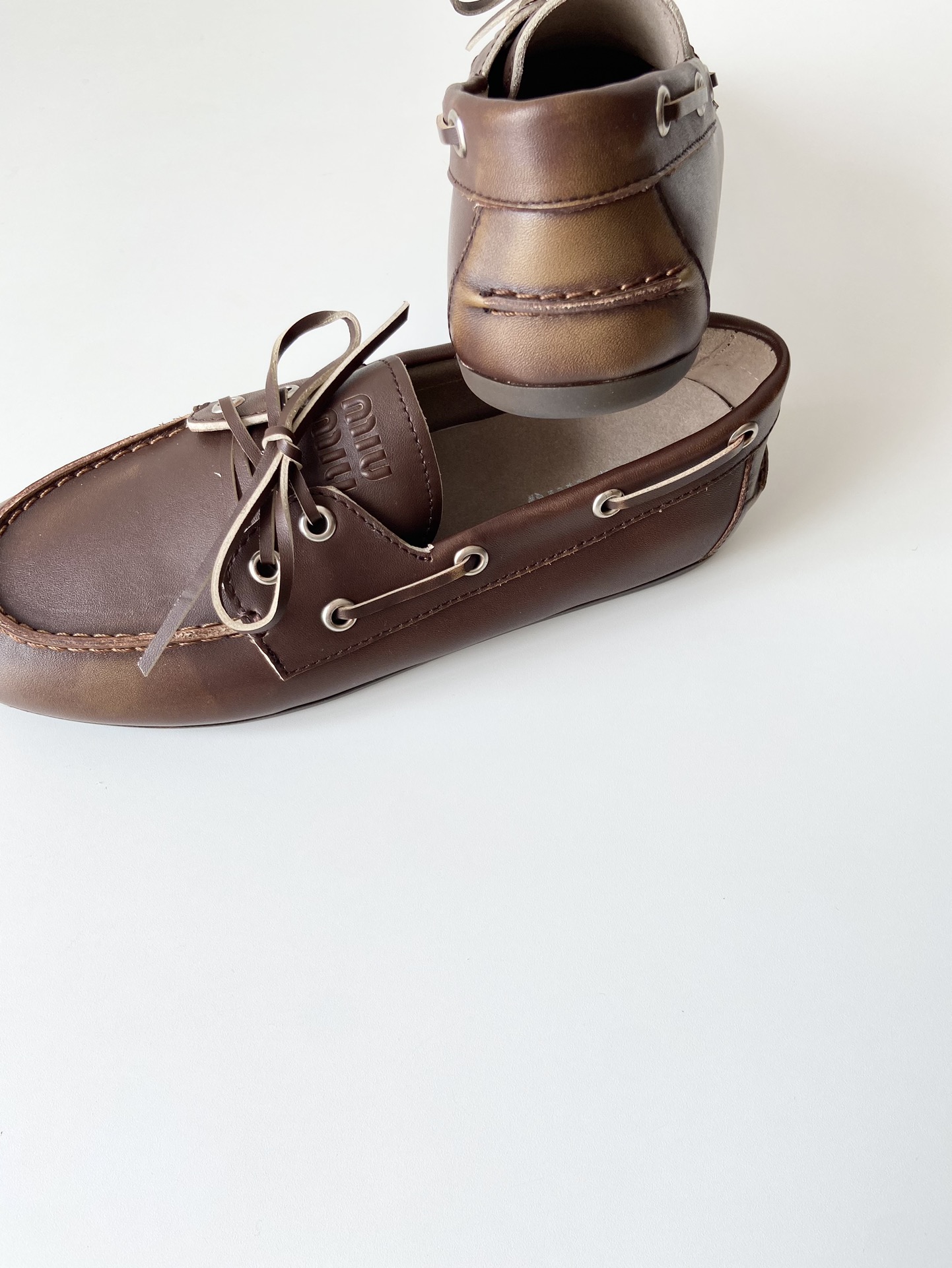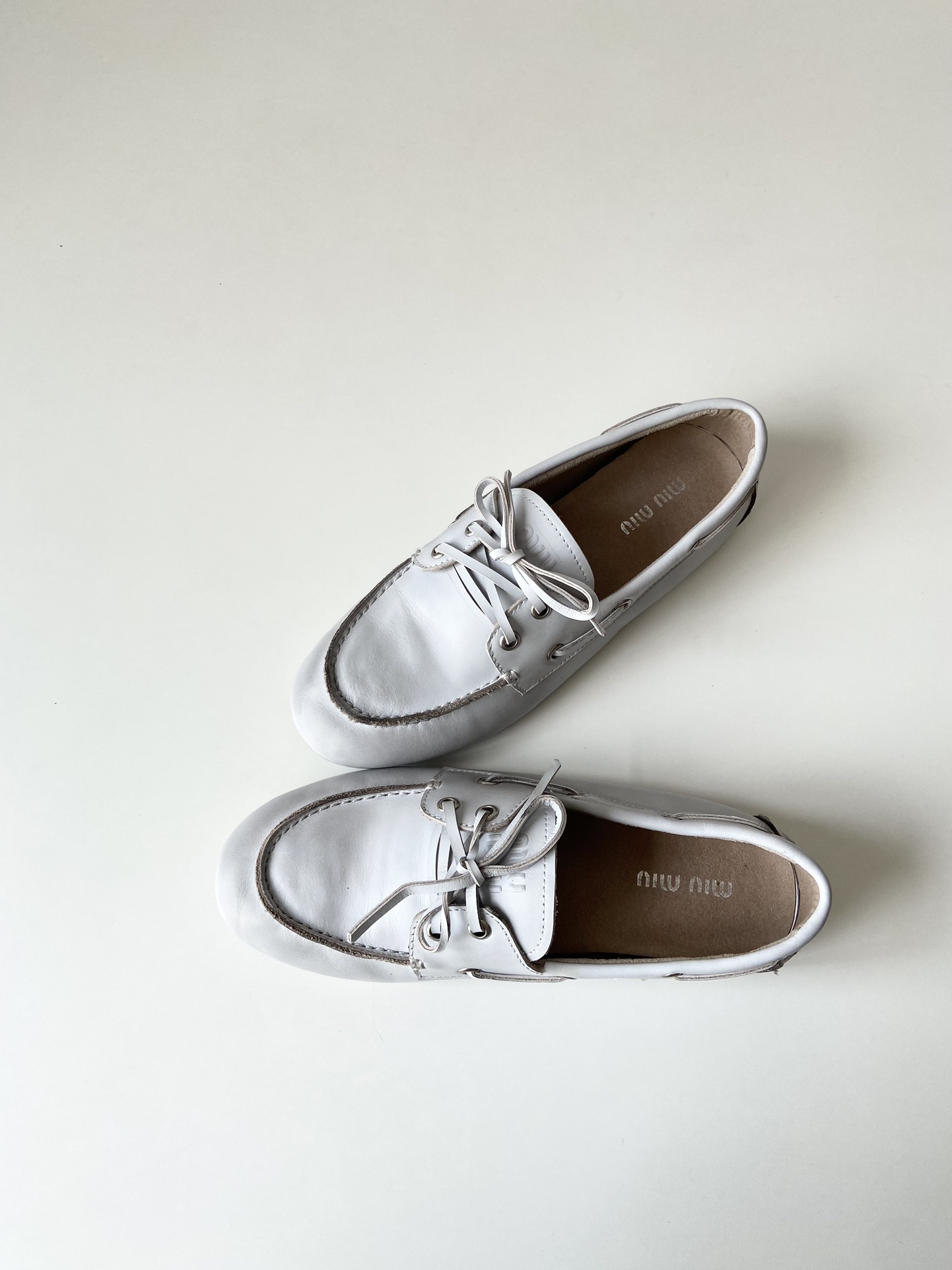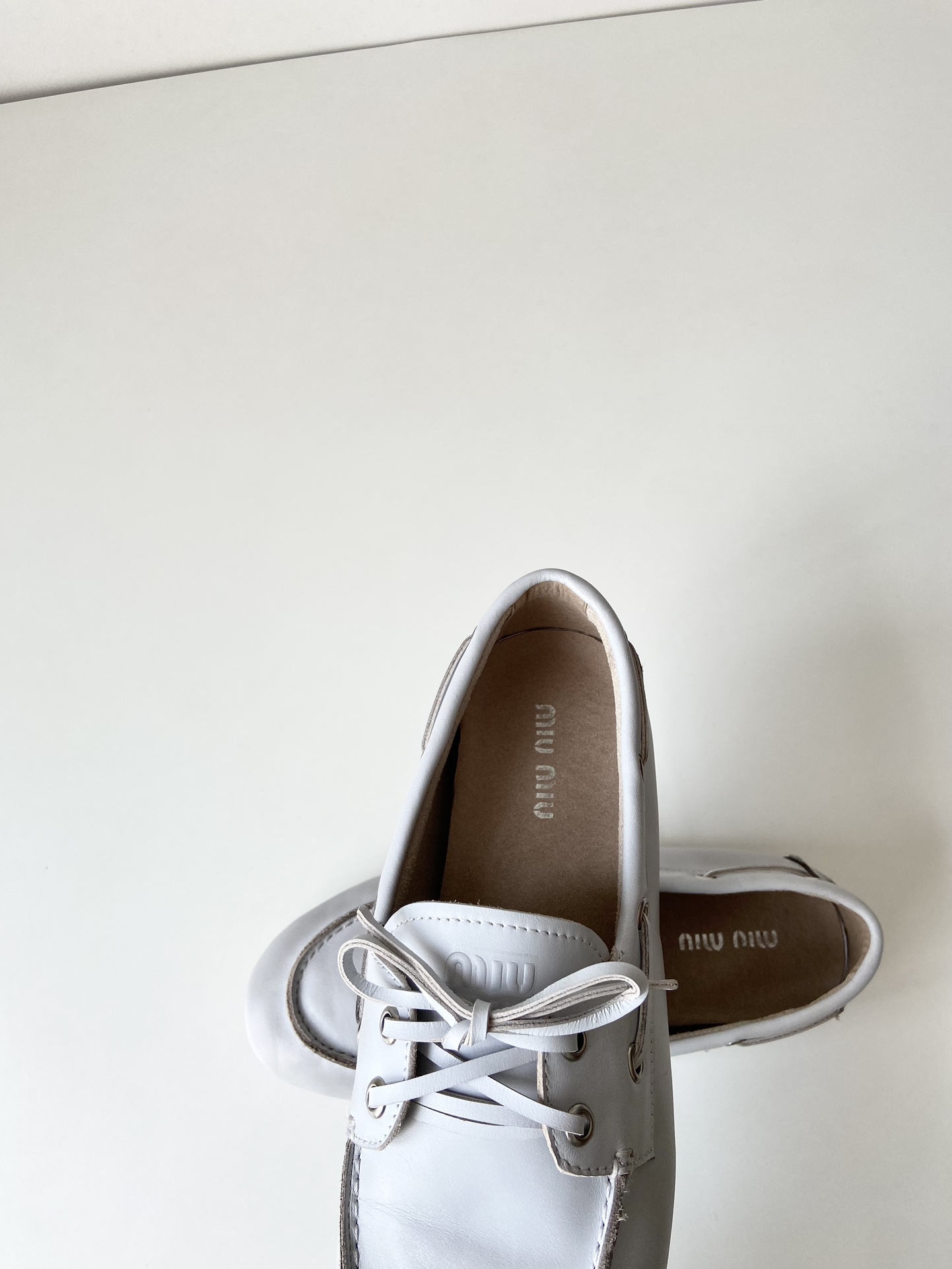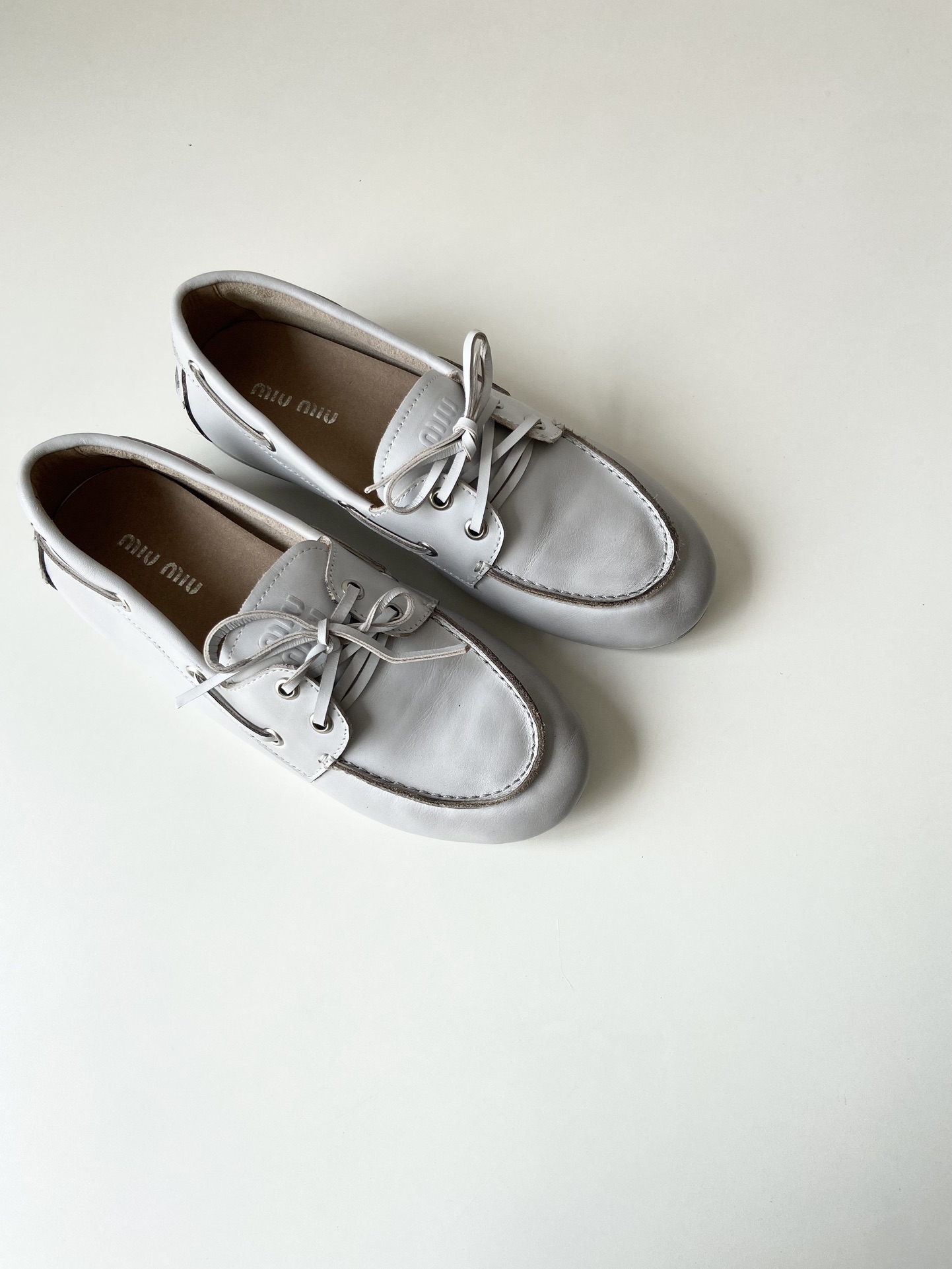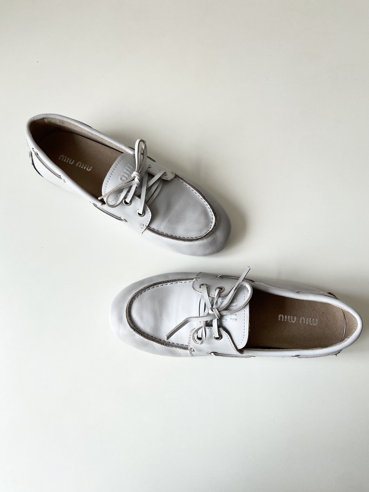 NIGO MiuMiu Women's Spring And Summer Solid Color Round Head Overfoot Low Top Lace Up Loafers Shoes #nigo75441