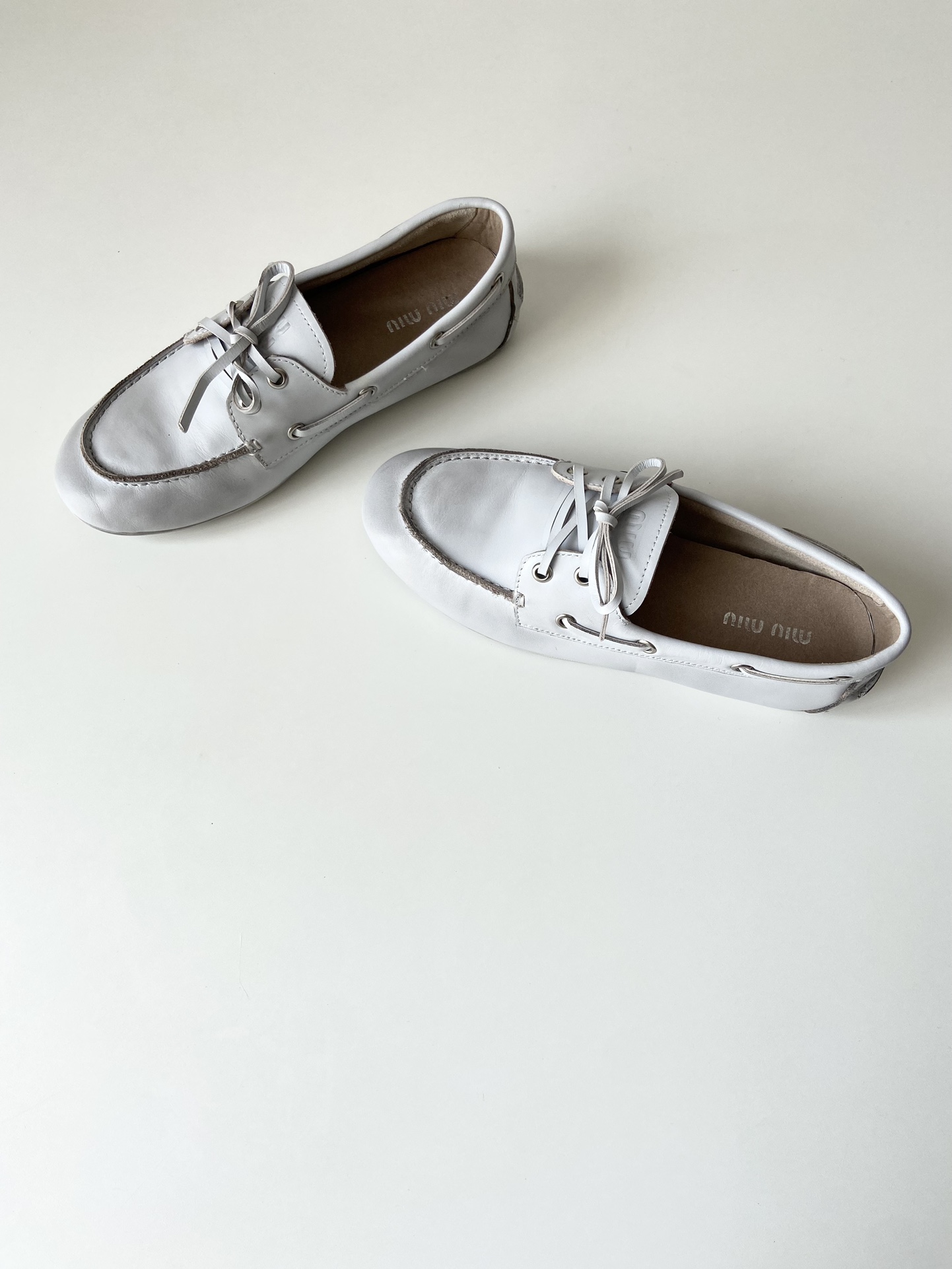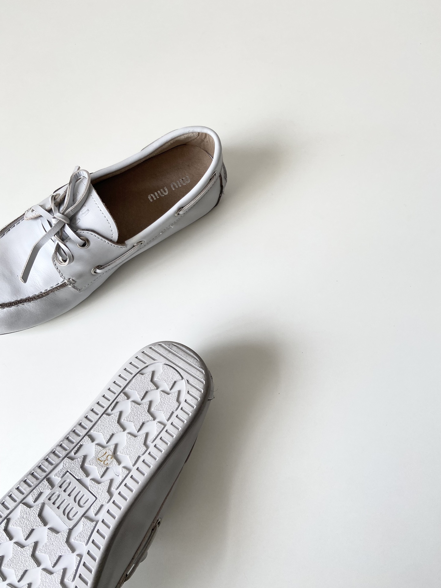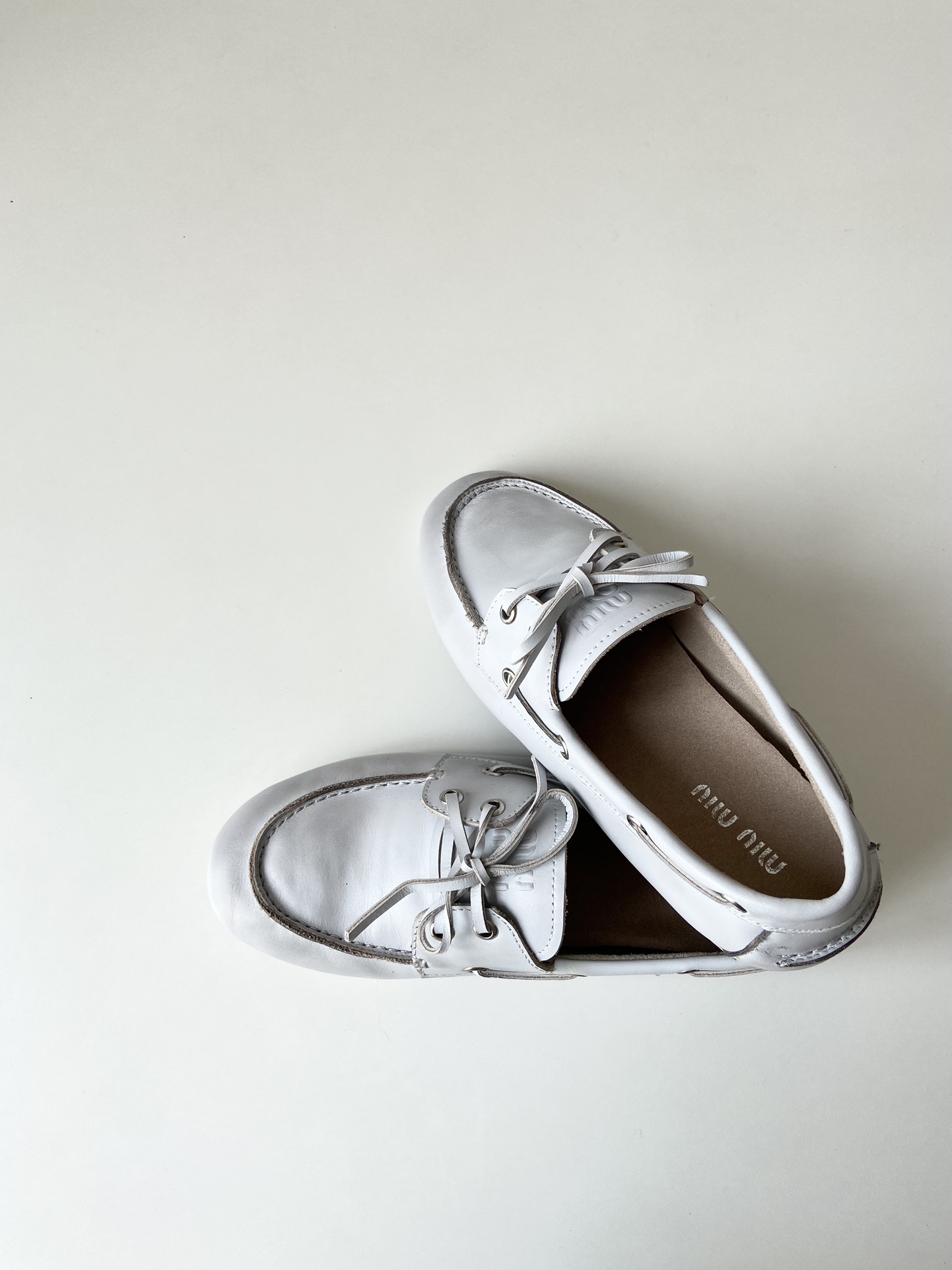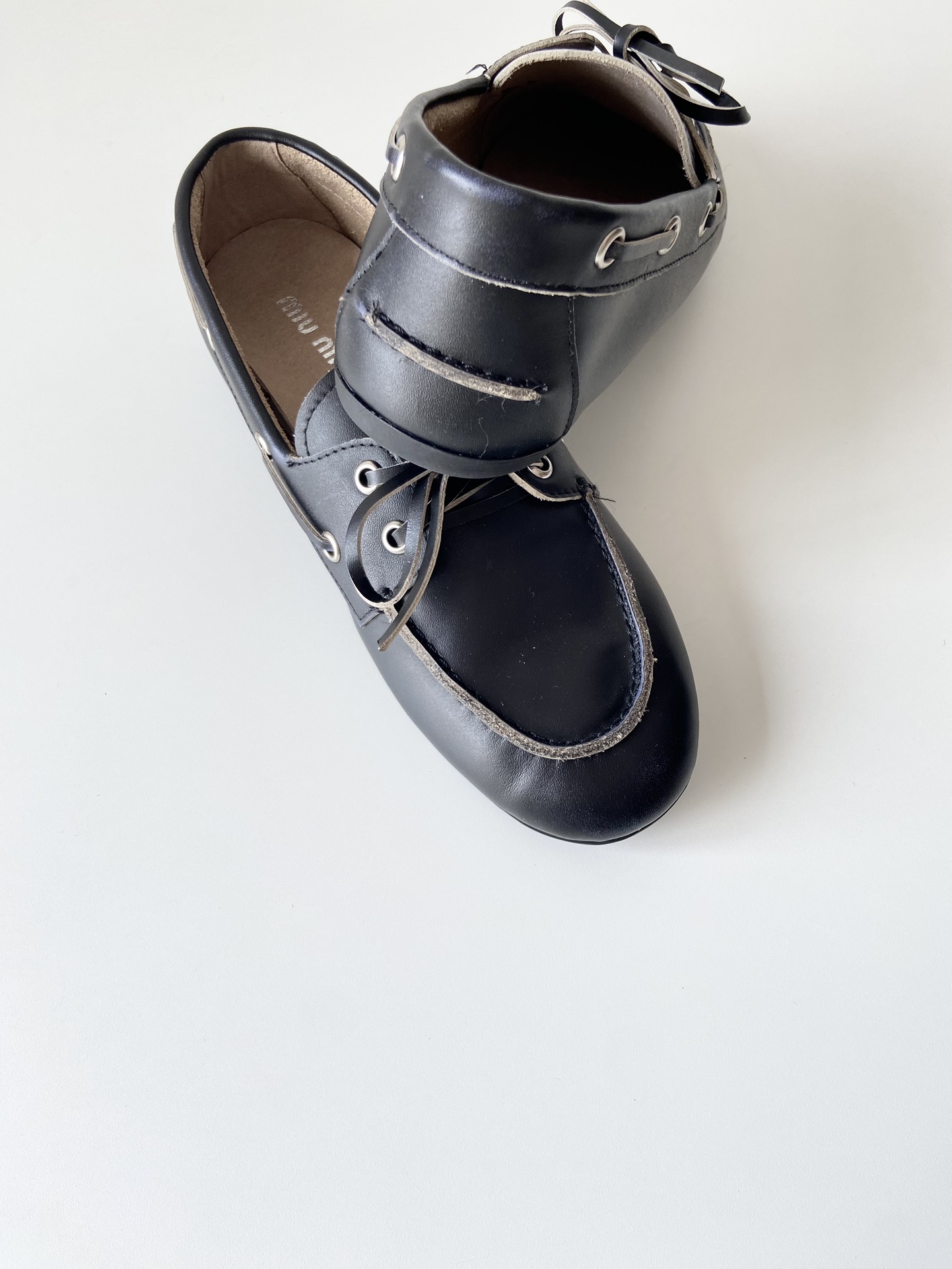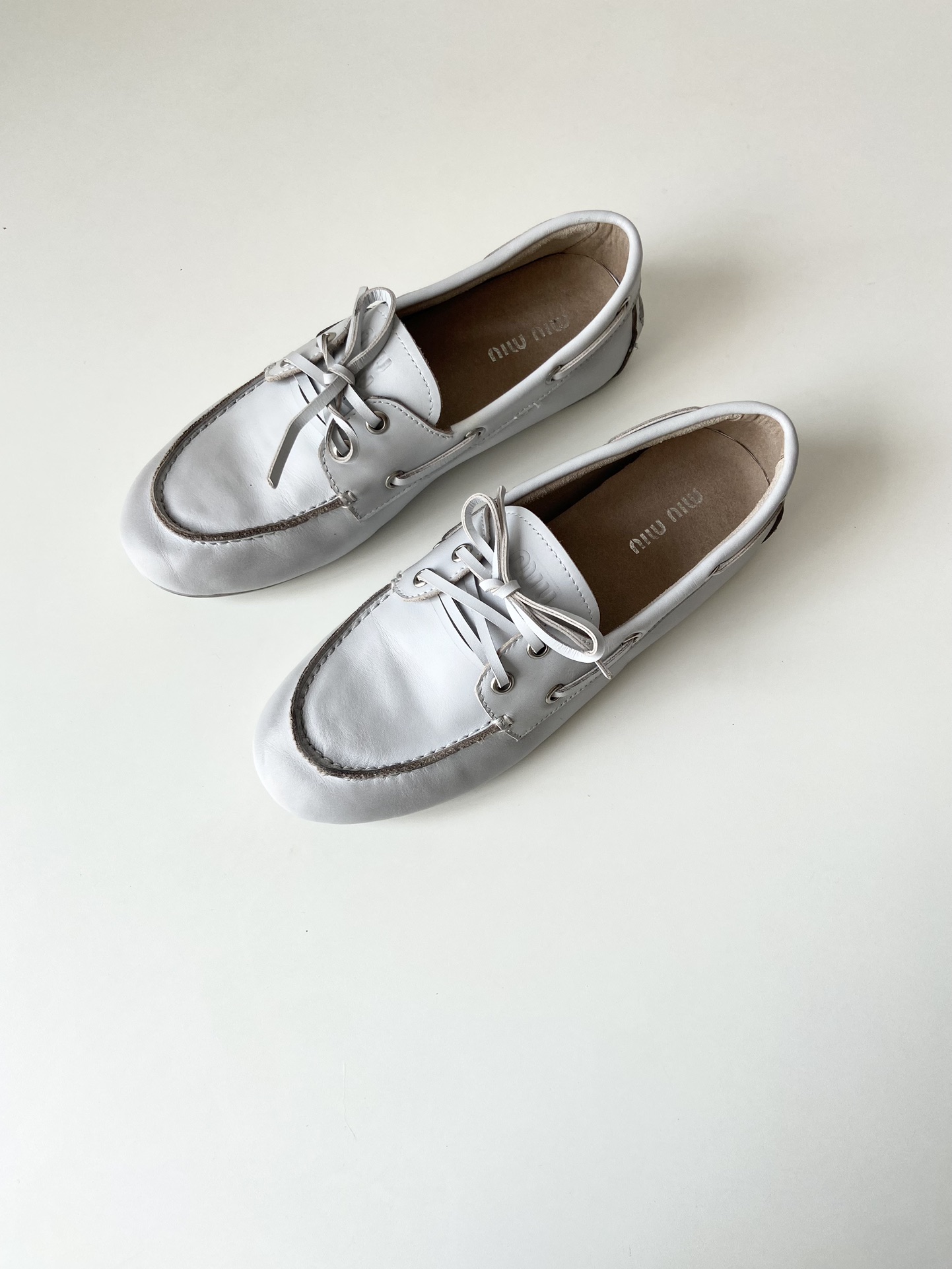 NIGO MiuMiu Women's Spring And Summer Solid Color Round Head Overfoot Low Top Lace Up Loafers Shoes #nigo75441