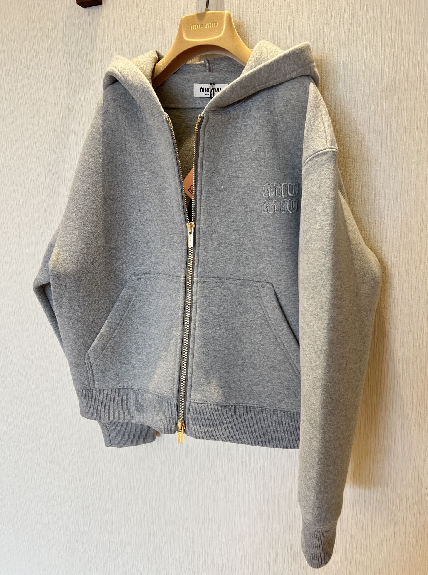 NIGO MiuMiu Women's Spring/Autumn Hooded Zipper Logo Cotton Fitted Solid Color Long Sleeve Baseball Jacket #nigo96516