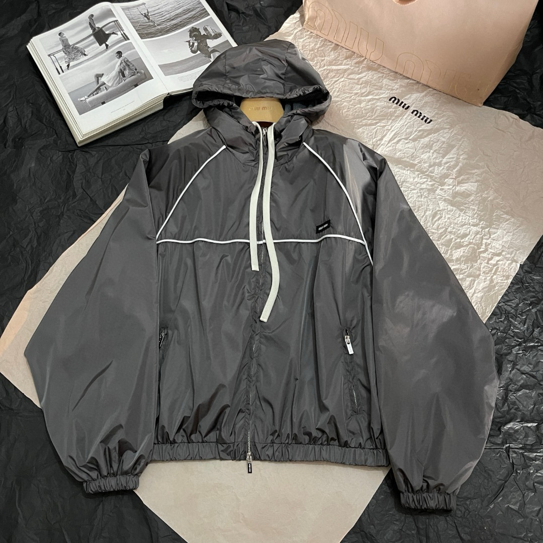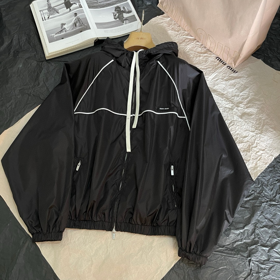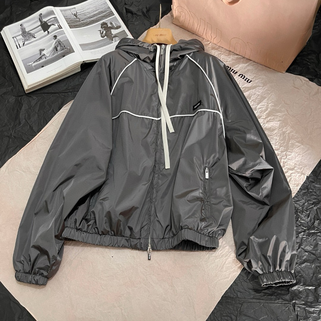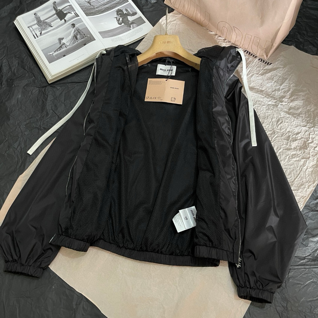 NIGO MiuMiu Women's Spring/Summer Solid Color Technical Fabric Sun Protection Zipper Long Sleeve Jacket #nigo77948