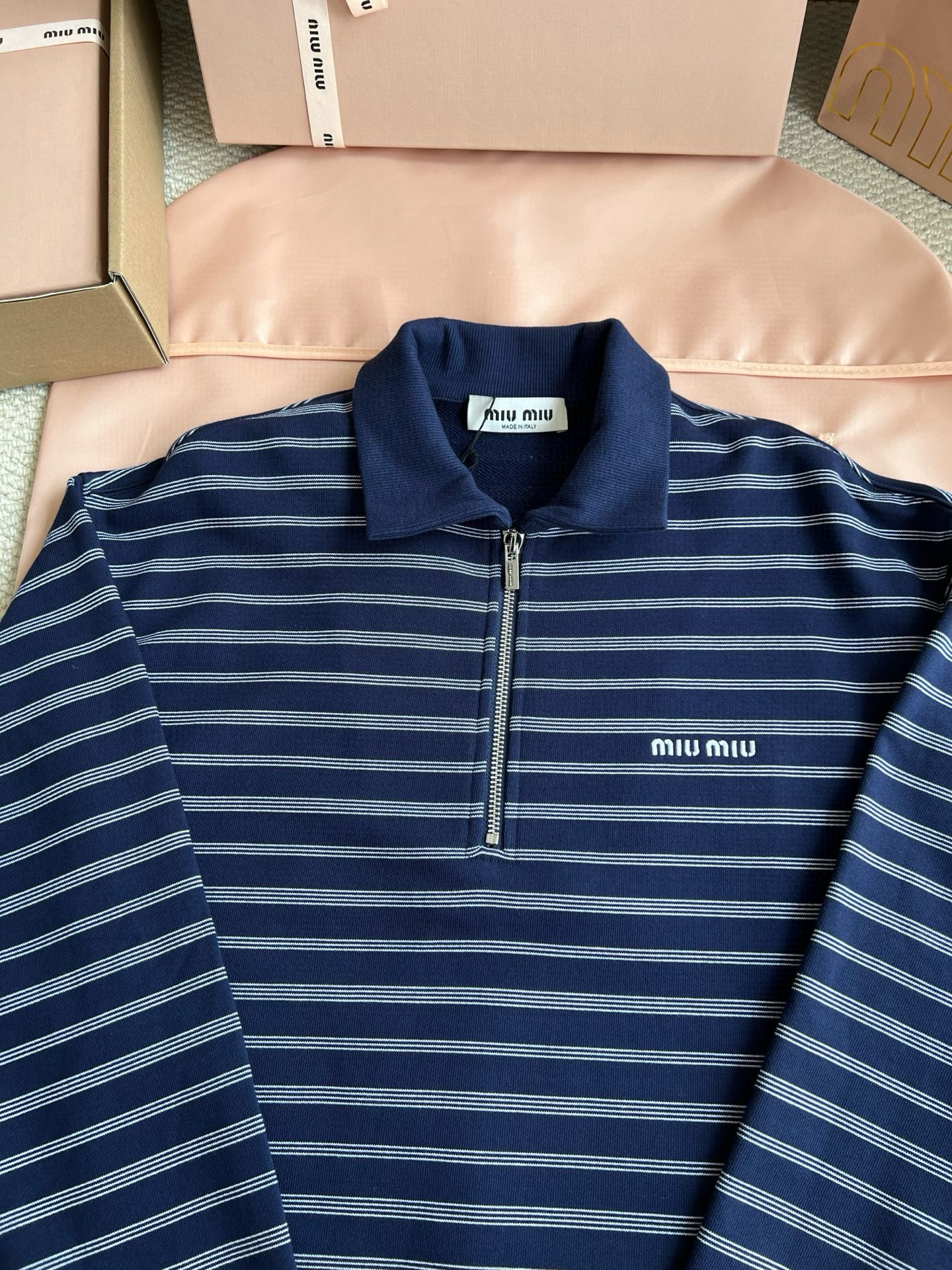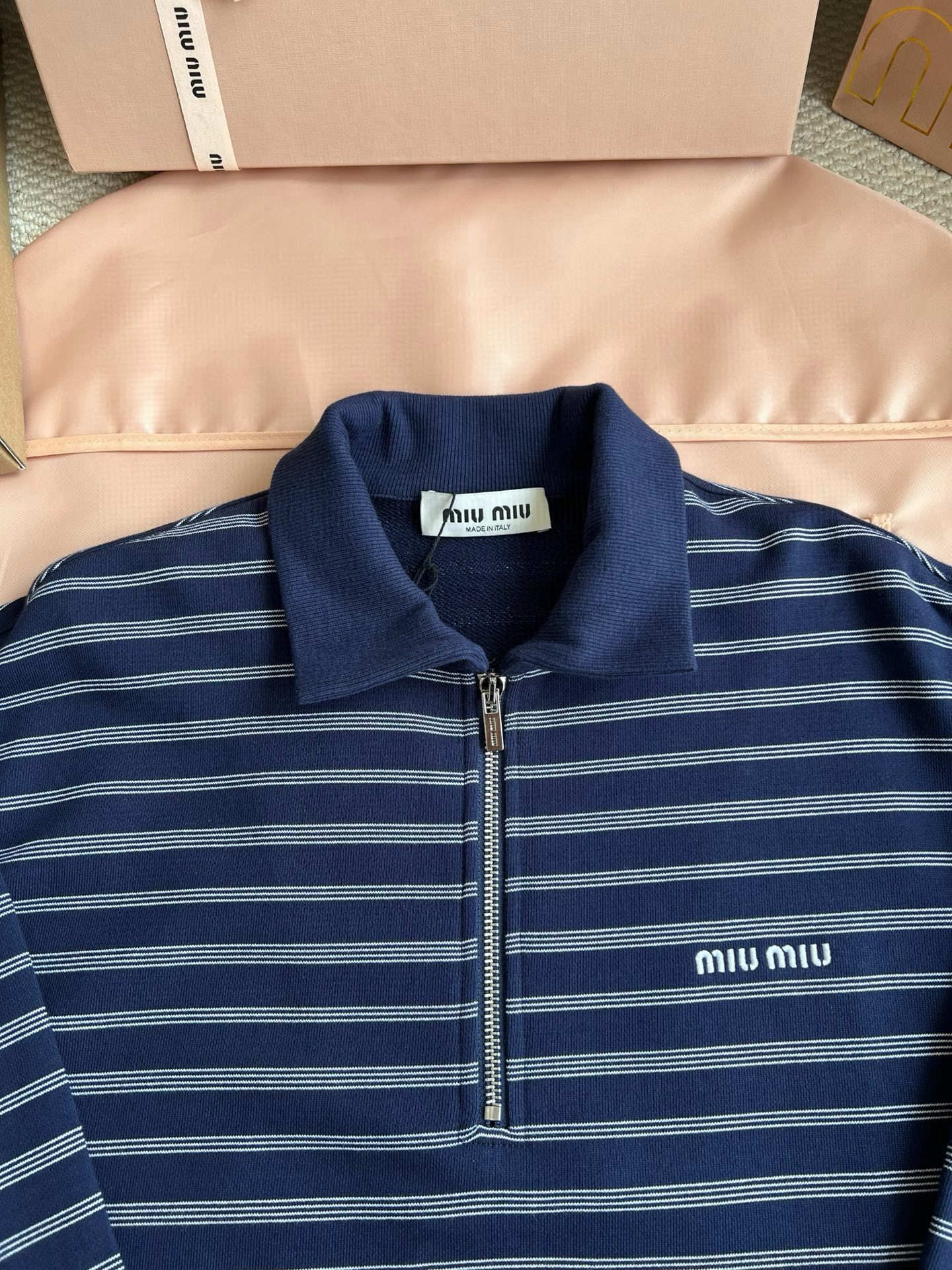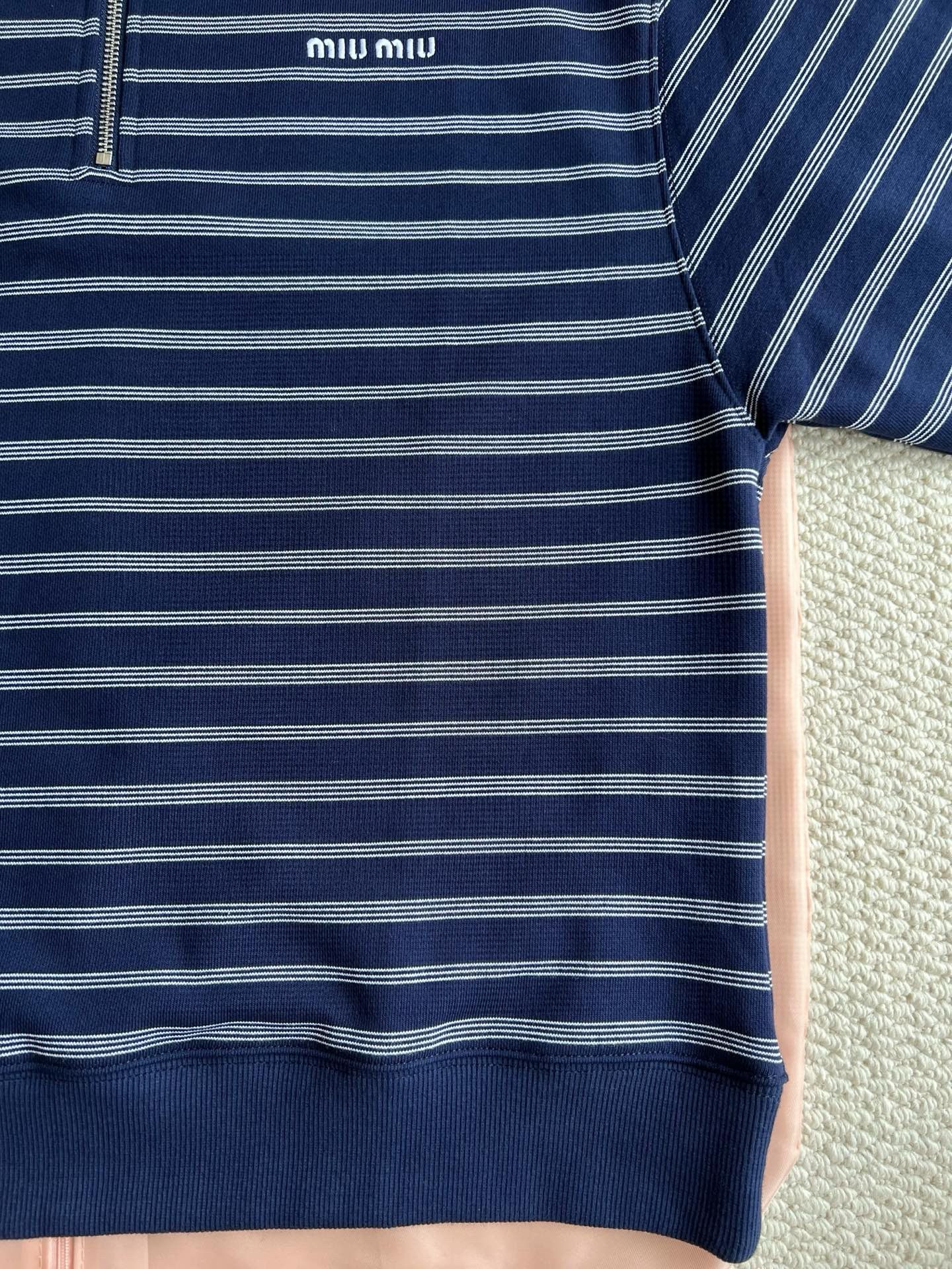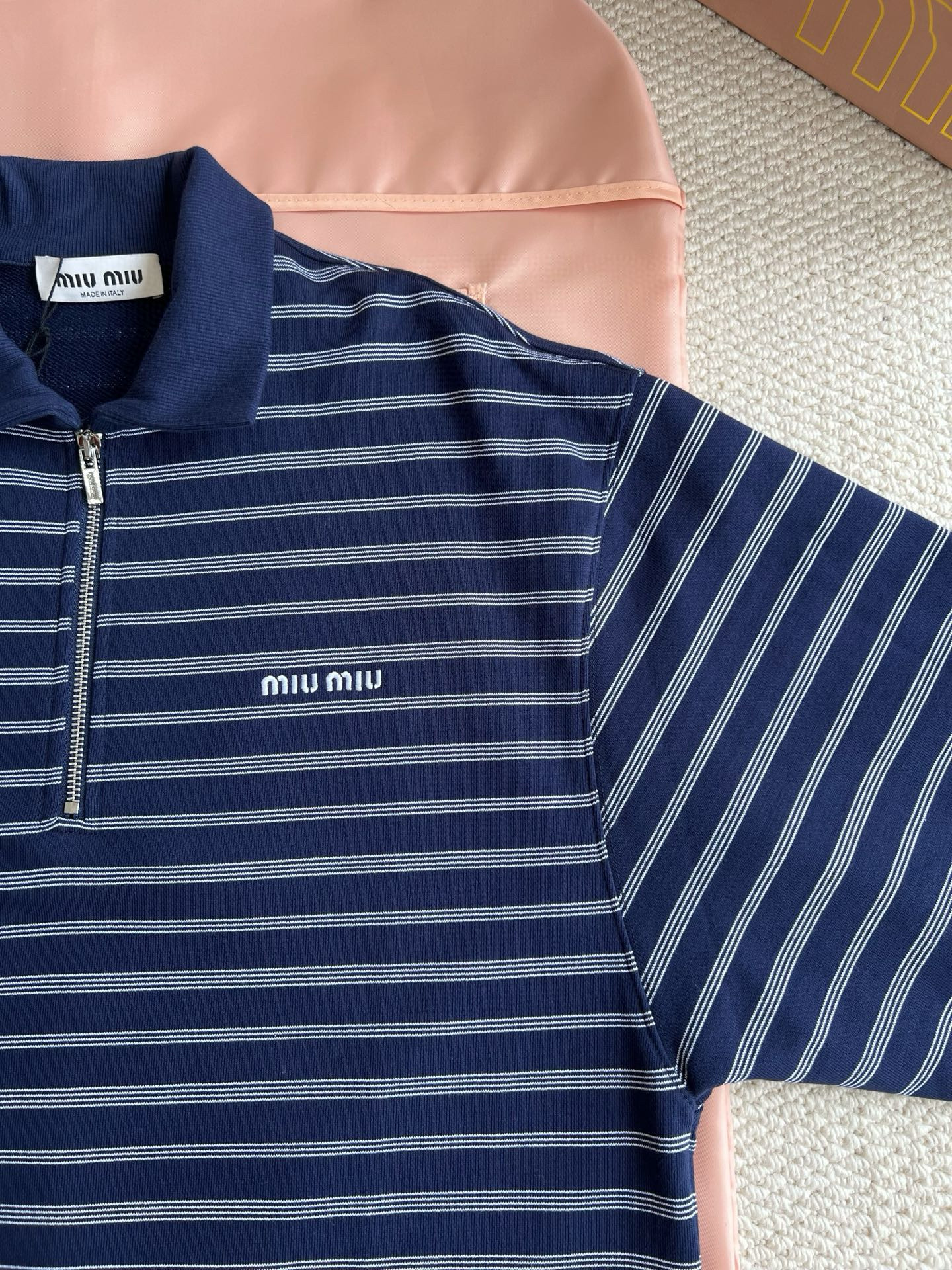 NIGO MiuMiu Women's Summer Logo Embroidered Cotton Loose-Fit Color-Block Striped Zipper Polo Shirt #nigo81544