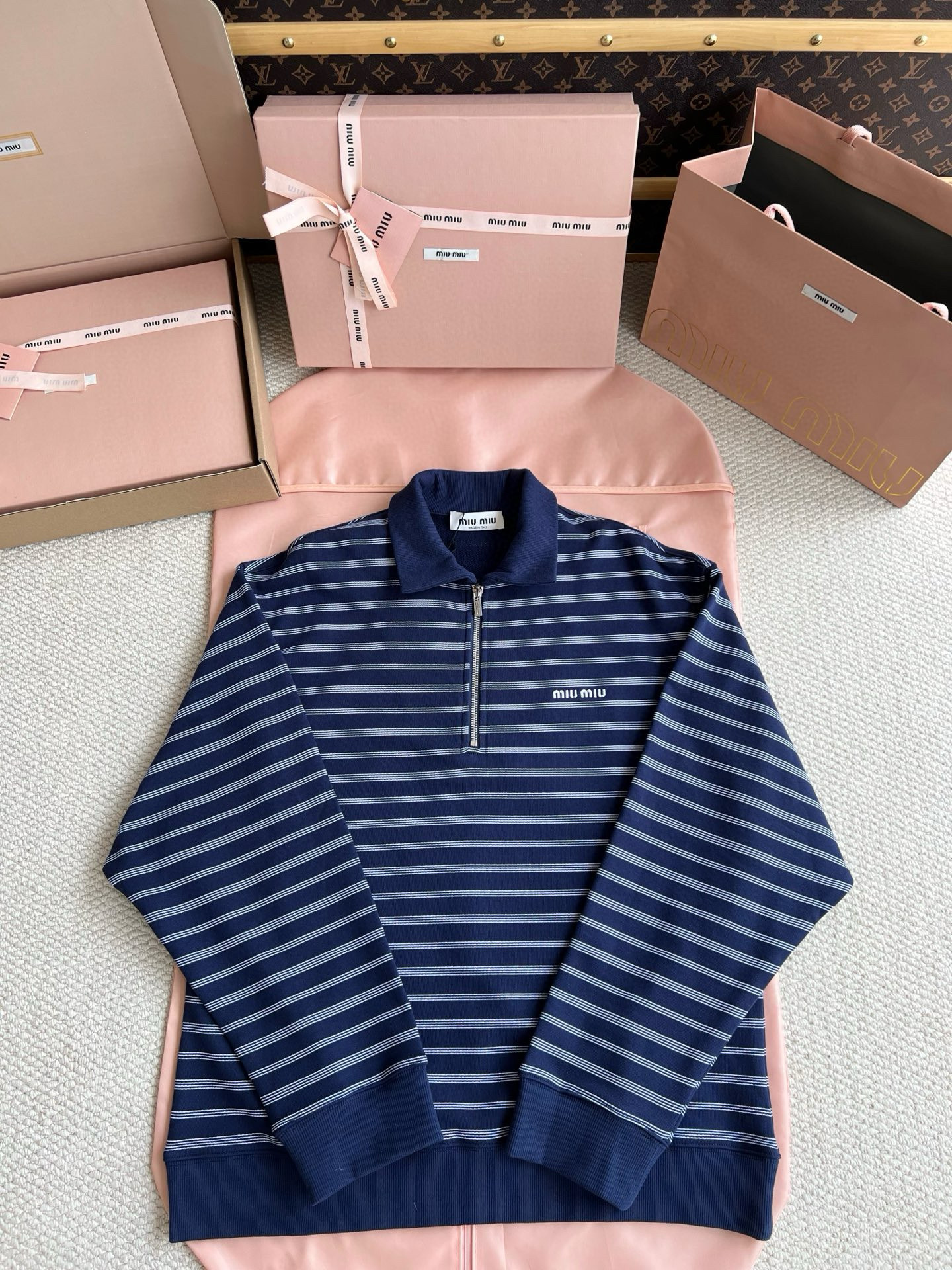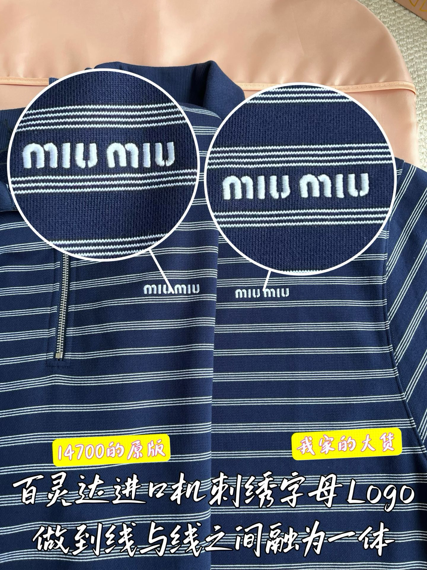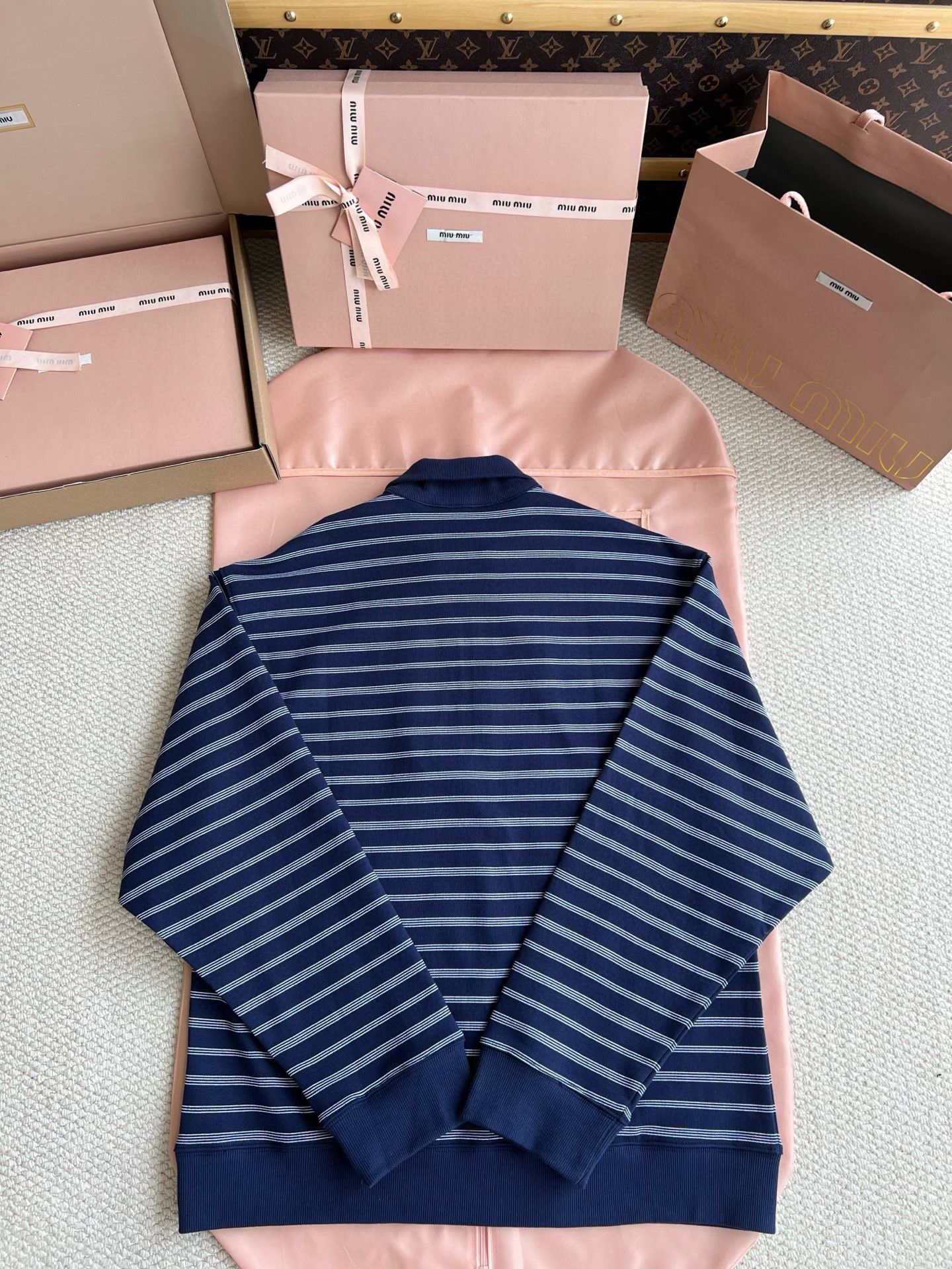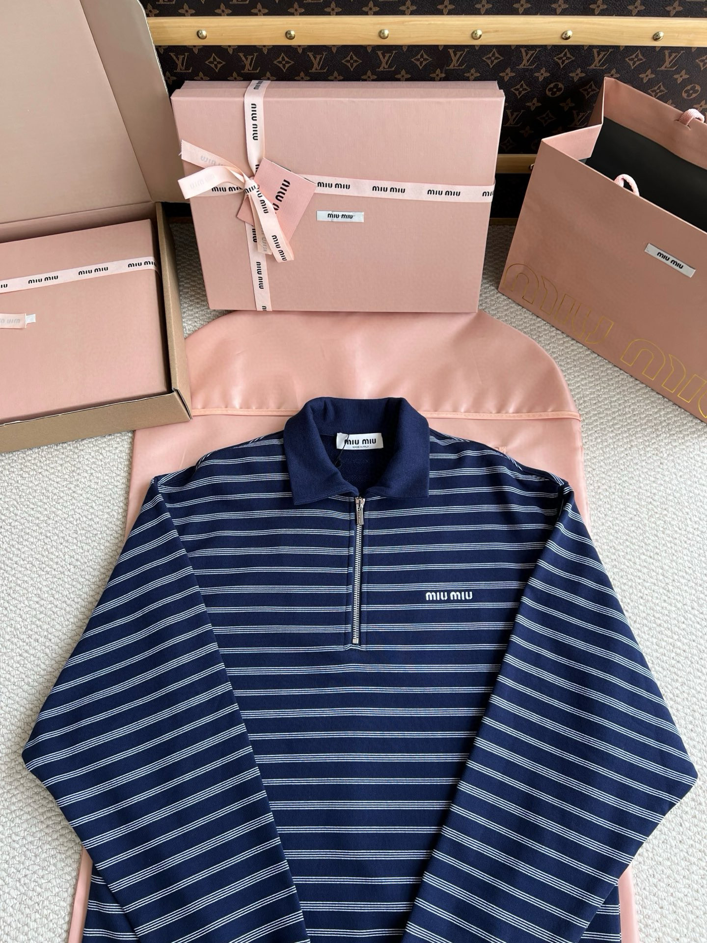 NIGO MiuMiu Women's Summer Logo Embroidered Cotton Loose-Fit Color-Block Striped Zipper Polo Shirt #nigo81544