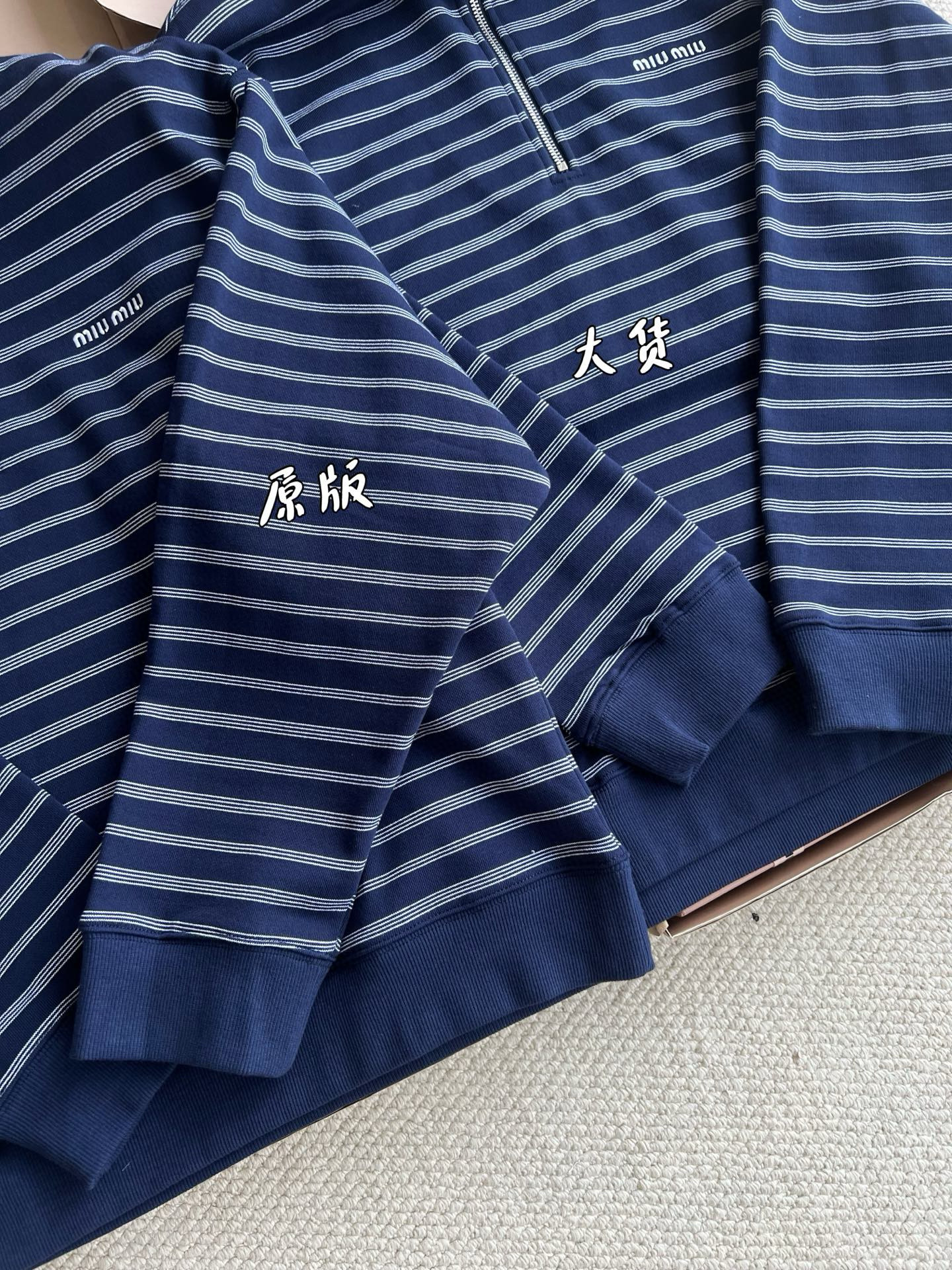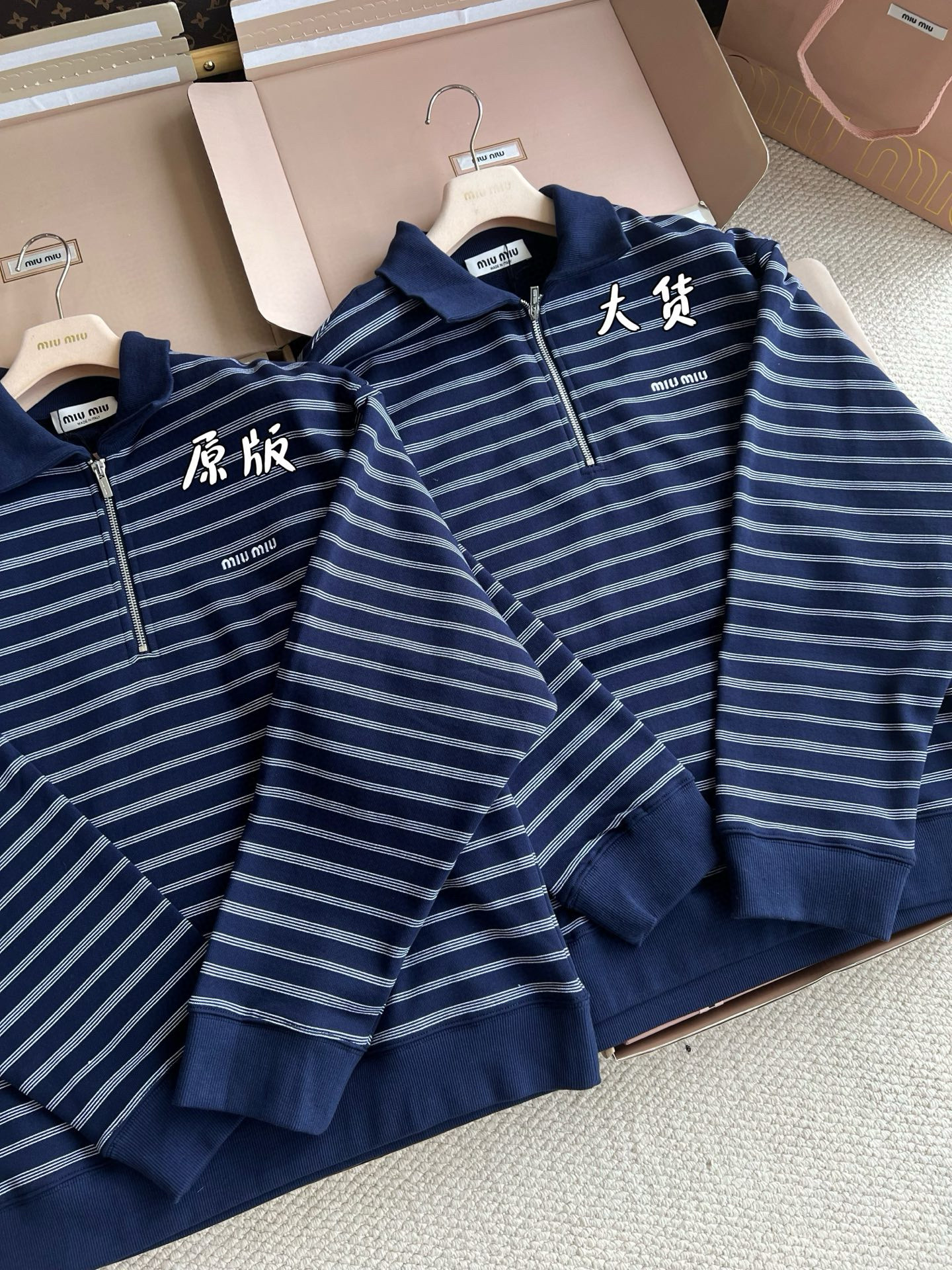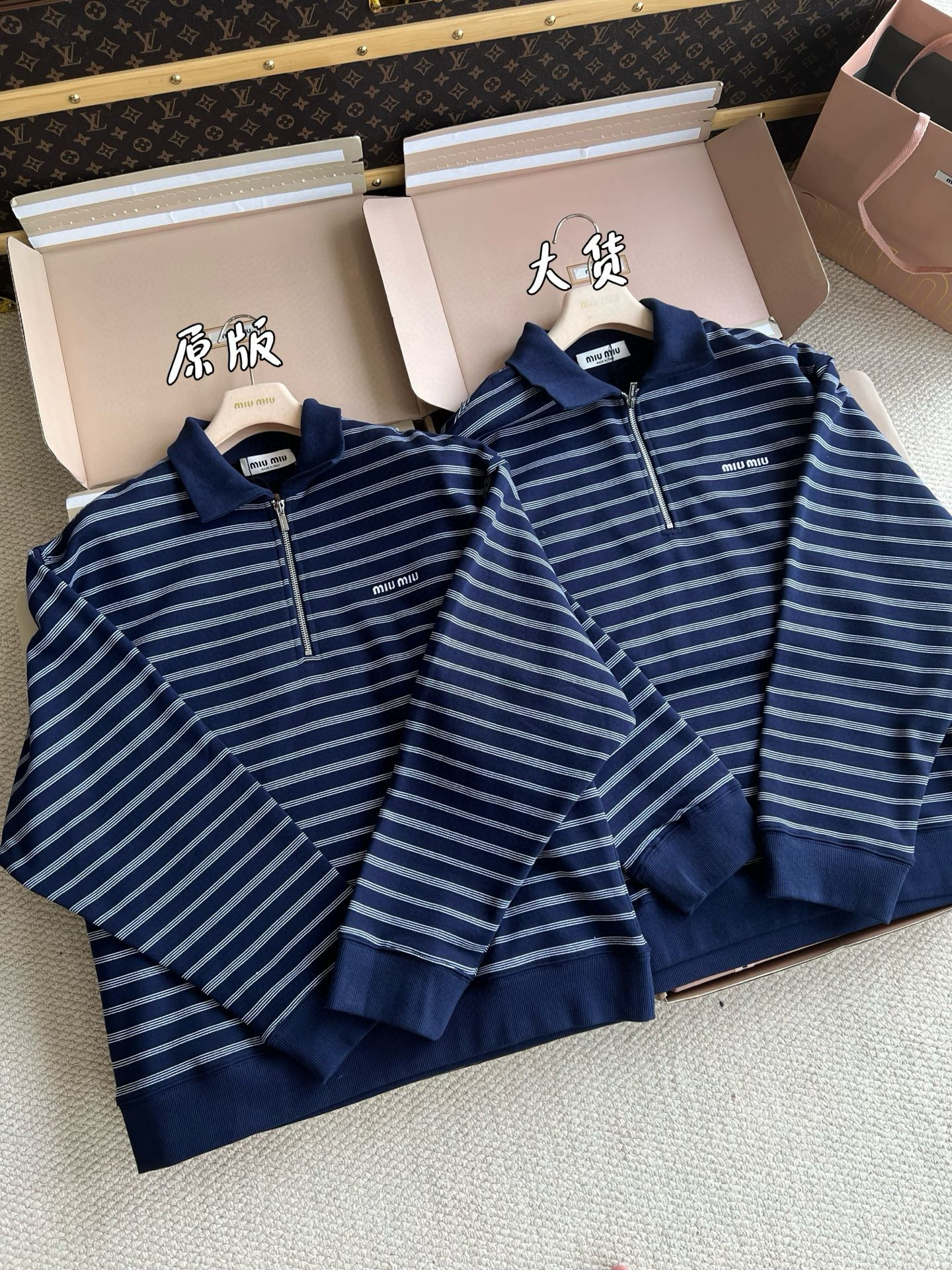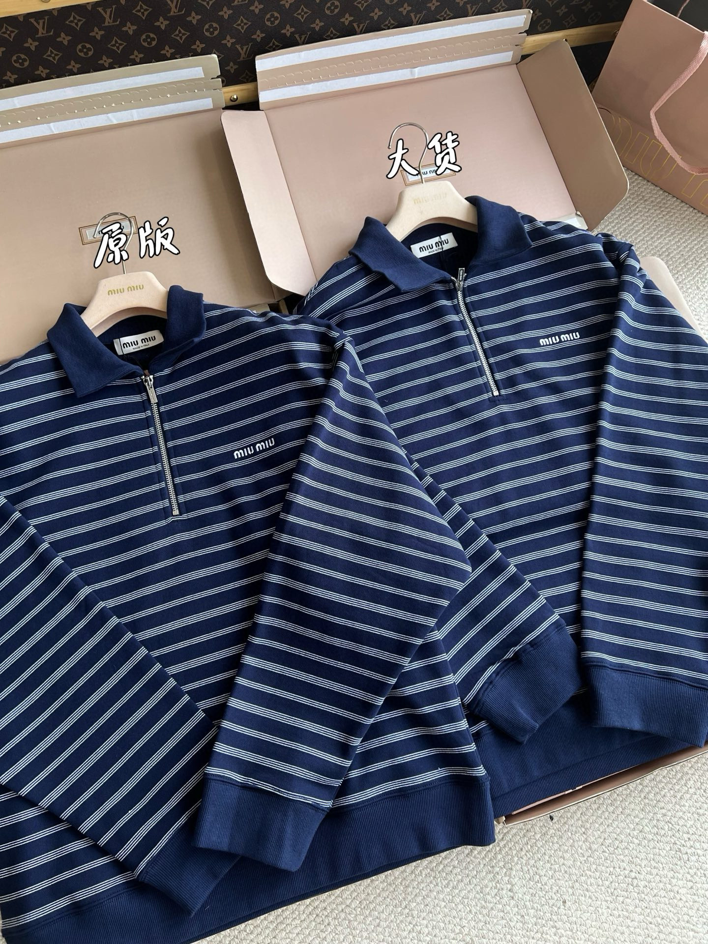 NIGO MiuMiu Women's Summer Logo Embroidered Cotton Loose-Fit Color-Block Striped Zipper Polo Shirt #nigo81544