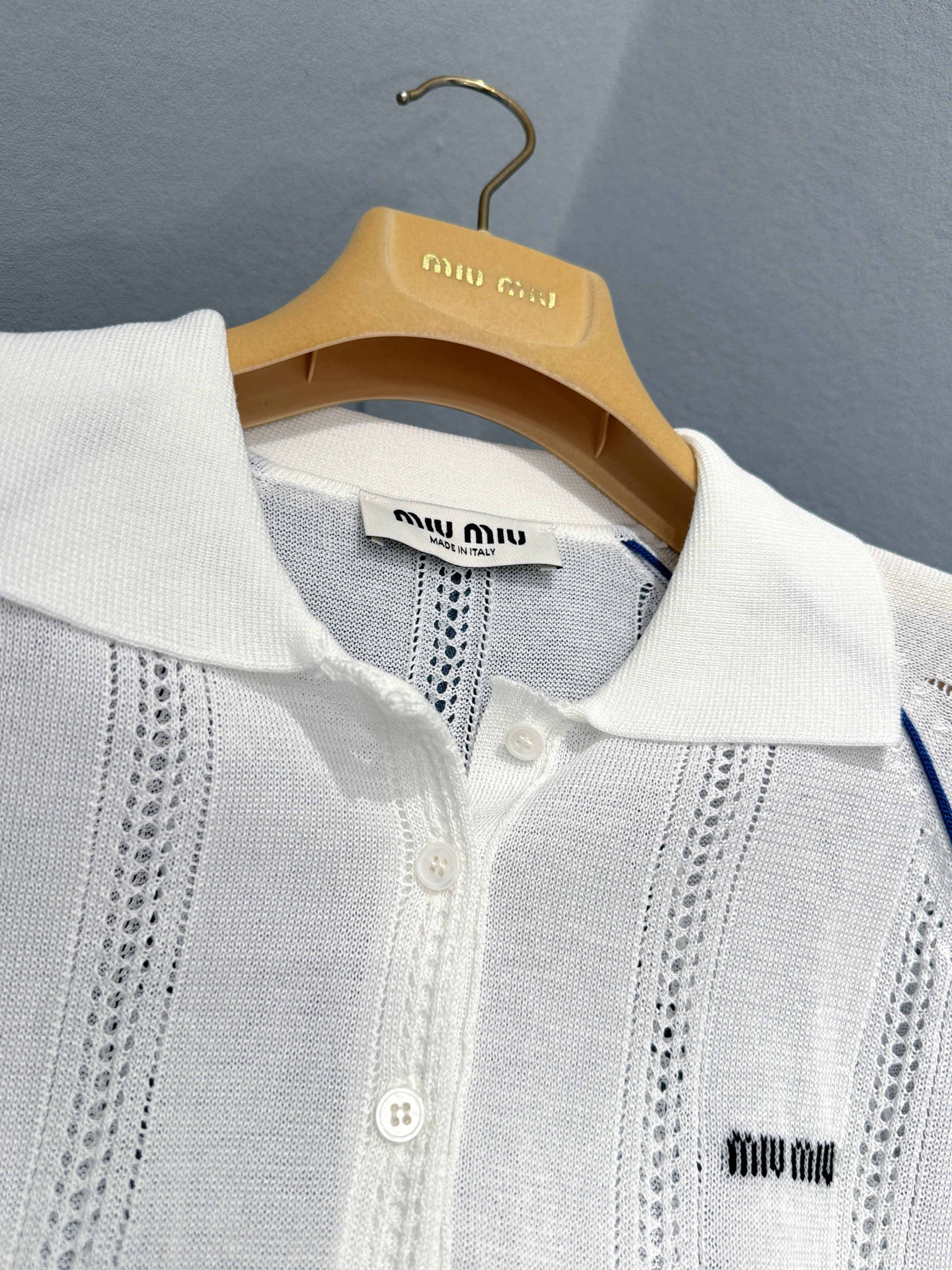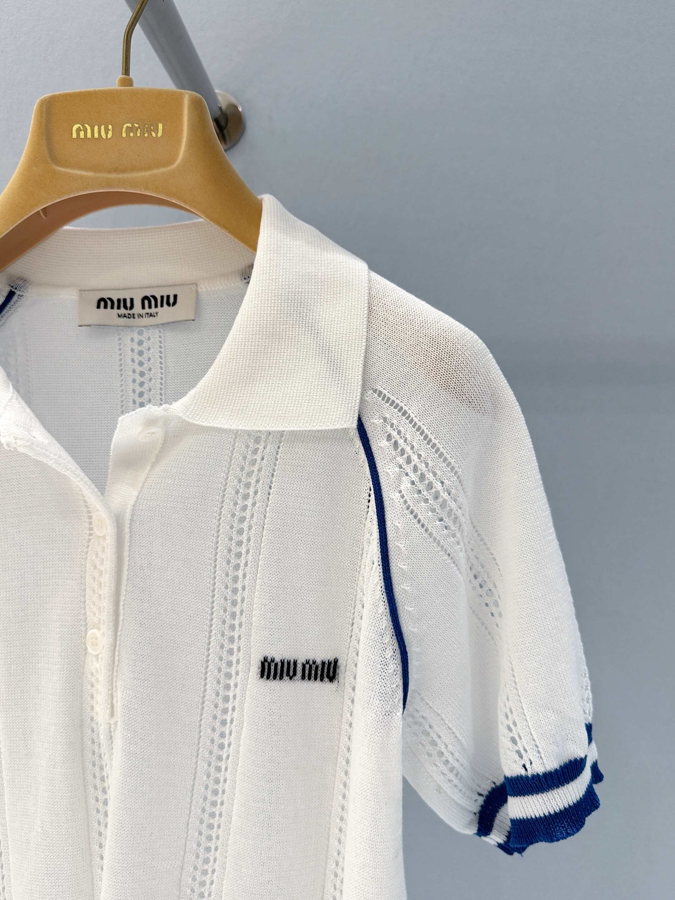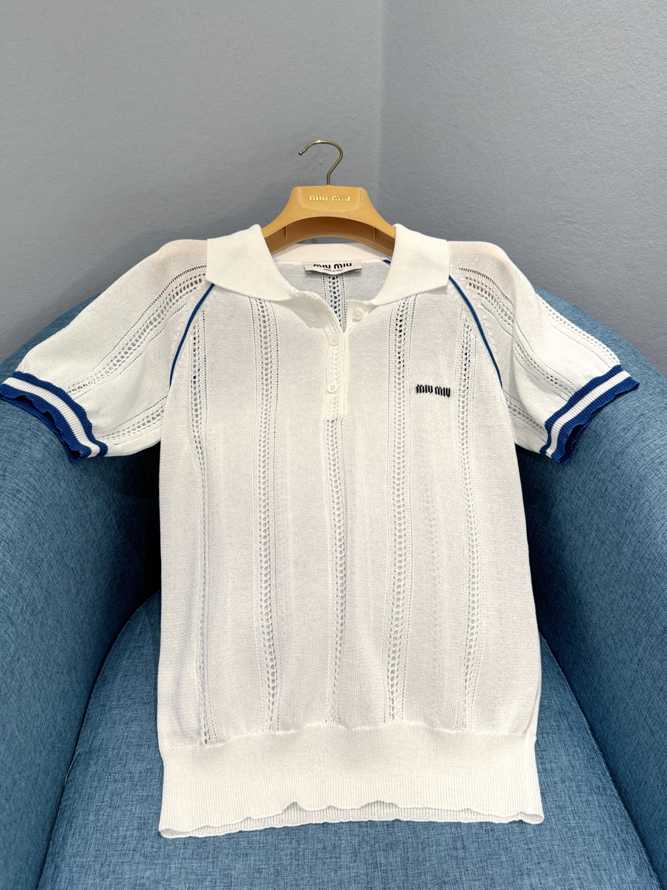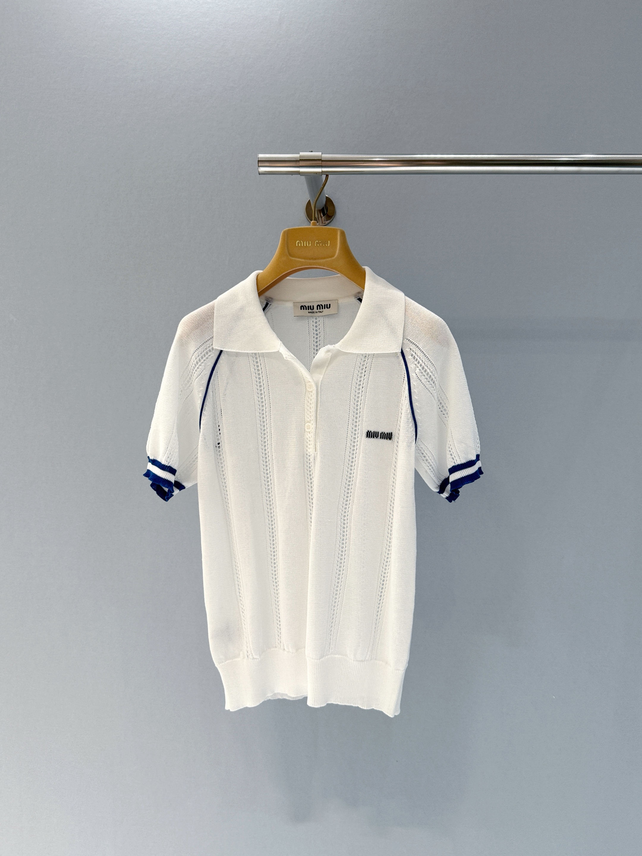 NIGO MiuMiu Women's Summer Solid Color Cotton Knitted Logo Print Polo Neck Short Sleeve T-Shirt #nigo77549