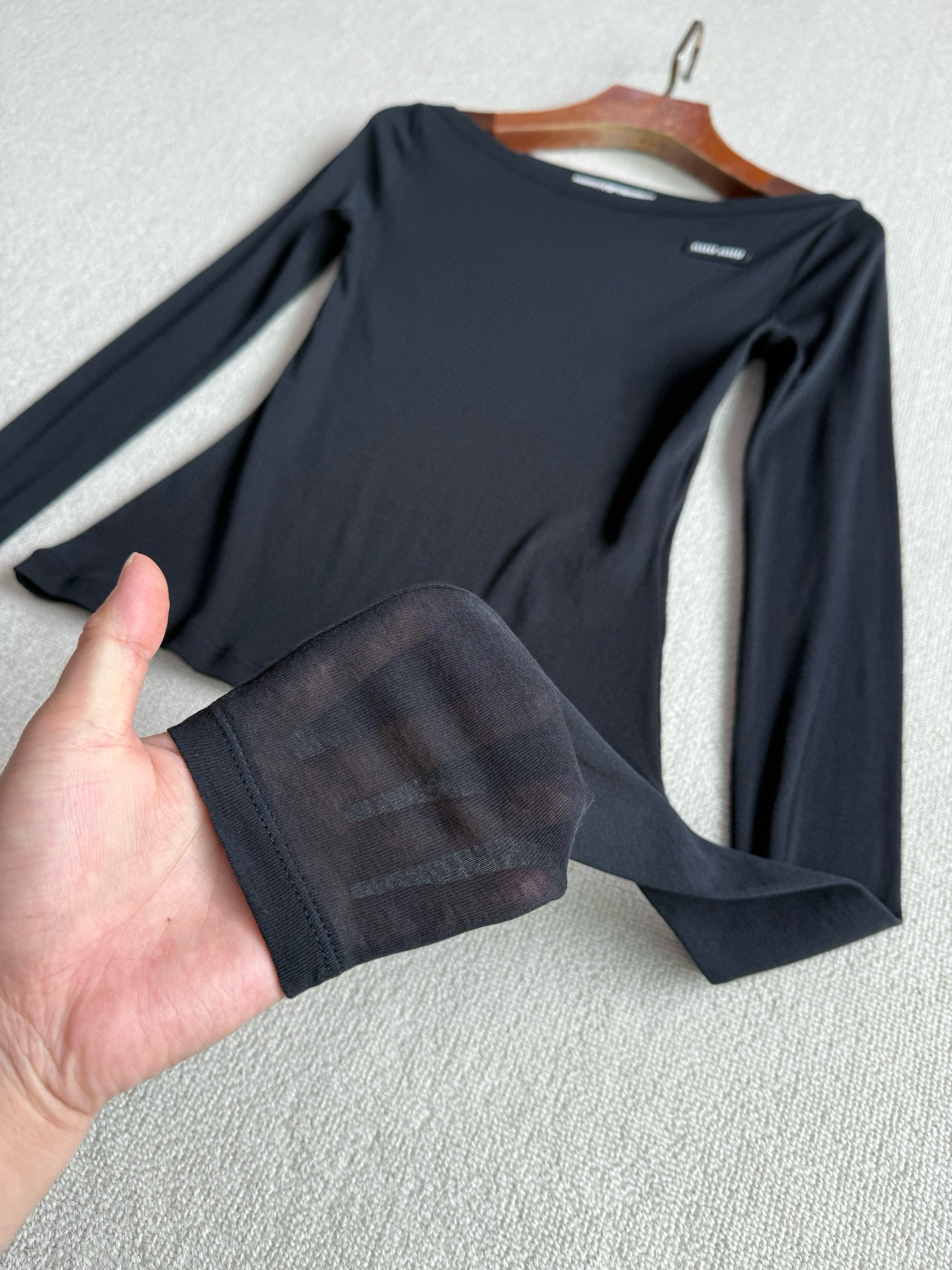NIGO MiuMiu Women's Summer Solid Color Cotton Round Neck Lightweight Long Sleeve T-Shirt #nigo77424