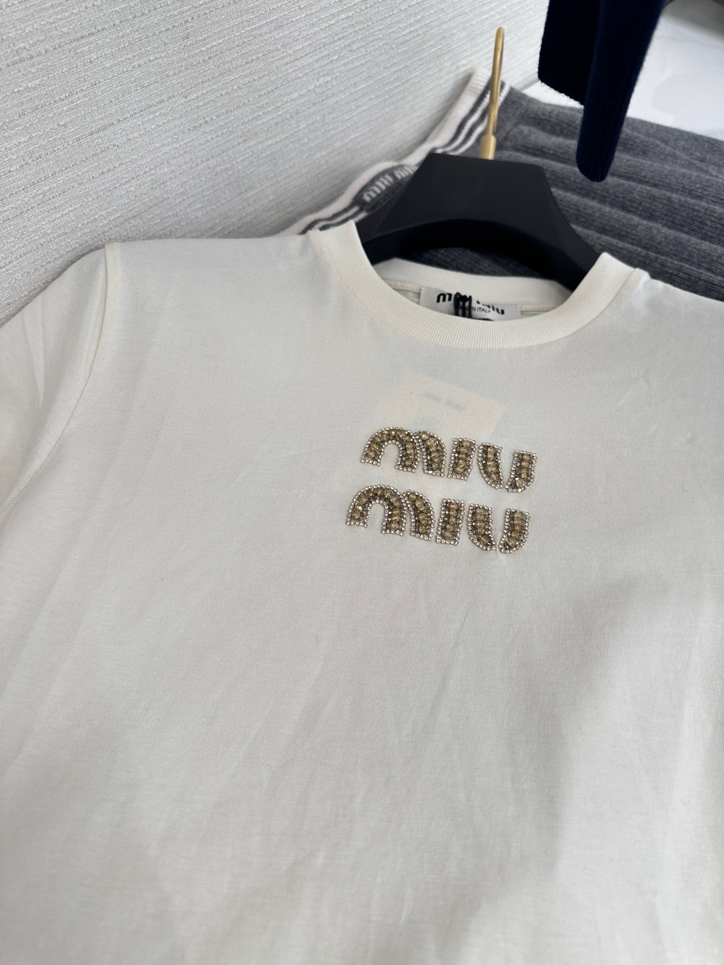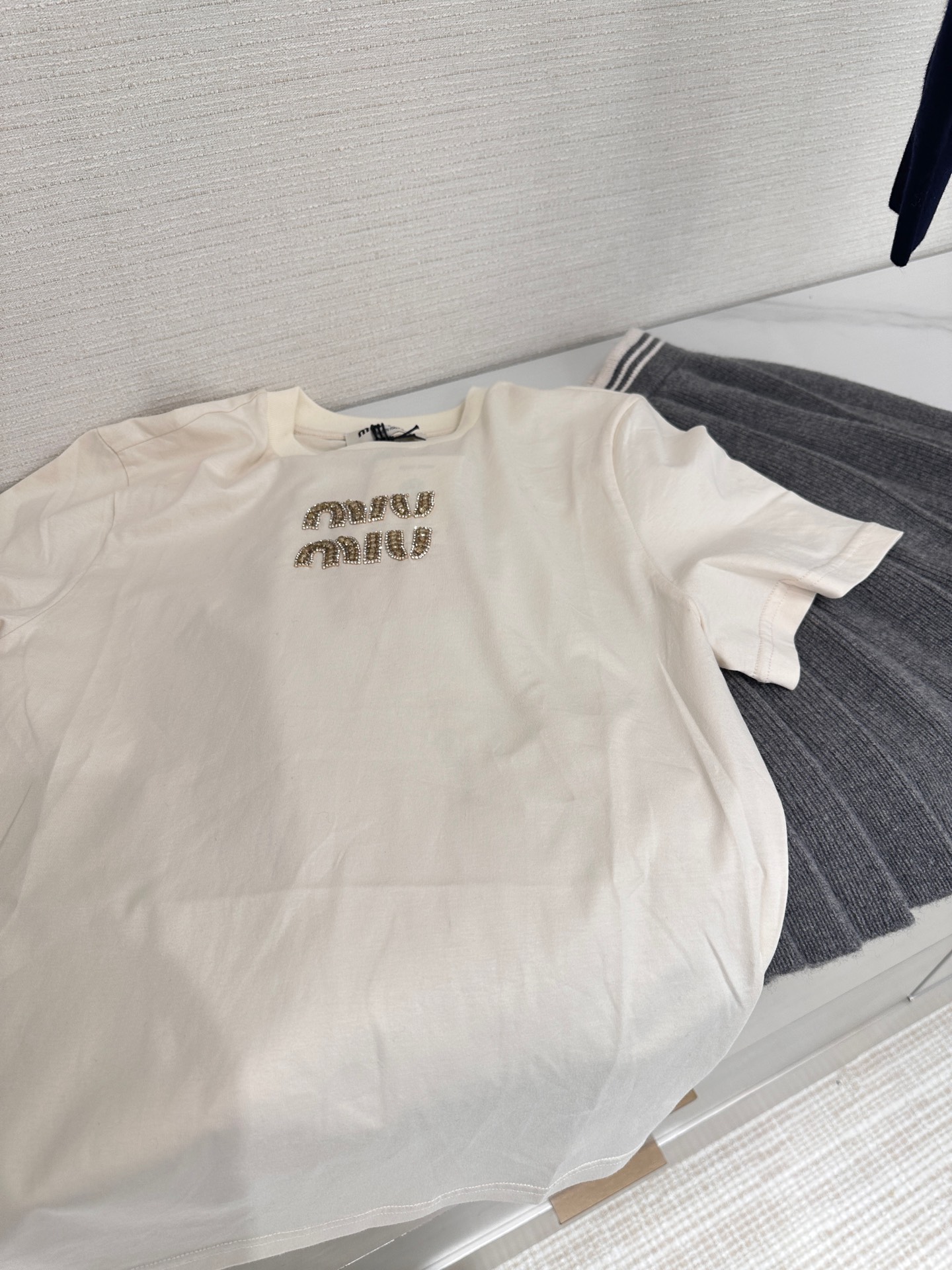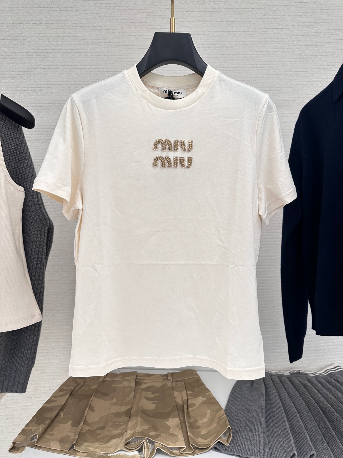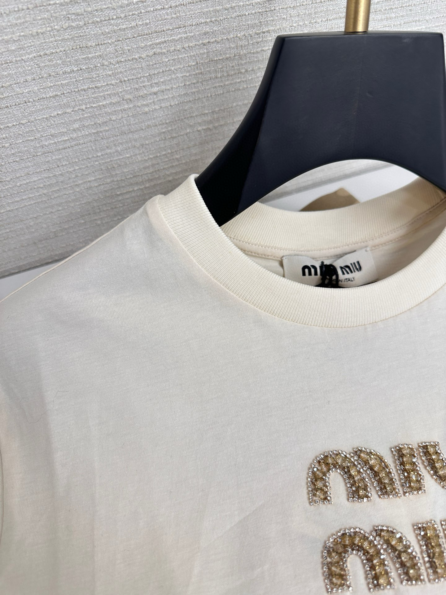 NIGO MiuMiu Women's Summer Solid Color Embroidery Beaded Letter Print Round Neck Short Sleeve T-Shirt #nigo75117