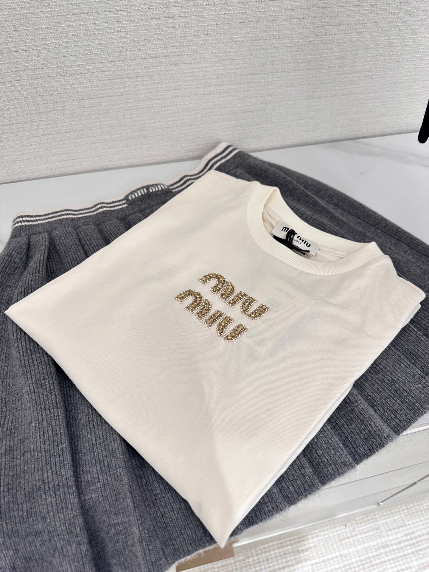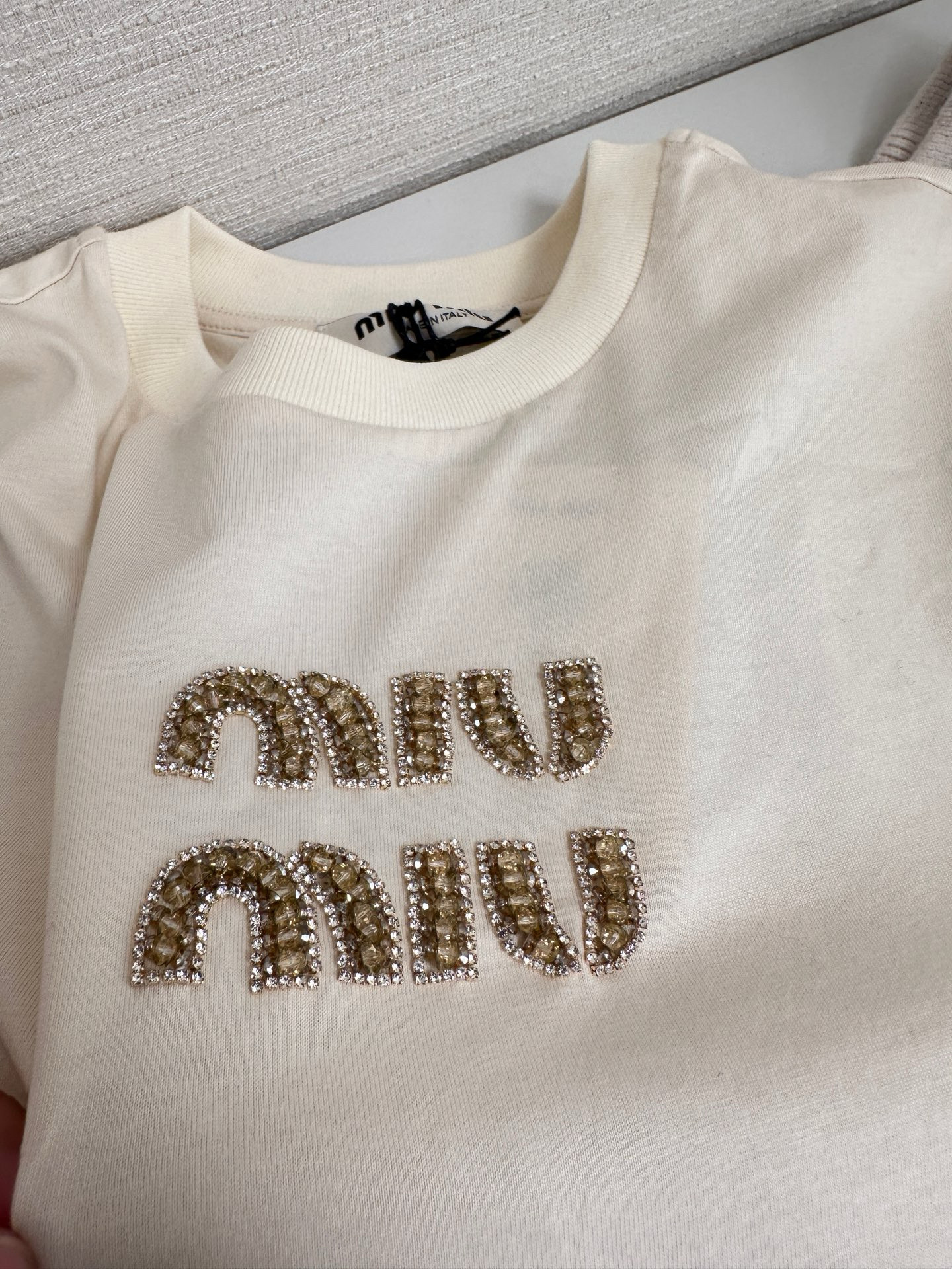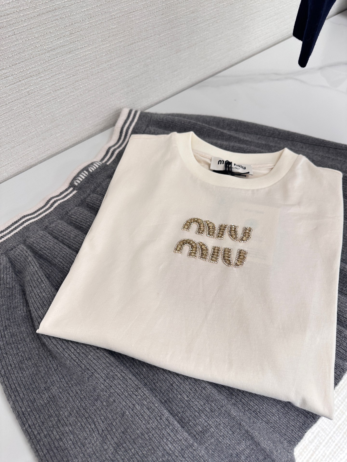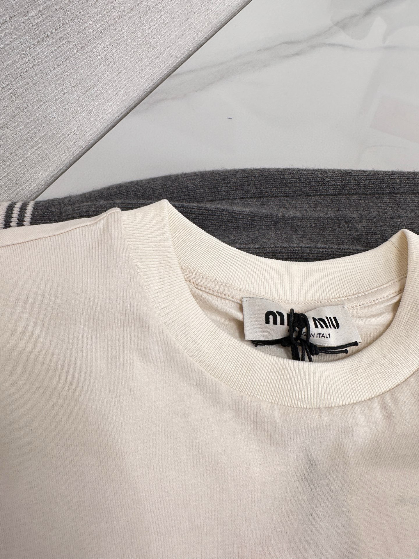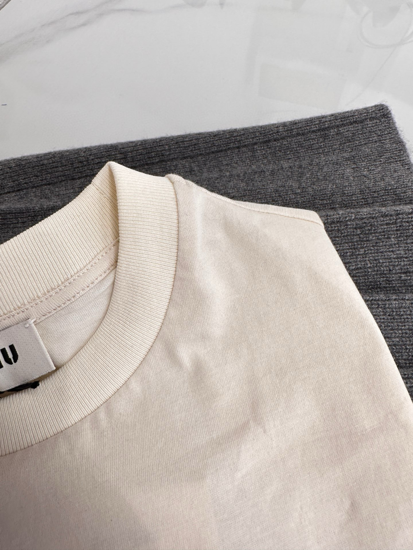 NIGO MiuMiu Women's Summer Solid Color Embroidery Beaded Letter Print Round Neck Short Sleeve T-Shirt #nigo75117