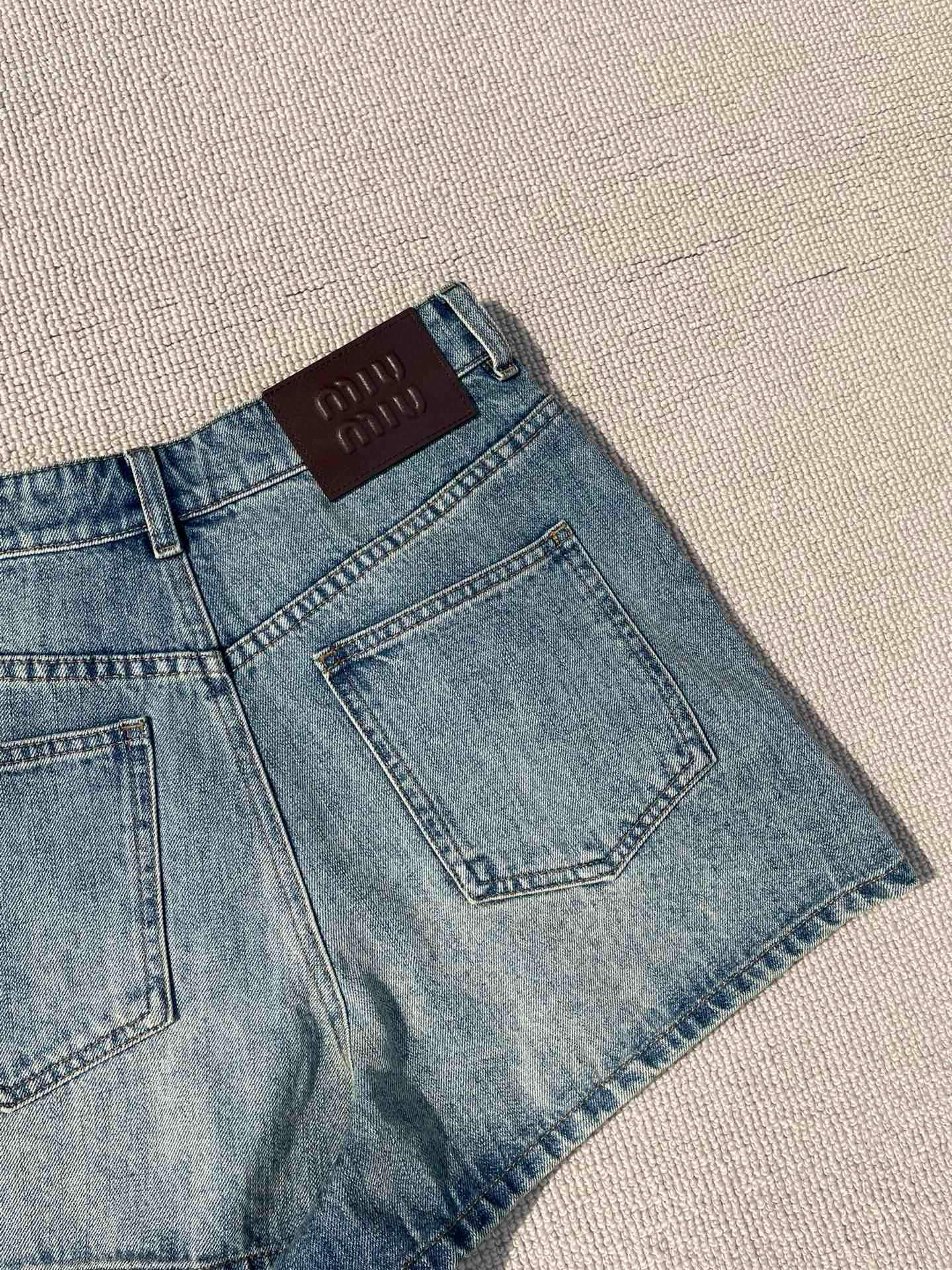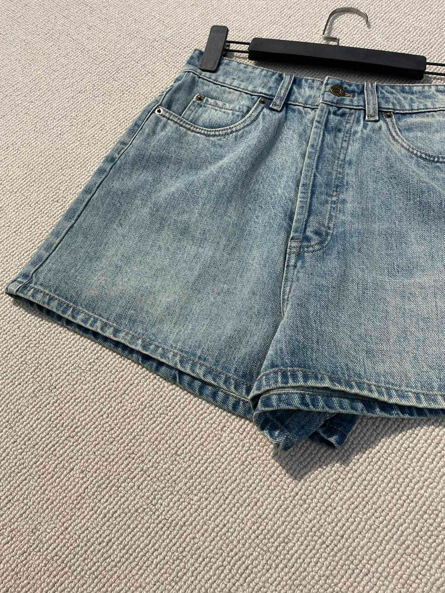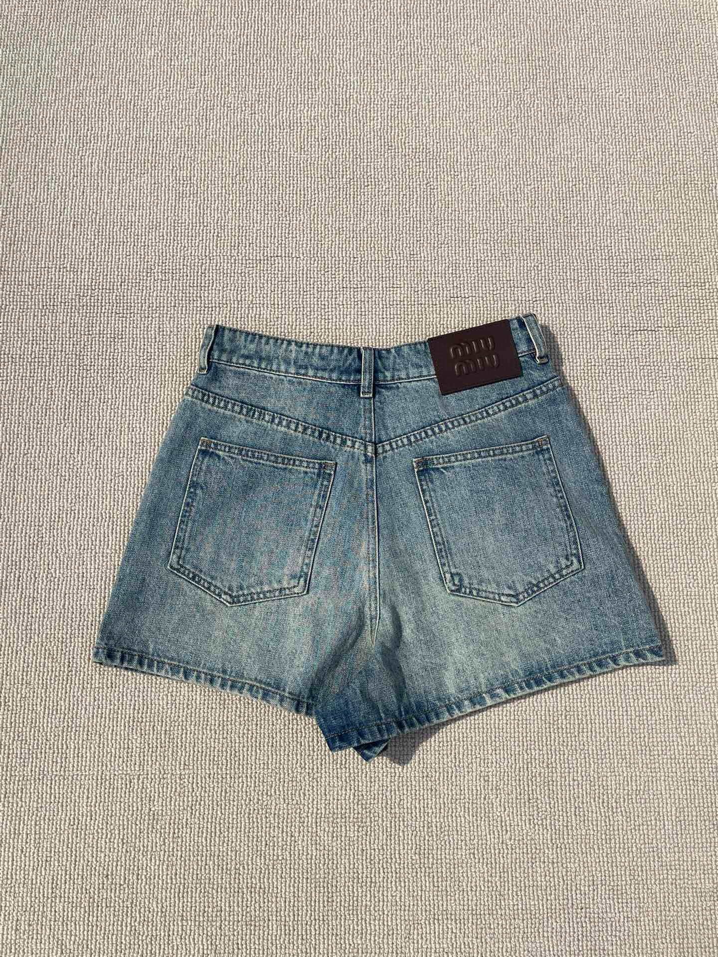 NIGO MiuMiu Women's Summer Solid Color Letter Leather Label Denim Shorts #nigo77764