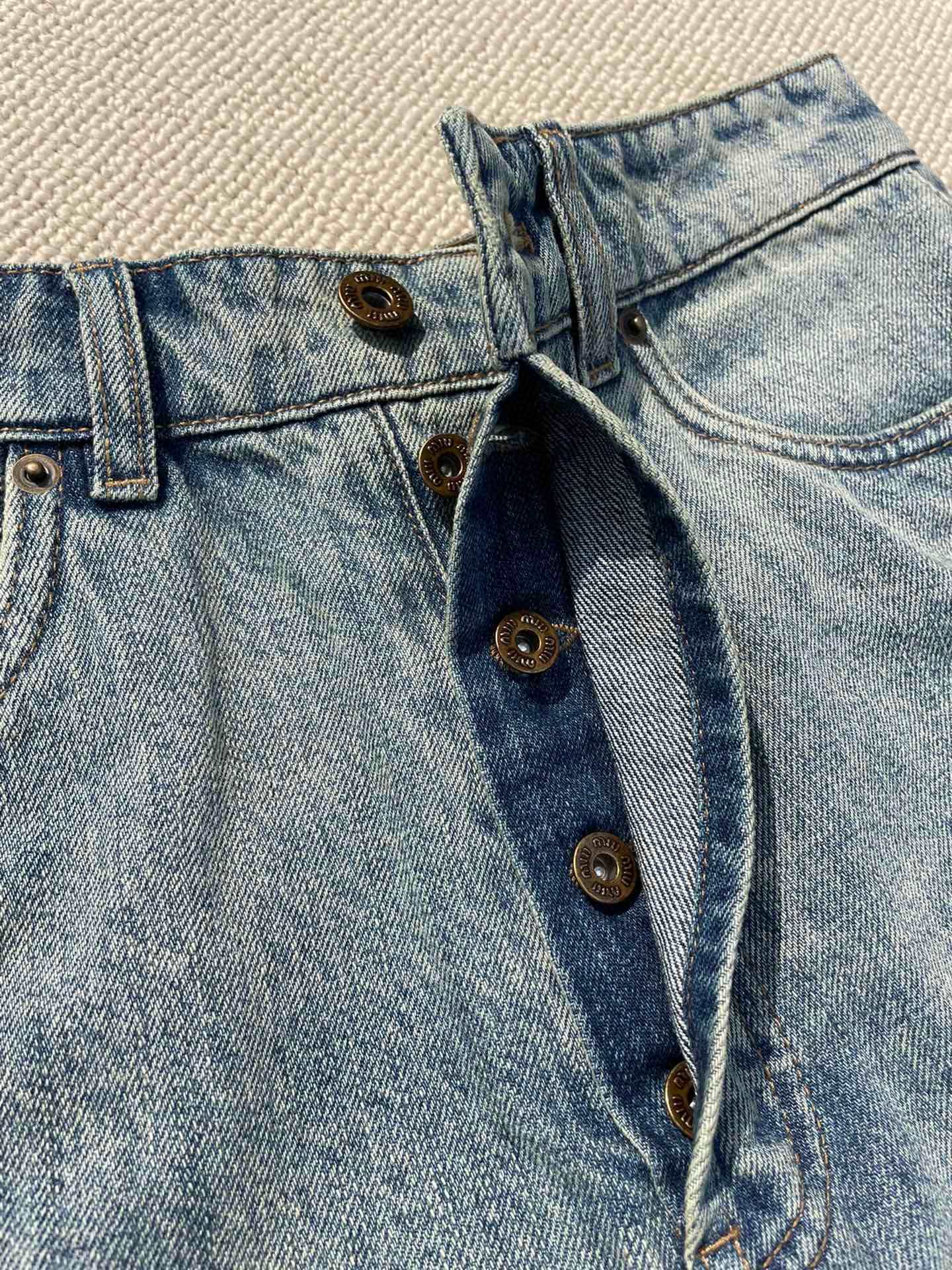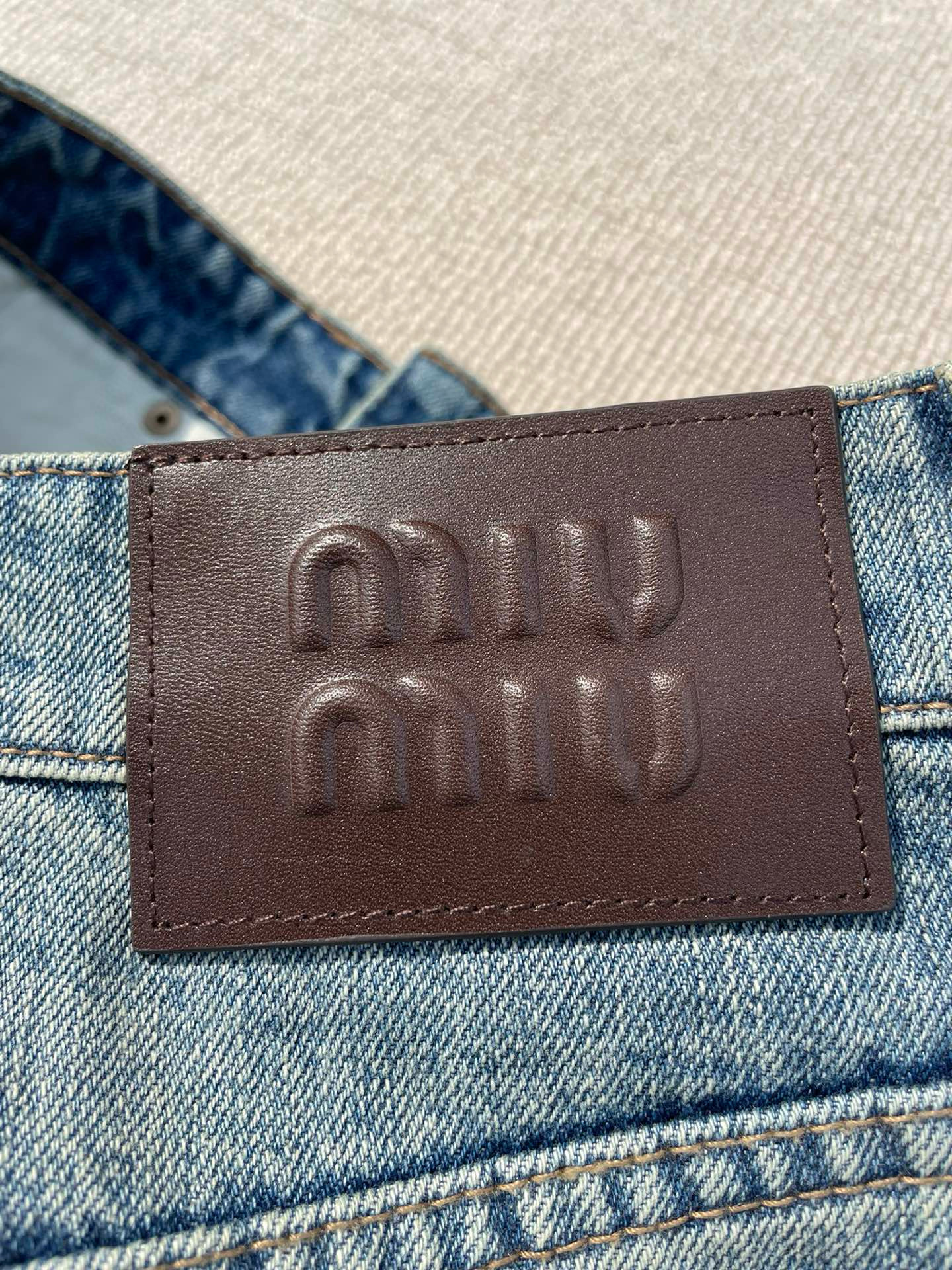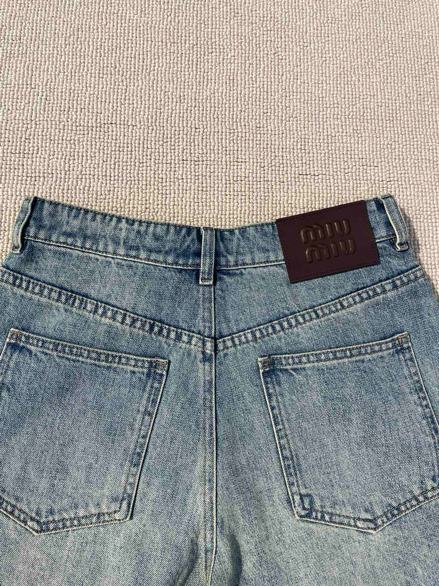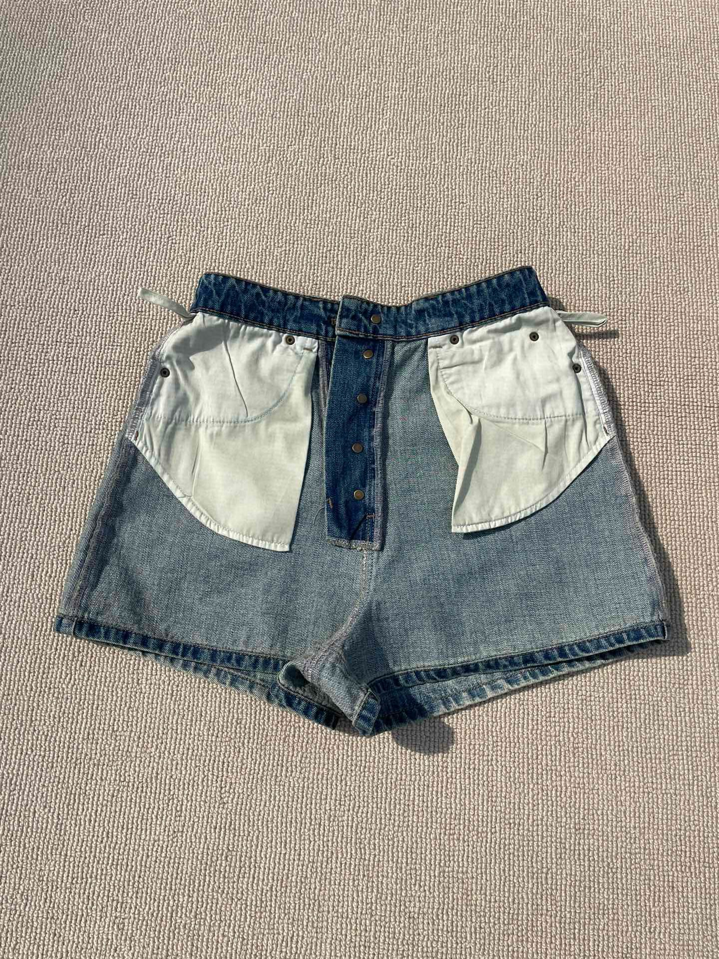 NIGO MiuMiu Women's Summer Solid Color Letter Leather Label Denim Shorts #nigo77764