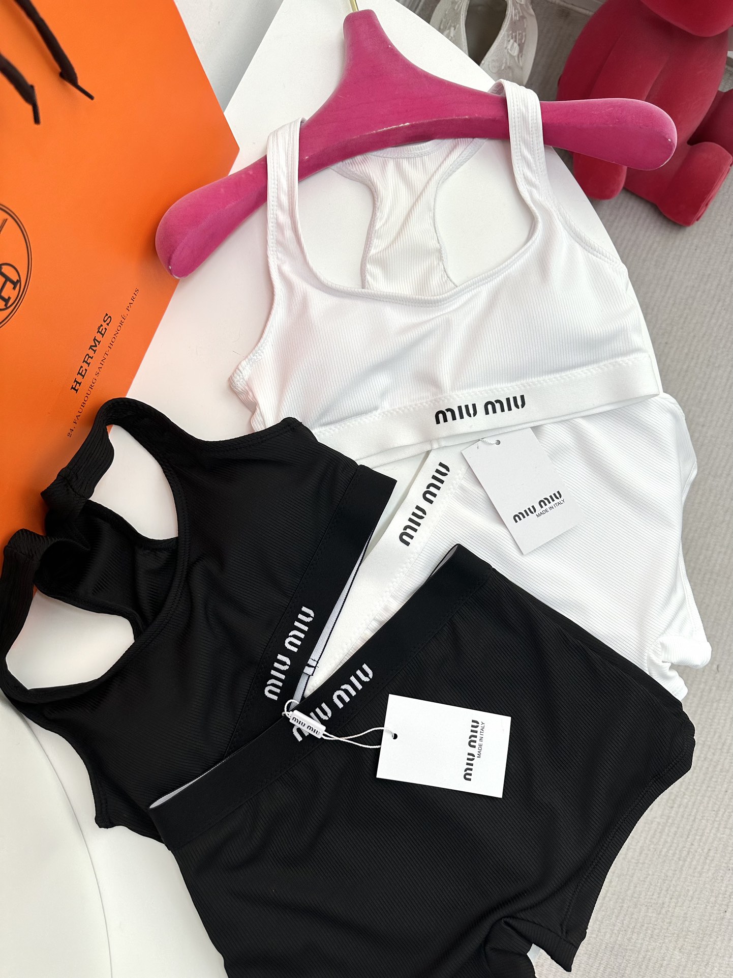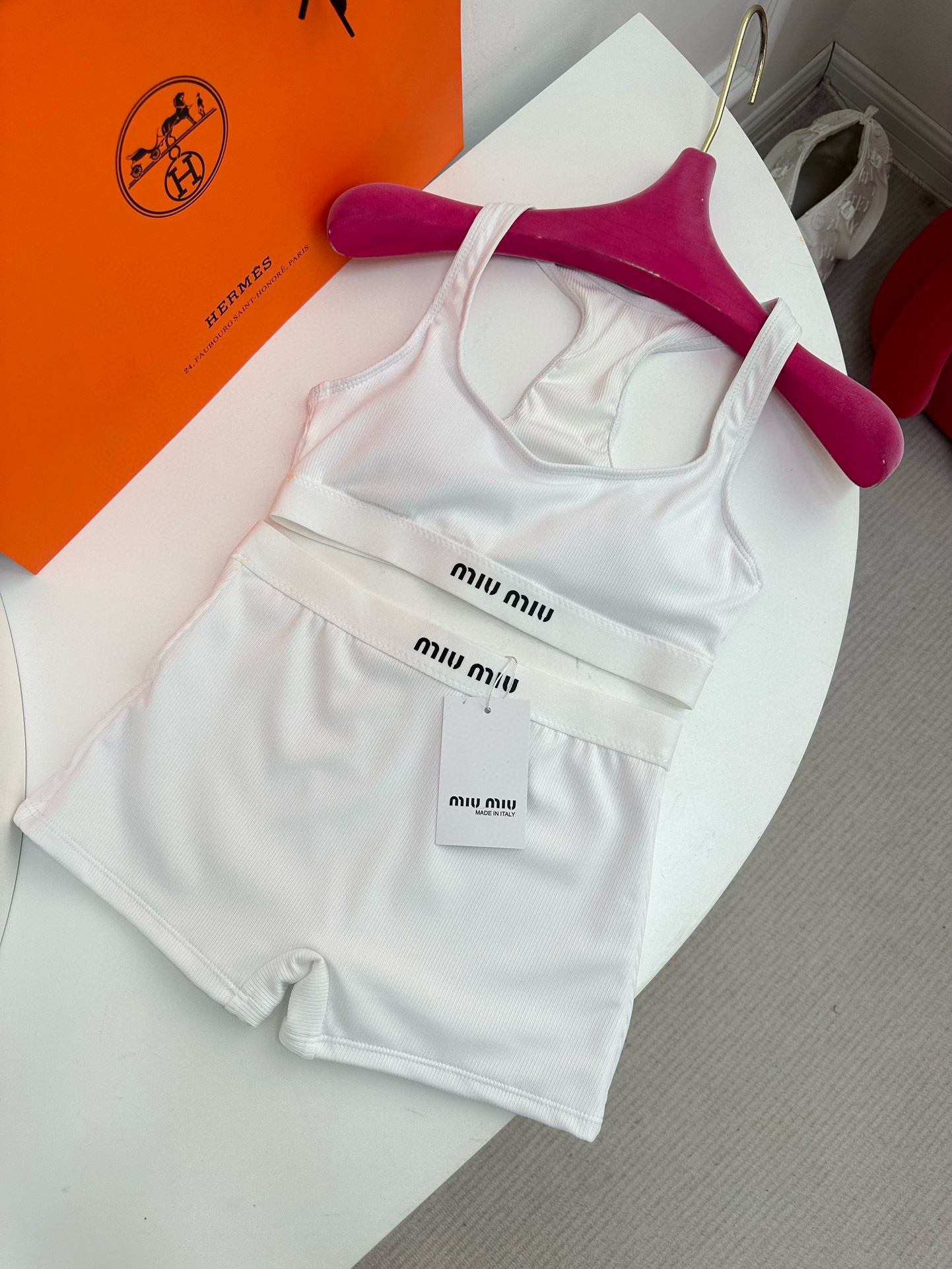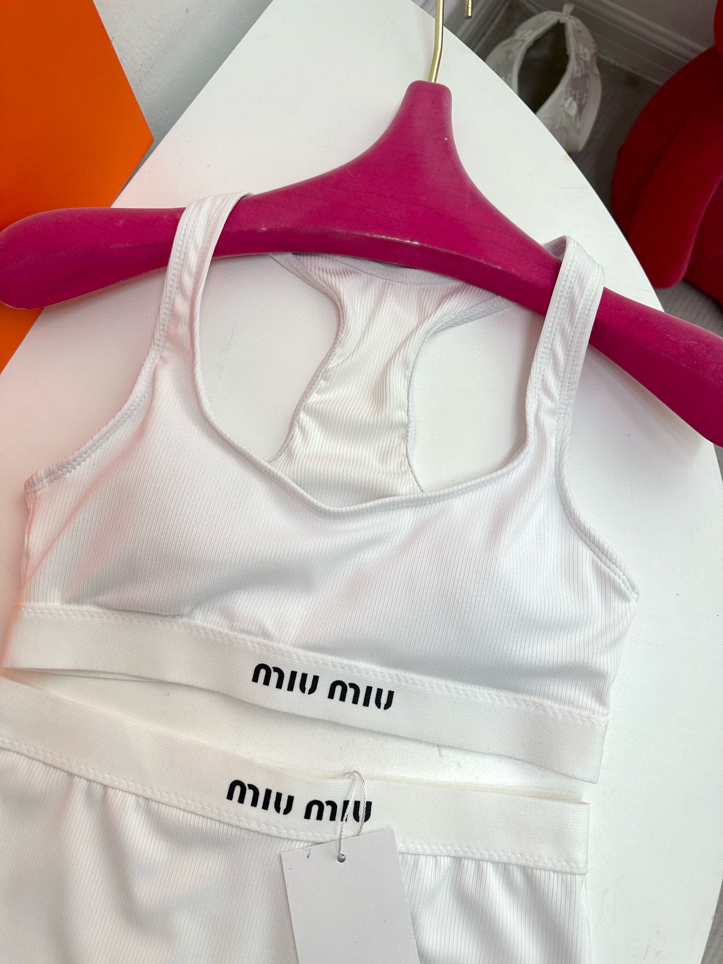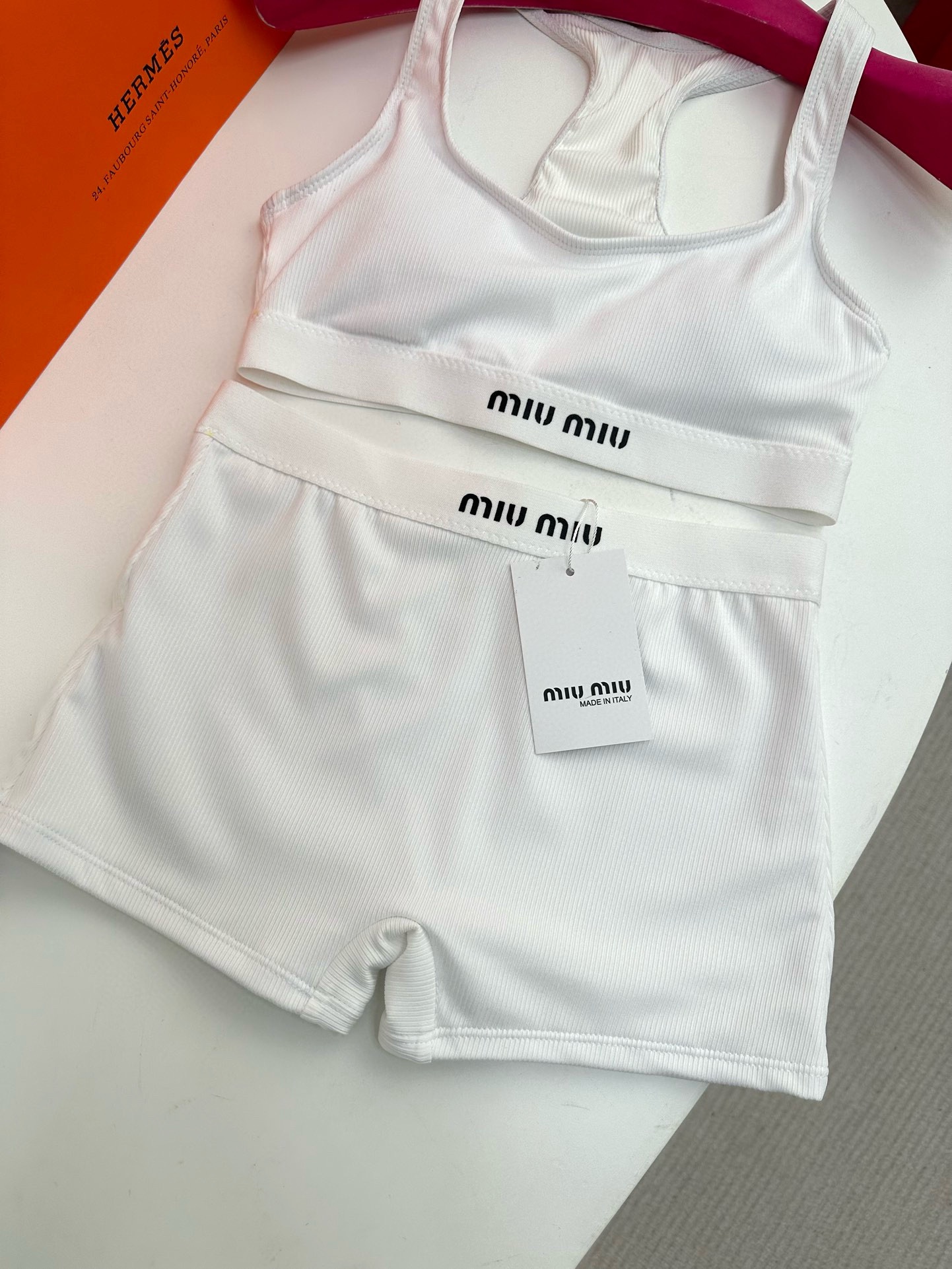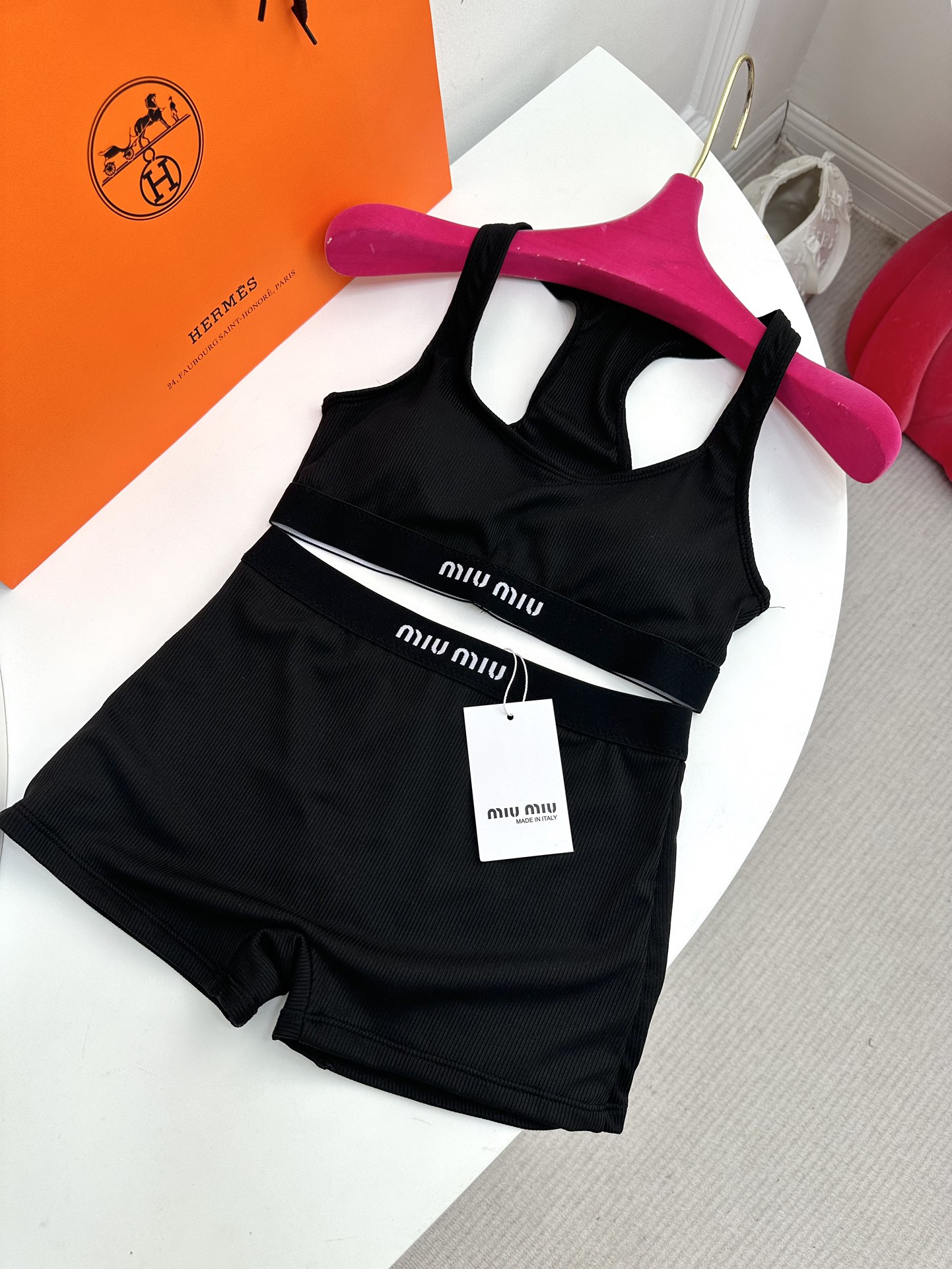 NIGO MiuMiu Women's Summer Solid Color Letter Logo Jacquard Sports Underwear Tight Shorts Set Suit #nigo72287