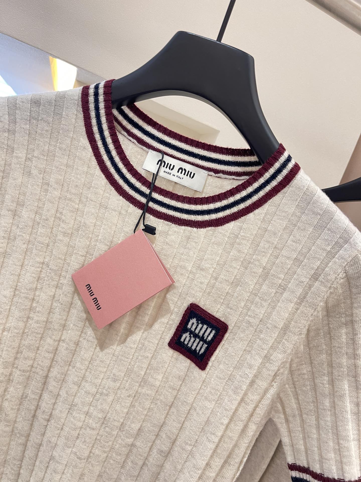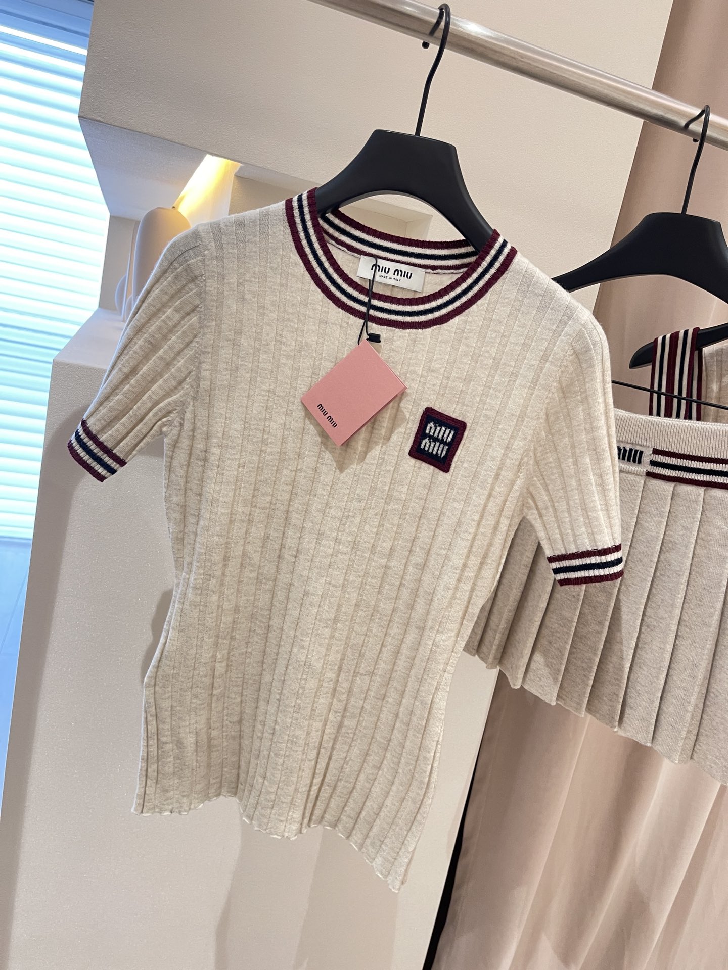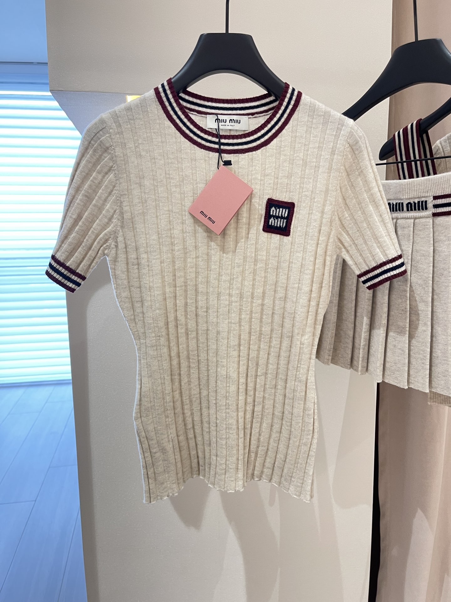 NIGO MiuMiu Women's Summer Solid Color Letter Print Knitted Round Neck Short Sleeve T-Shirt #nigo77557