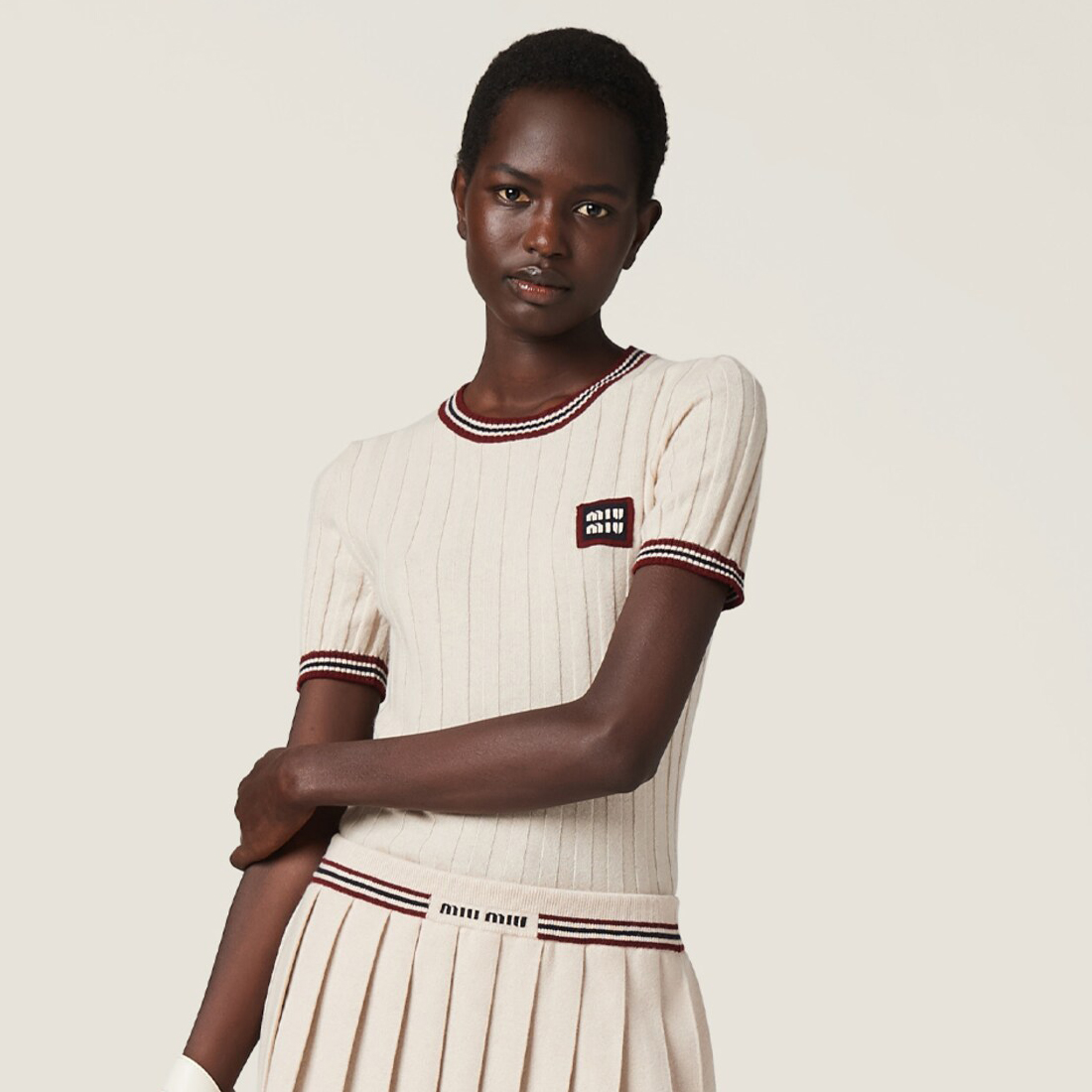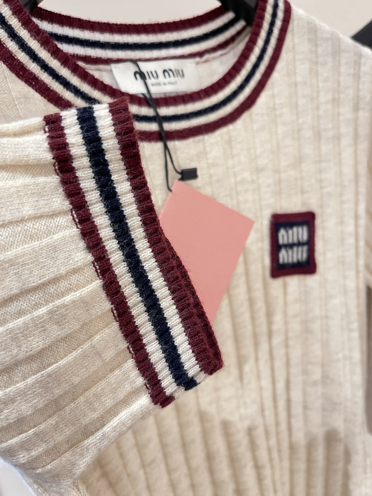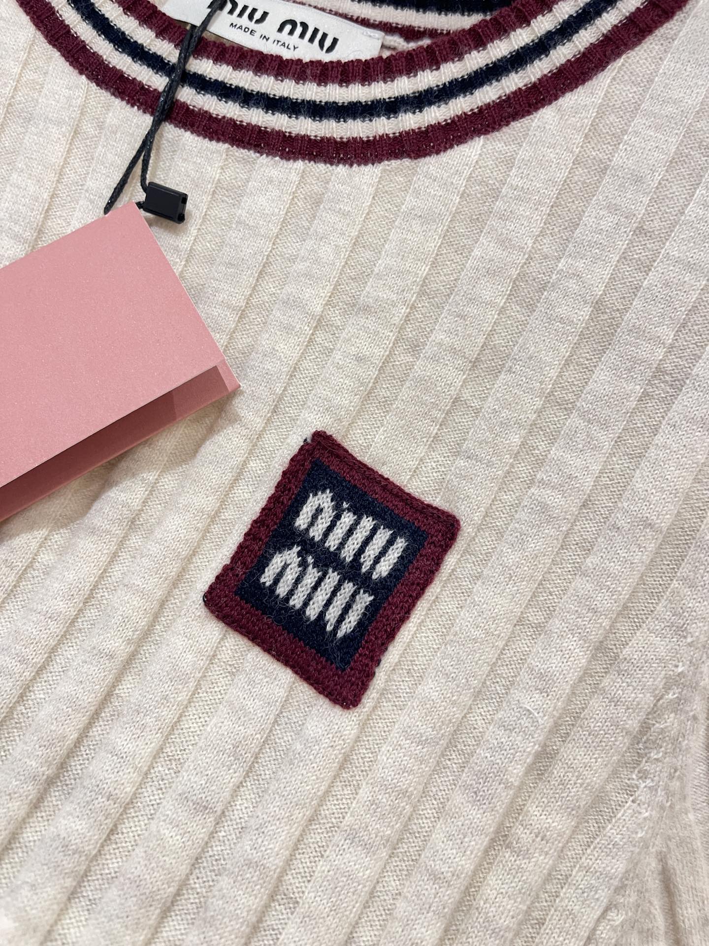 NIGO MiuMiu Women's Summer Solid Color Letter Print Knitted Round Neck Short Sleeve T-Shirt #nigo77557