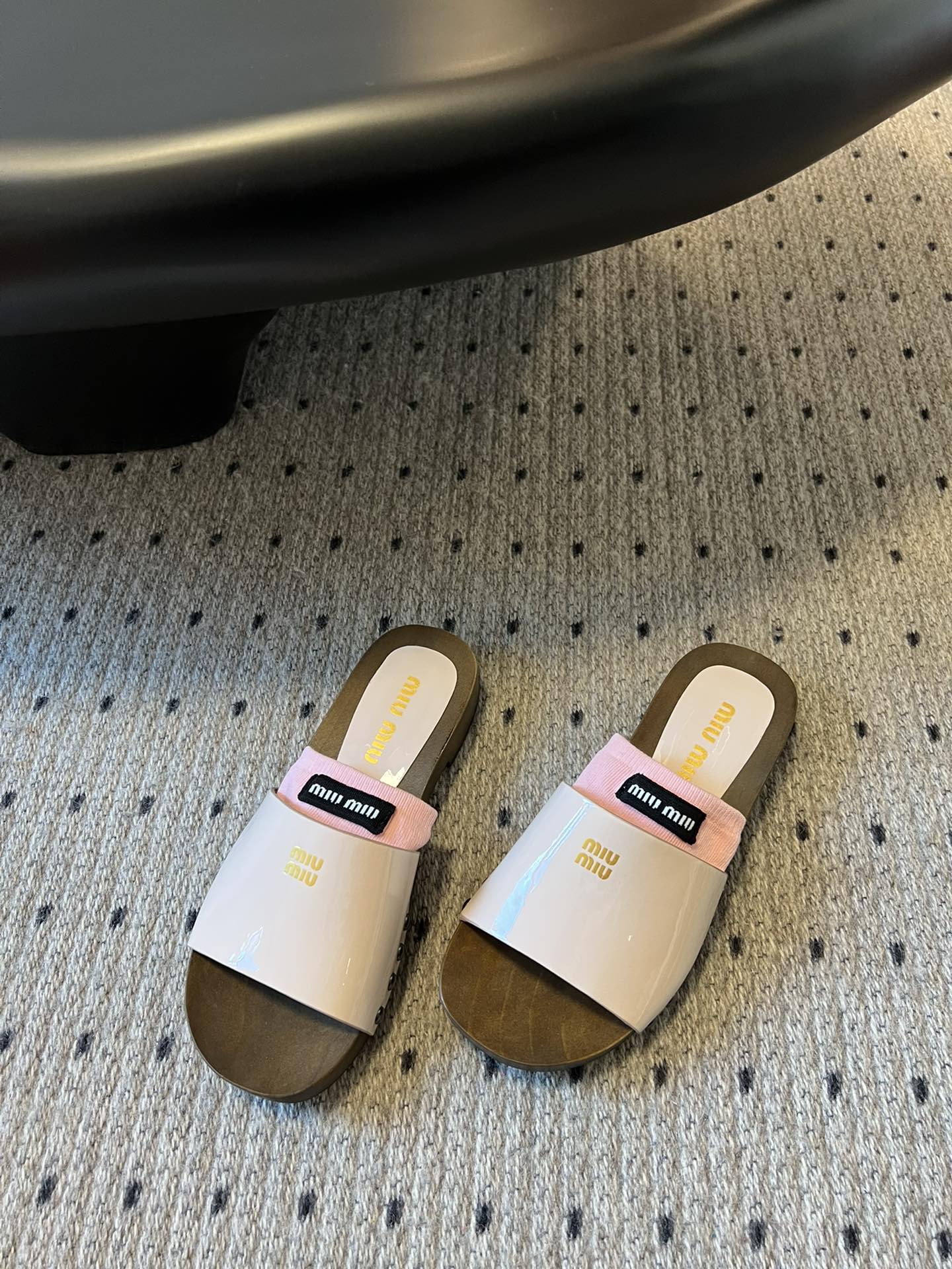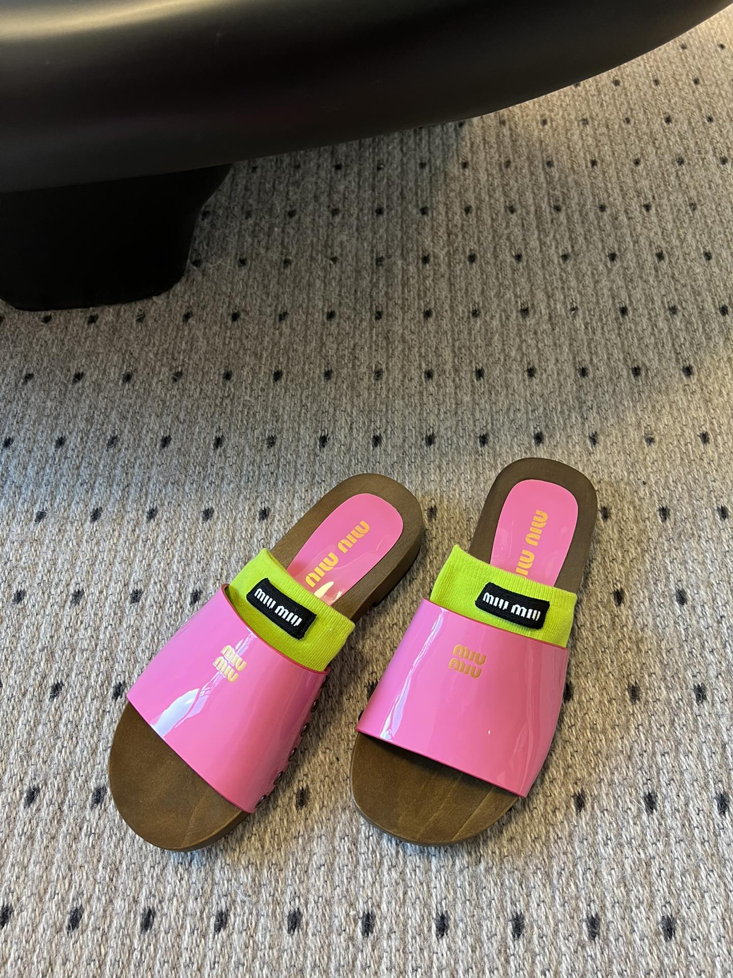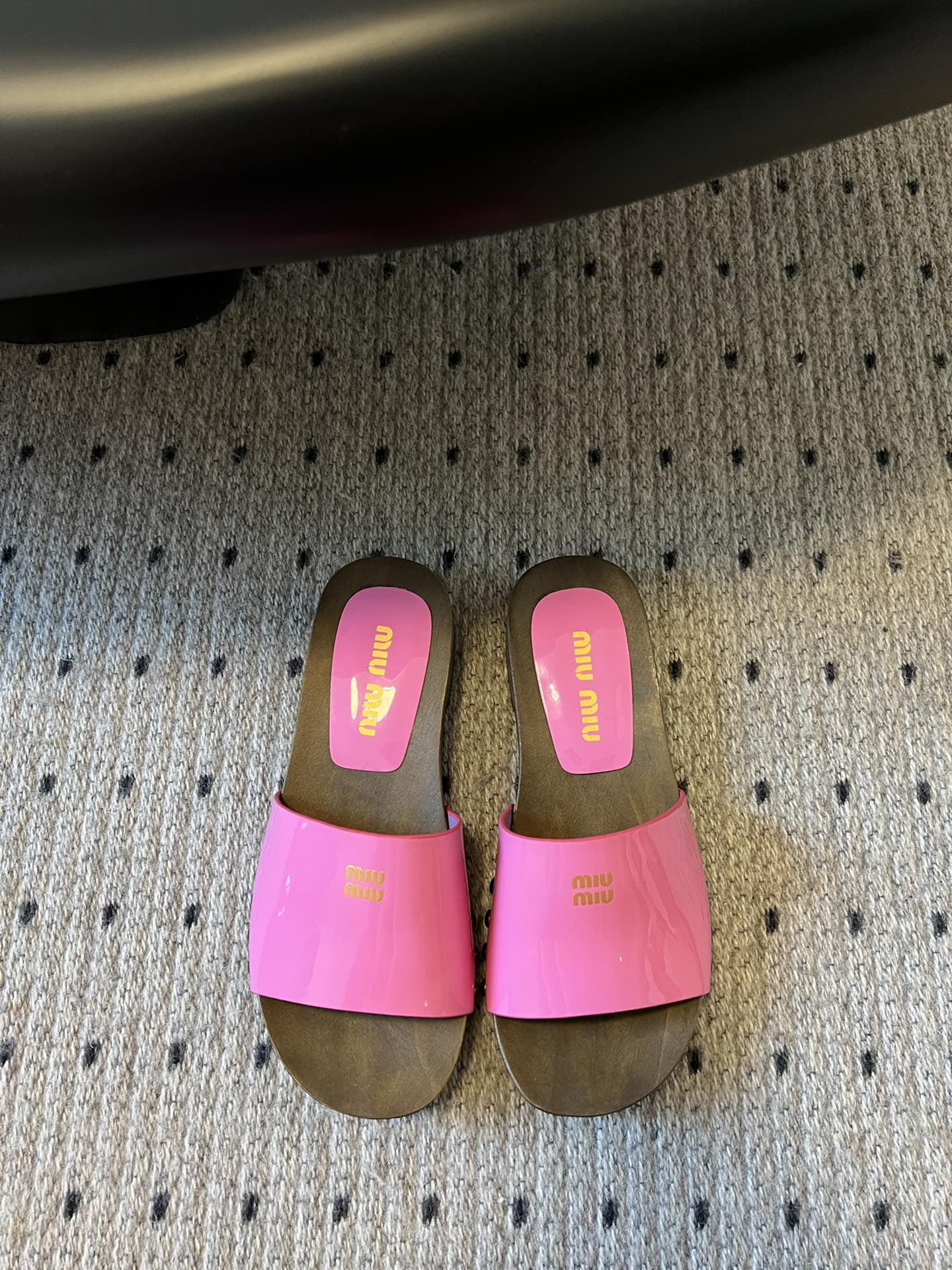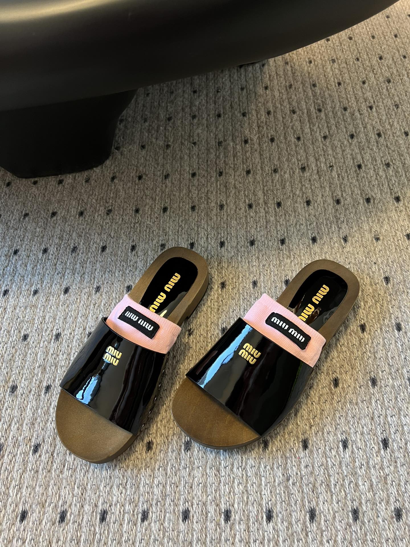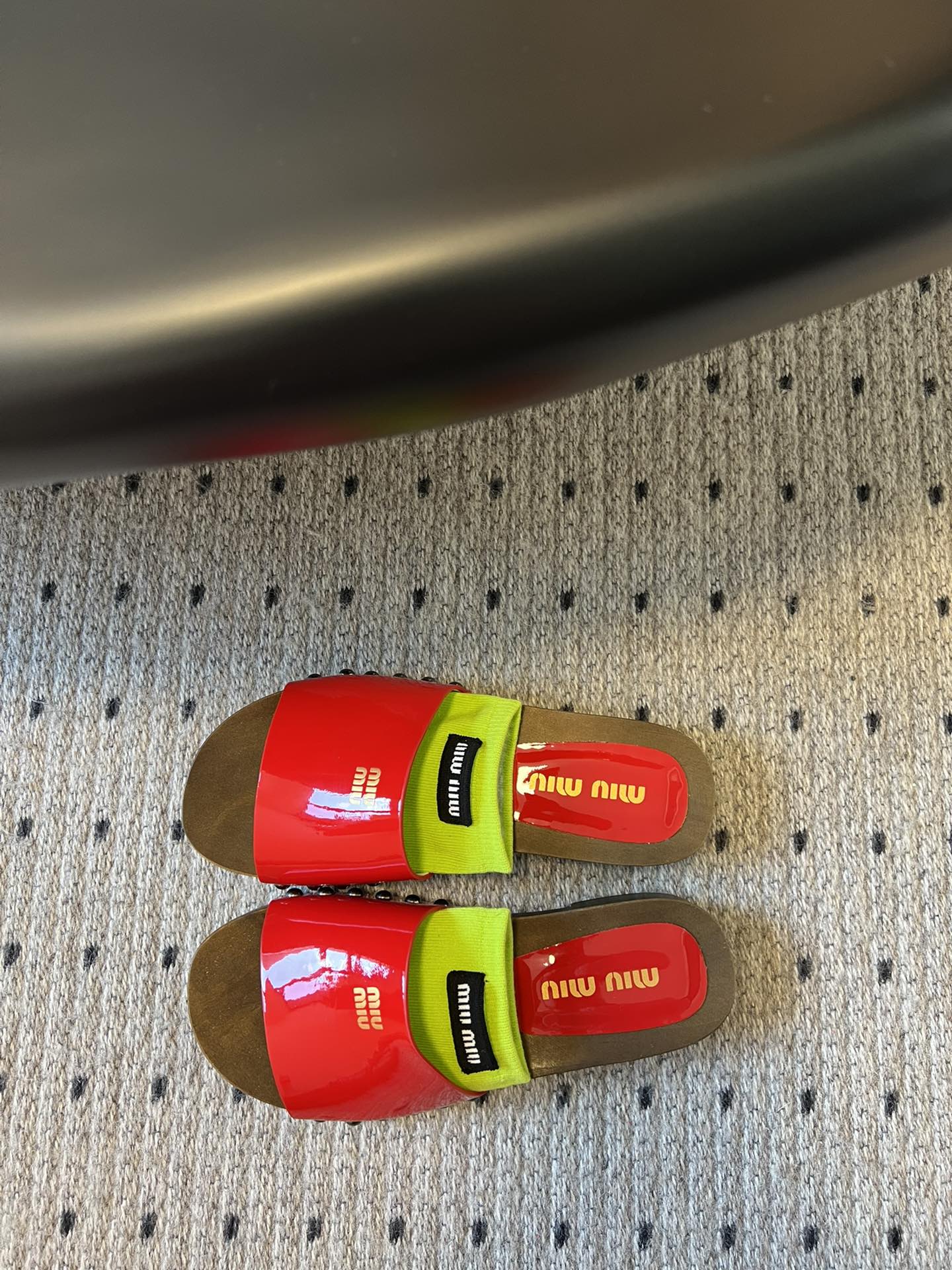 NIGO MiuMiu Women's Summer Solid Color Suede Patent Leather Round Head Set Foot Clogs Slippers Sandals Shoes #nigo75599