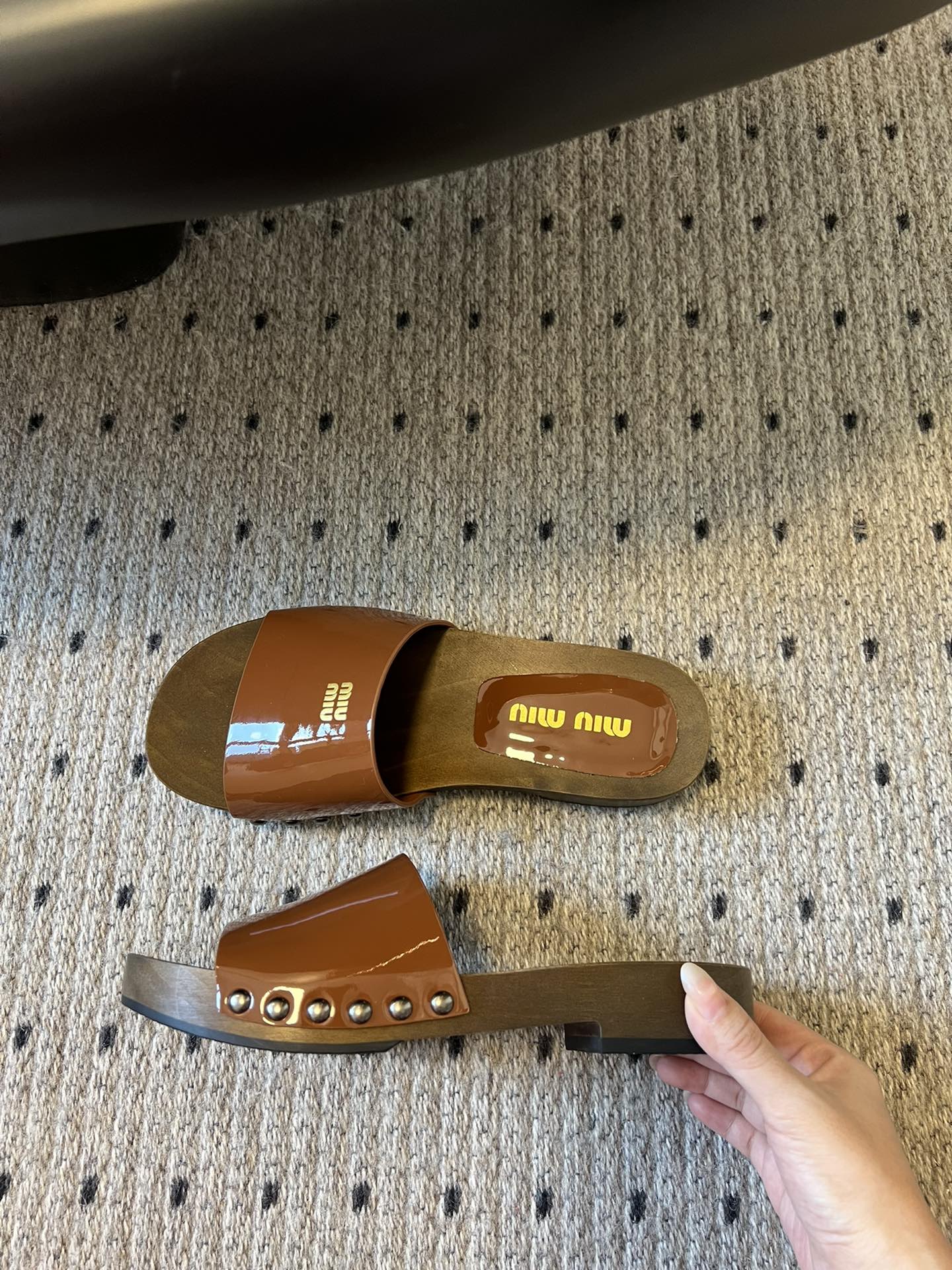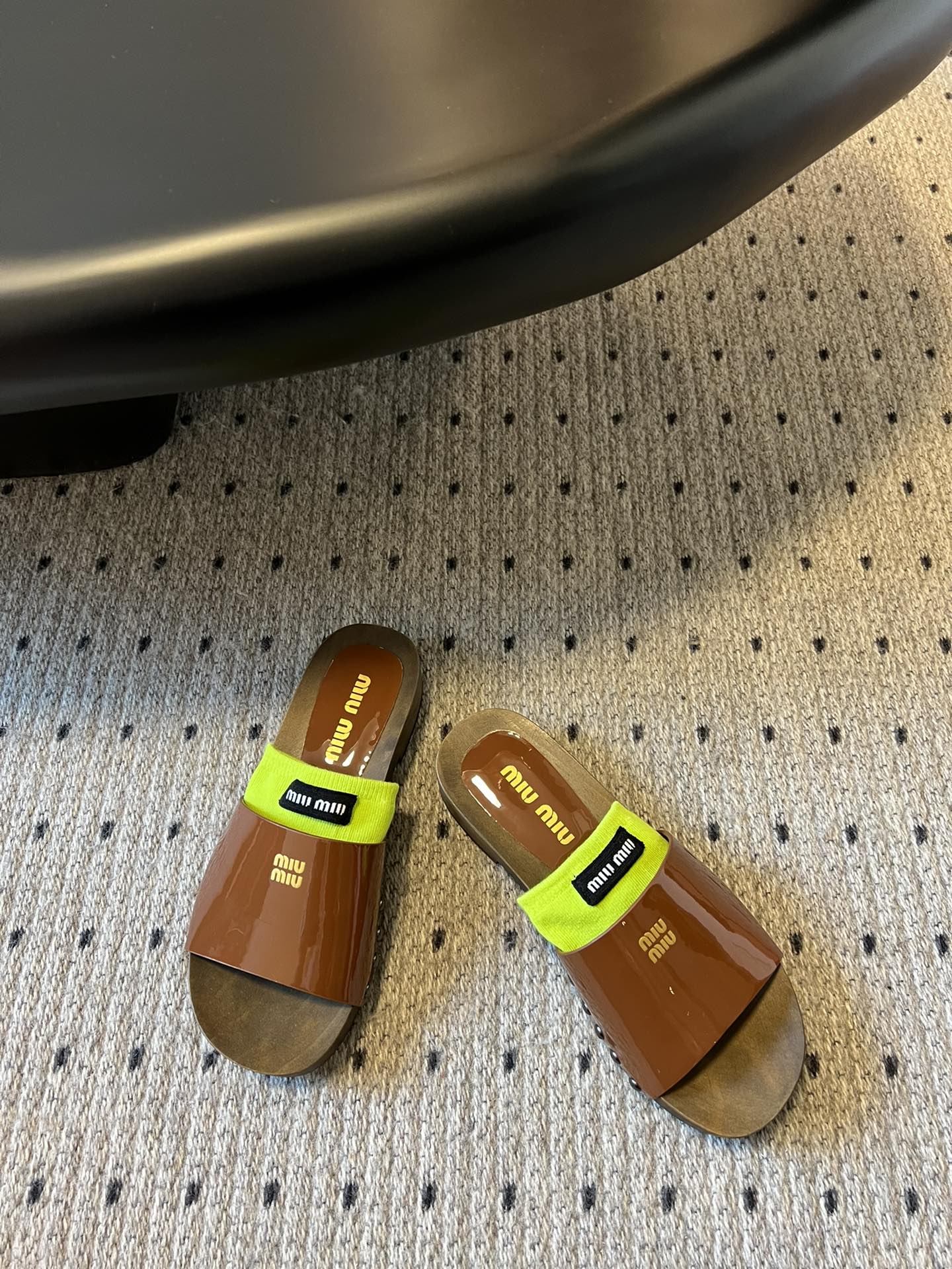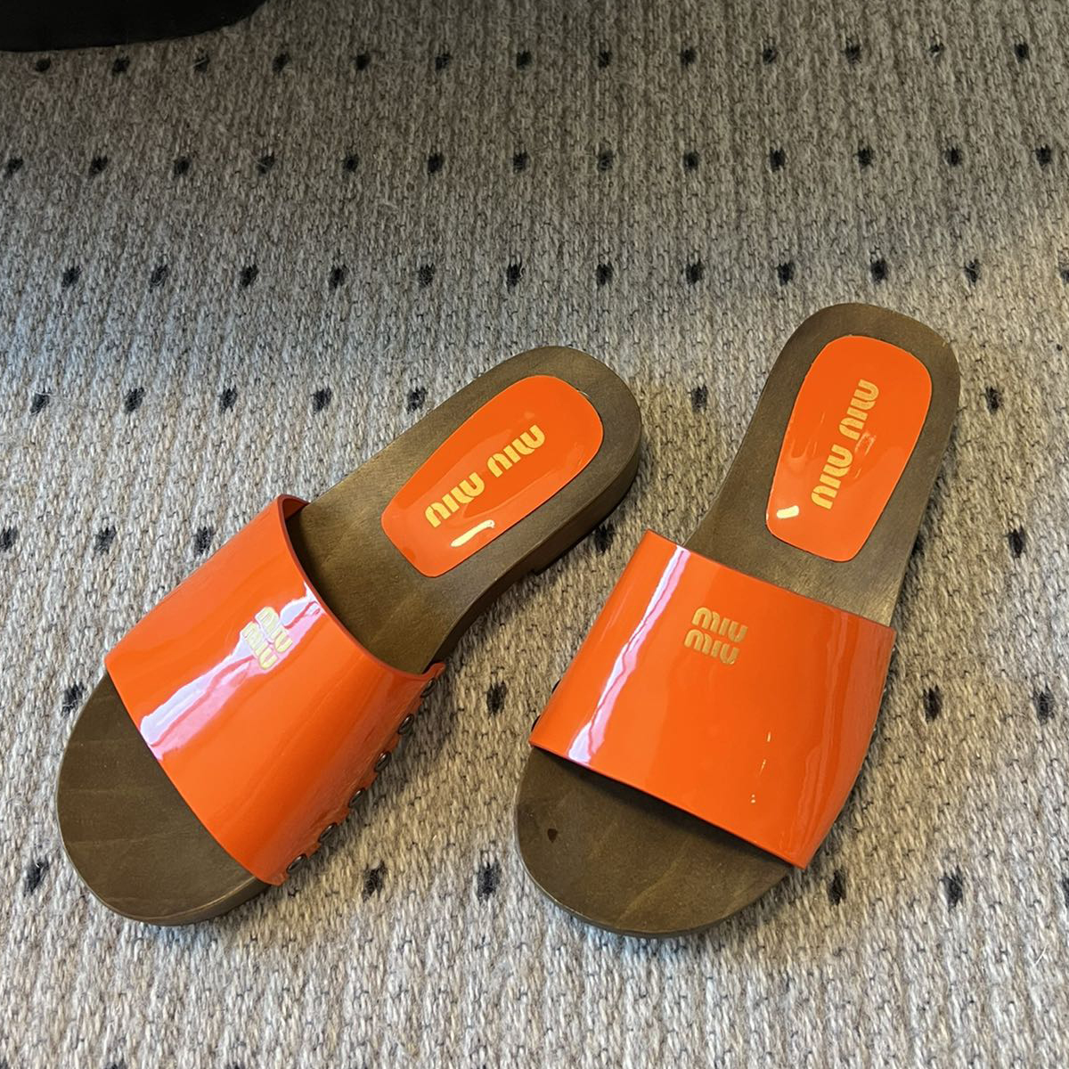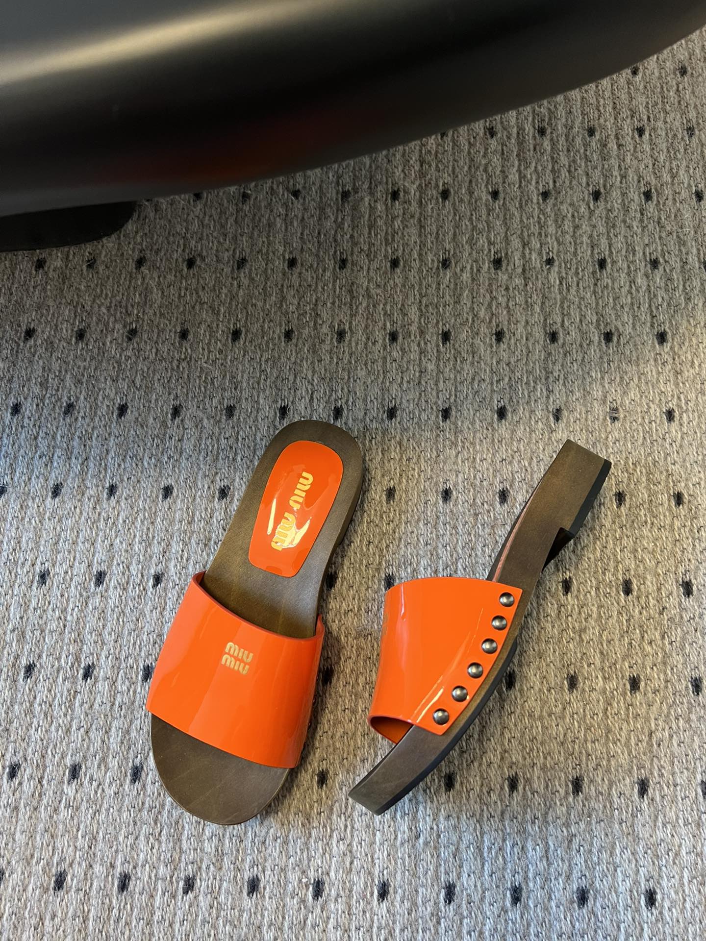 NIGO MiuMiu Women's Summer Solid Color Suede Patent Leather Round Head Set Foot Clogs Slippers Sandals Shoes #nigo75599