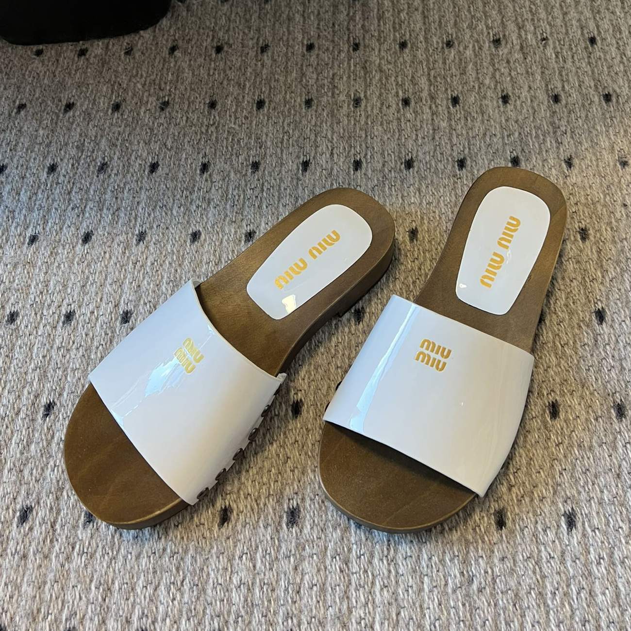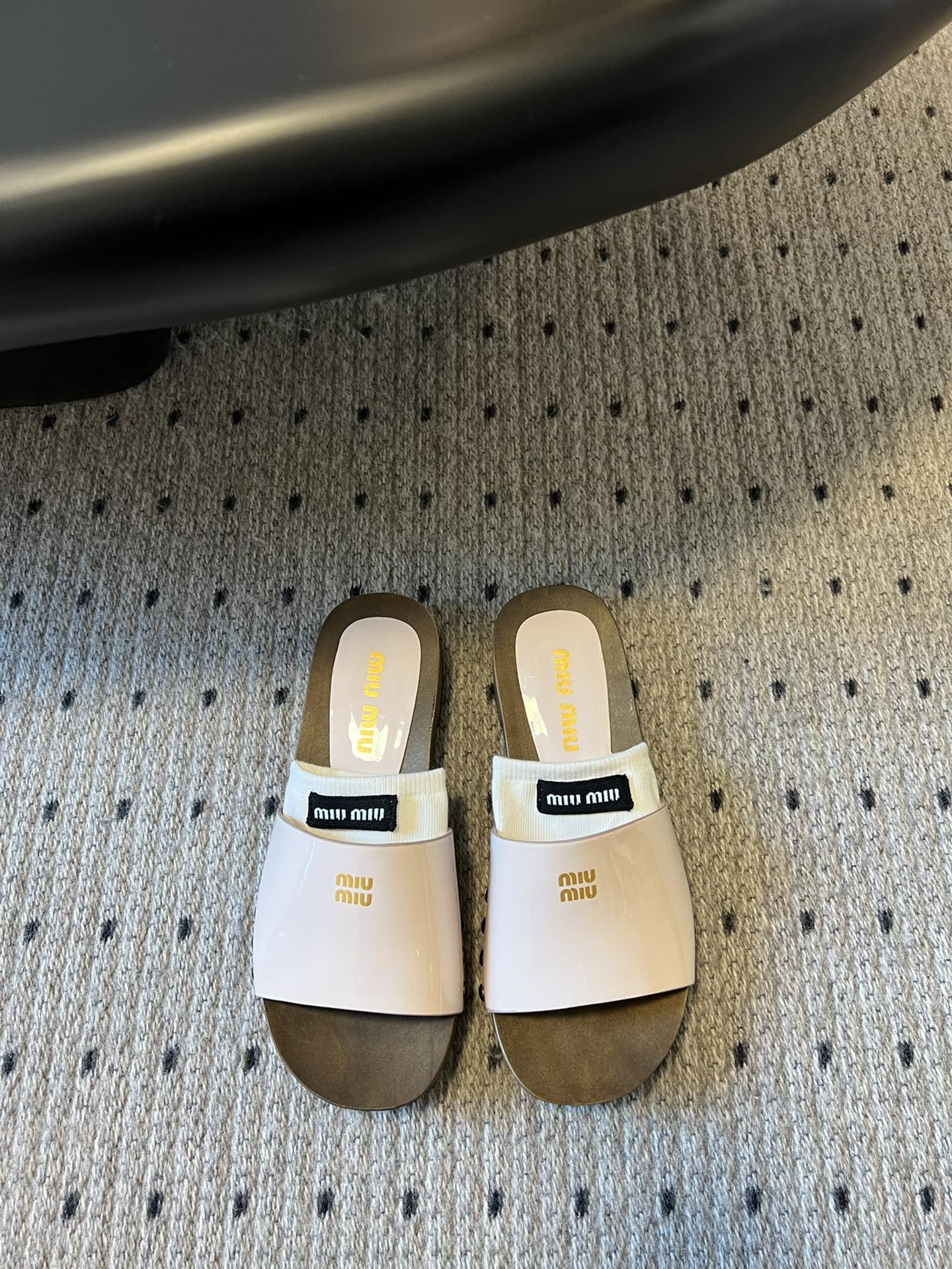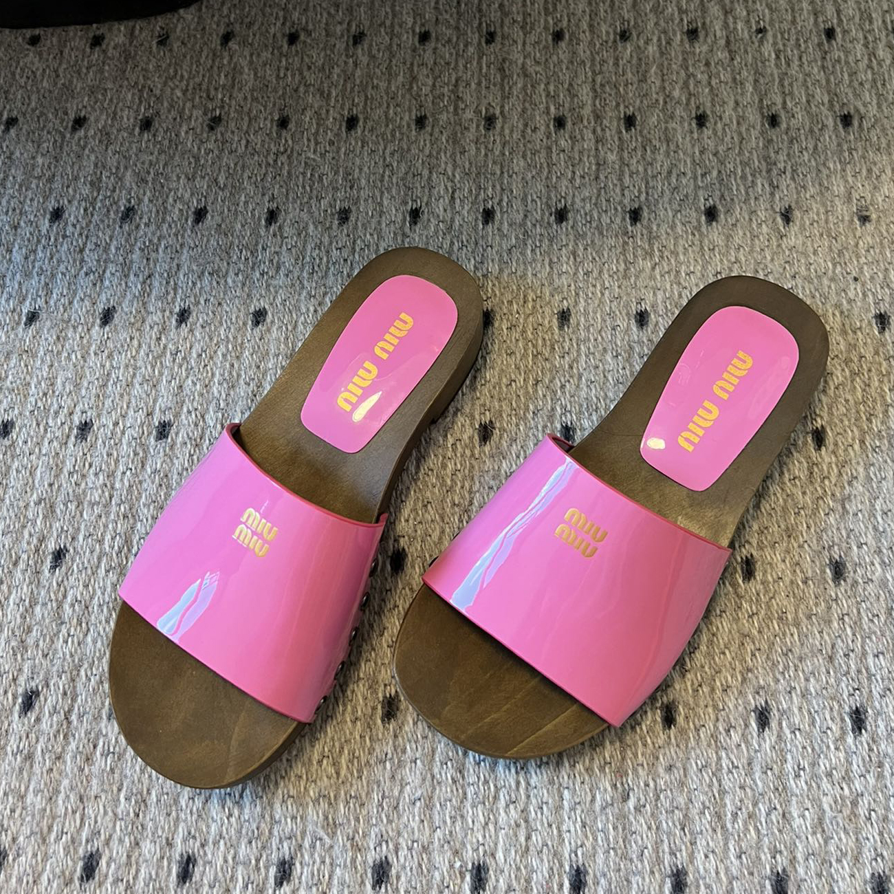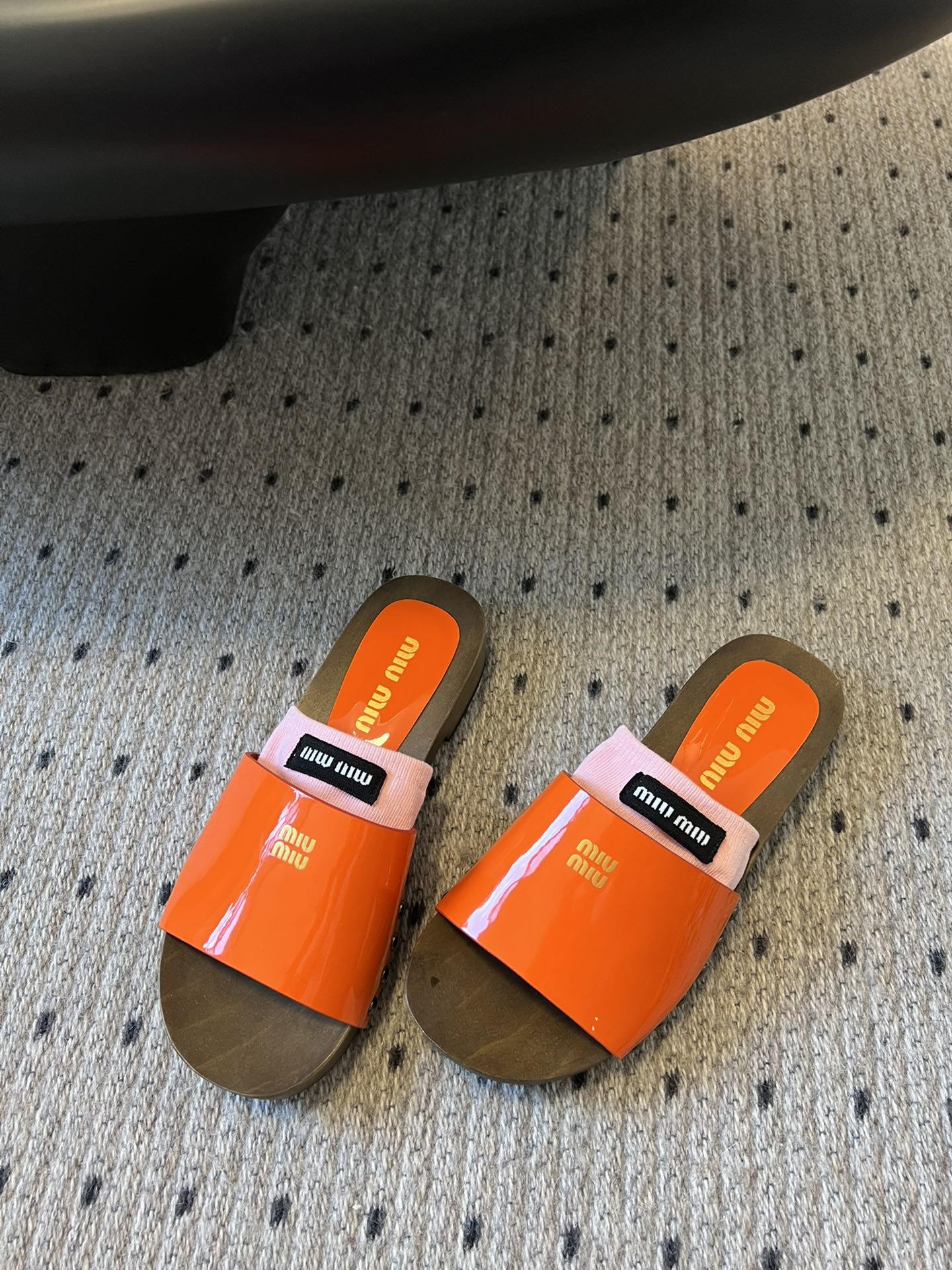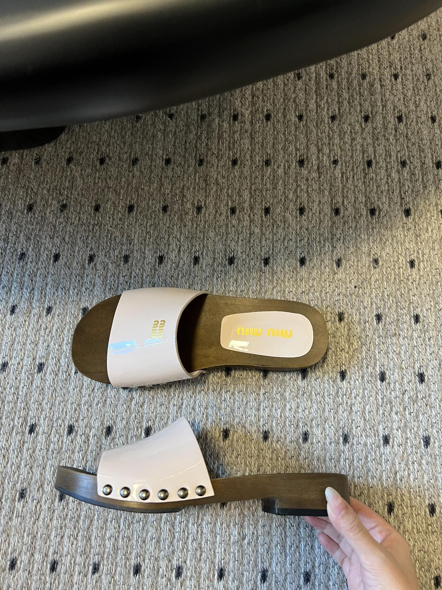 NIGO MiuMiu Women's Summer Solid Color Suede Patent Leather Round Head Set Foot Clogs Slippers Sandals Shoes #nigo75599