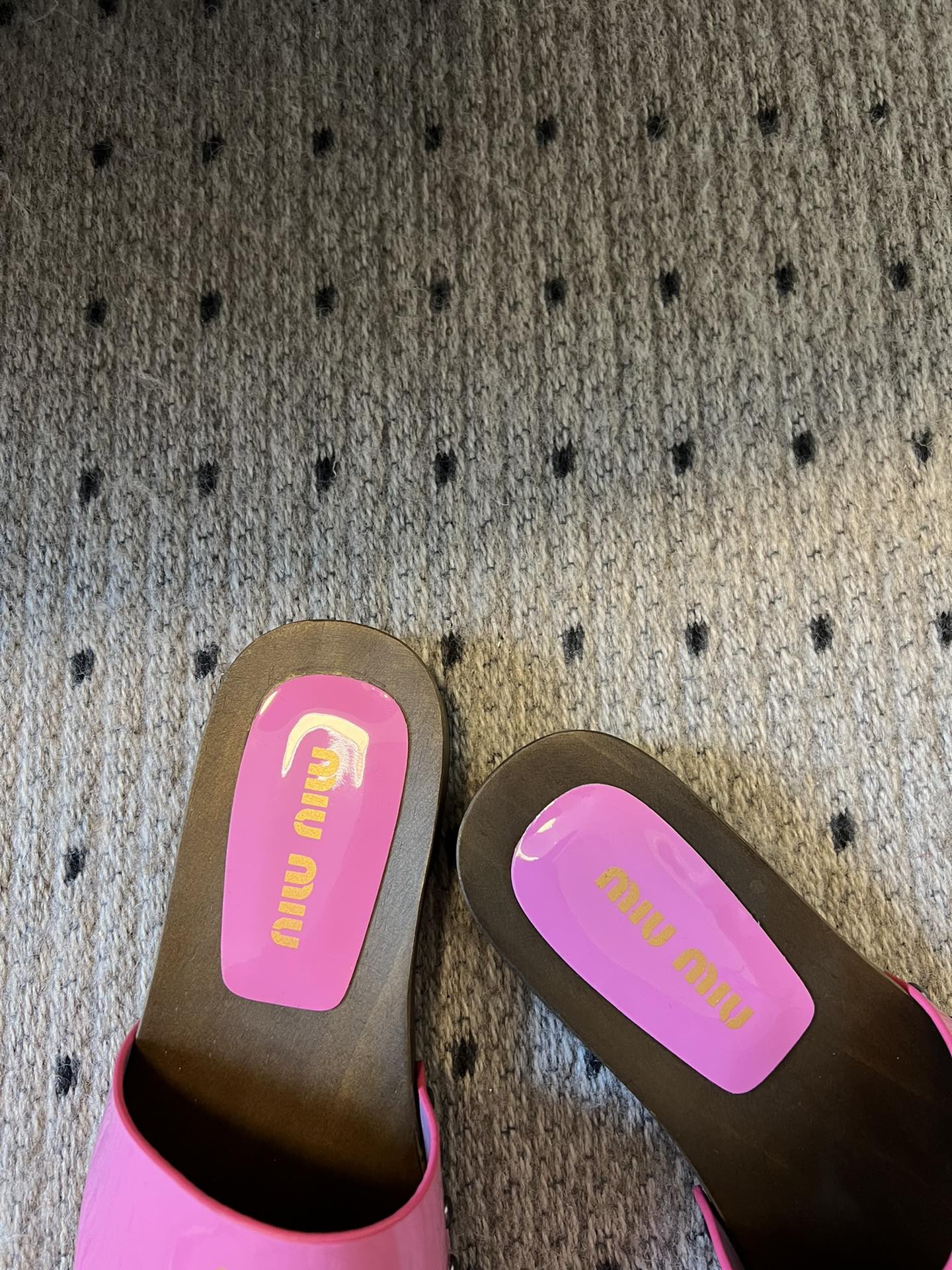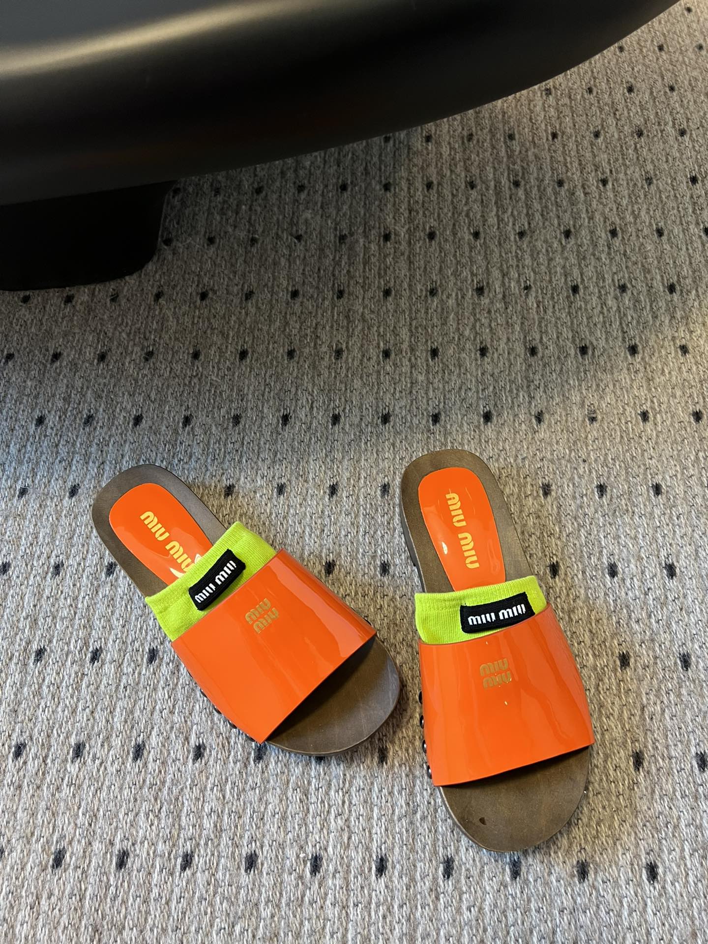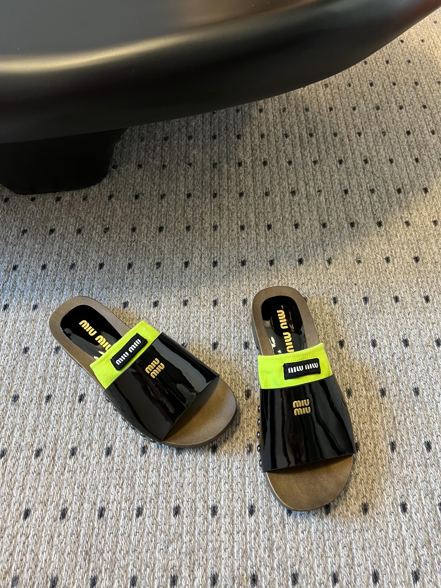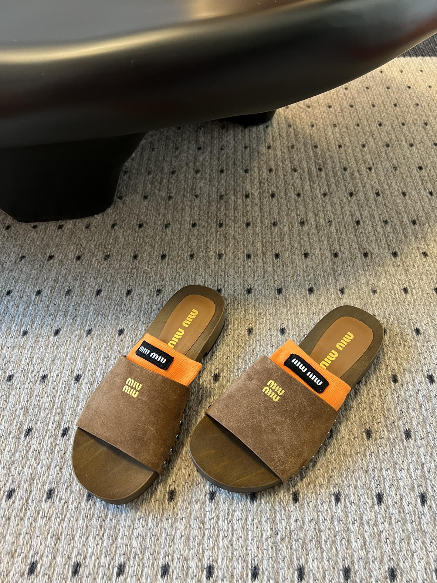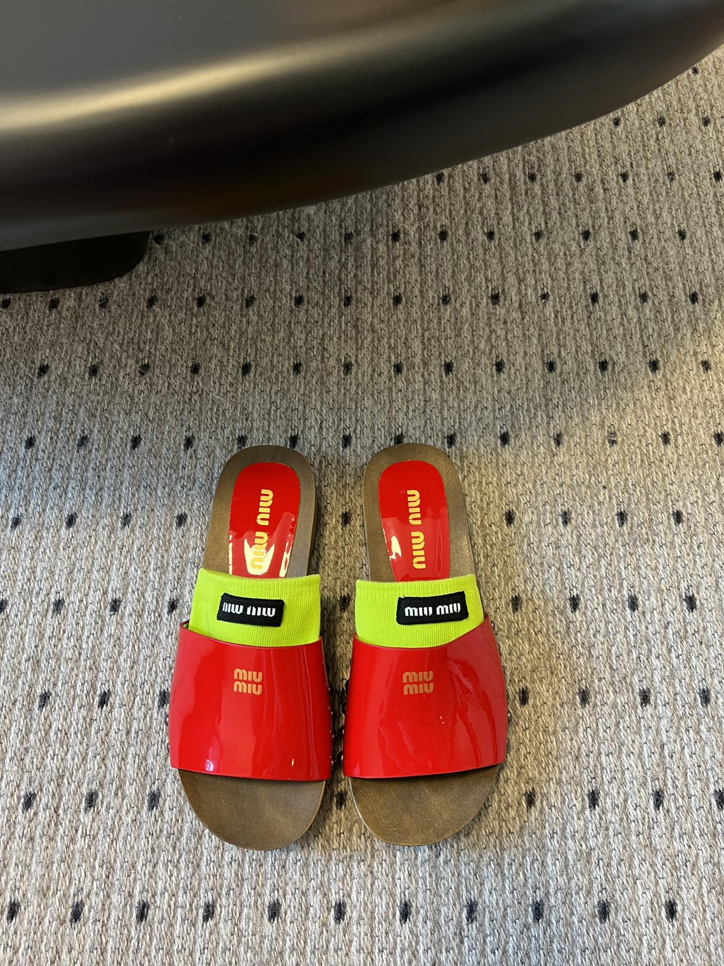NIGO MiuMiu Women's Summer Solid Color Suede Patent Leather Round Head Set Foot Clogs Slippers Sandals Shoes #nigo75599