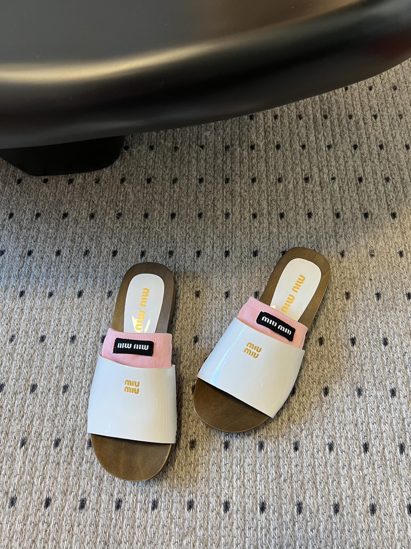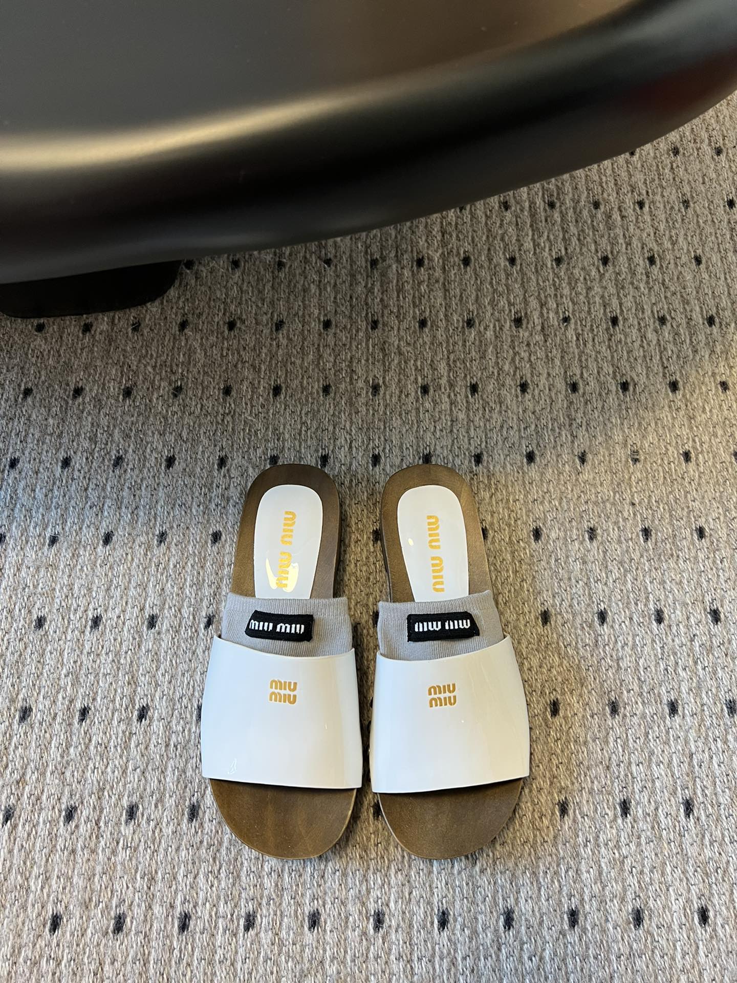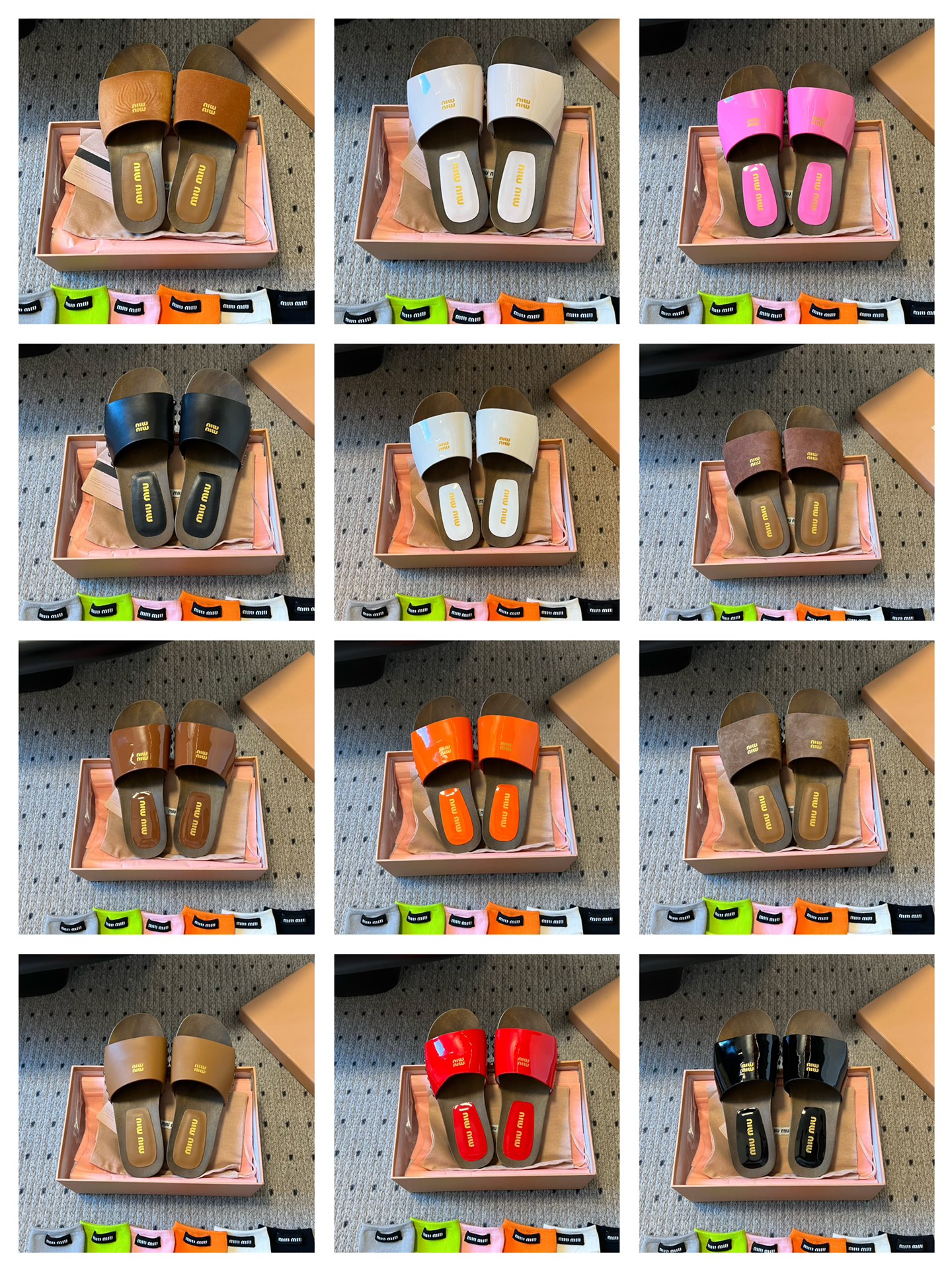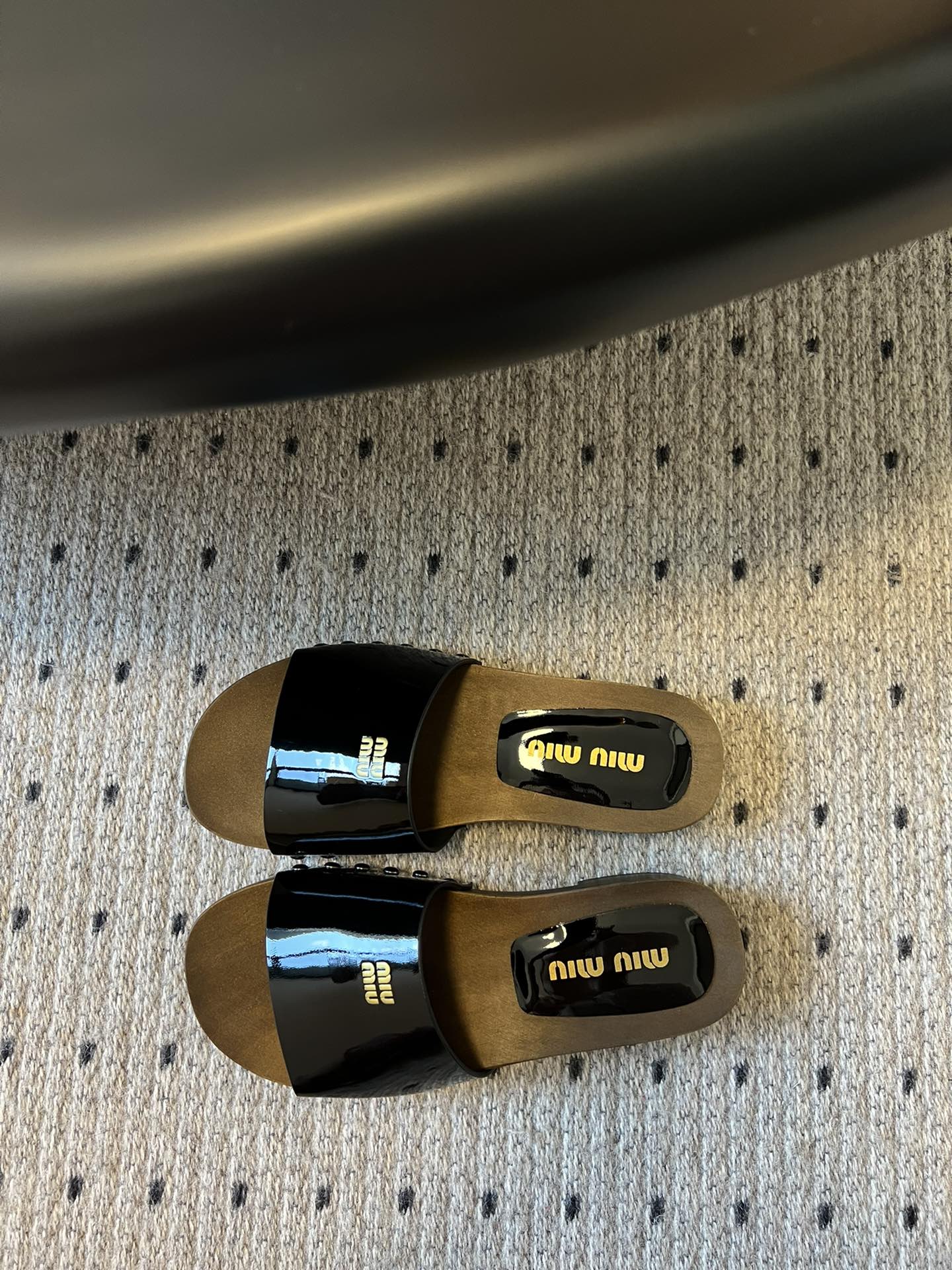 NIGO MiuMiu Women's Summer Solid Color Suede Patent Leather Round Head Set Foot Clogs Slippers Sandals Shoes #nigo75599