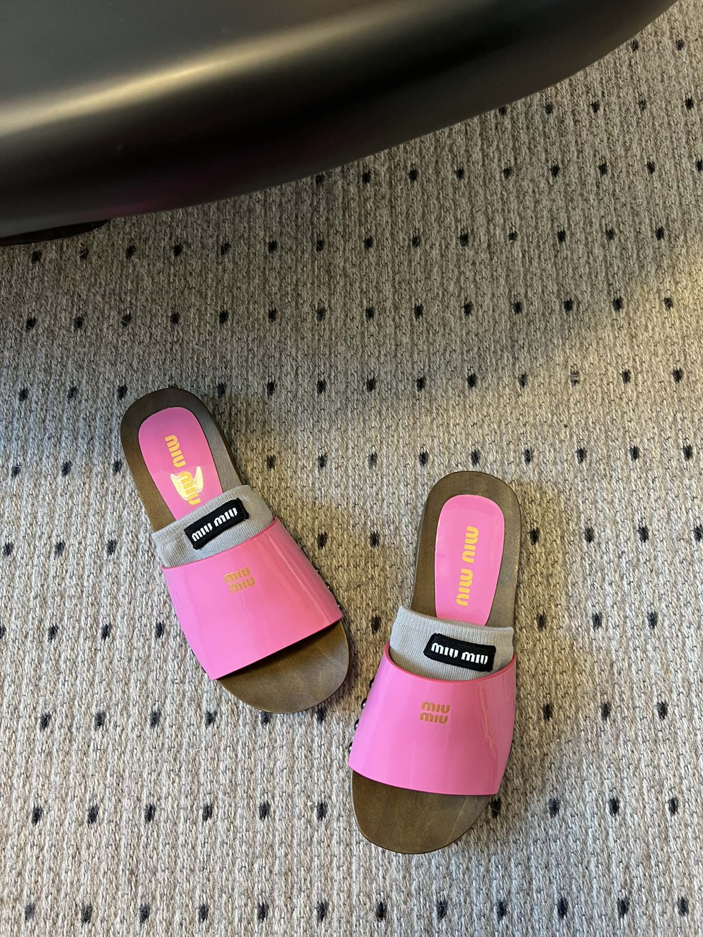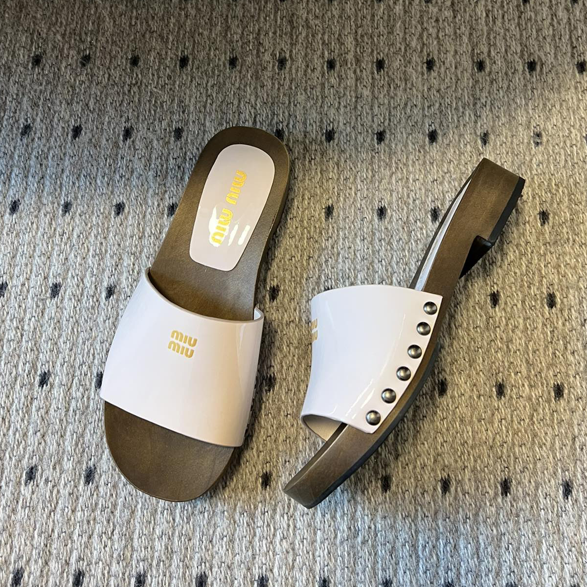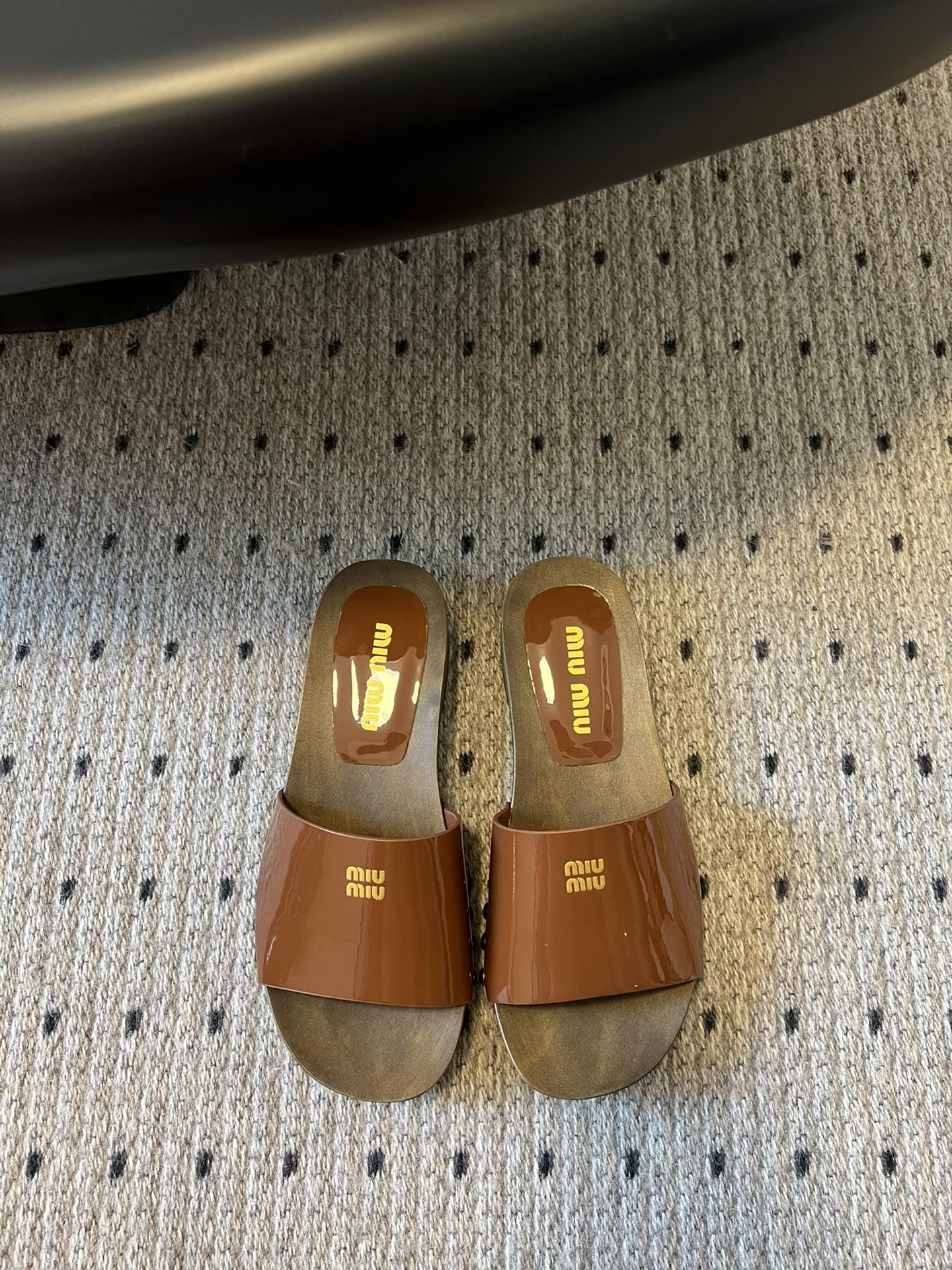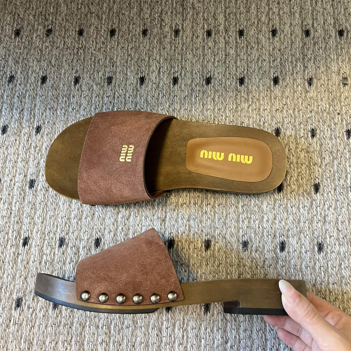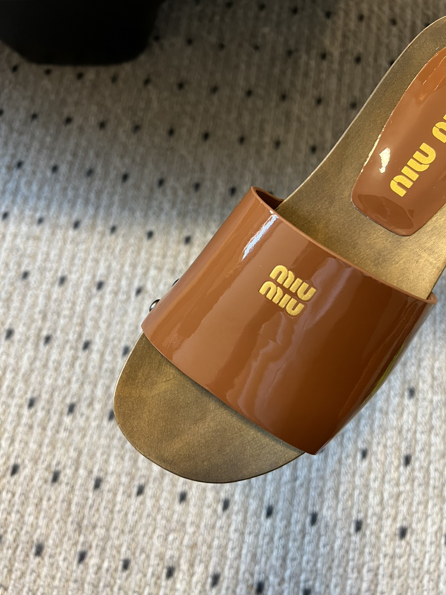 NIGO MiuMiu Women's Summer Solid Color Suede Patent Leather Round Head Set Foot Clogs Slippers Sandals Shoes #nigo75599