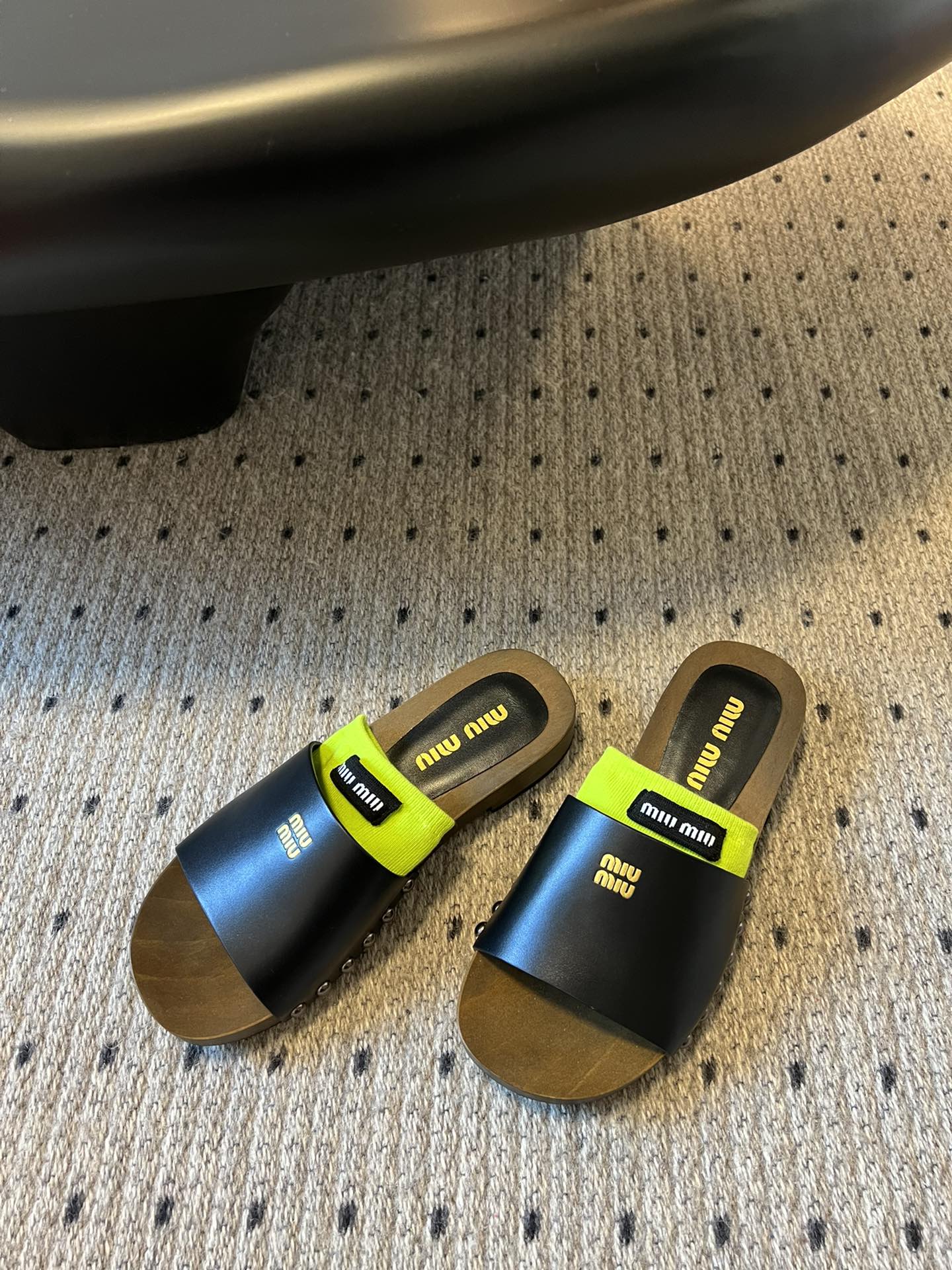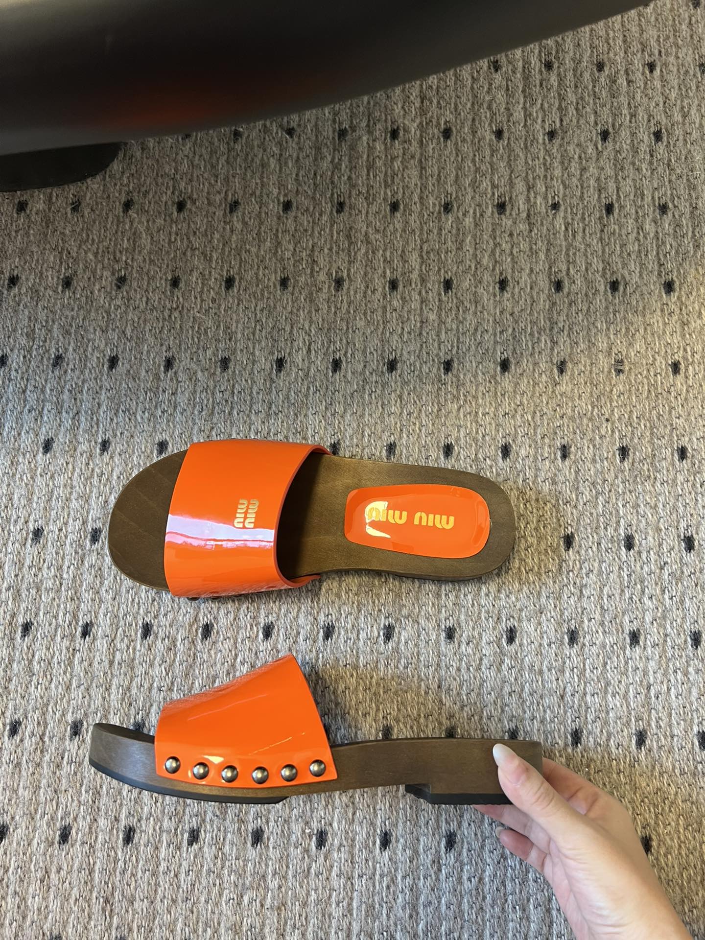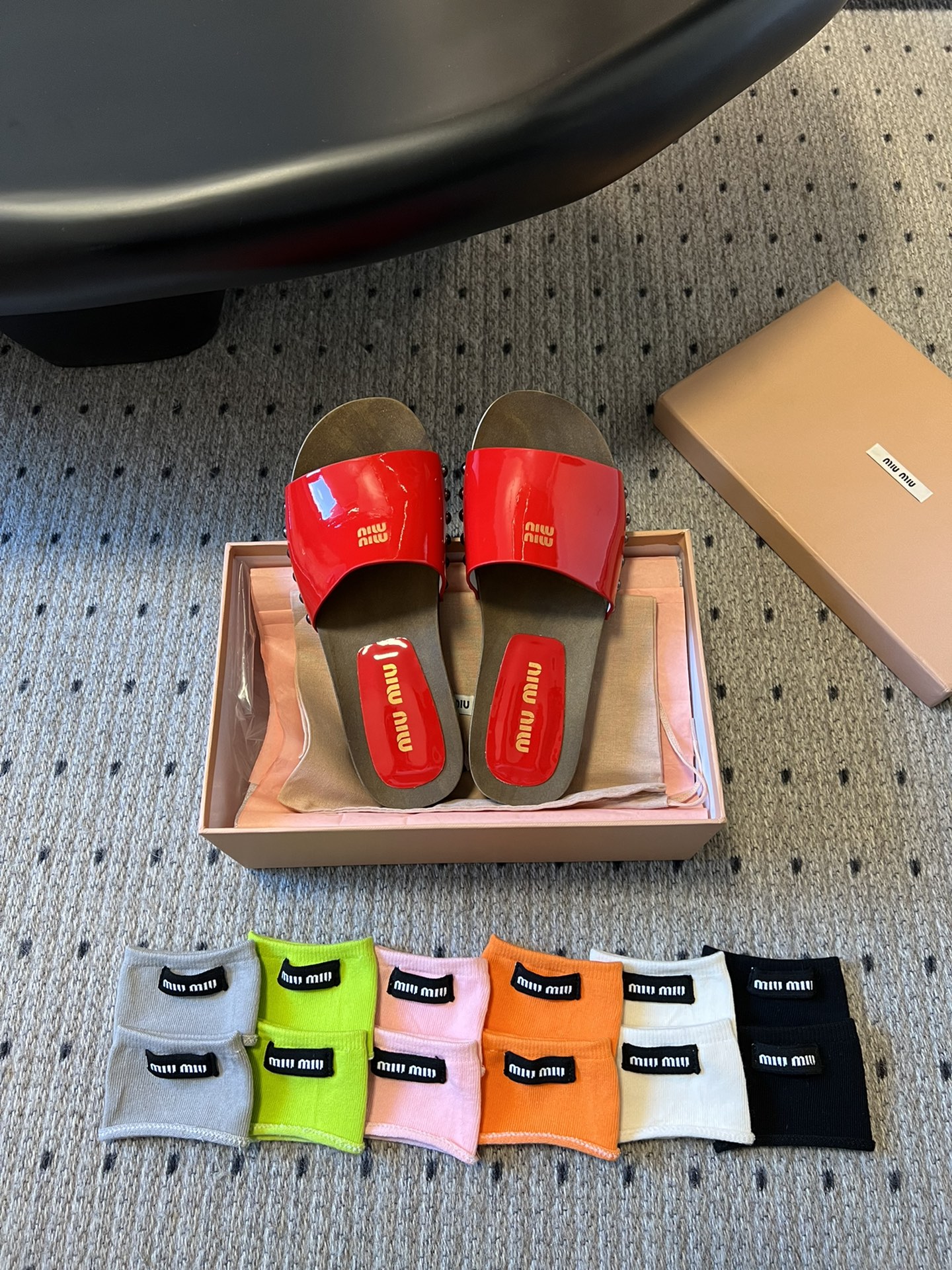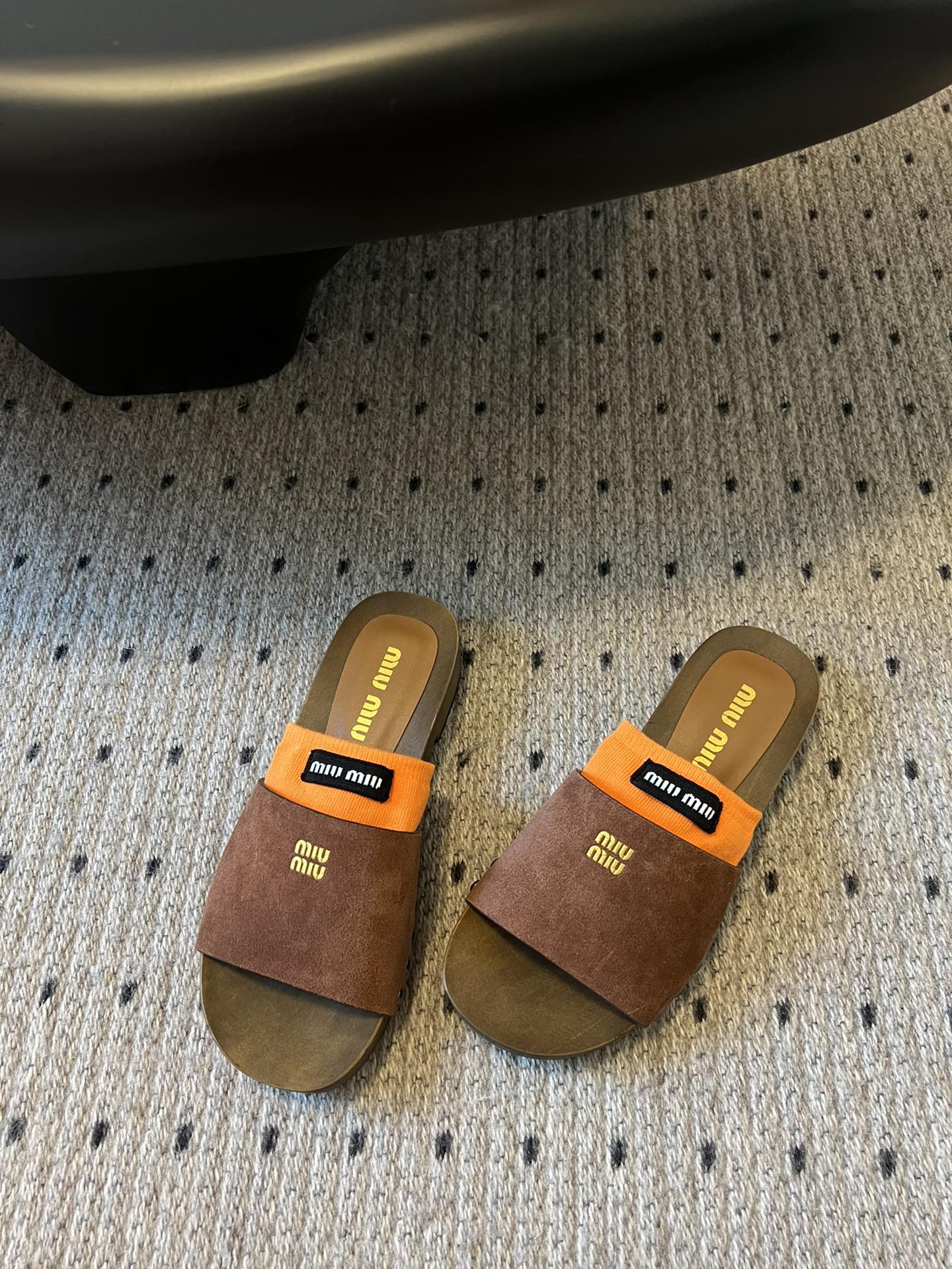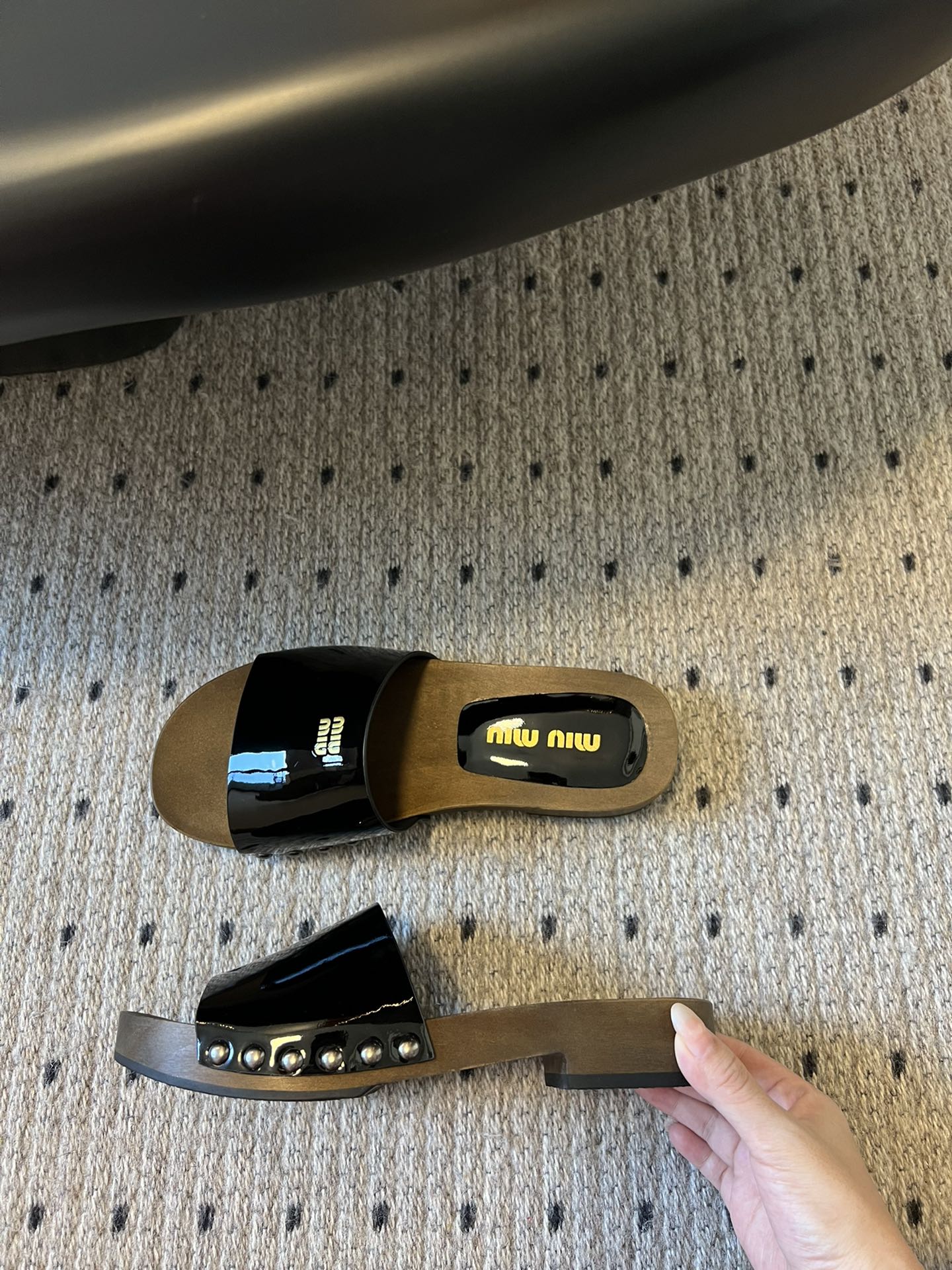 NIGO MiuMiu Women's Summer Solid Color Suede Patent Leather Round Head Set Foot Clogs Slippers Sandals Shoes #nigo75599