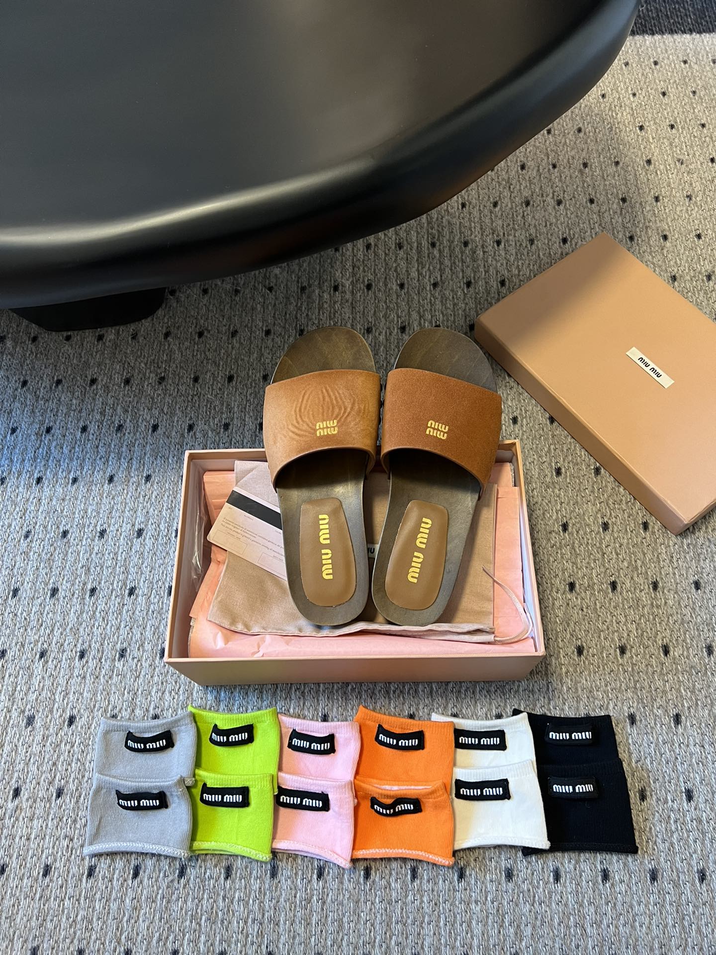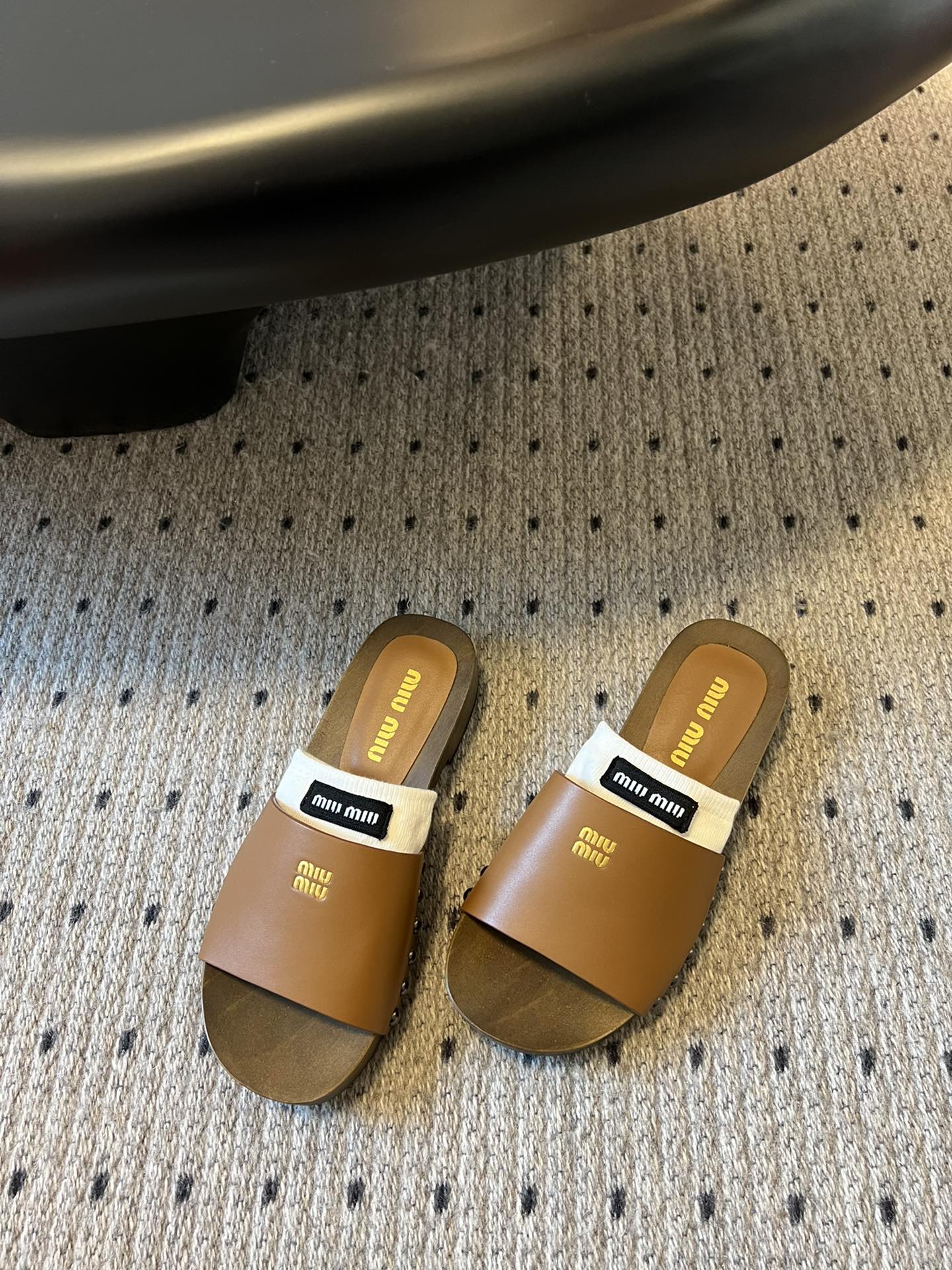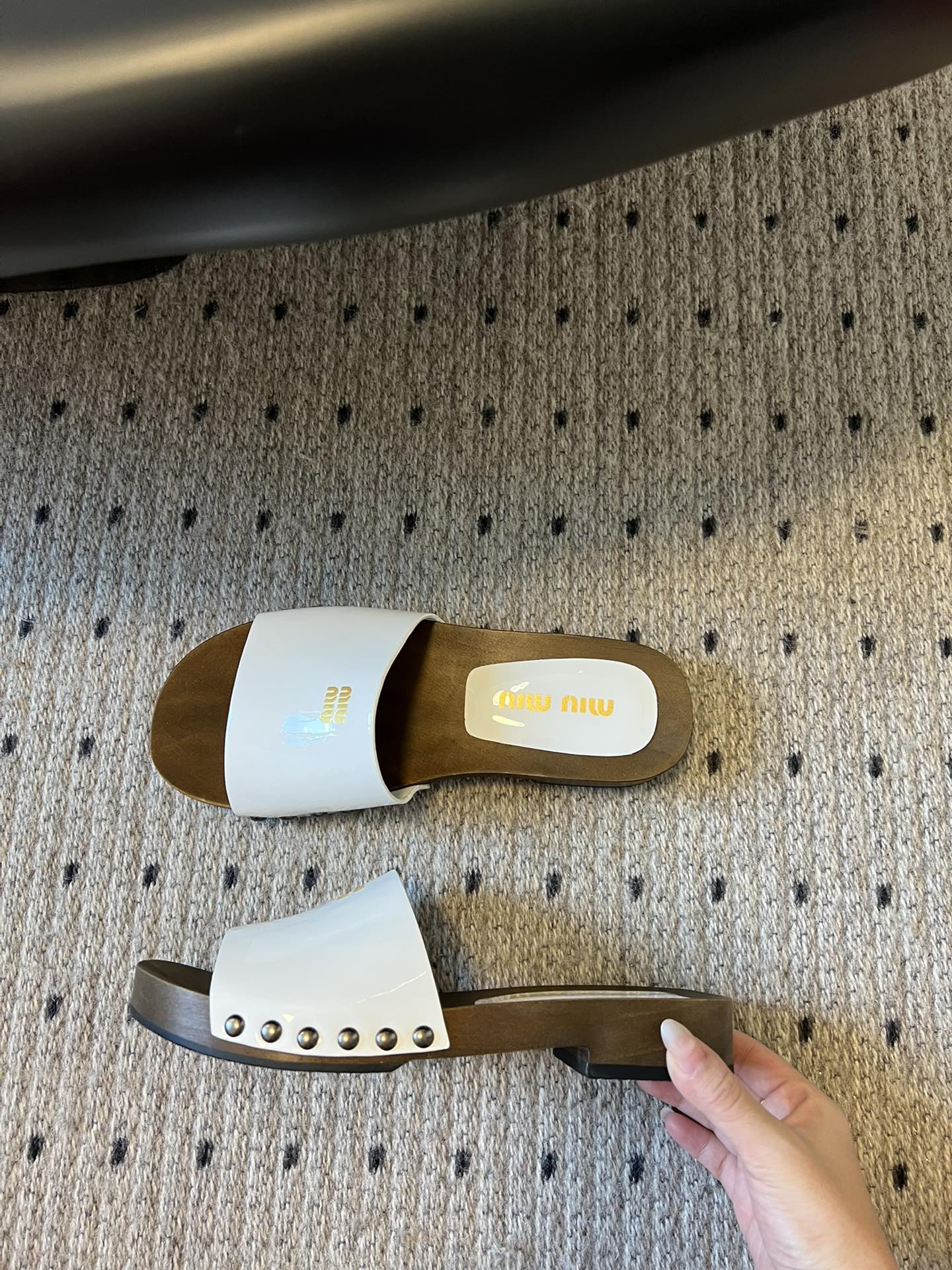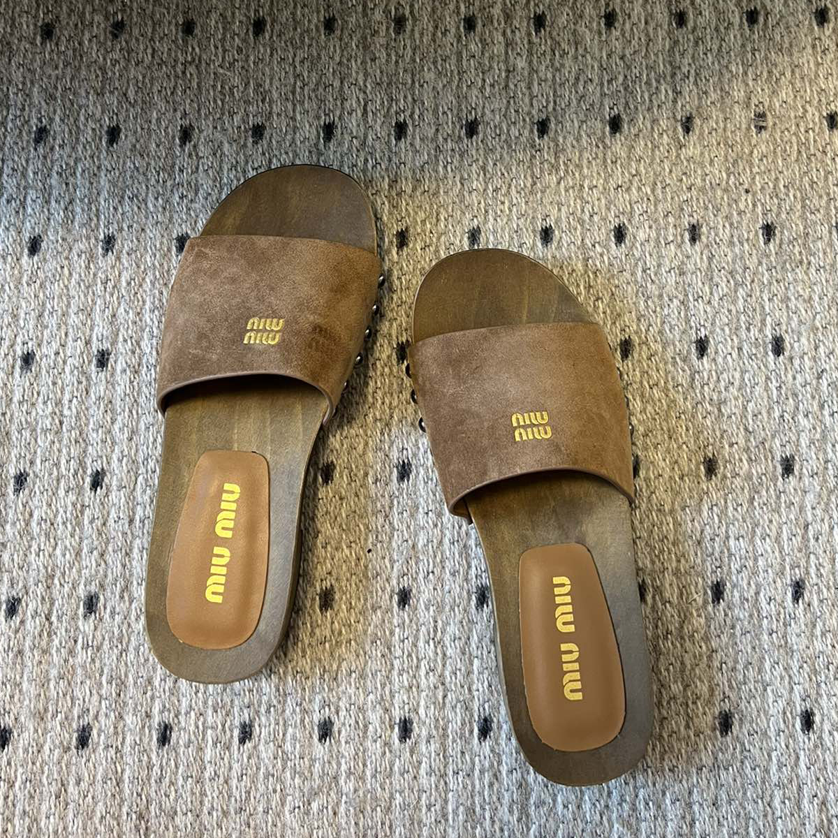 NIGO MiuMiu Women's Summer Solid Color Suede Patent Leather Round Head Set Foot Clogs Slippers Sandals Shoes #nigo75599
