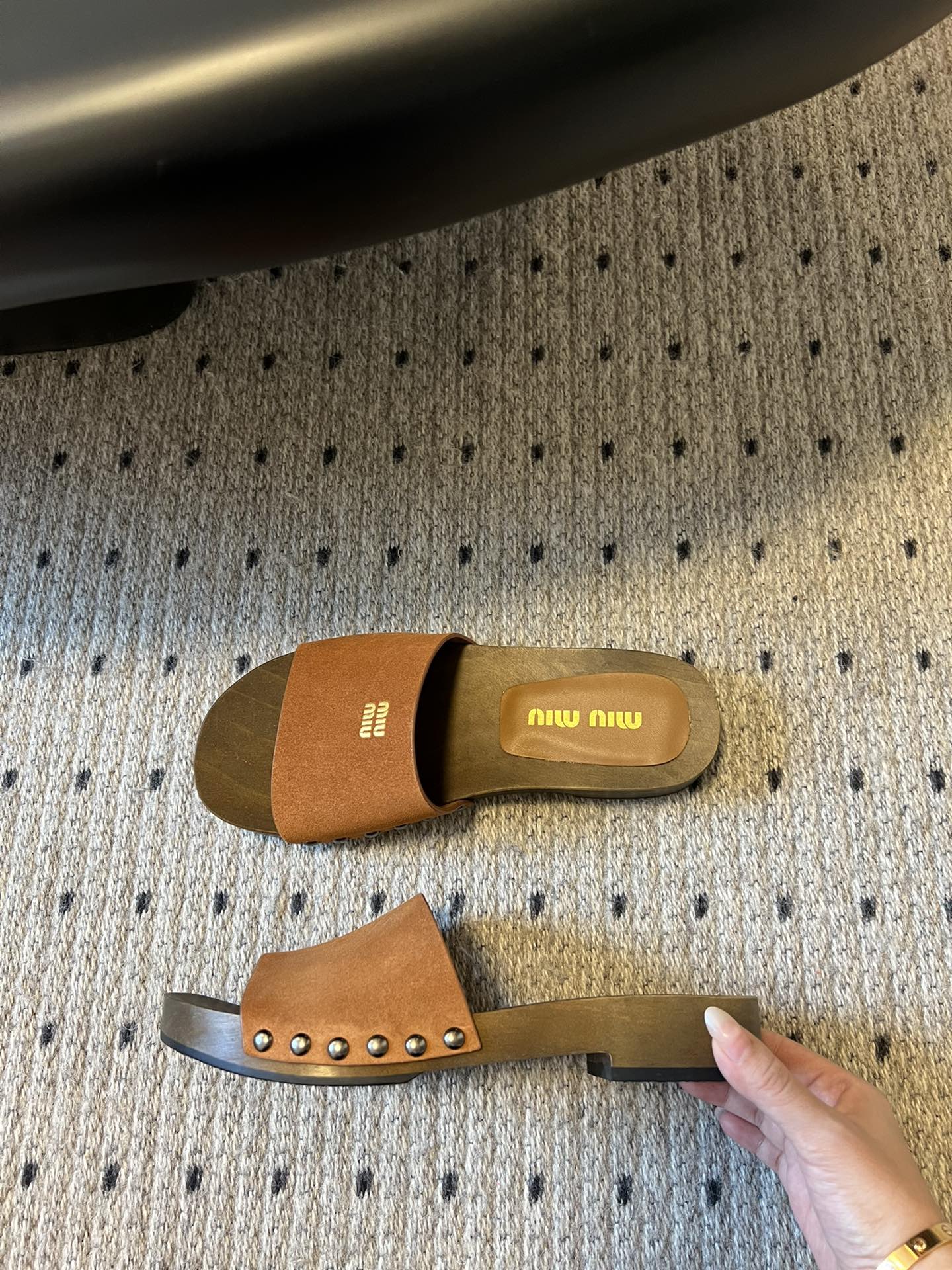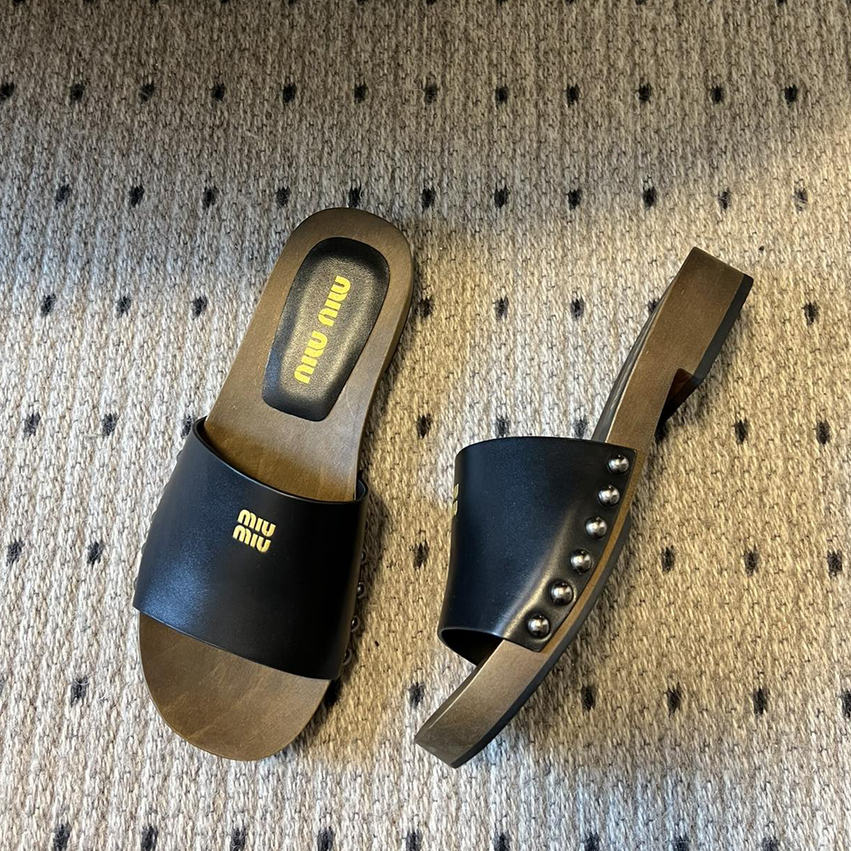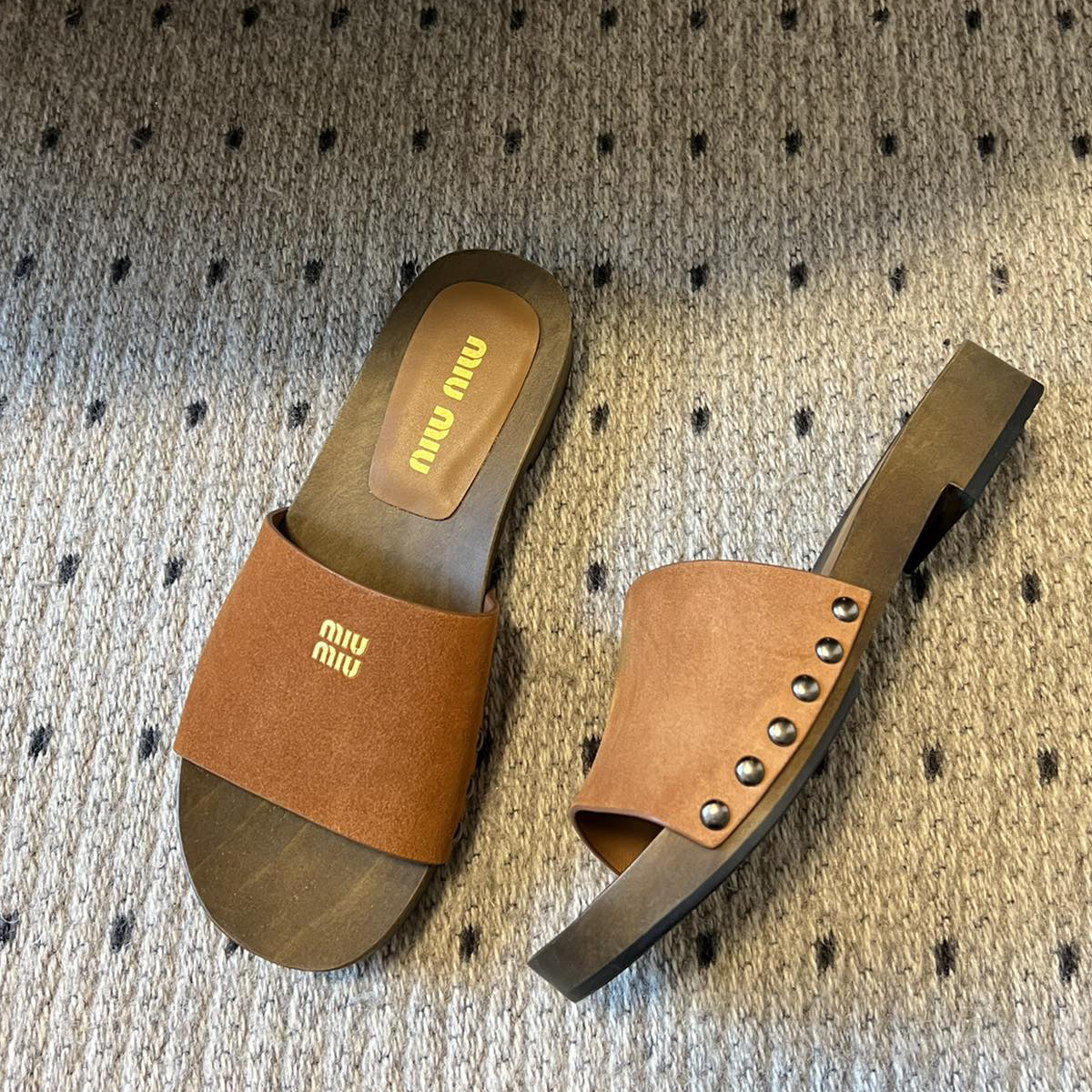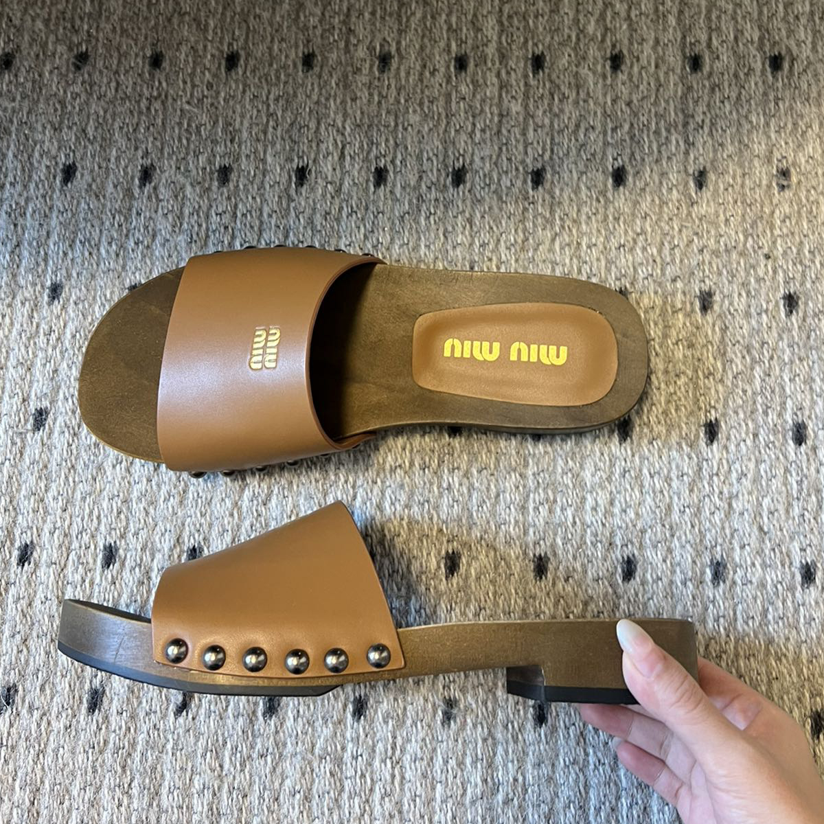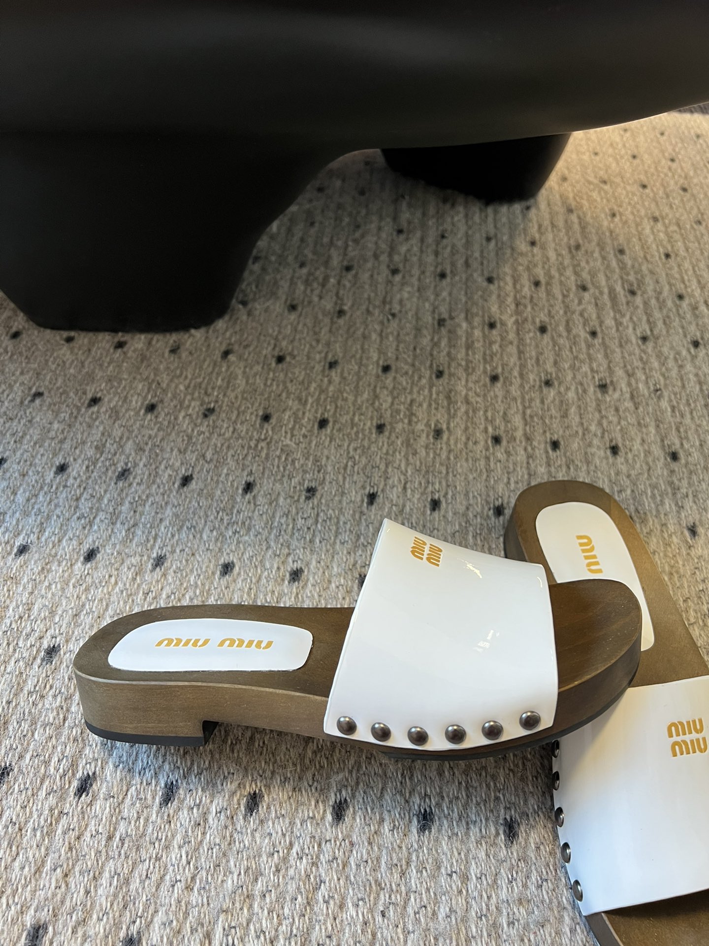NIGO MiuMiu Women's Summer Solid Color Suede Patent Leather Round Head Set Foot Clogs Slippers Sandals Shoes #nigo75599