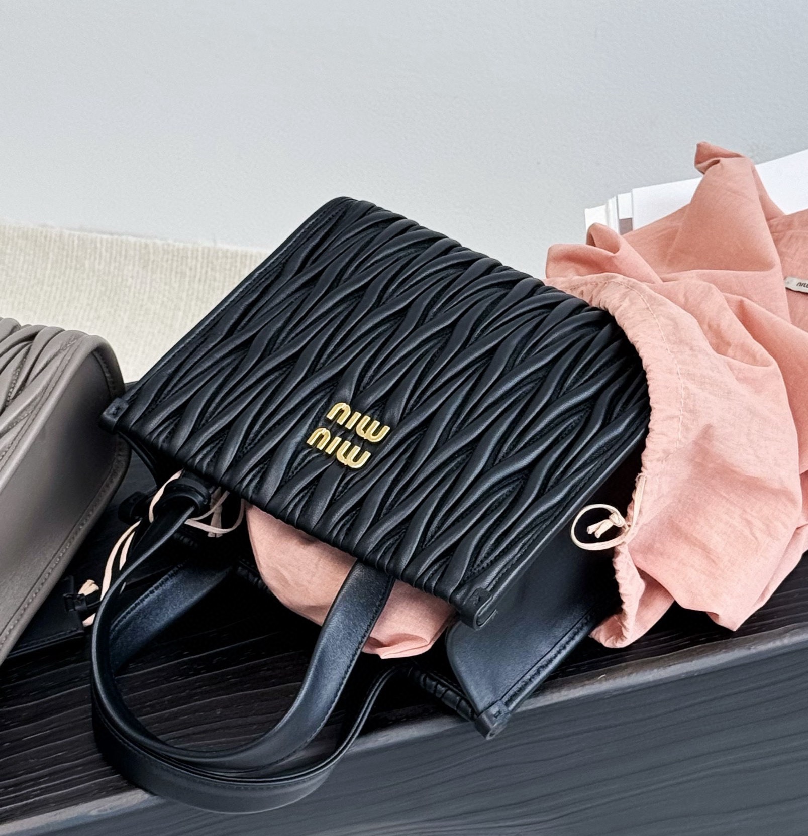NIGO MiuMiu Women Solid Color Metal Engraved Logo Detachable Adjustable Leather Shoulder Strap Sheepskin Single Shoulder Slanting Handbag Bag Bags #nigo99851