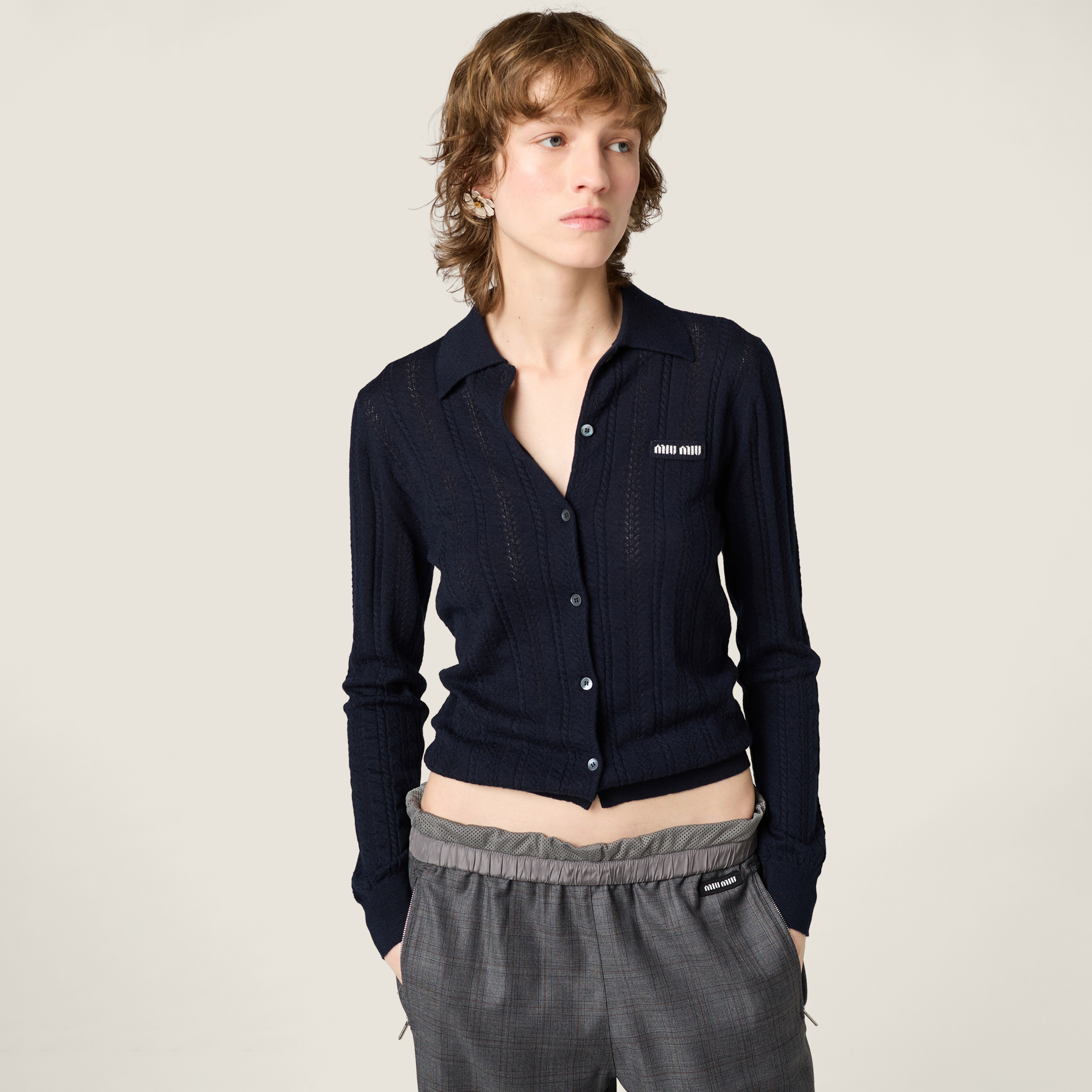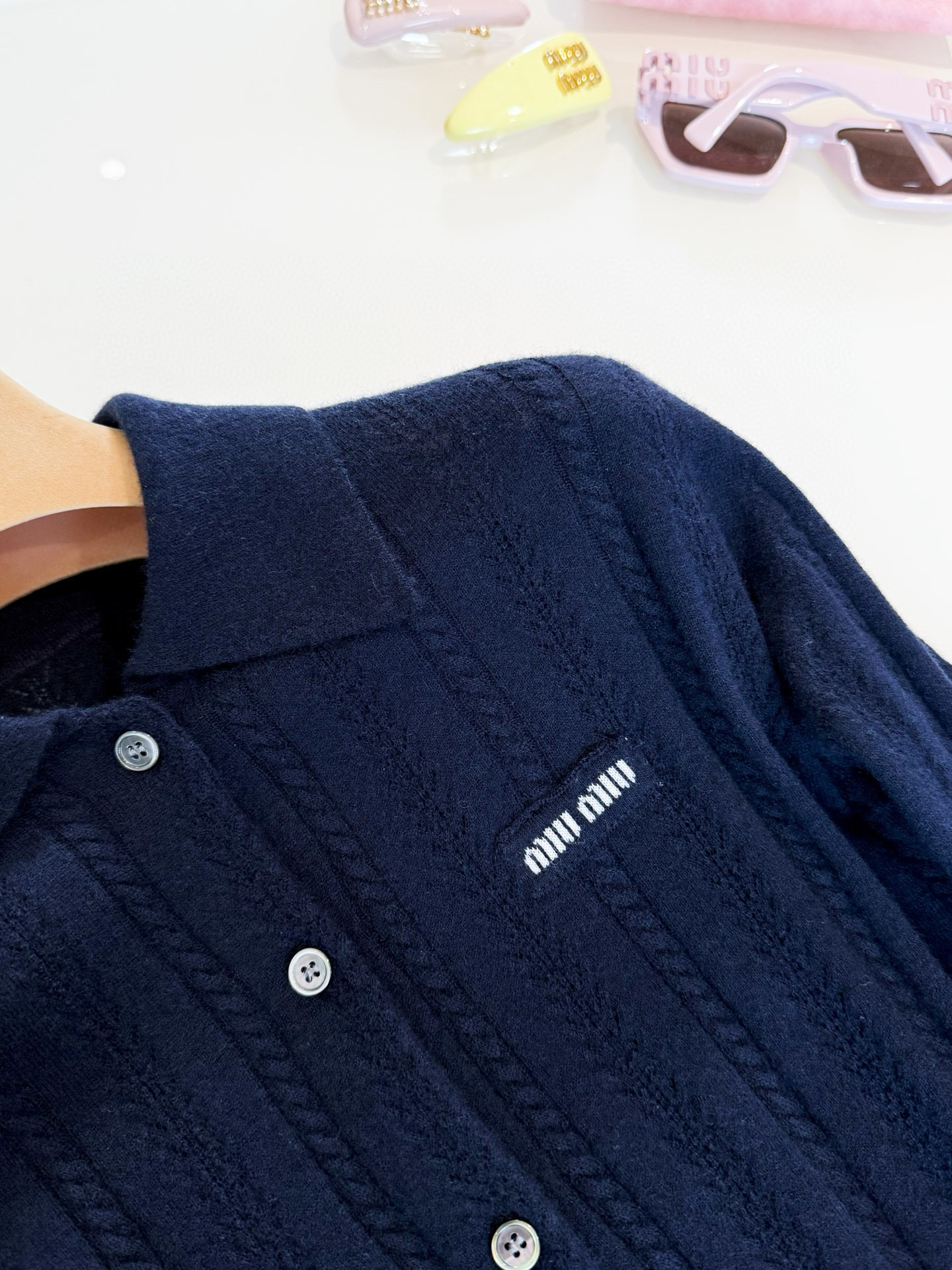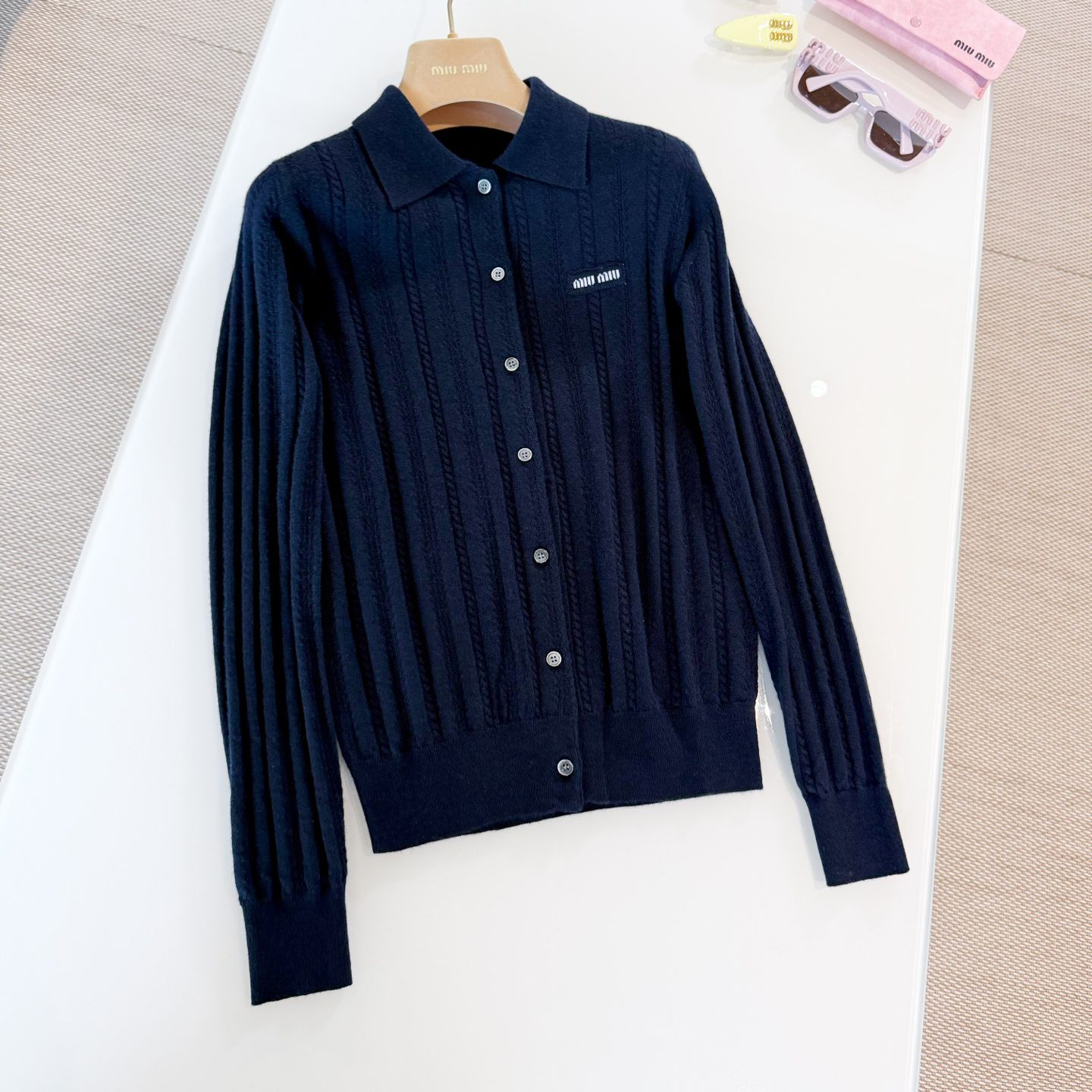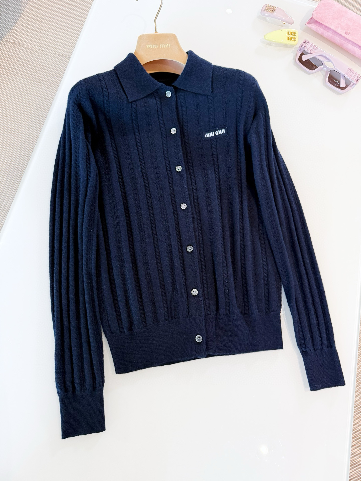 NIGO MiuMiuWomen's Fall/winter Fashion Casual Solid Color Lapel Embroidered Vertical Button Up Long Sleeve Cardigan #nigo79196