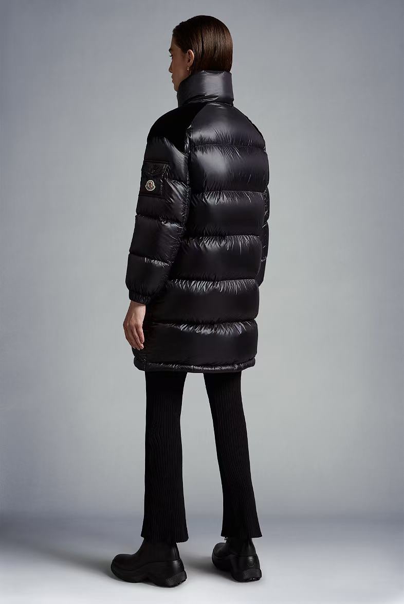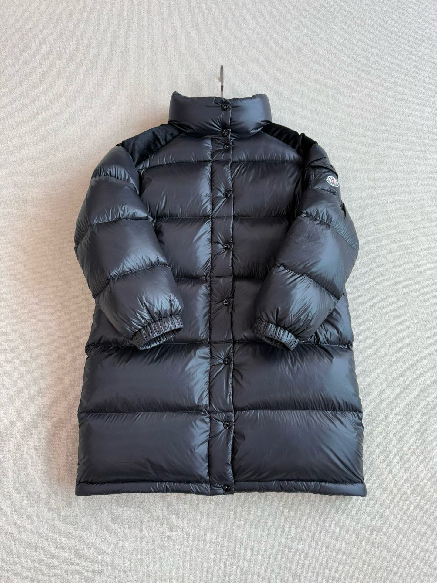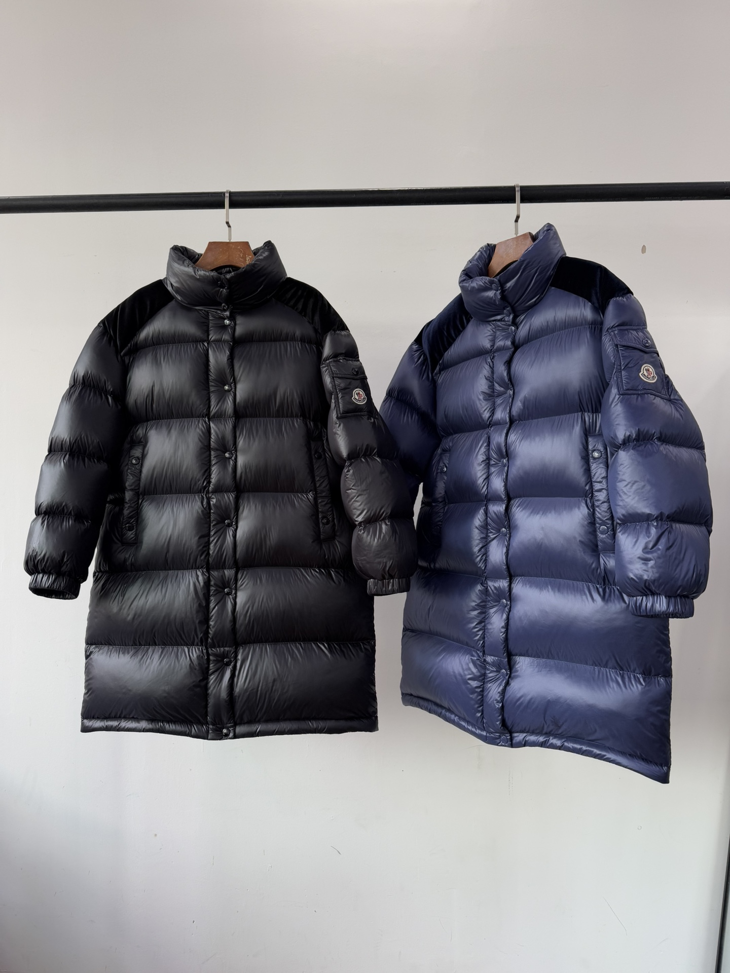 NIGO Moncler Women's Autumn and Winter Solid Color Splicing Fabric Standing Collar Long Zipper Puffer Down Long Sleeve Jacket #nigo74525