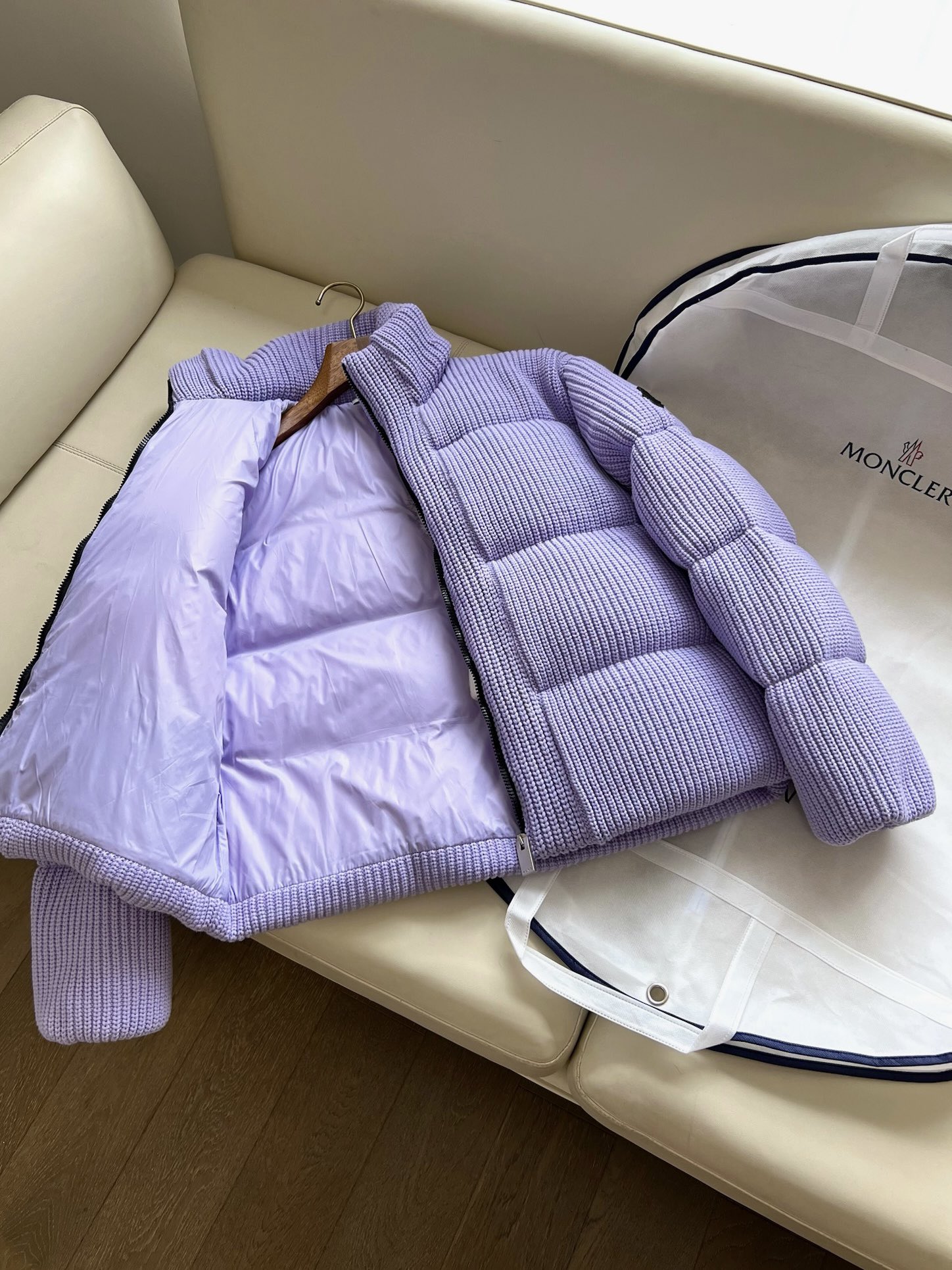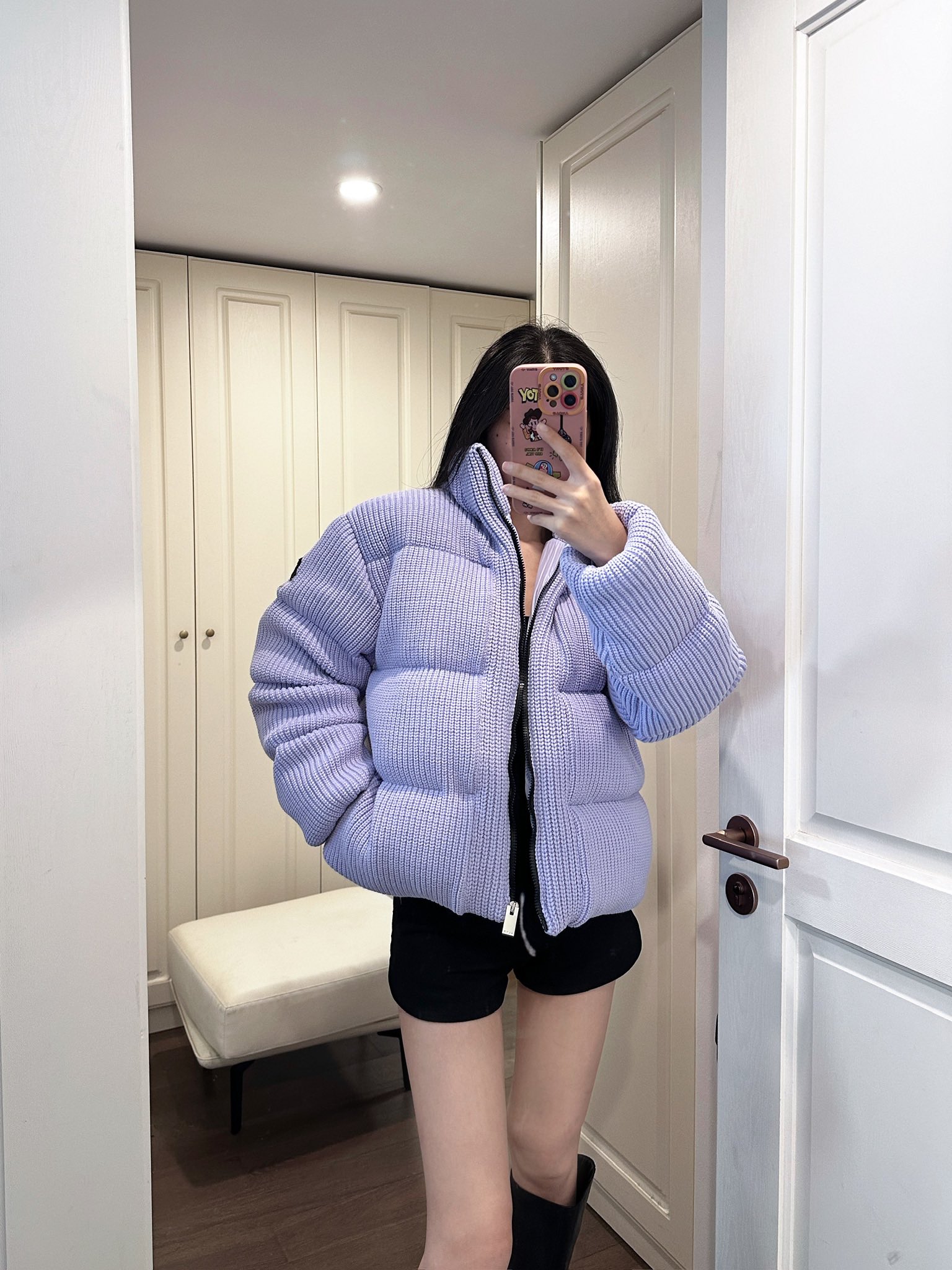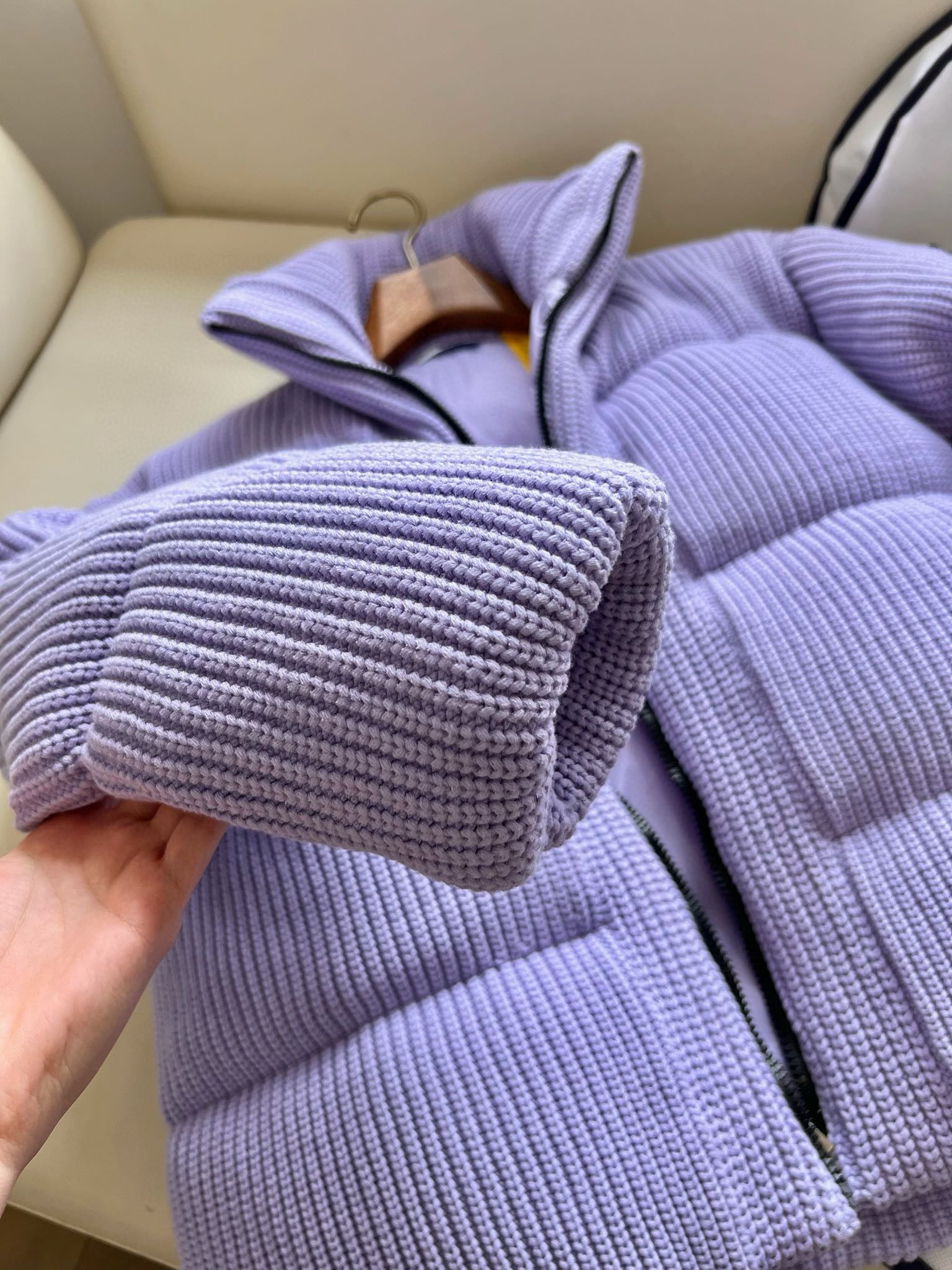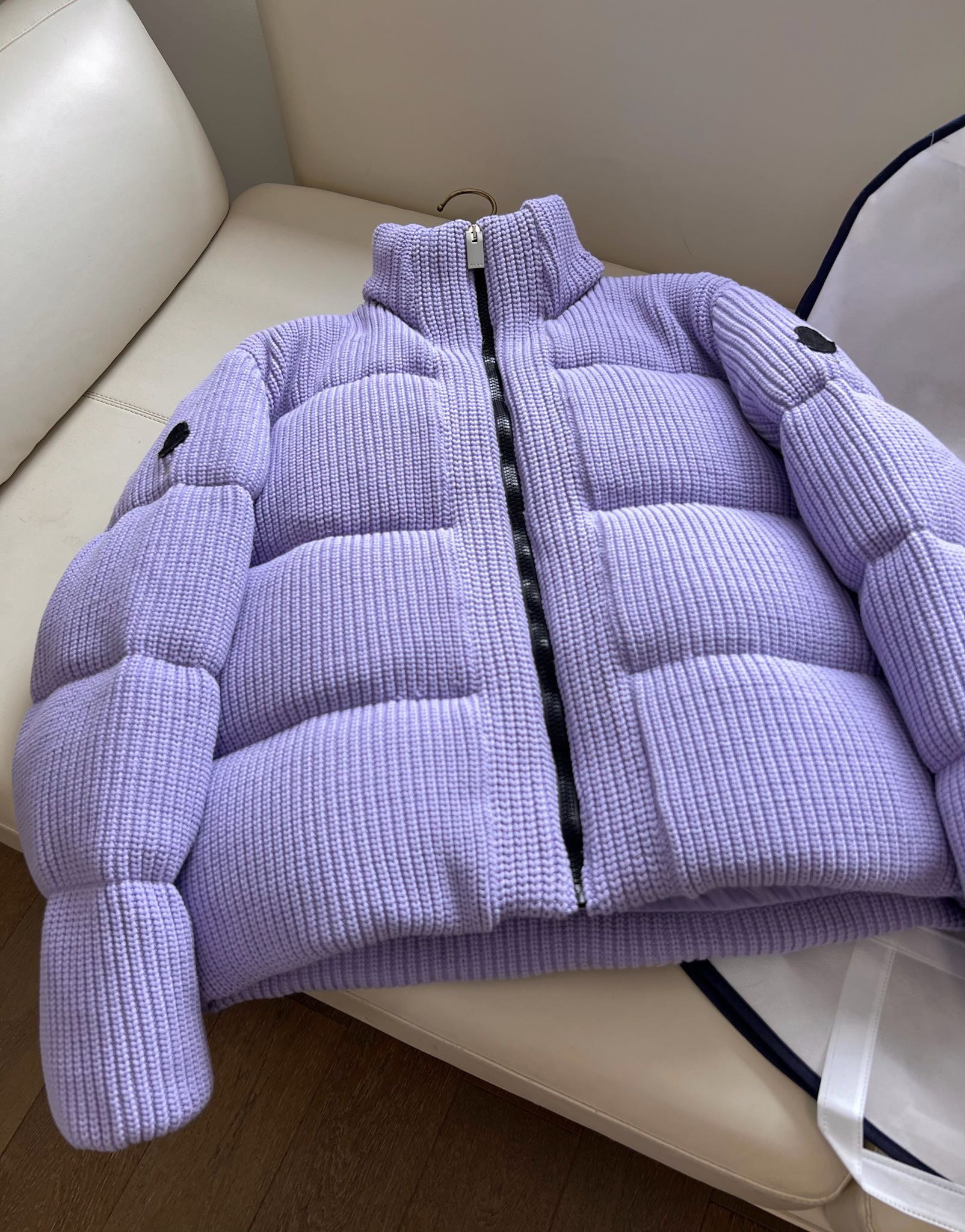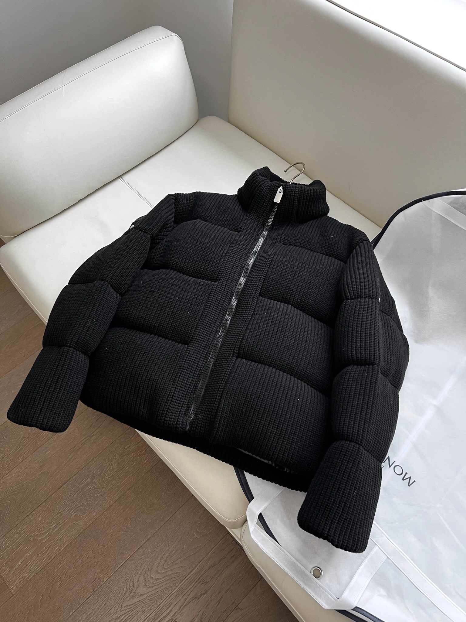 NIGO Moncler Women's Winter Solid Color Ribbed Knit Standing Collar Short Zipper Long Sleeve Puffer Down Jacket #nigo73423