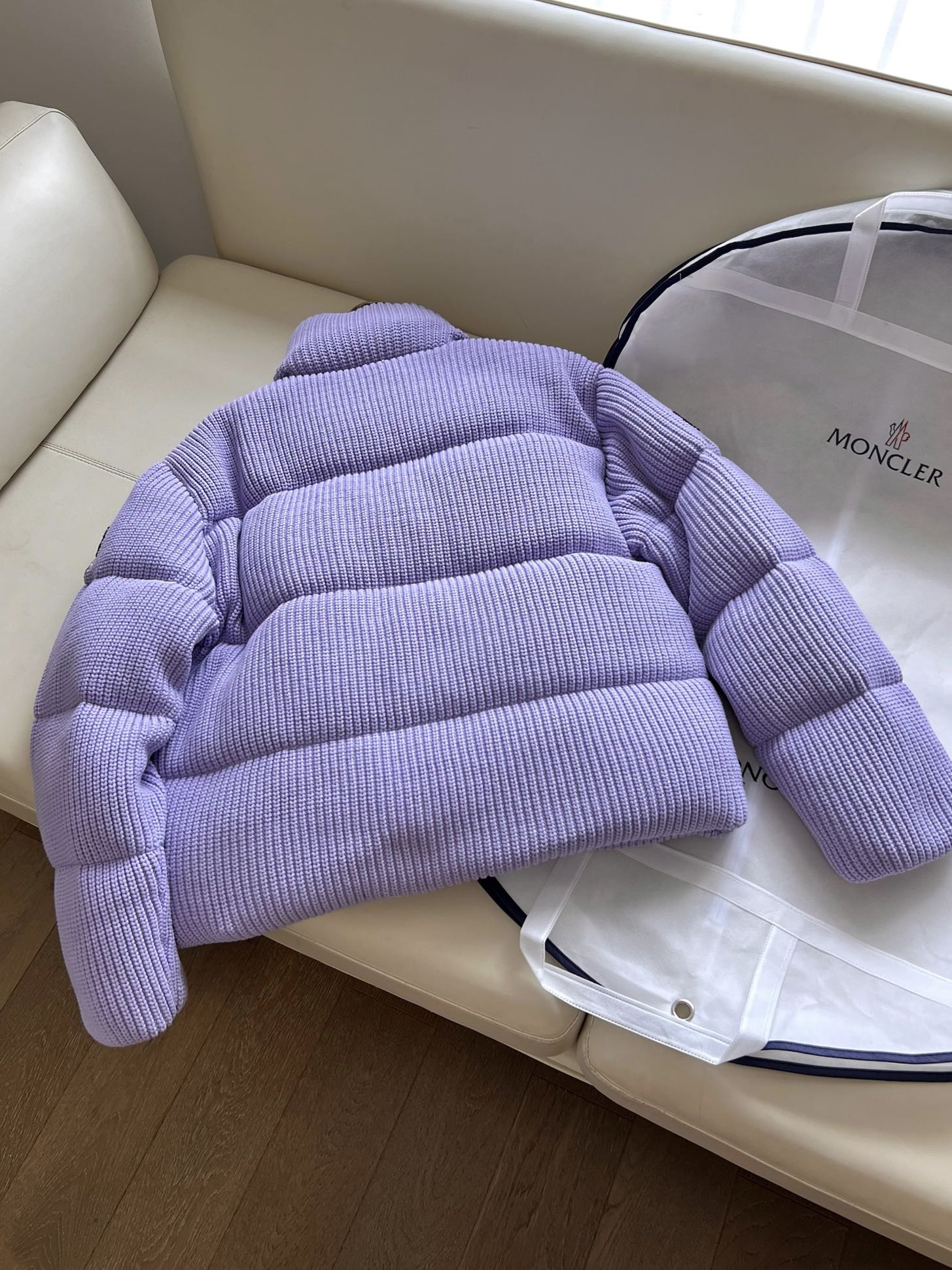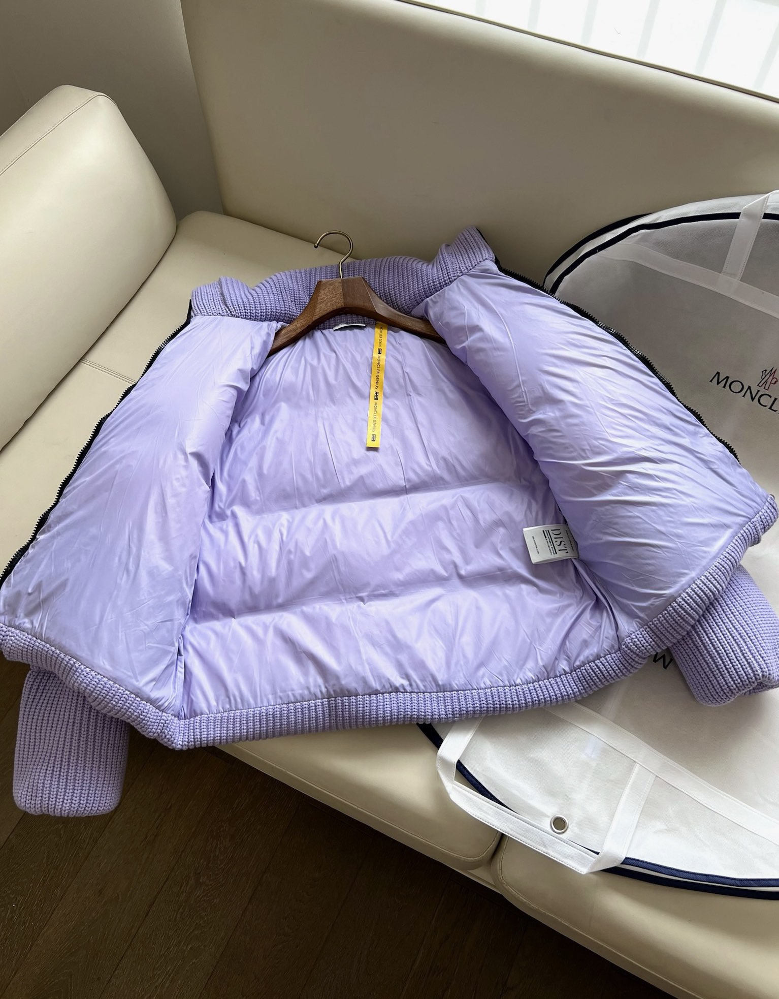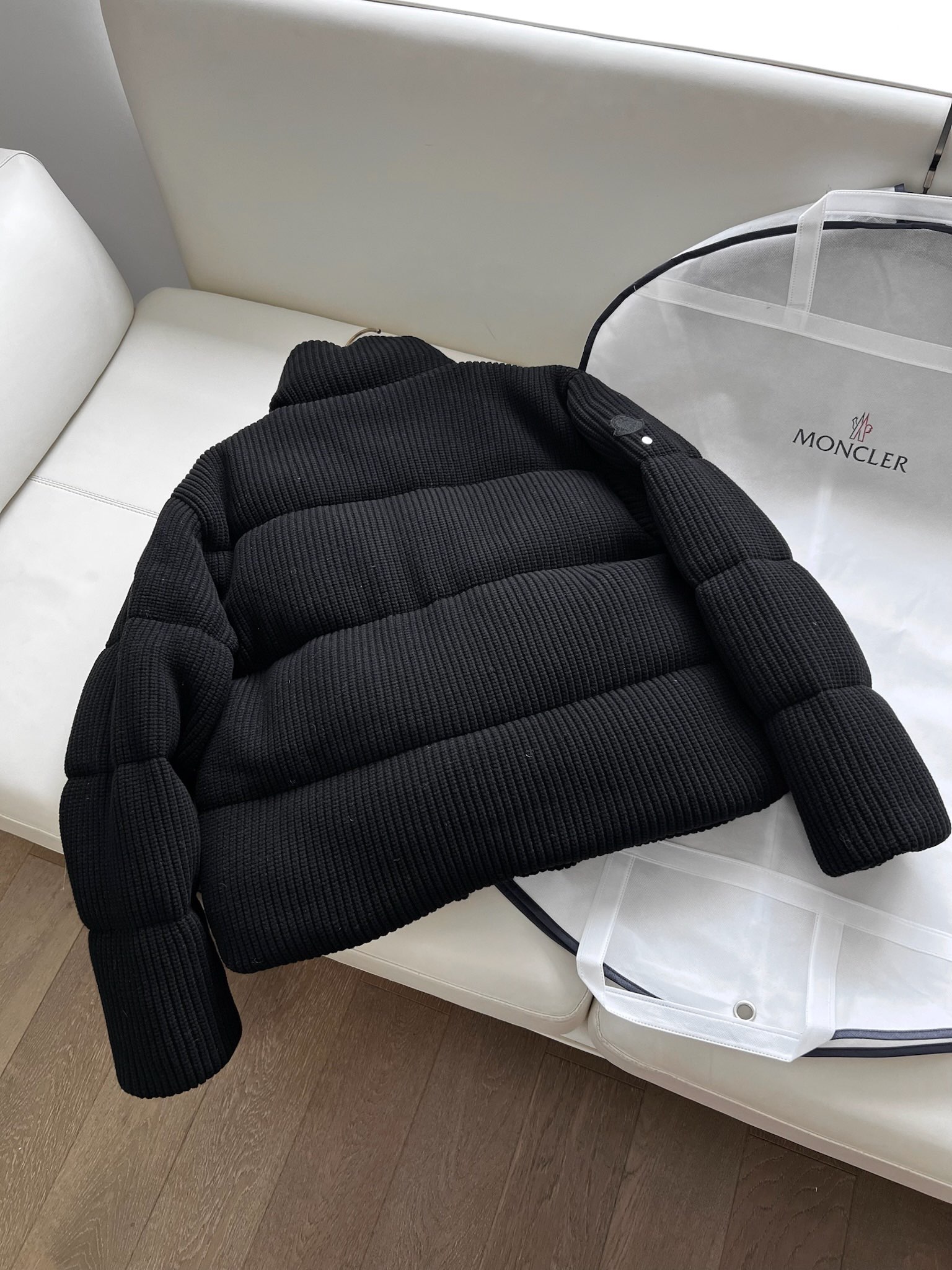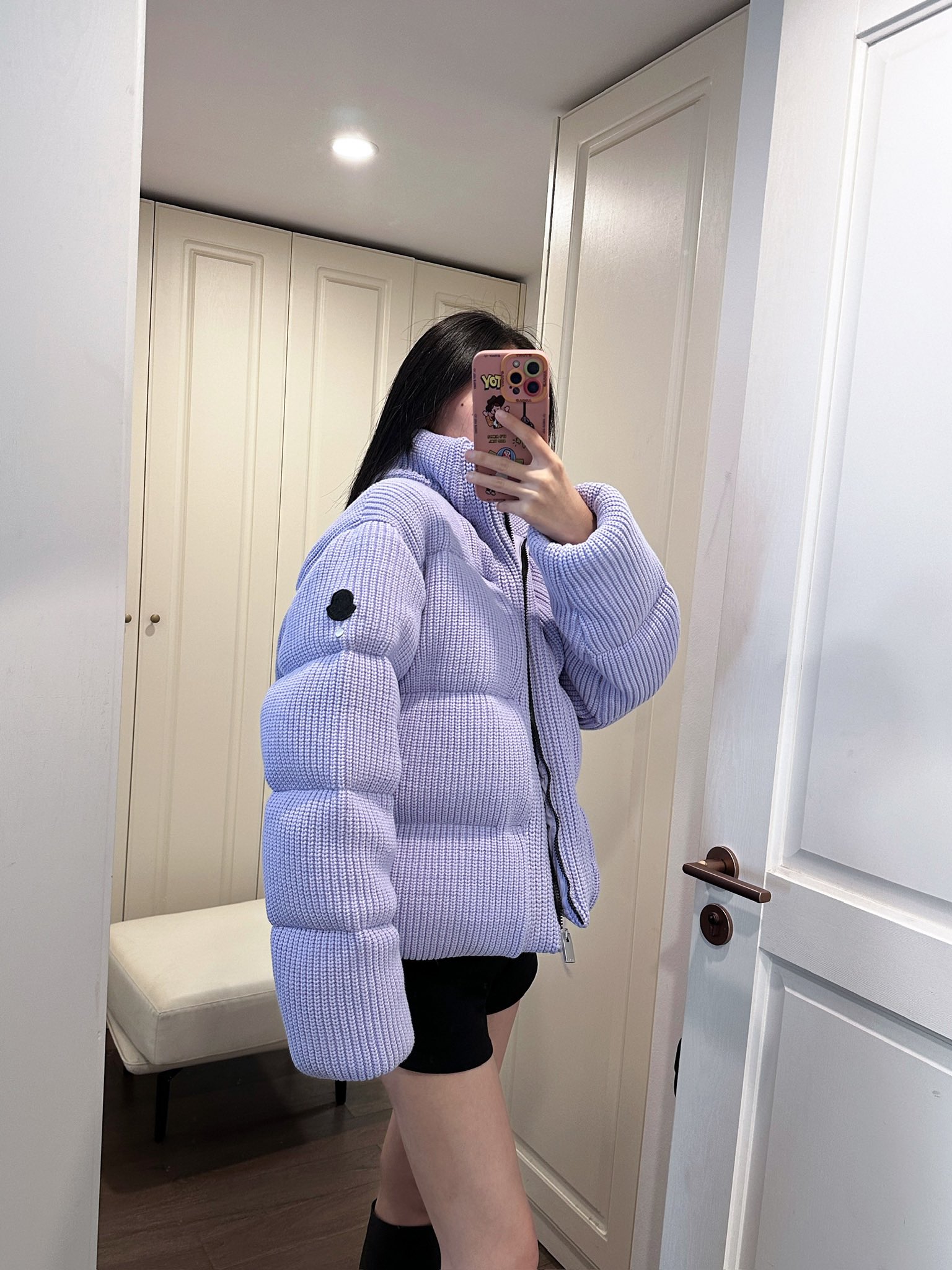NIGO Moncler Women's Winter Solid Color Ribbed Knit Standing Collar Short Zipper Long Sleeve Puffer Down Jacket #nigo73423