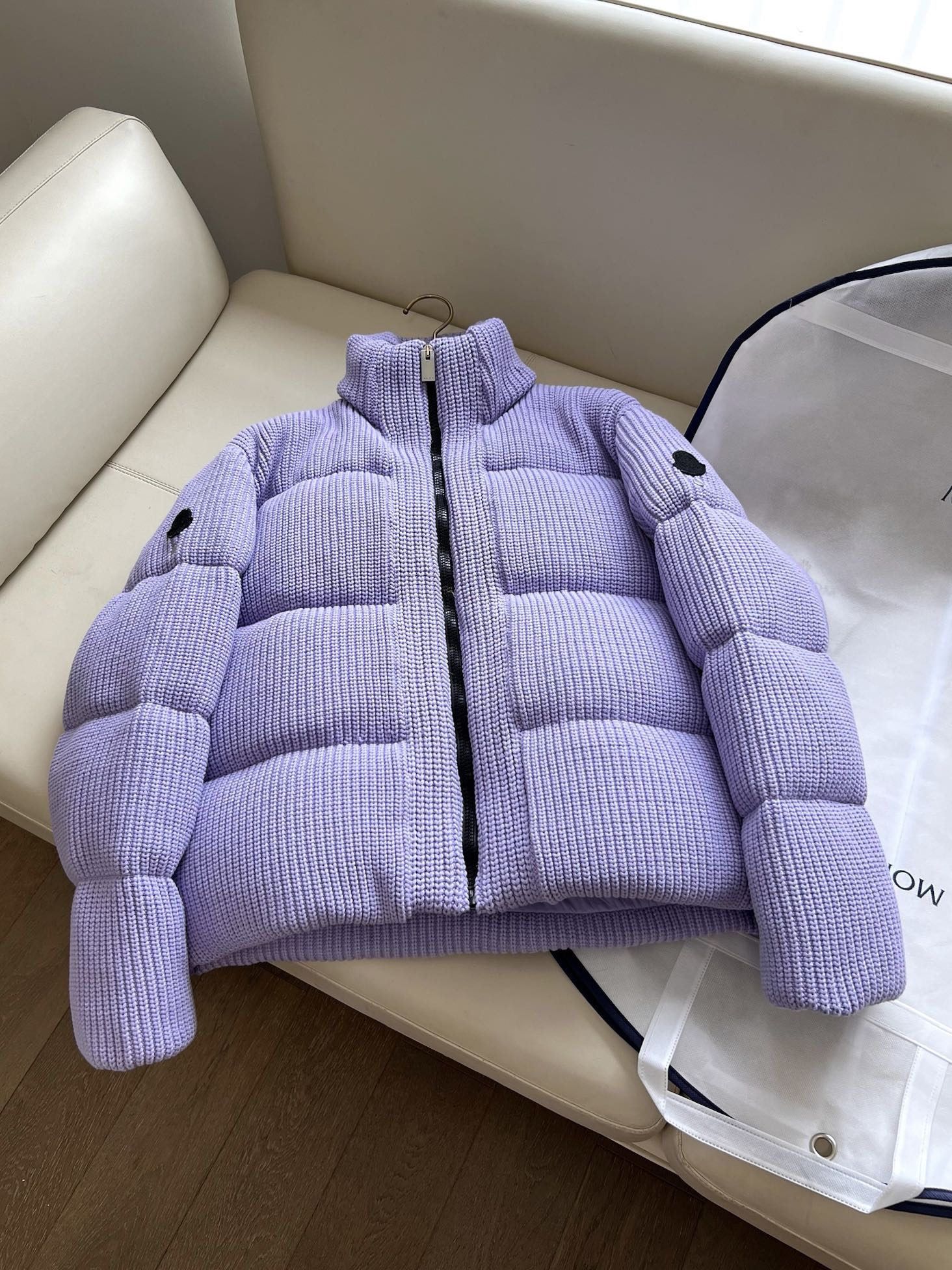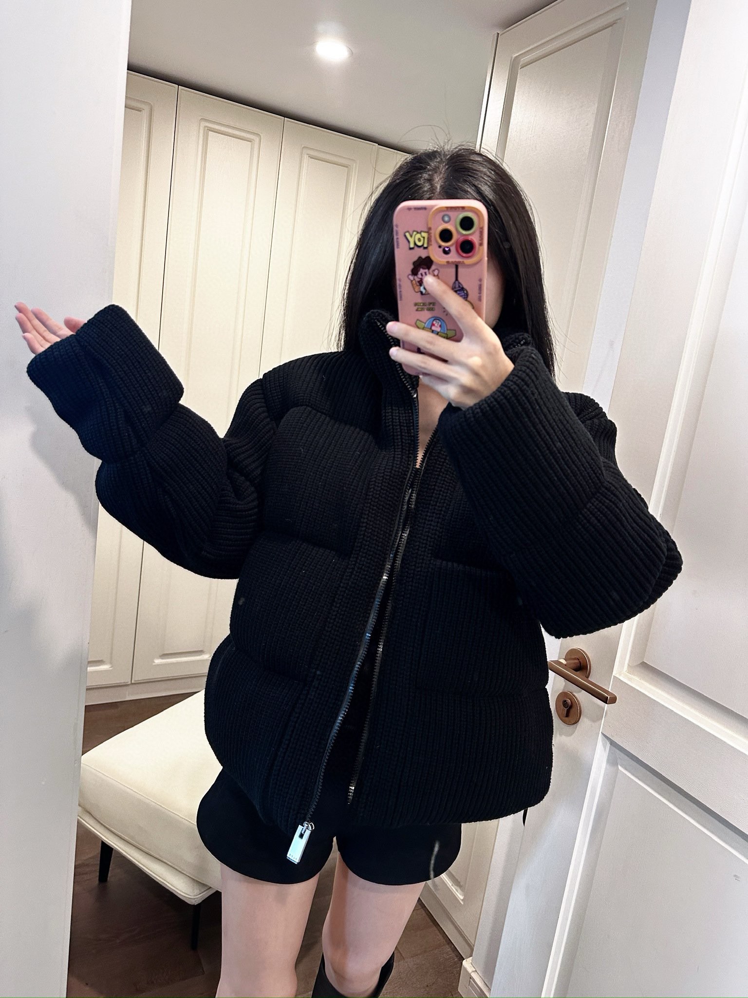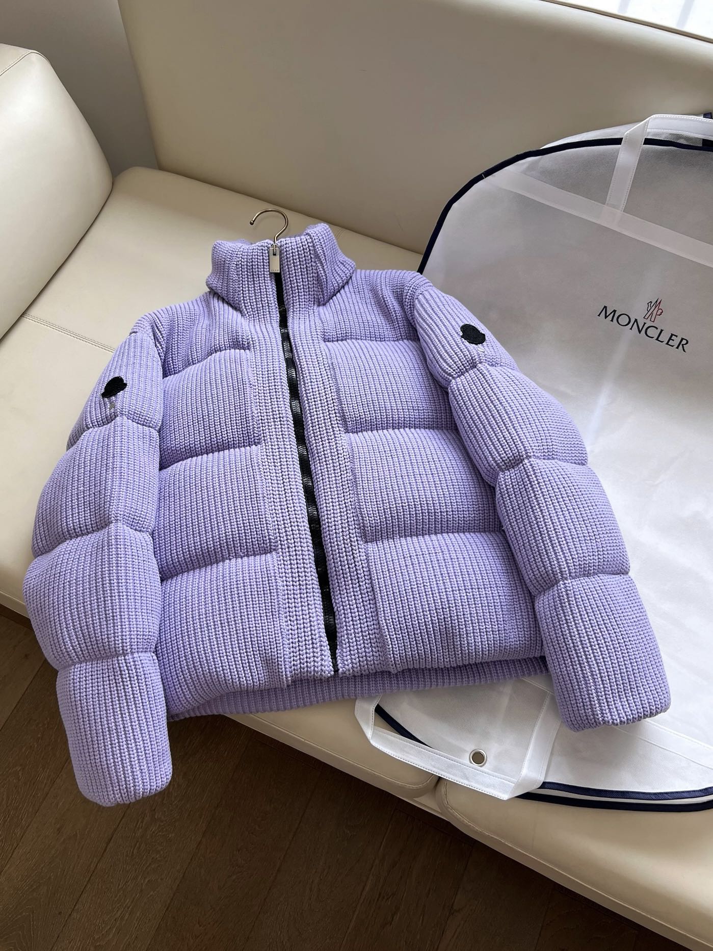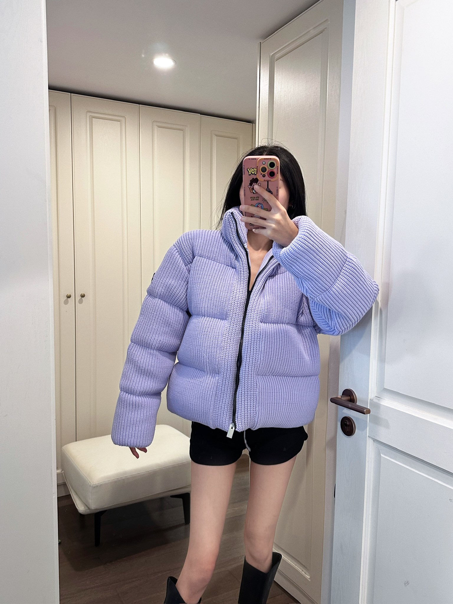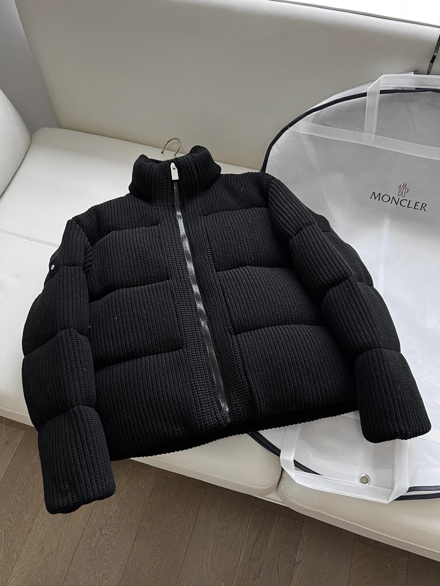 NIGO Moncler Women's Winter Solid Color Ribbed Knit Standing Collar Short Zipper Long Sleeve Puffer Down Jacket #nigo73423