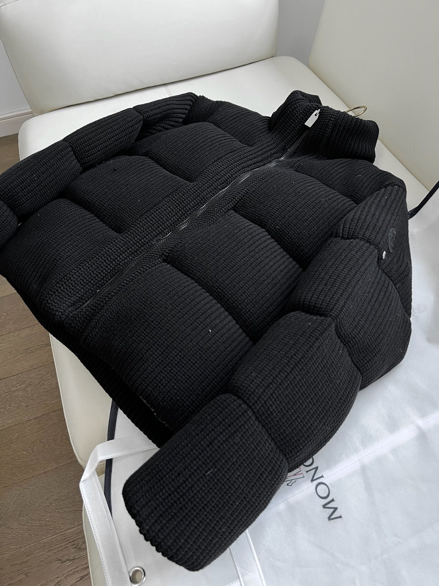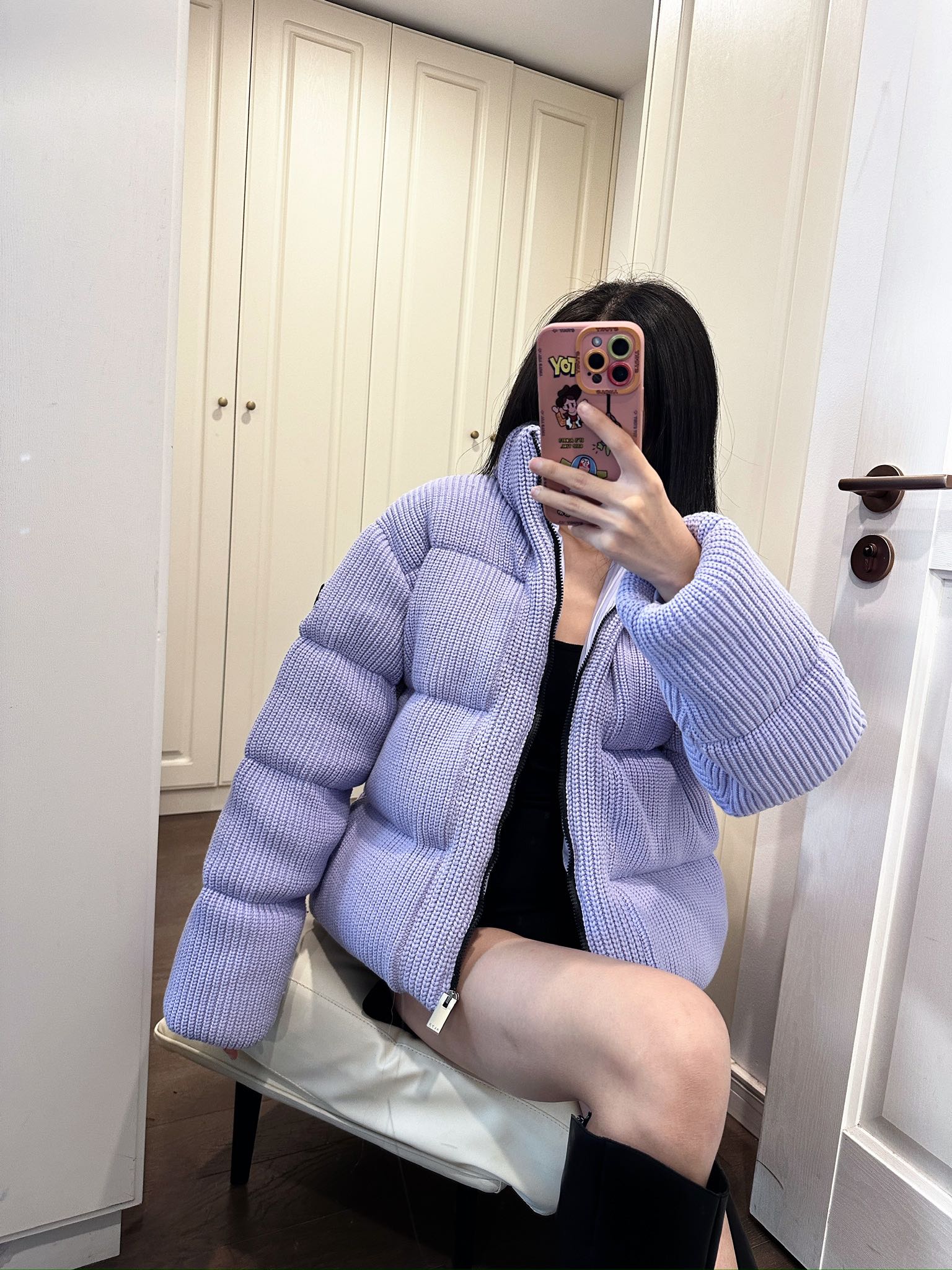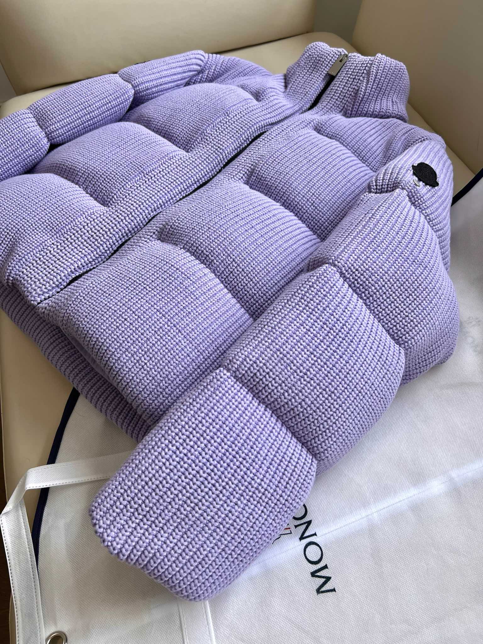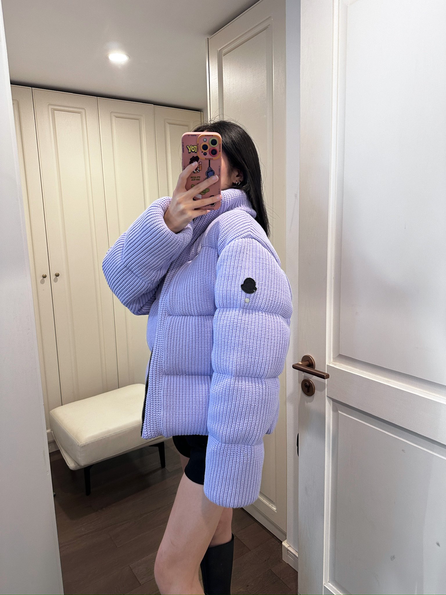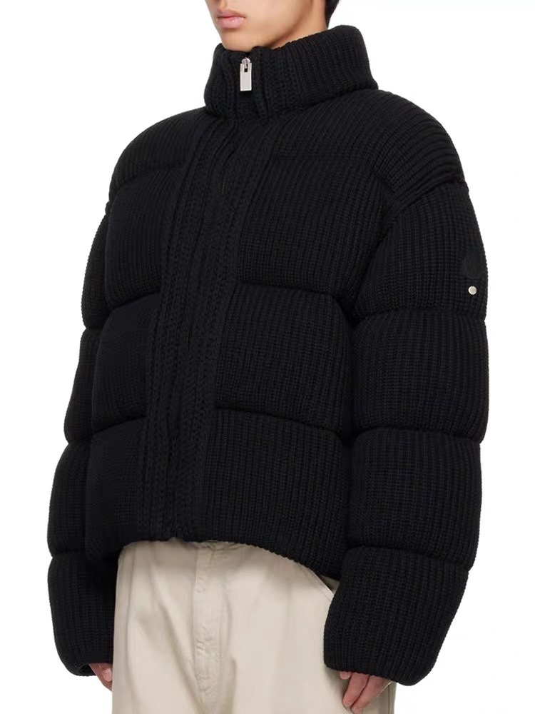 NIGO Moncler Women's Winter Solid Color Ribbed Knit Standing Collar Short Zipper Long Sleeve Puffer Down Jacket #nigo73423