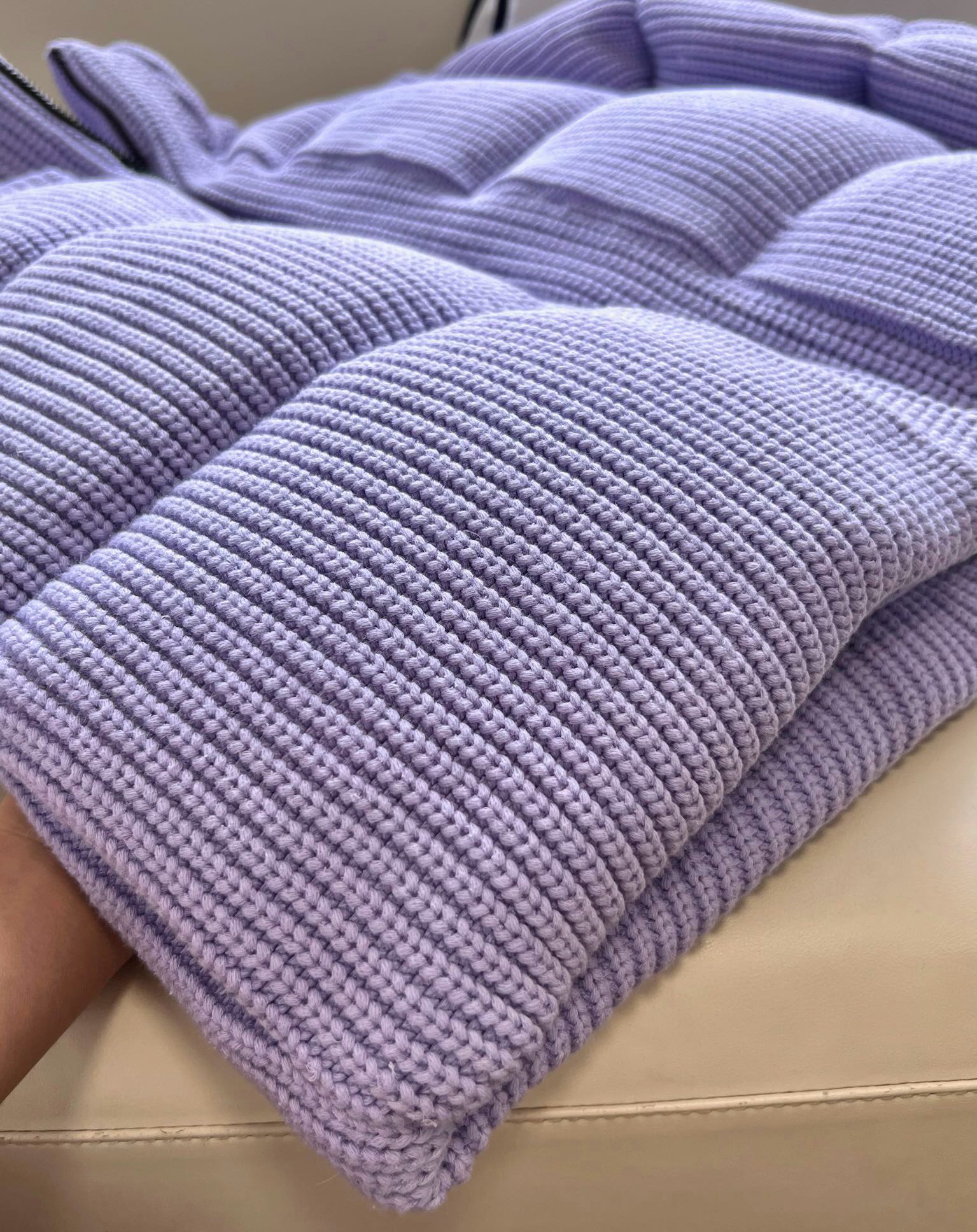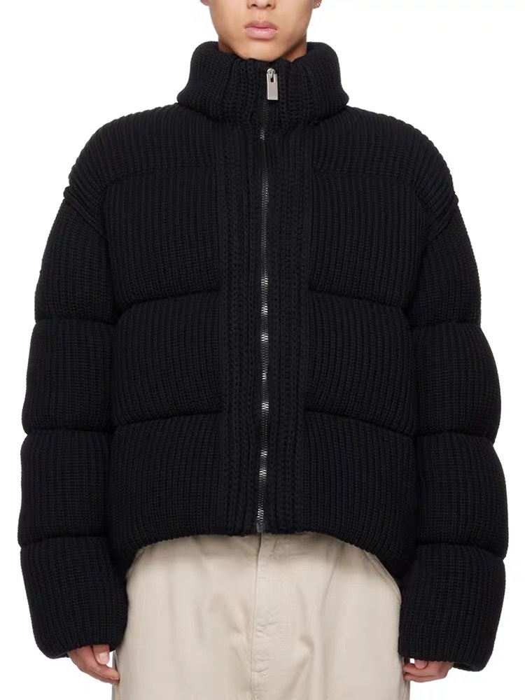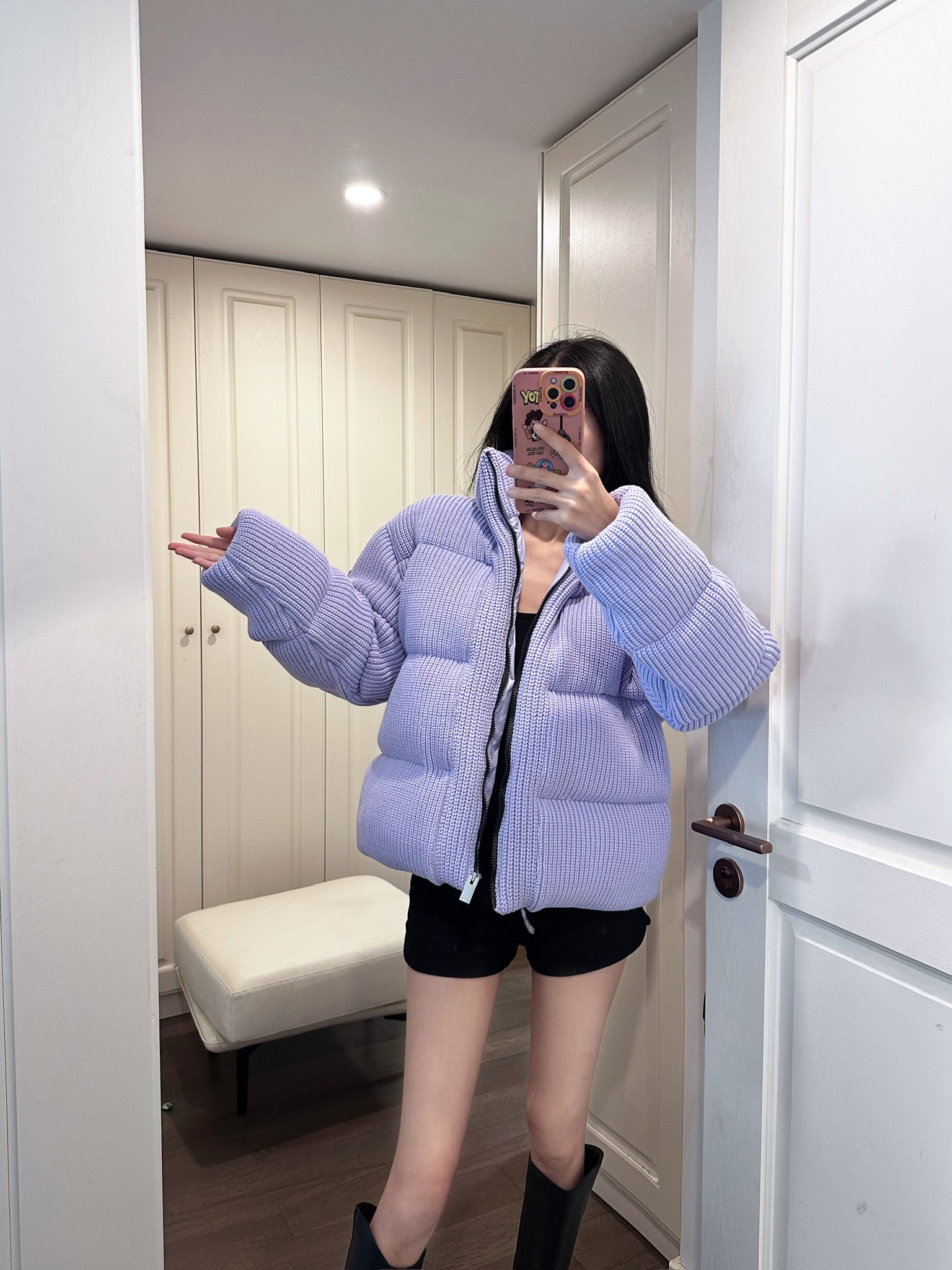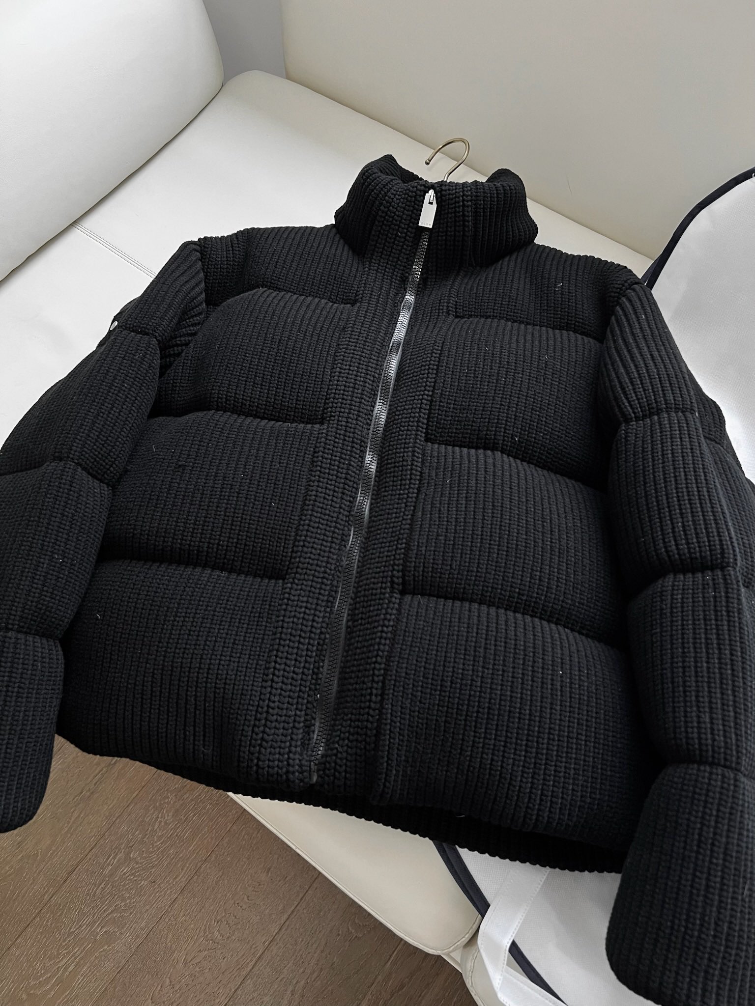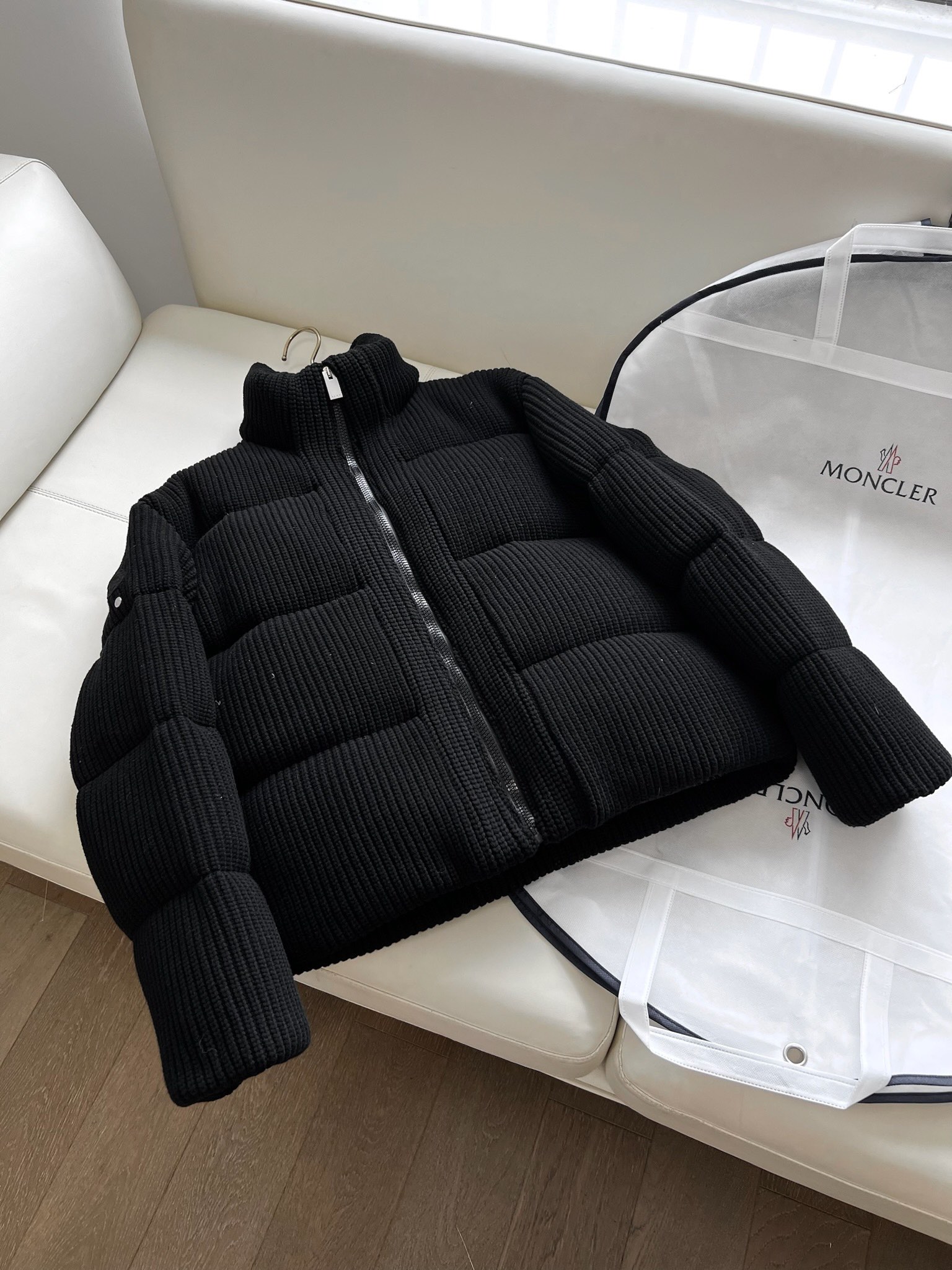 NIGO Moncler Women's Winter Solid Color Ribbed Knit Standing Collar Short Zipper Long Sleeve Puffer Down Jacket #nigo73423