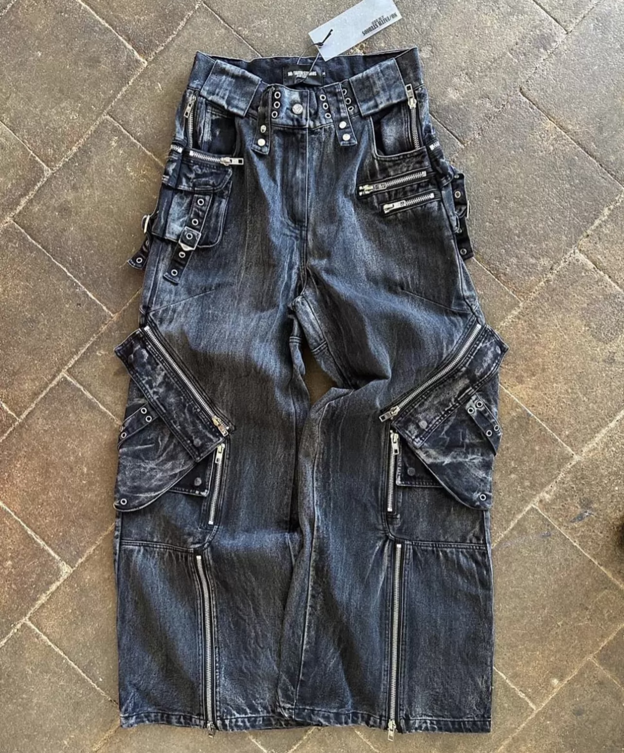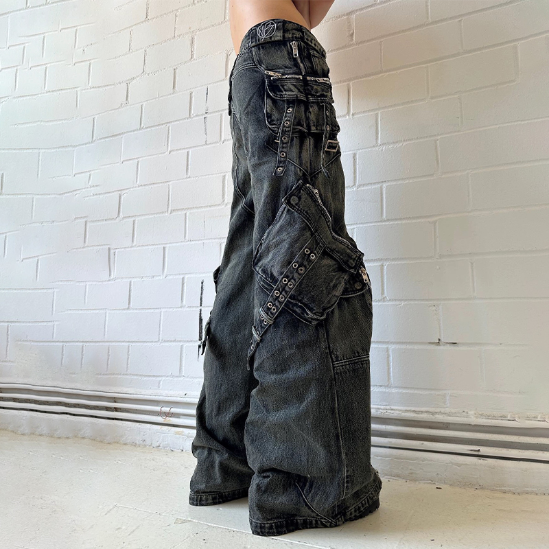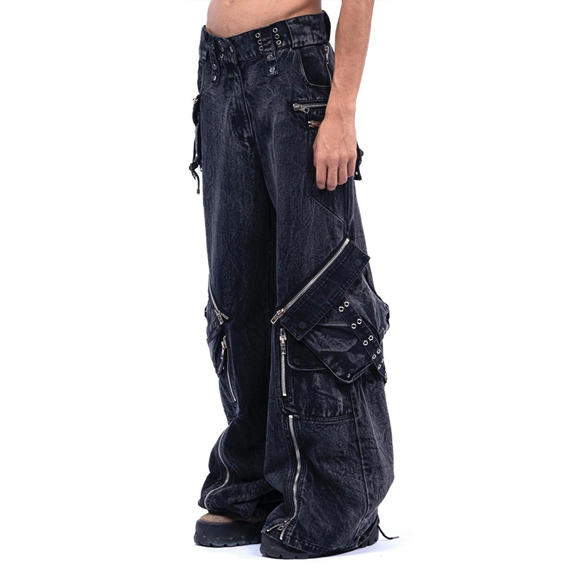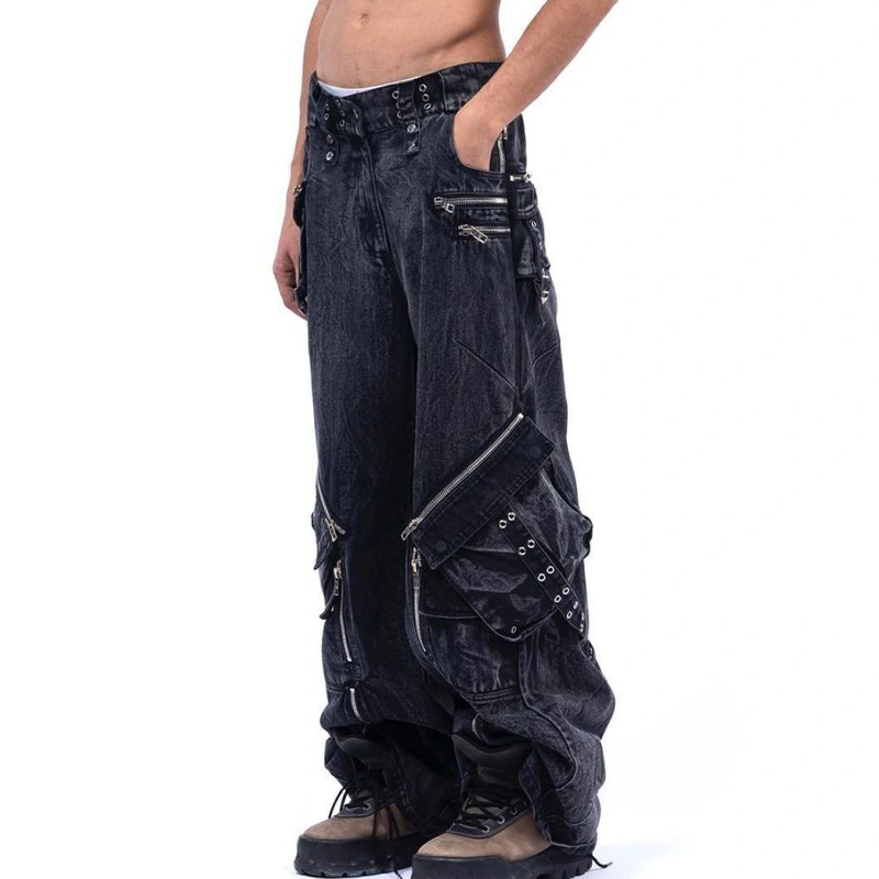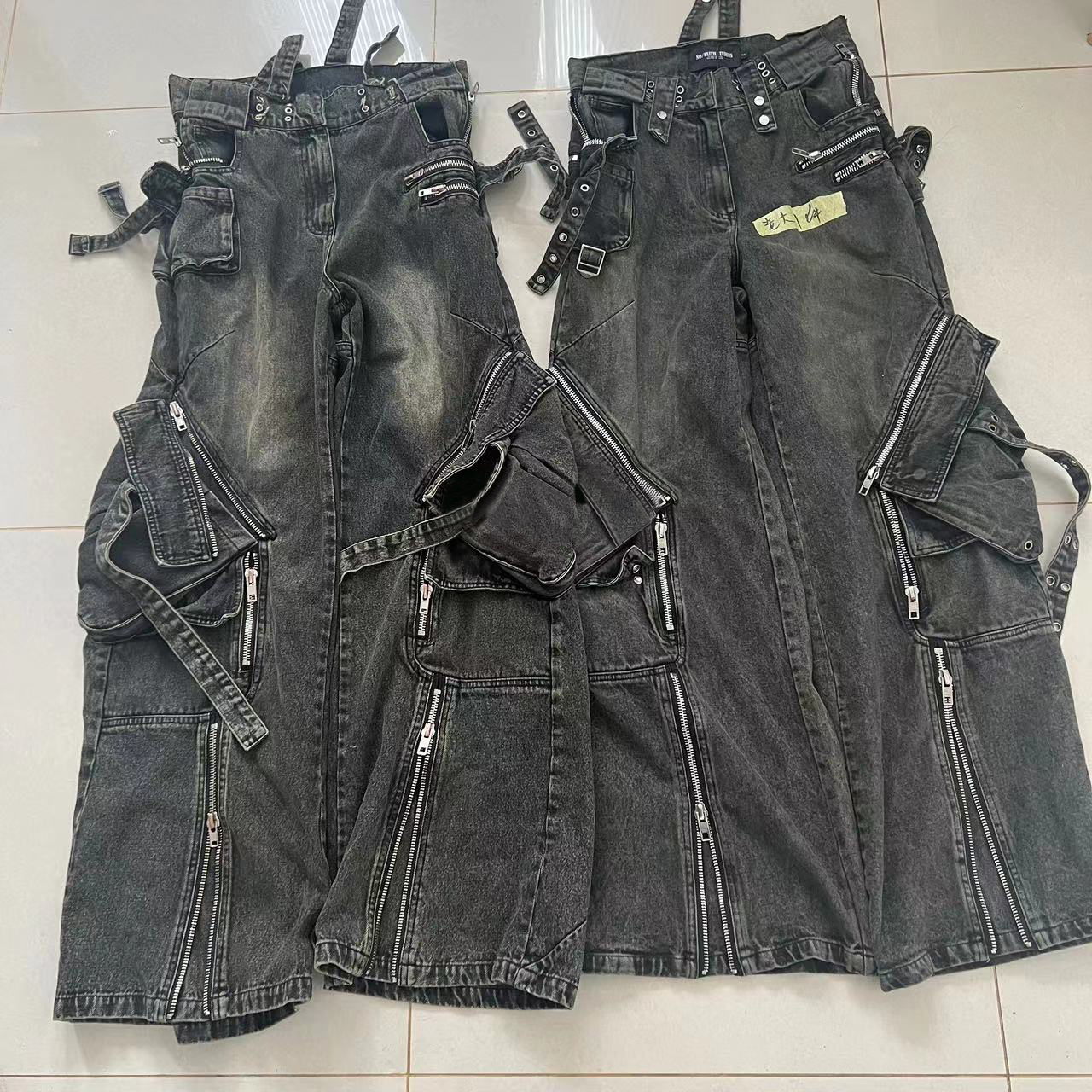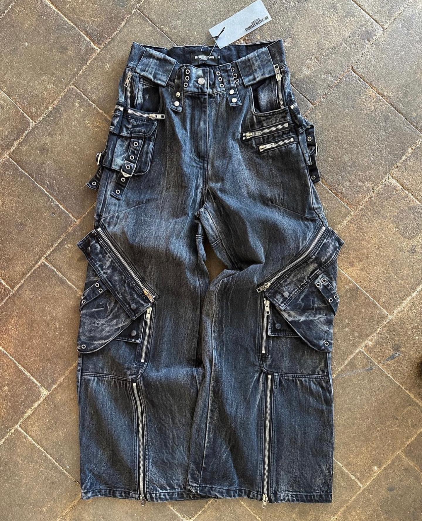NIGO No Faith Studios Men's Solid Color Zipper Logo Embroidered Washed Jeans Loose Fit Work Pants Ngvp #nigo7771