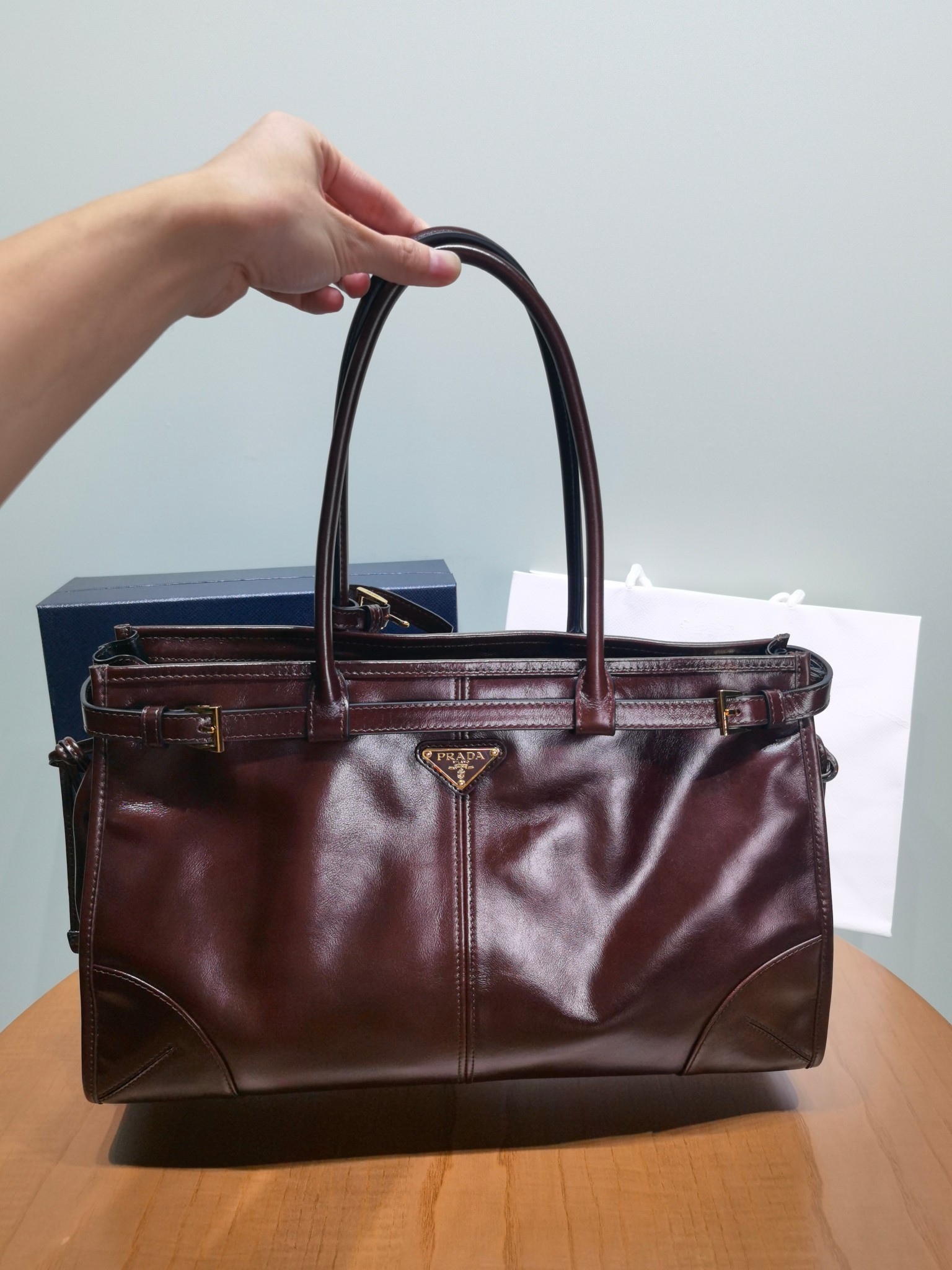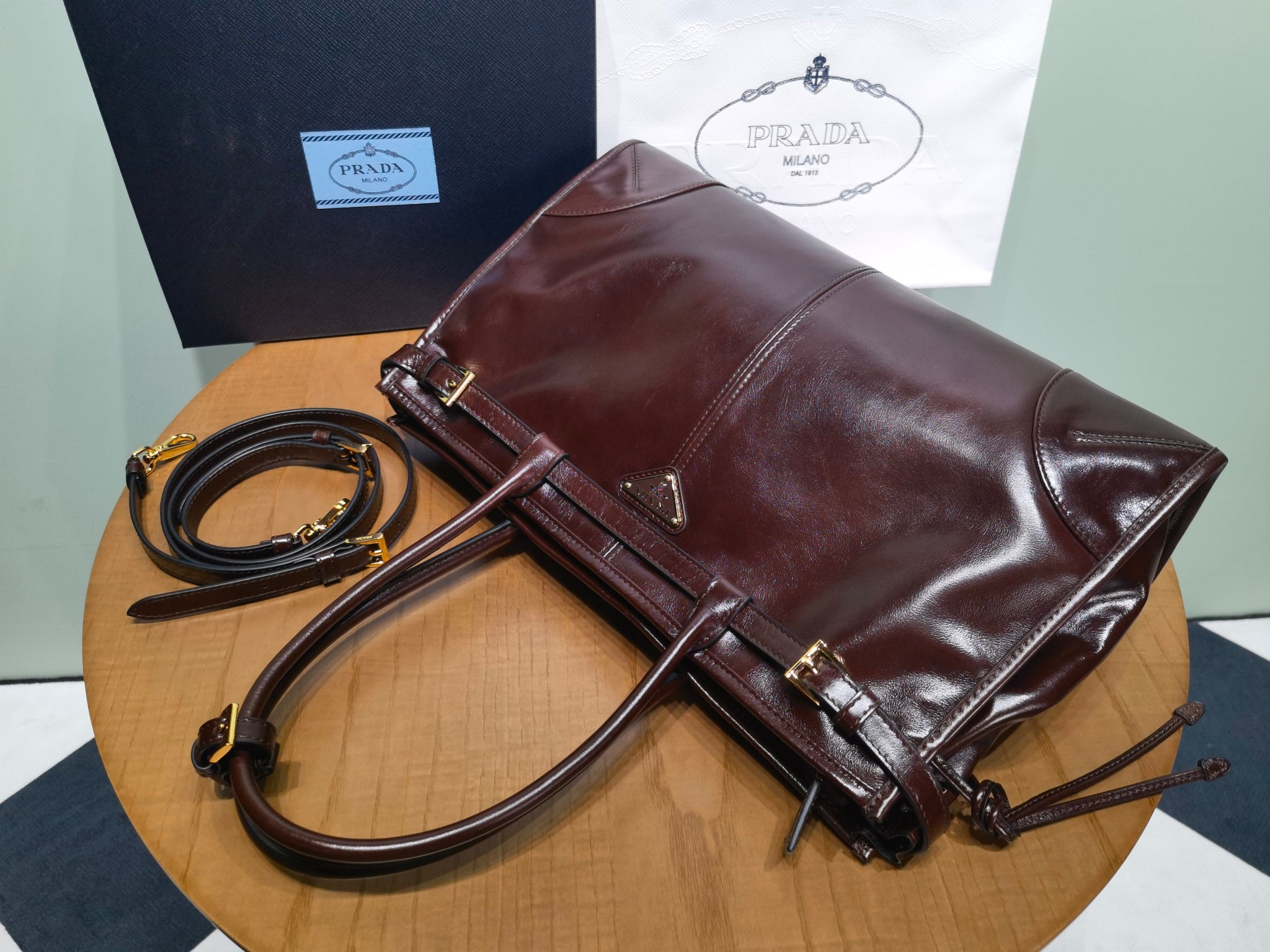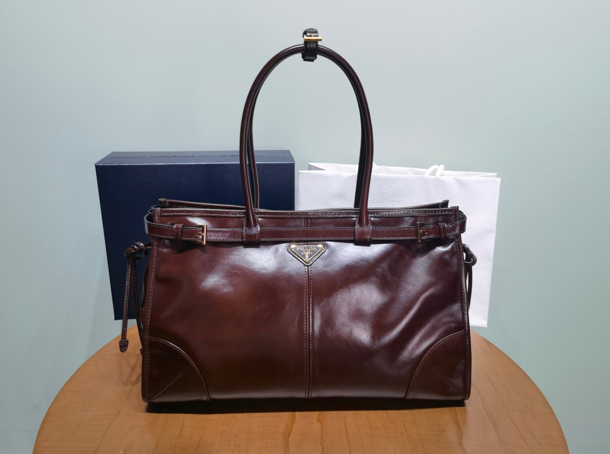 NIGO Prada Bonnie Soft Lux Women's Series Solid Color Oil-Waxed Leather Logo Handbag Casual Crossbody Bag Bags #nigo77825
