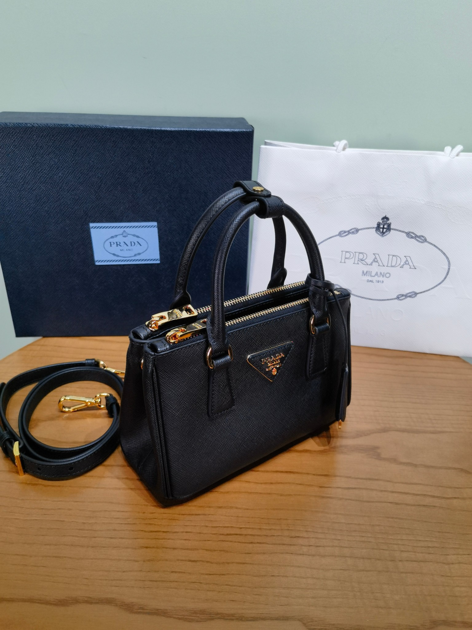 This Prada handbag showcases the brand's exceptional craftsmanship and attention to detail. Crafted from premium leather, this piece combines timeless luxury with modern style.