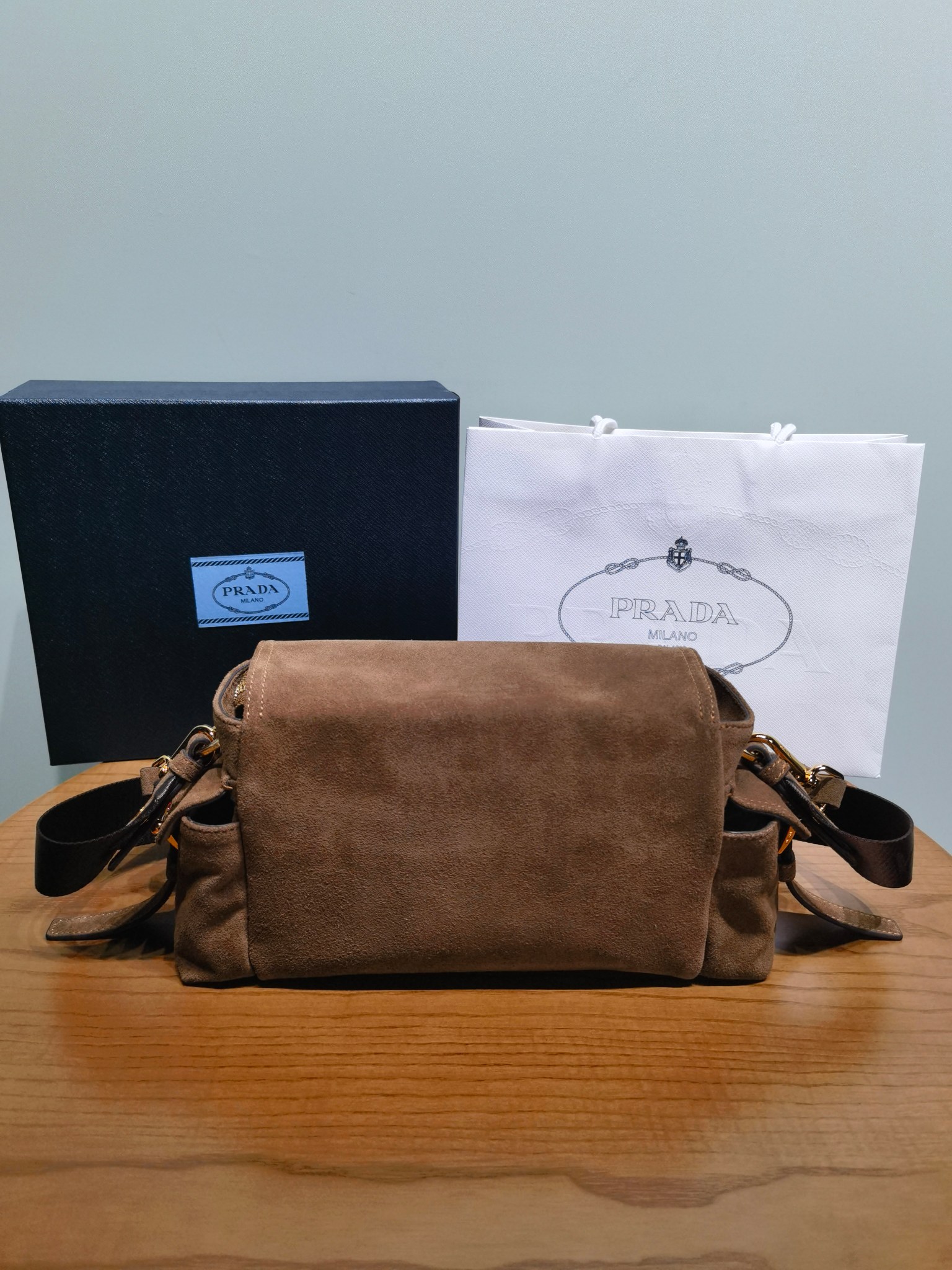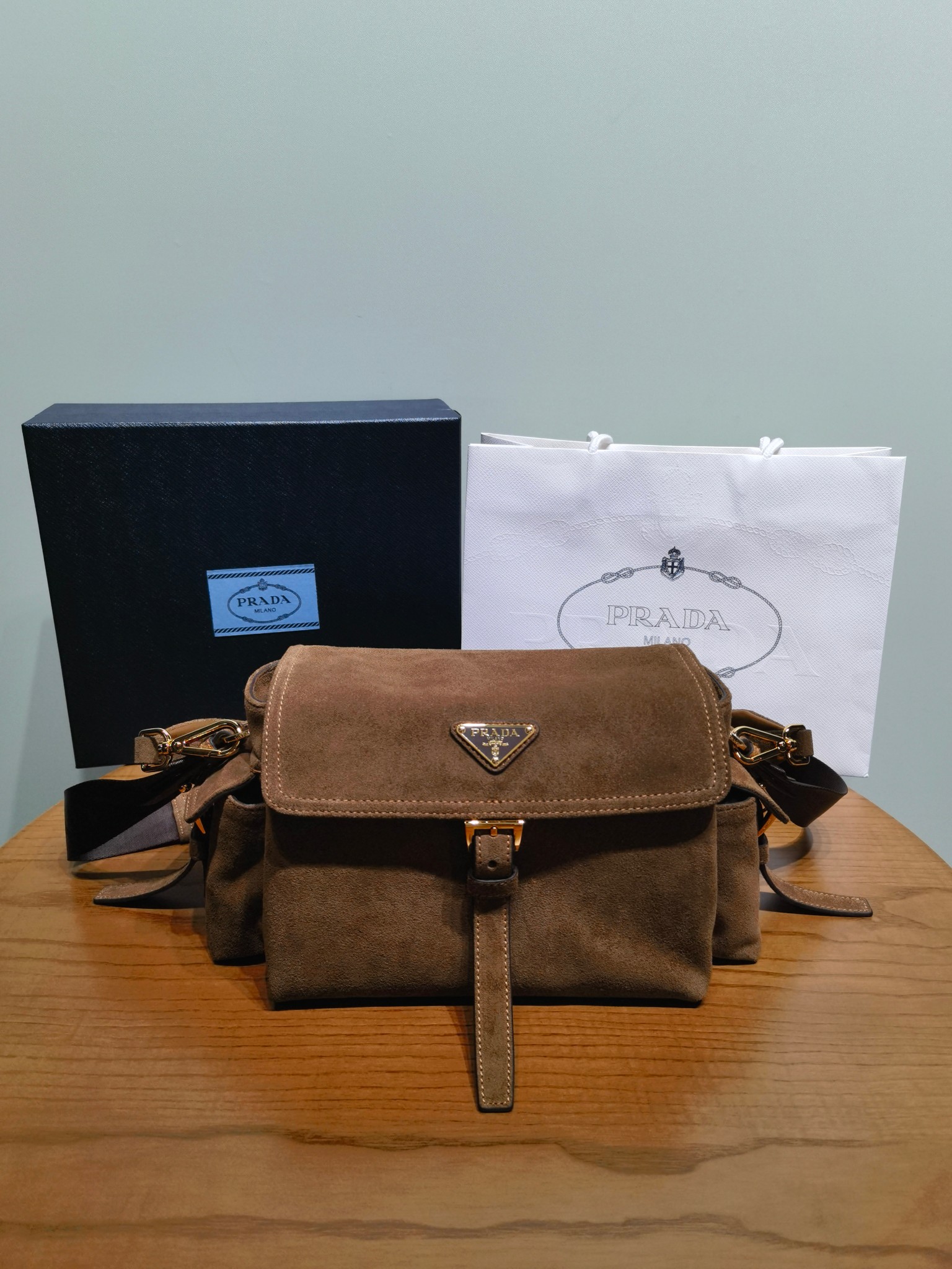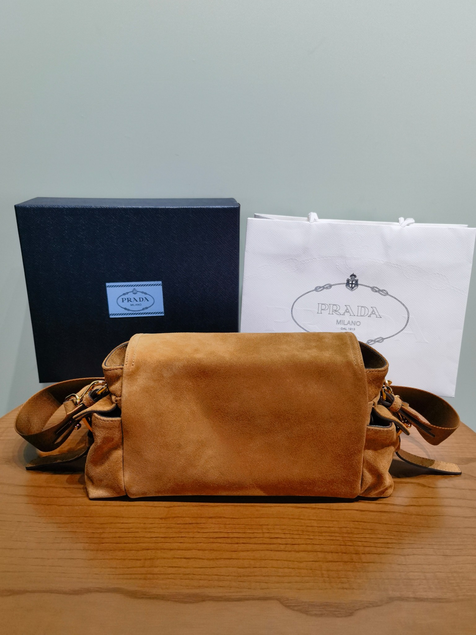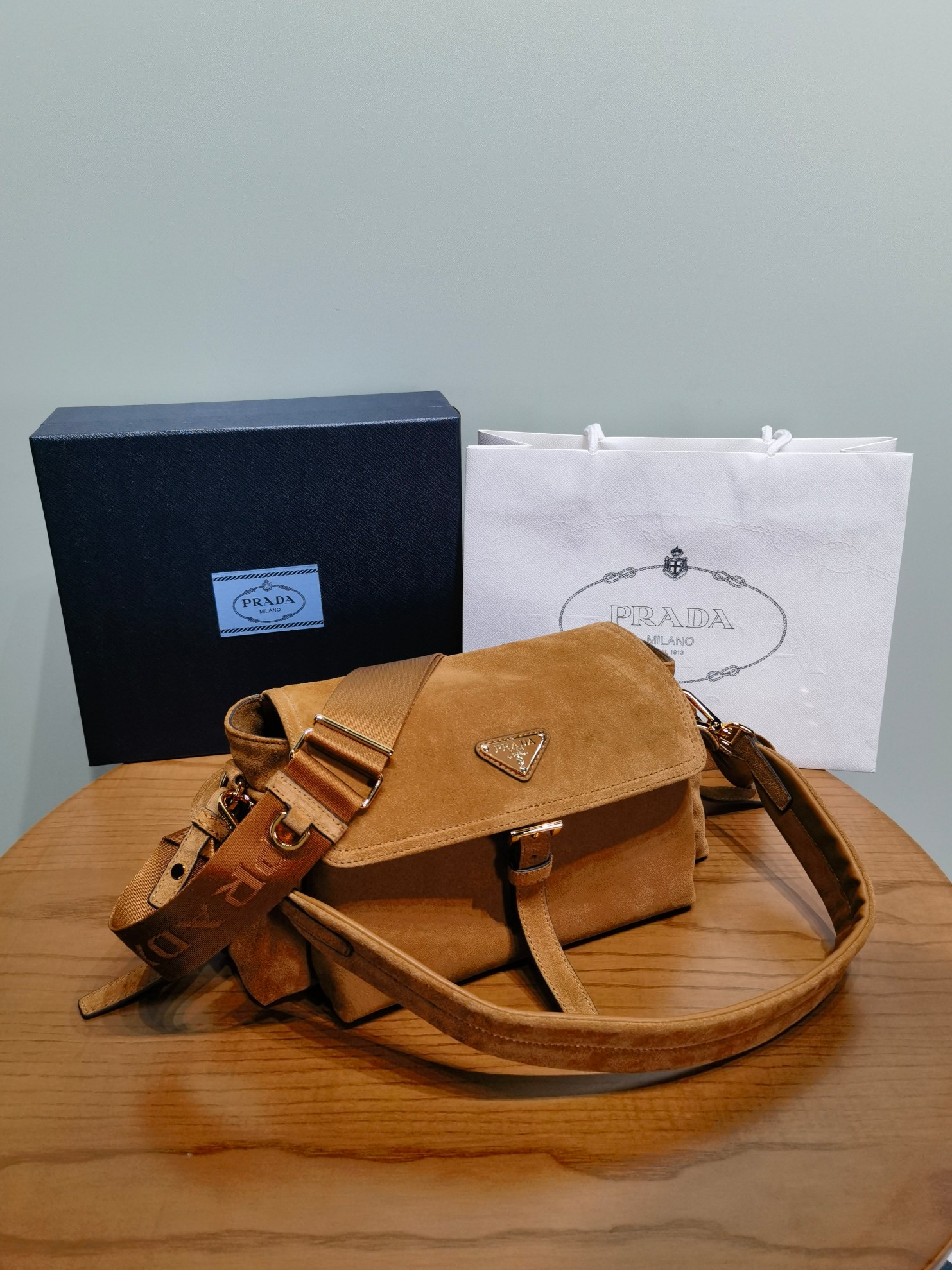 NIGO Prada Explore Men's and Women's Brand Logo Solid Color Suede Leather Messenger Bag Shoulder Bags #nigo78127