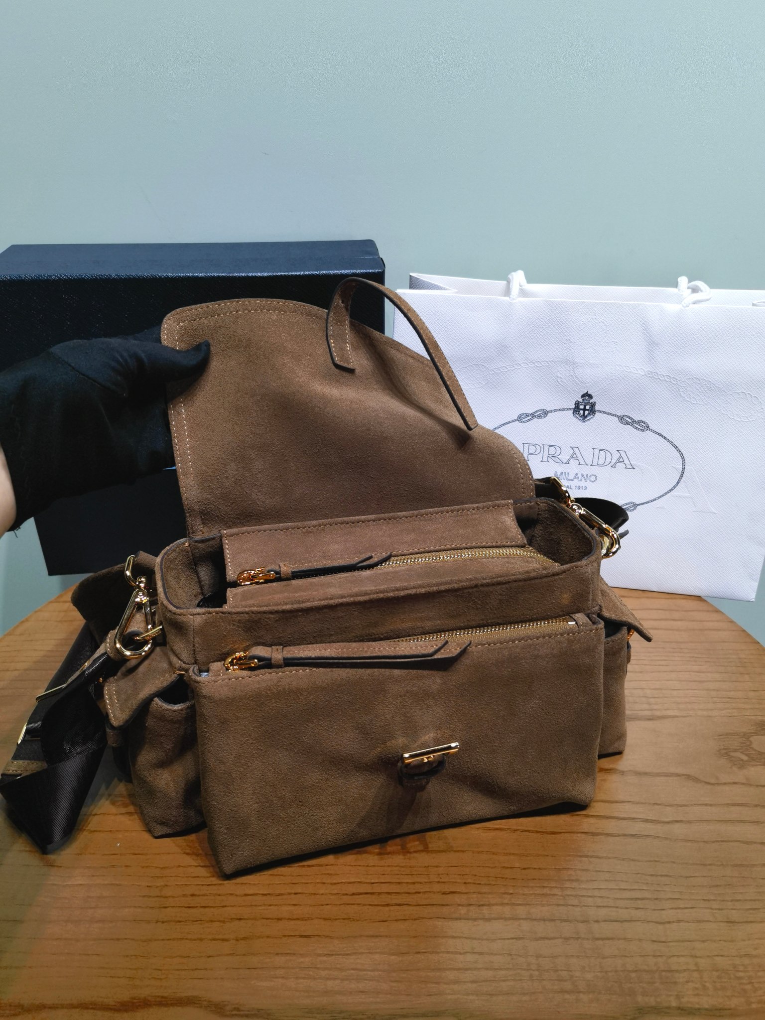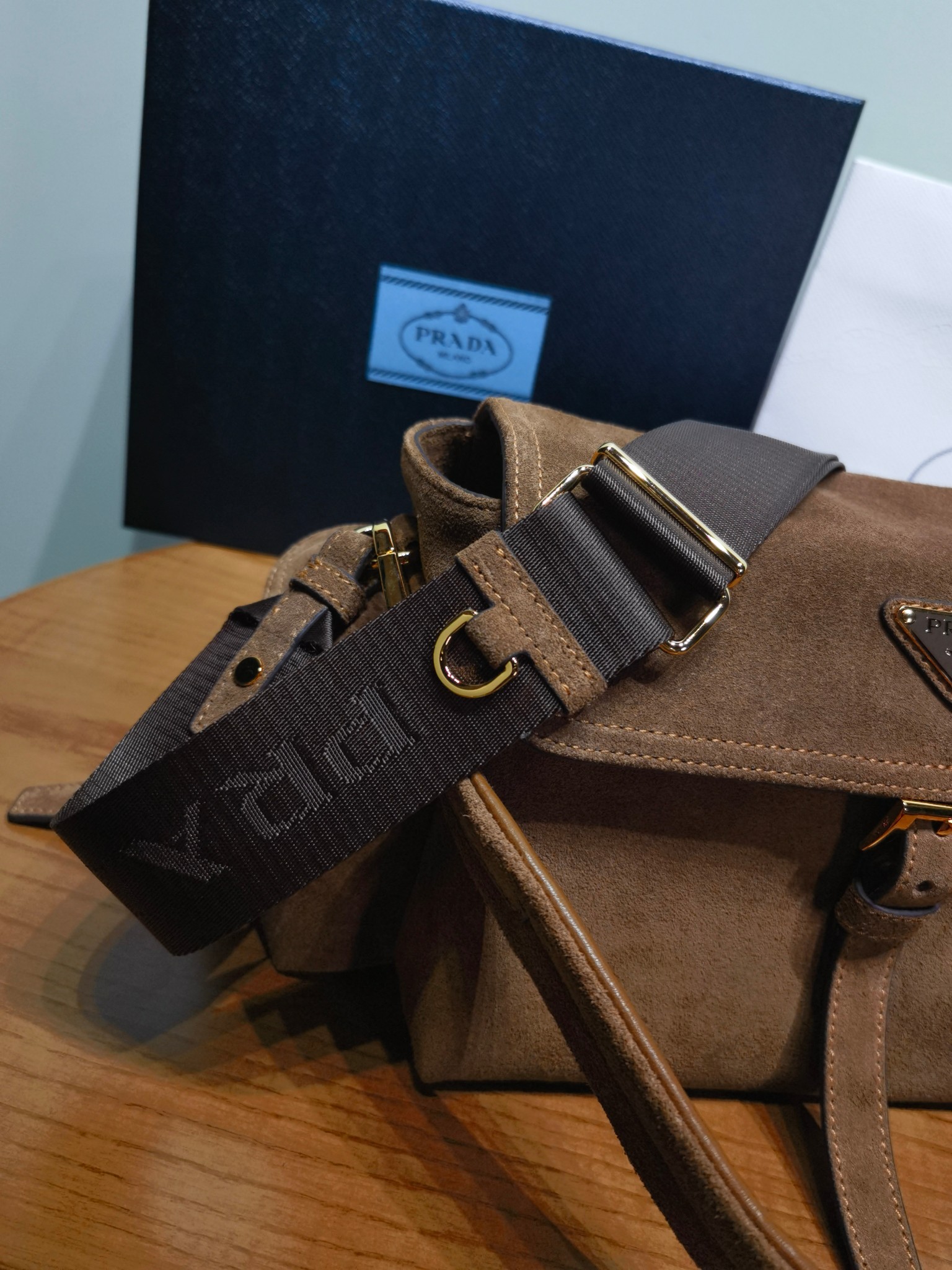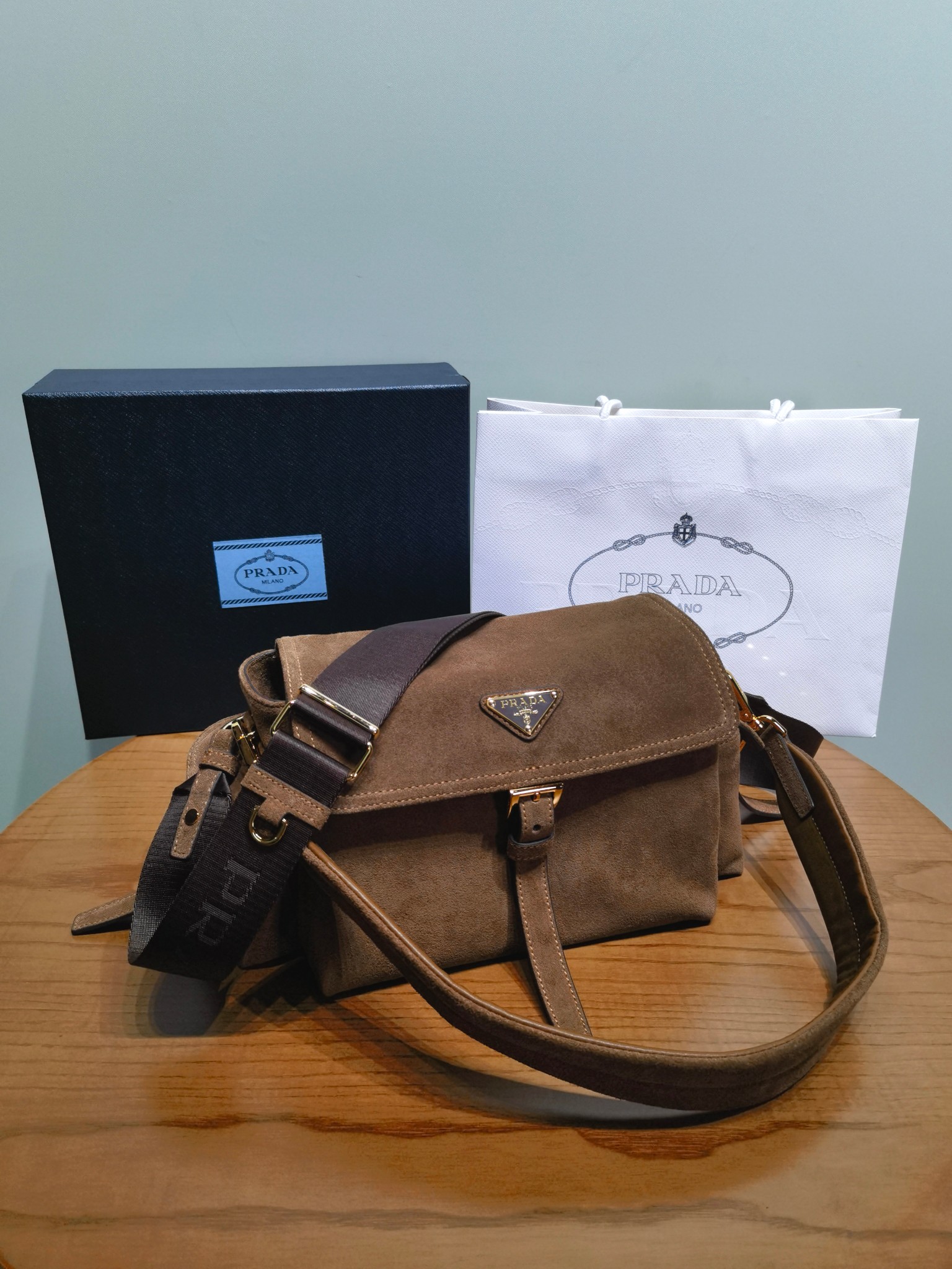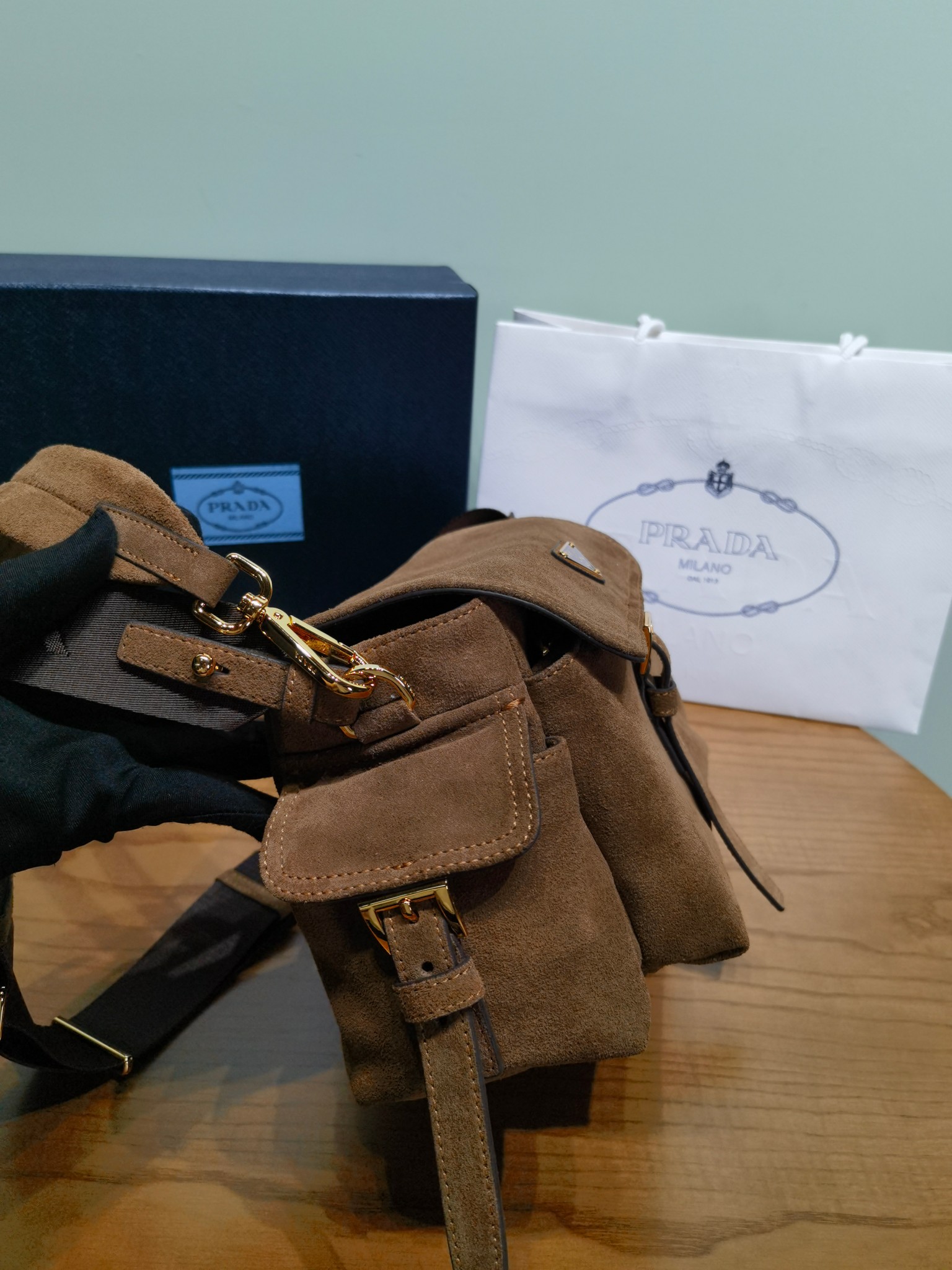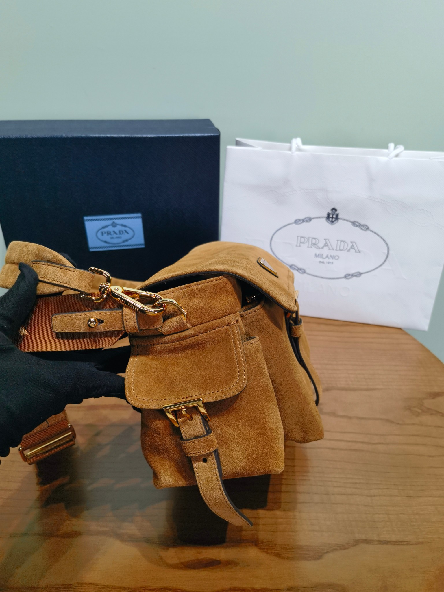 NIGO Prada Explore Men's and Women's Brand Logo Solid Color Suede Leather Messenger Bag Shoulder Bags #nigo78127
