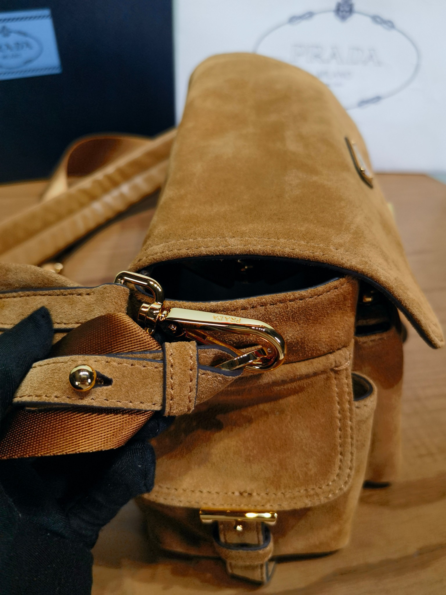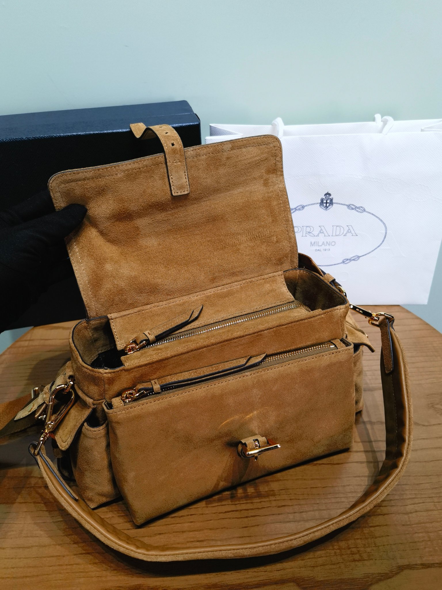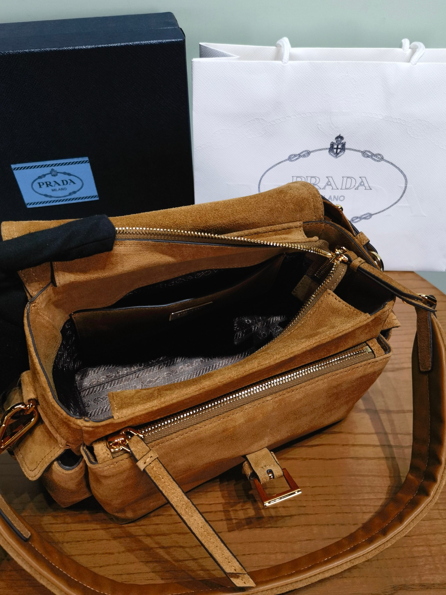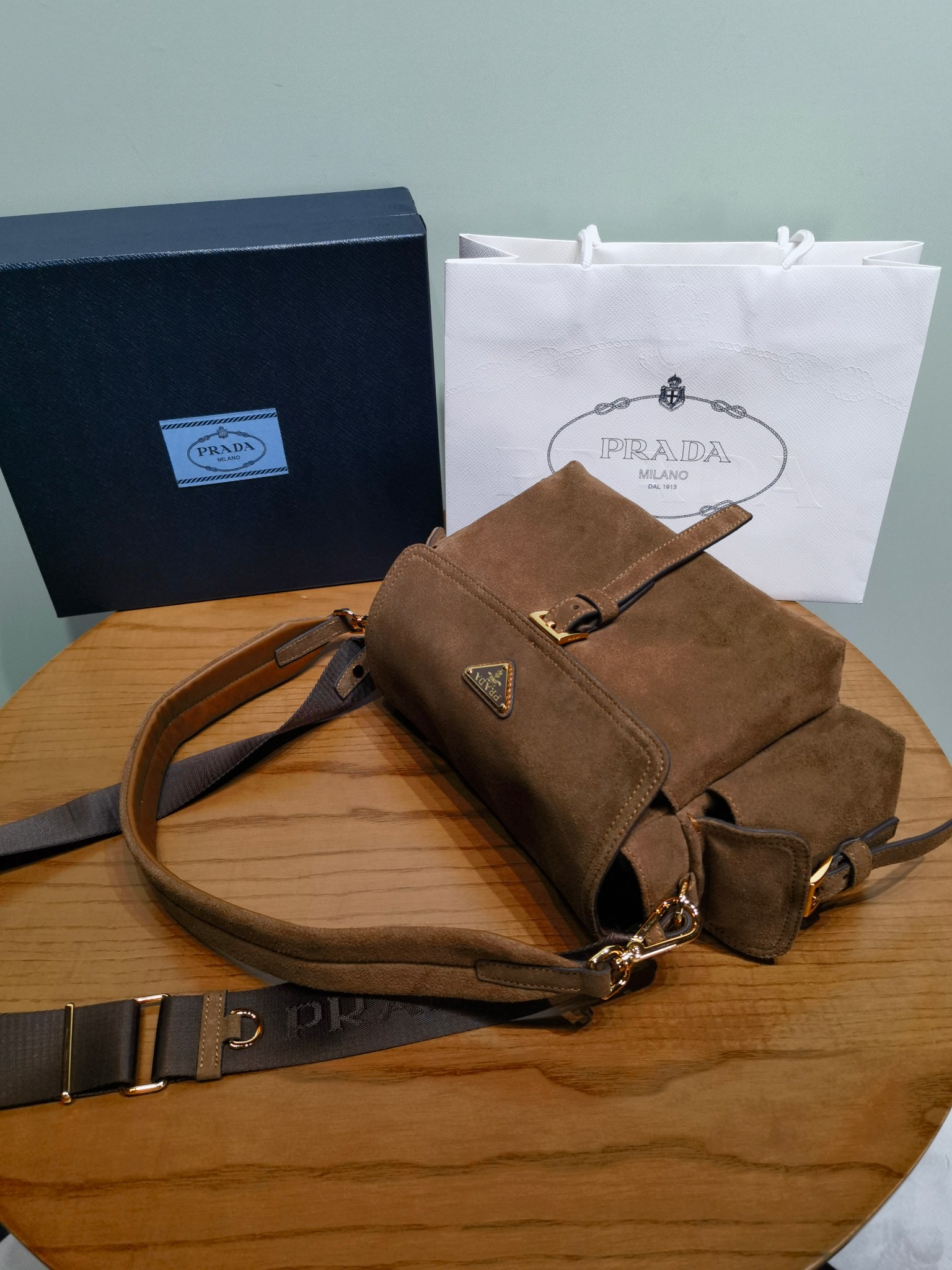 NIGO Prada Explore Men's and Women's Brand Logo Solid Color Suede Leather Messenger Bag Shoulder Bags #nigo78127