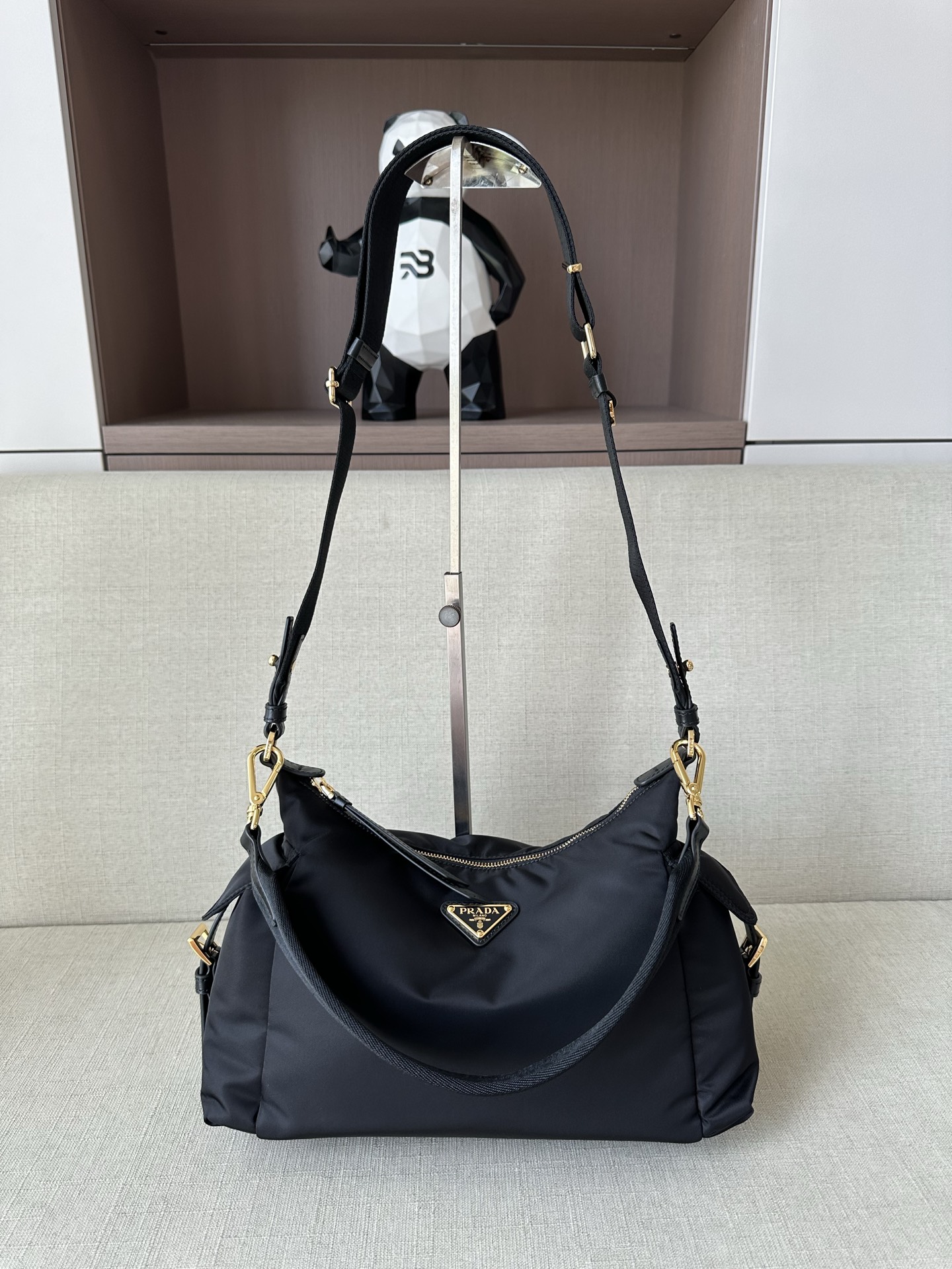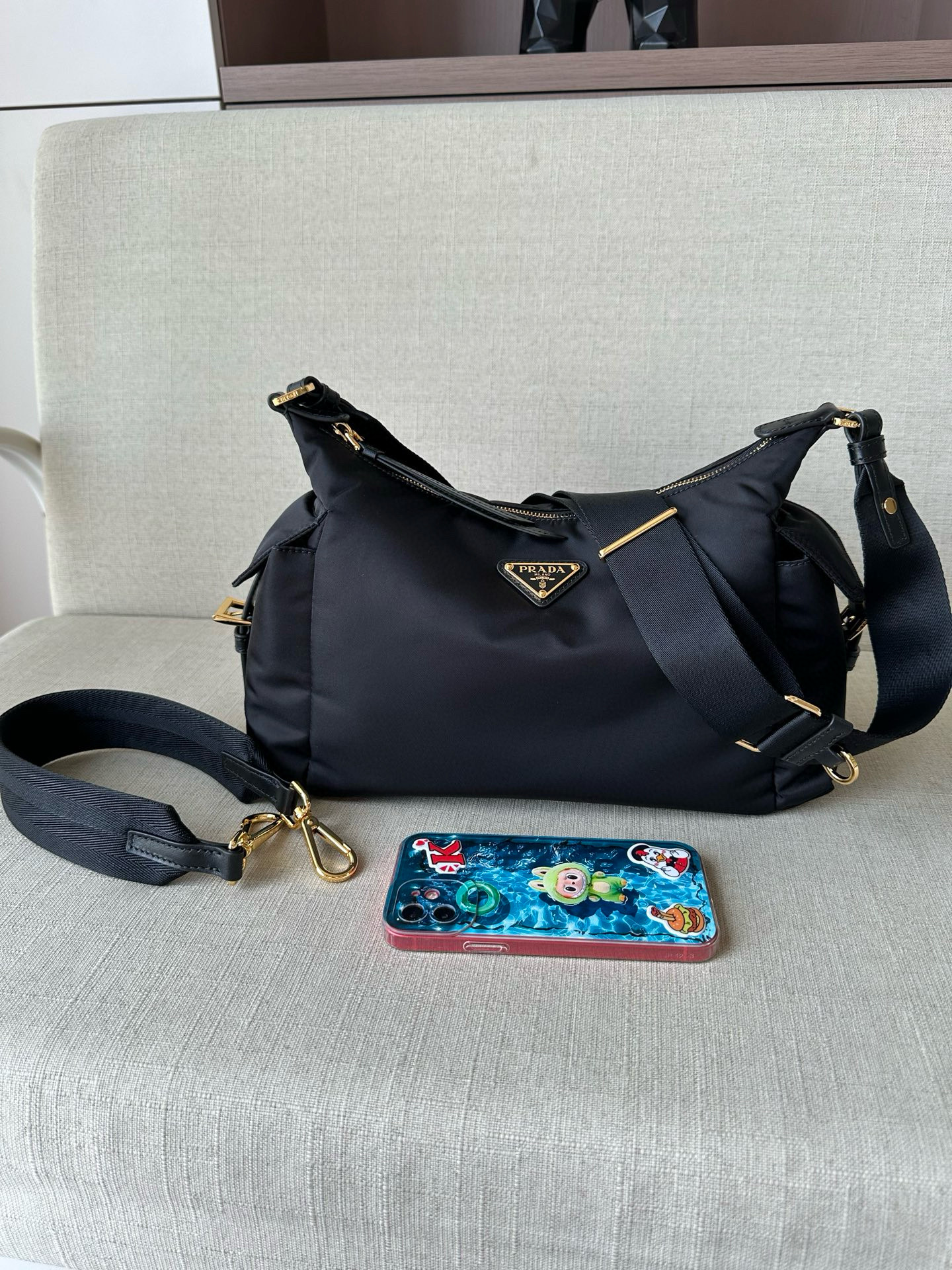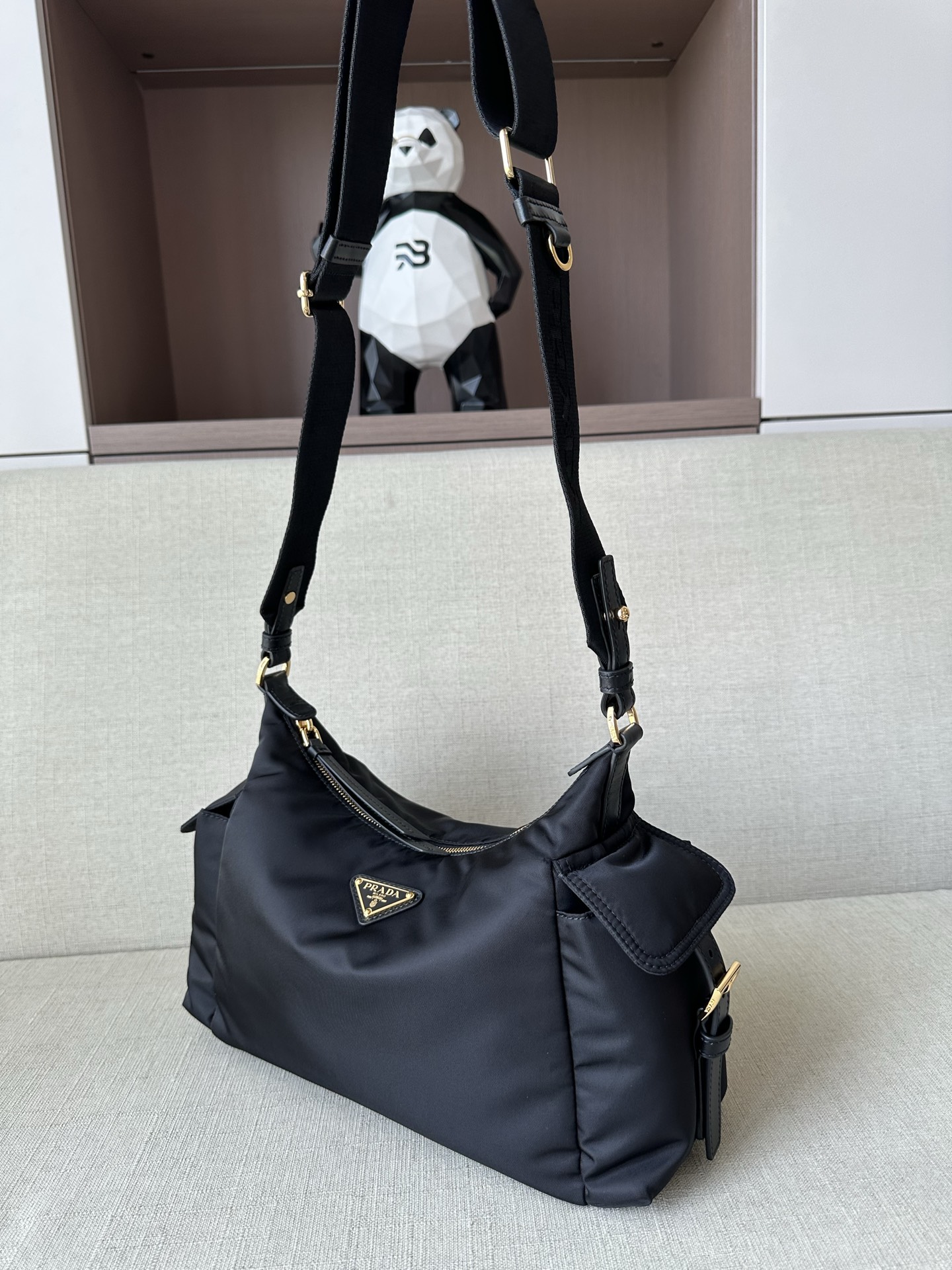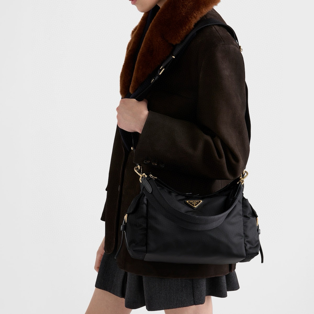 NIGO Prada Explore Women's Classic Solid Color Leather Zipper and Flap Pocket Recycled Nylon and Leather Handbag Shoulder Bag Crossbody Bag Bags #nigo78673