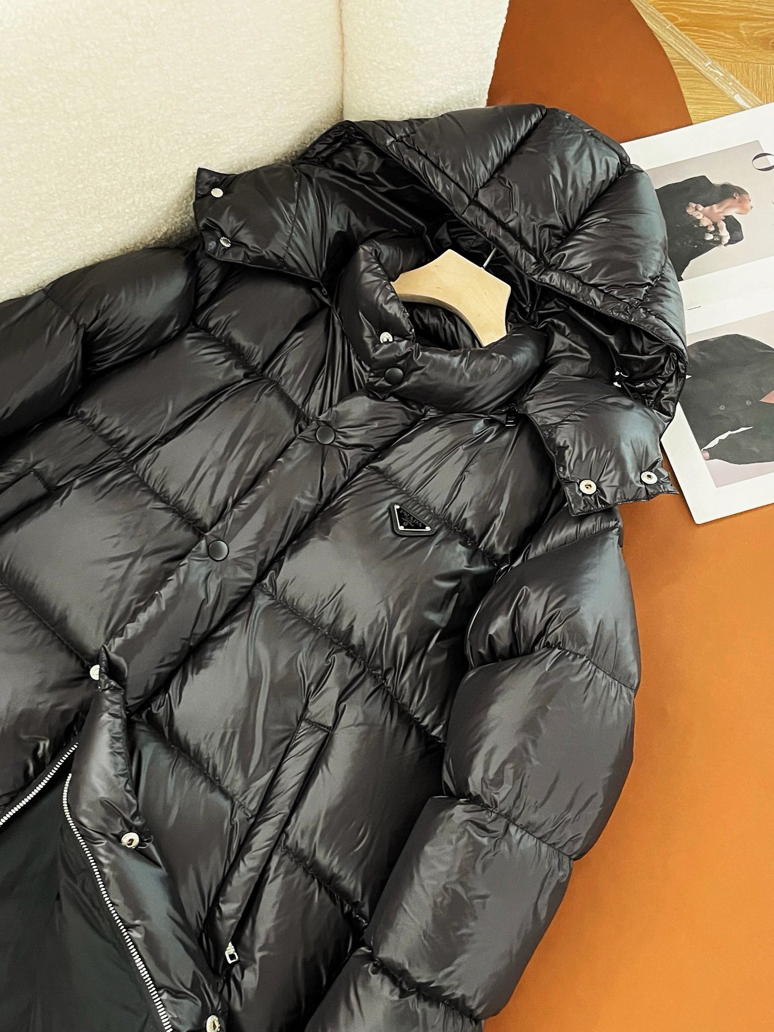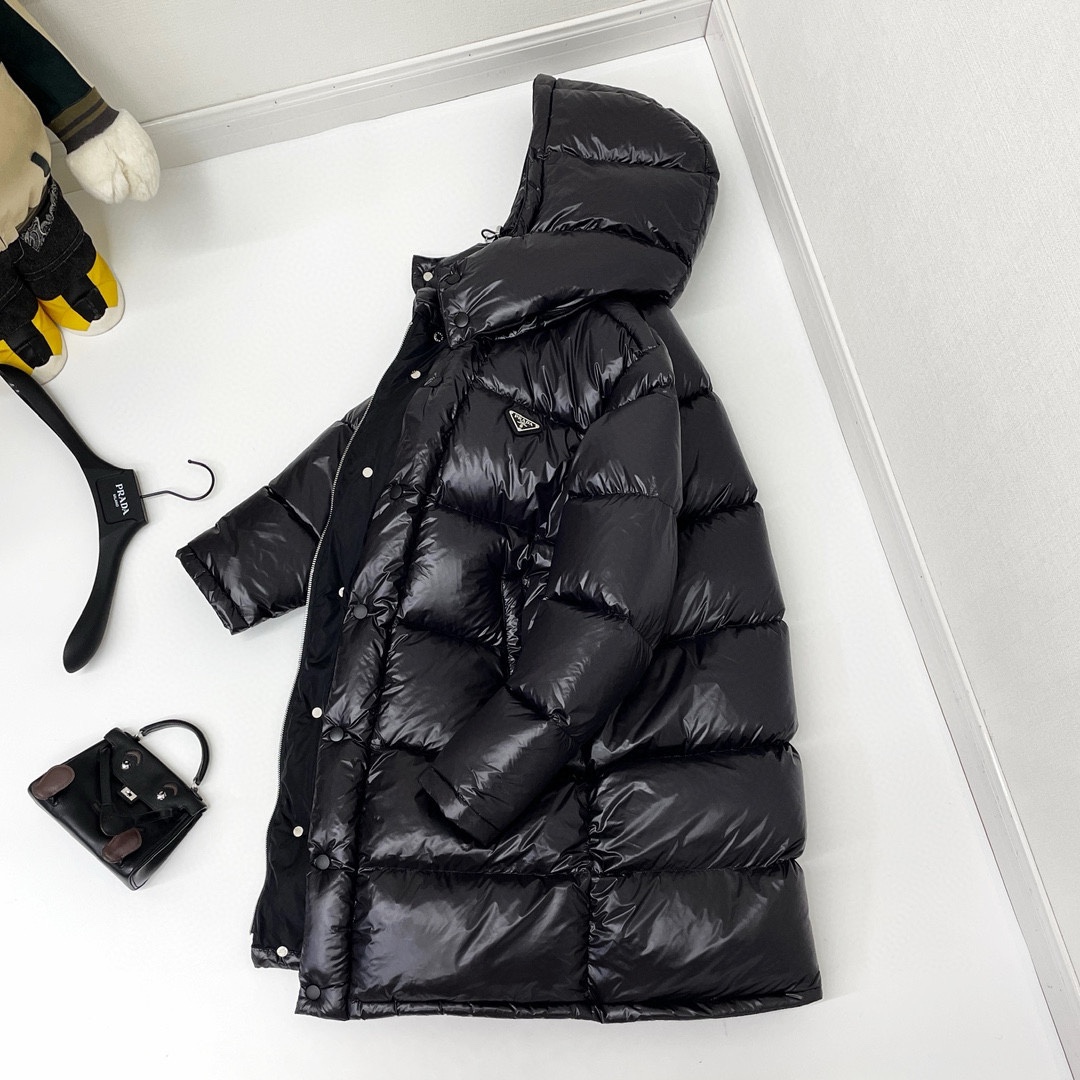 NIGO Prada Men's And Women's Autumn And Winter Solid Color Quilted Fluffy Medium Length Hooded Puffer Down Jacket #nigo74389