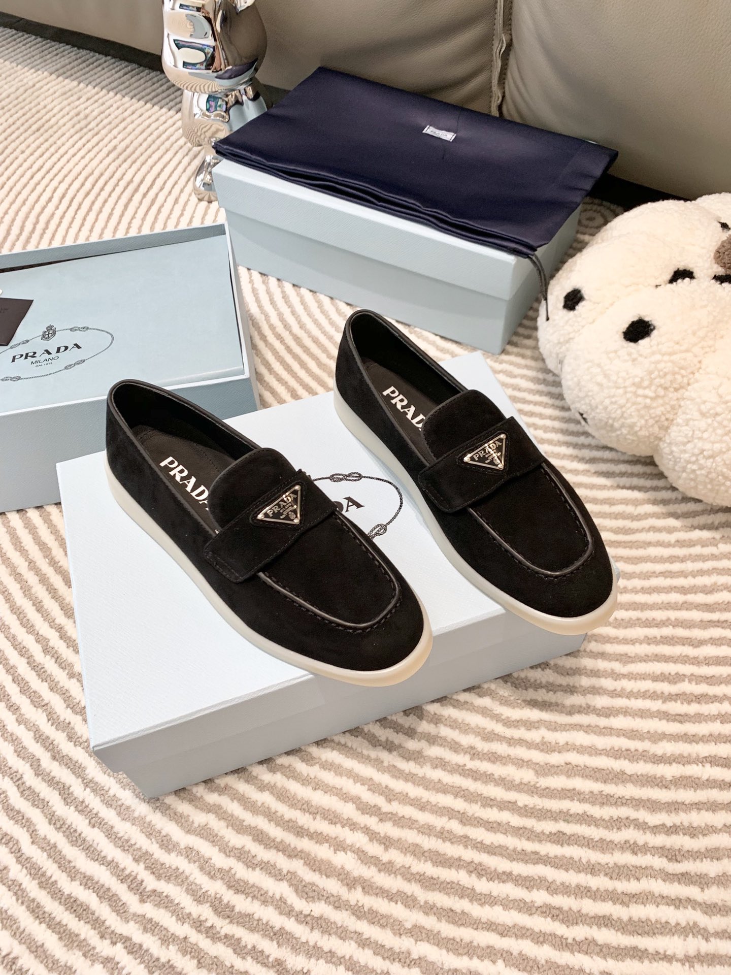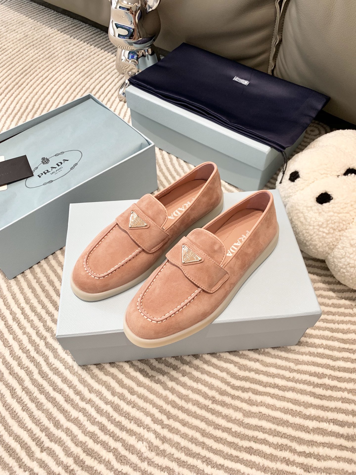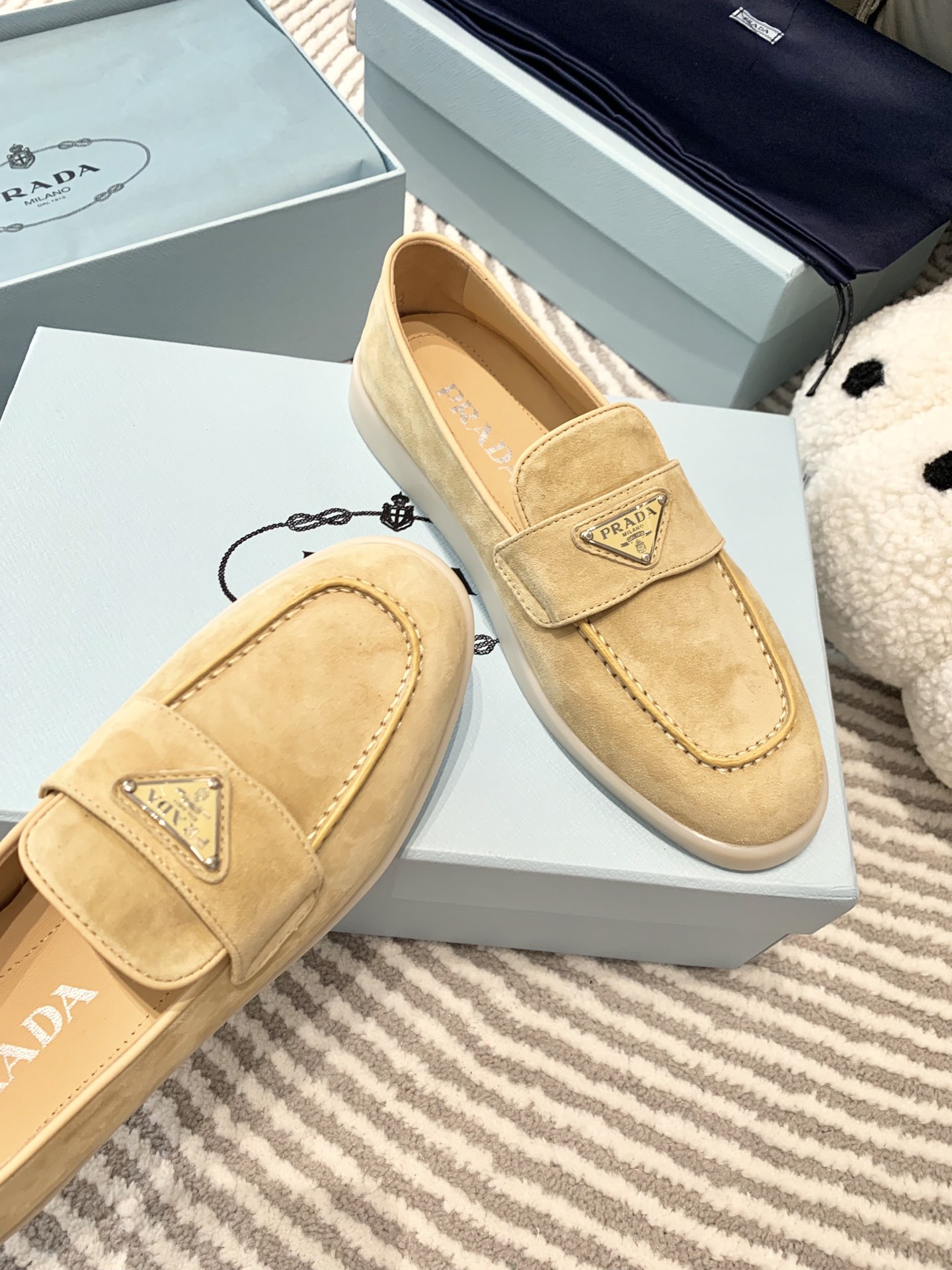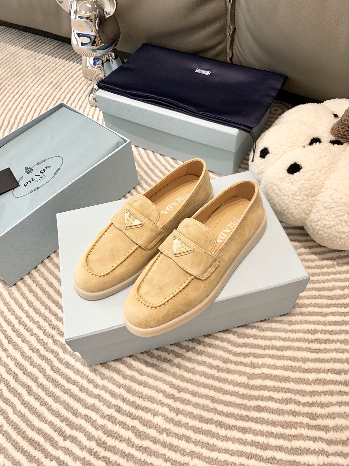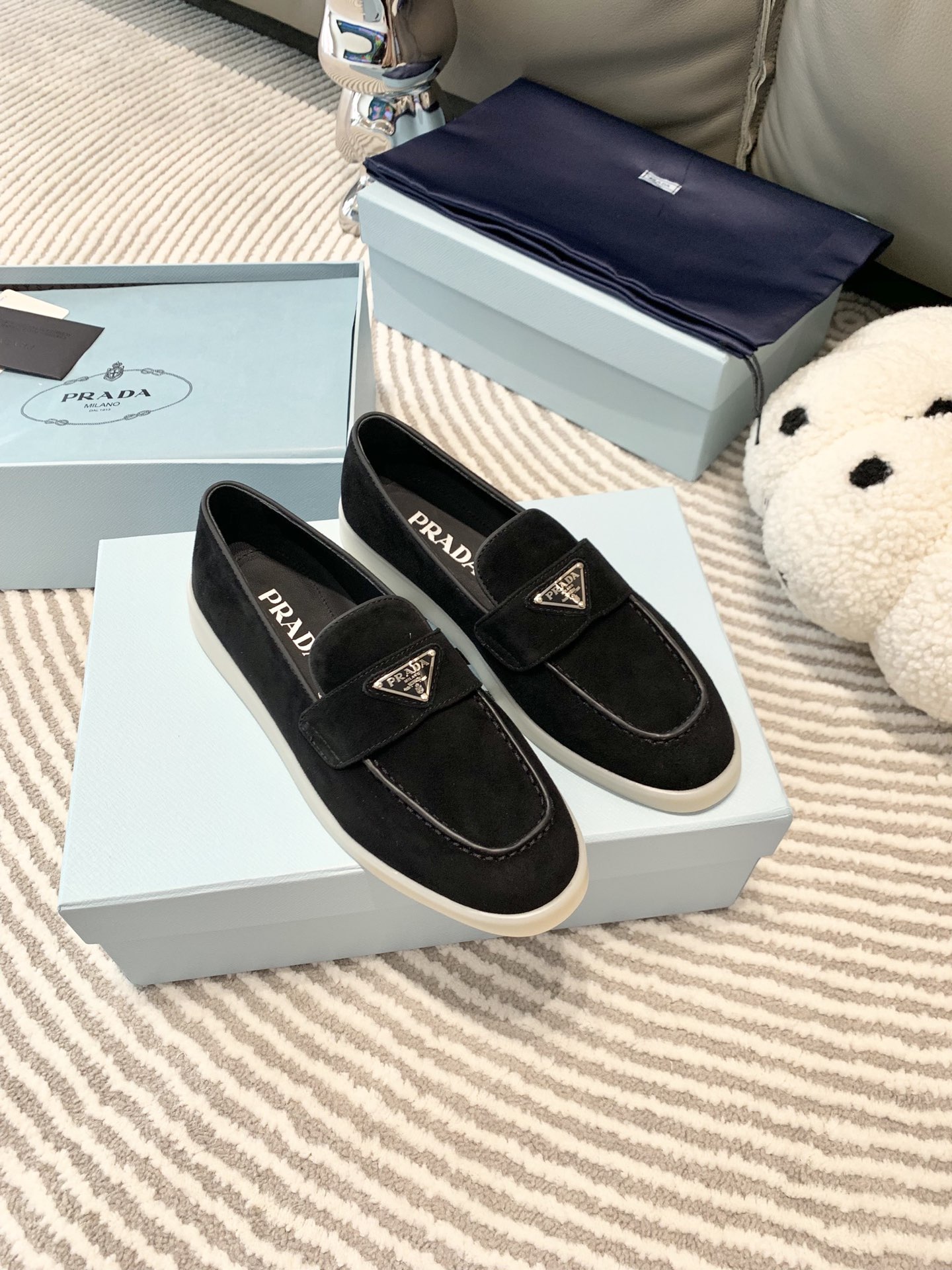 NIGO Prada Men's And Women's Spring/Summer Solid Color Fashionable Casual Round Toe Slip On Loafers In Cow Suede With Triangular Logo Shoes #nigo78267