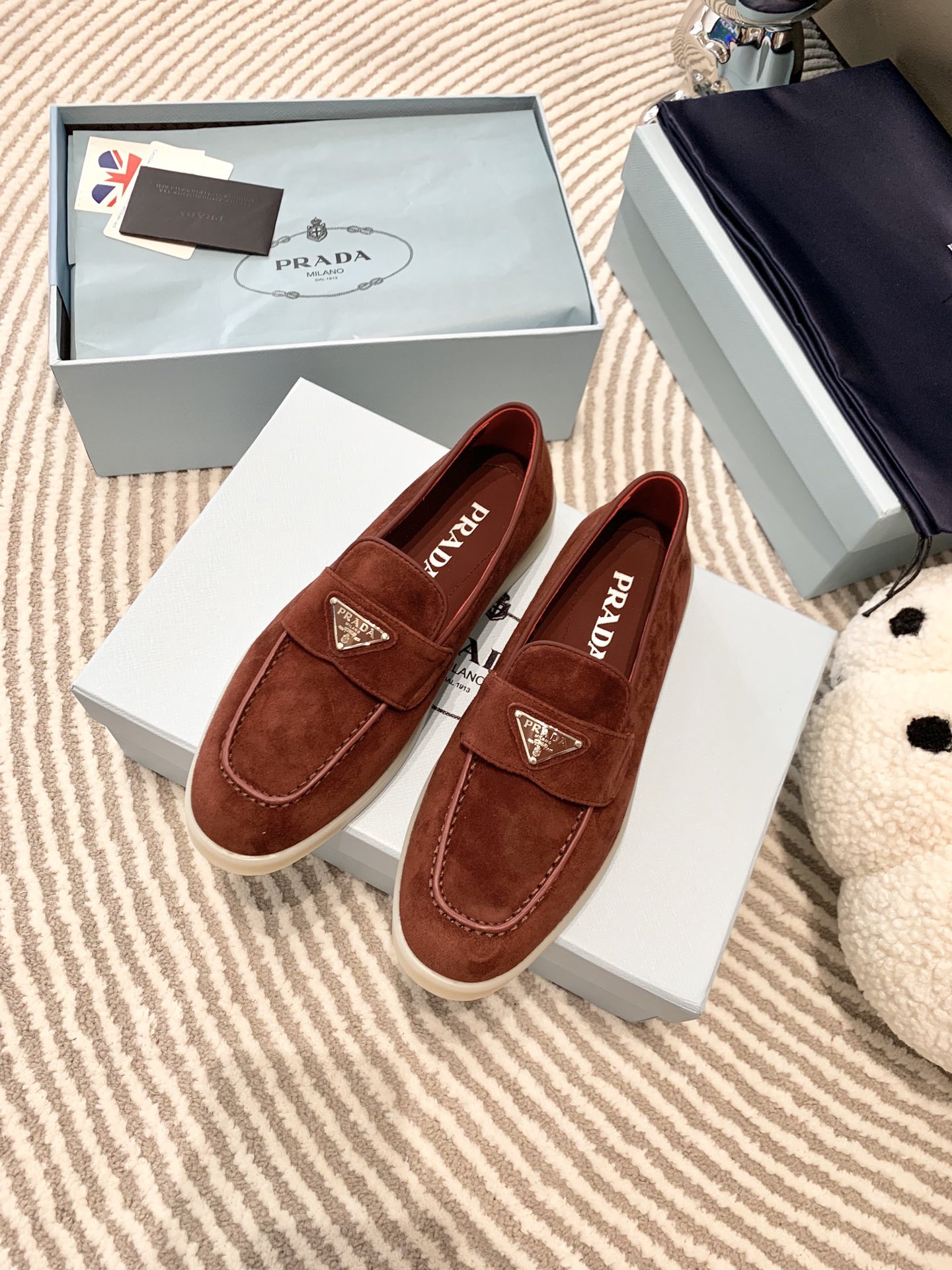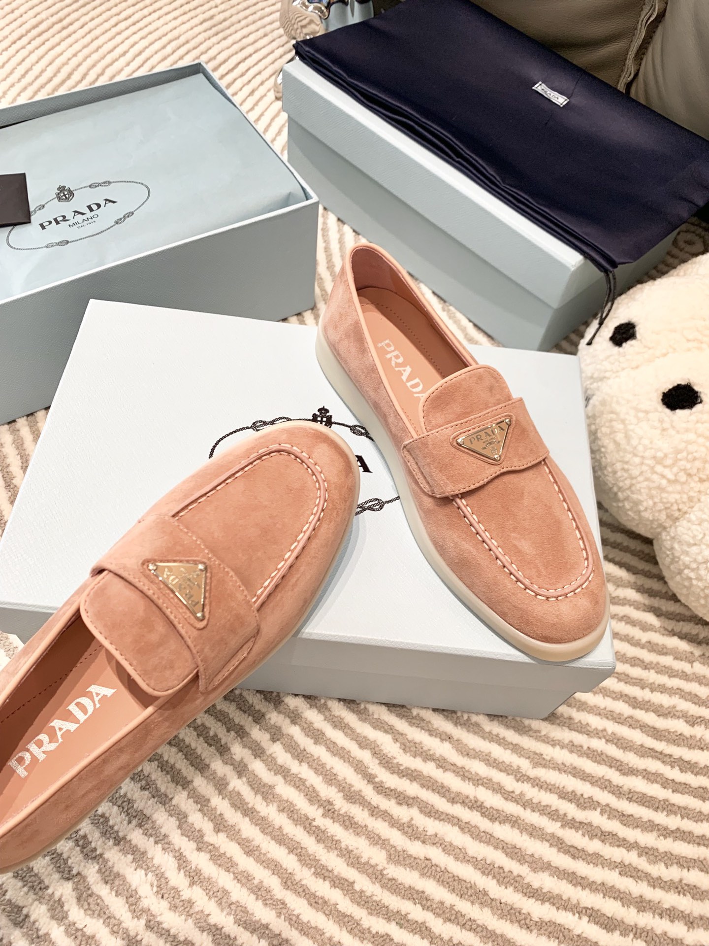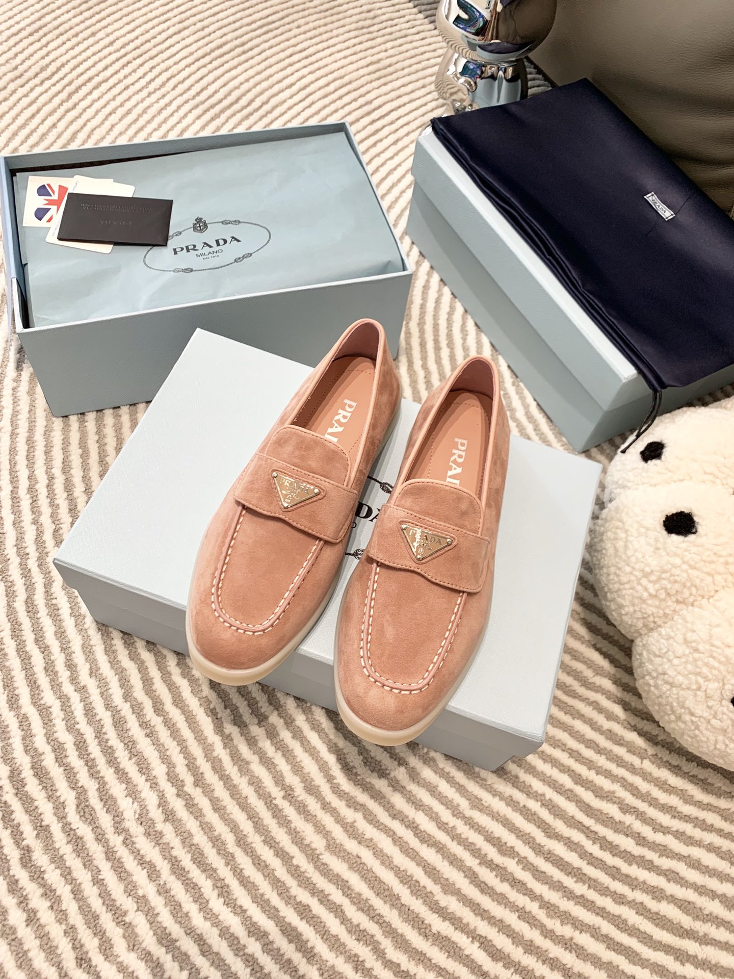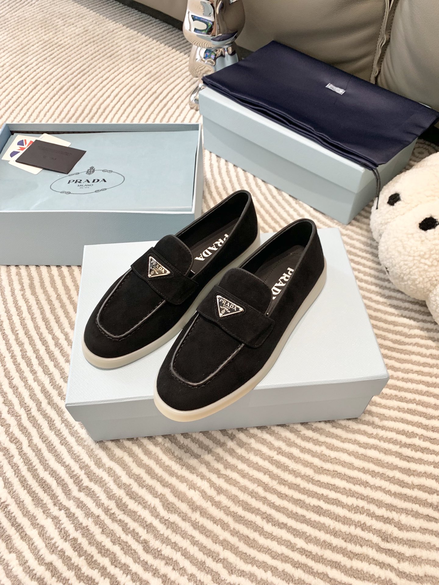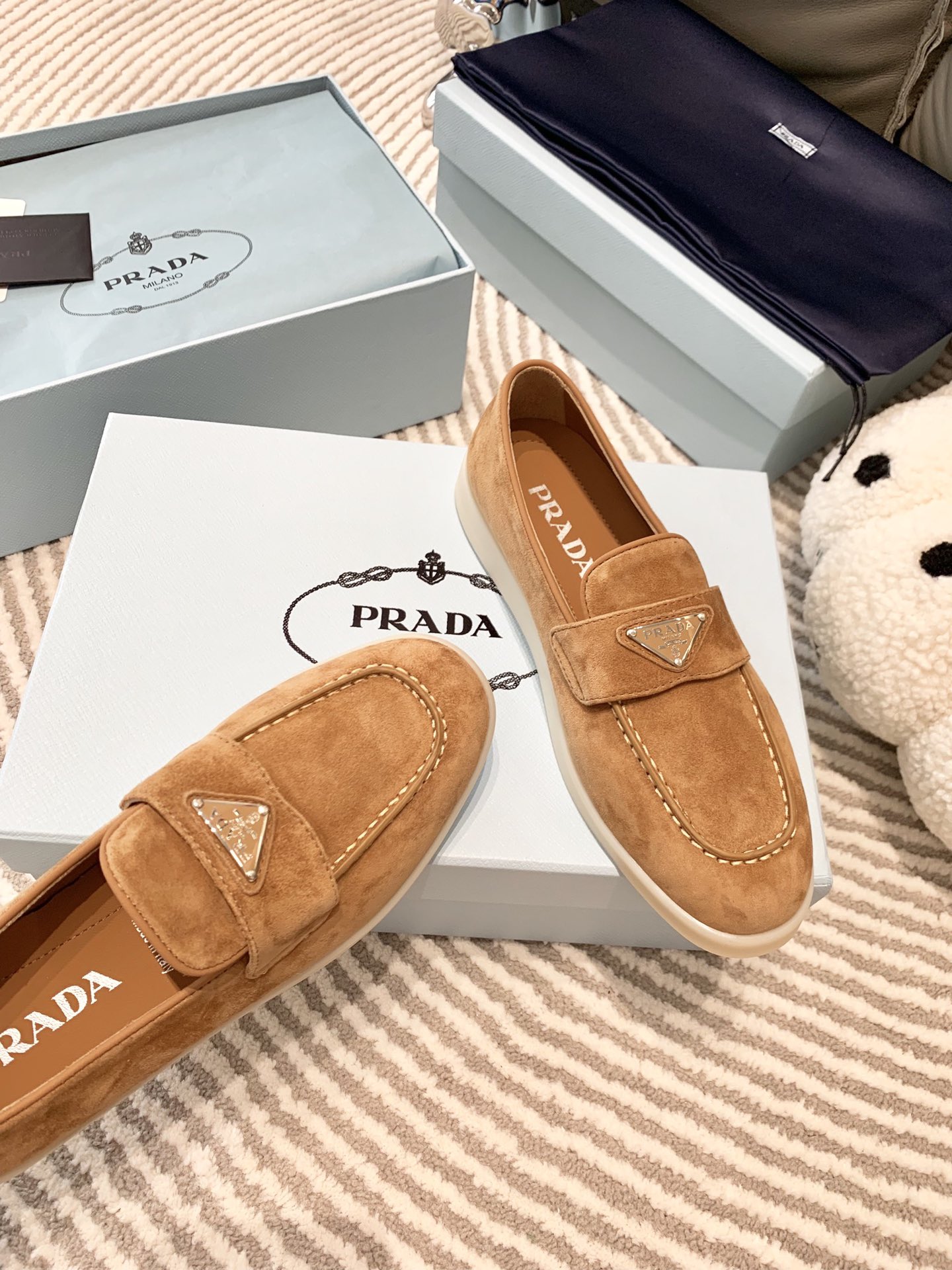 NIGO Prada Men's And Women's Spring/Summer Solid Color Fashionable Casual Round Toe Slip On Loafers In Cow Suede With Triangular Logo Shoes #nigo78267