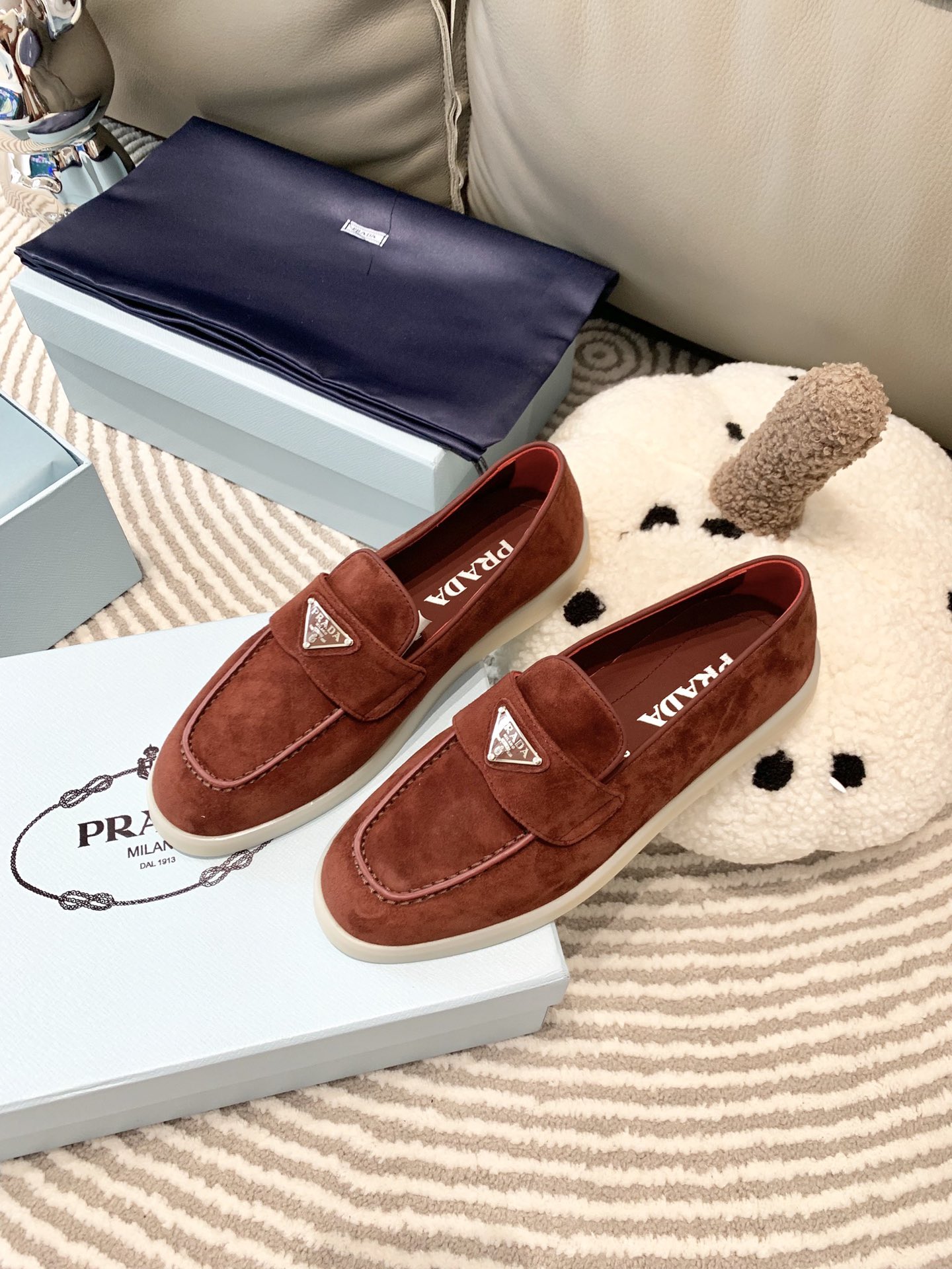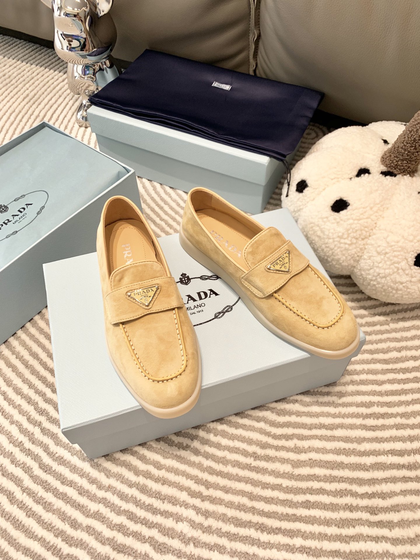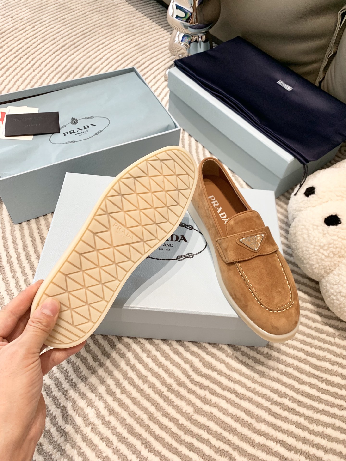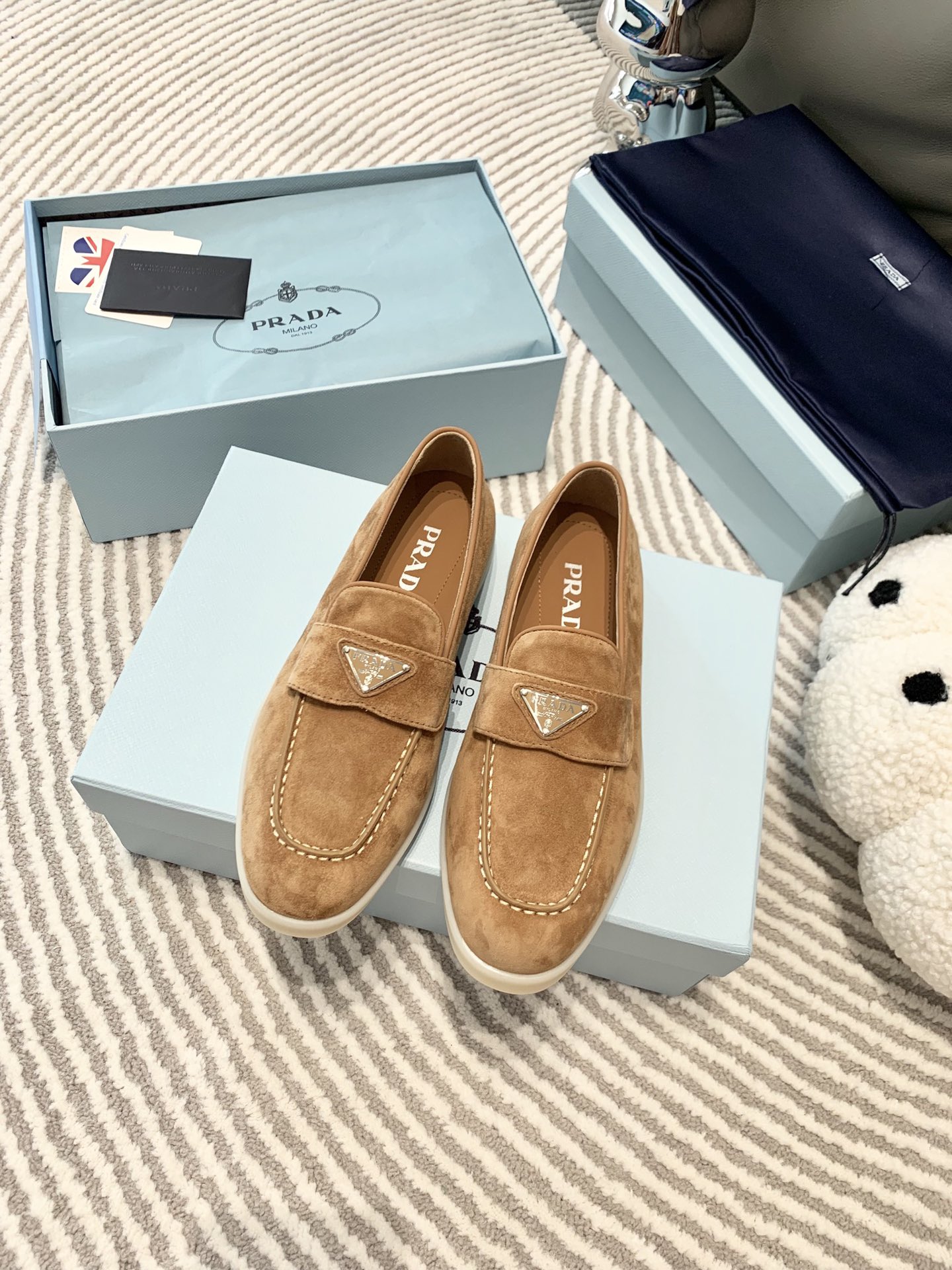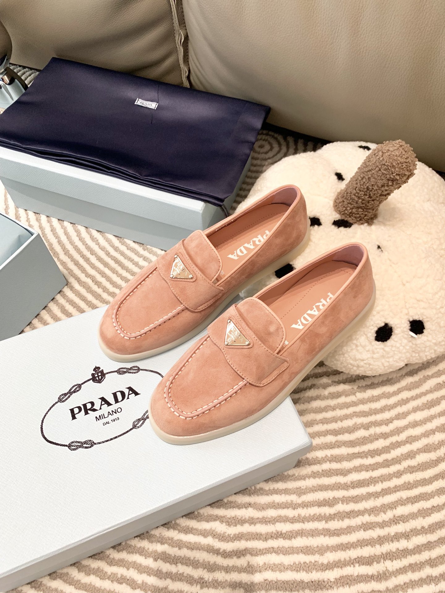 NIGO Prada Men's And Women's Spring/Summer Solid Color Fashionable Casual Round Toe Slip On Loafers In Cow Suede With Triangular Logo Shoes #nigo78267