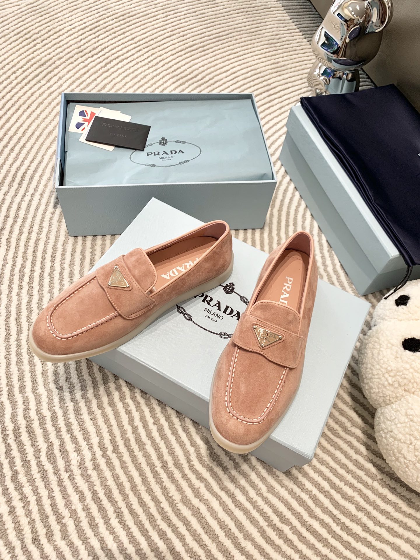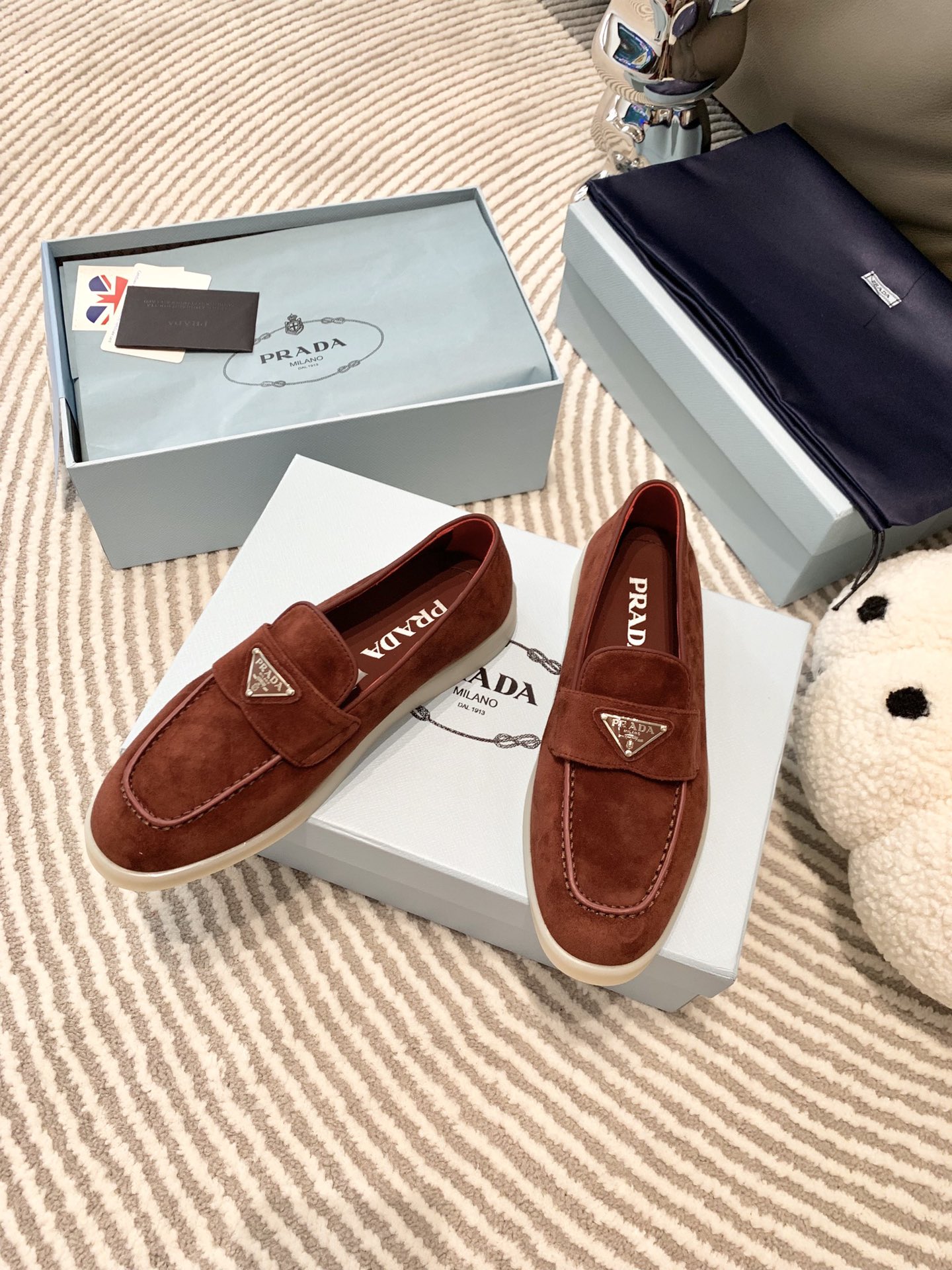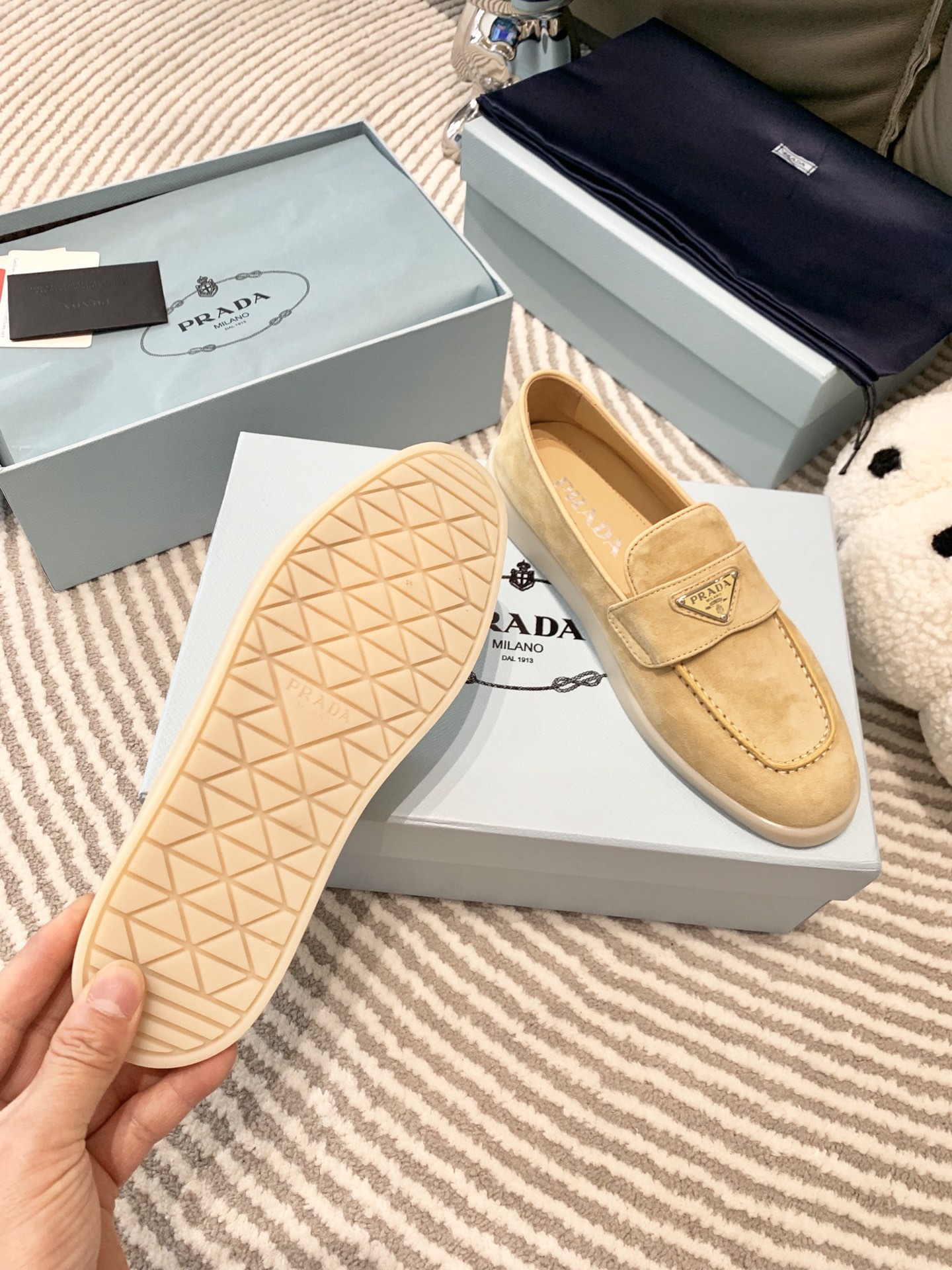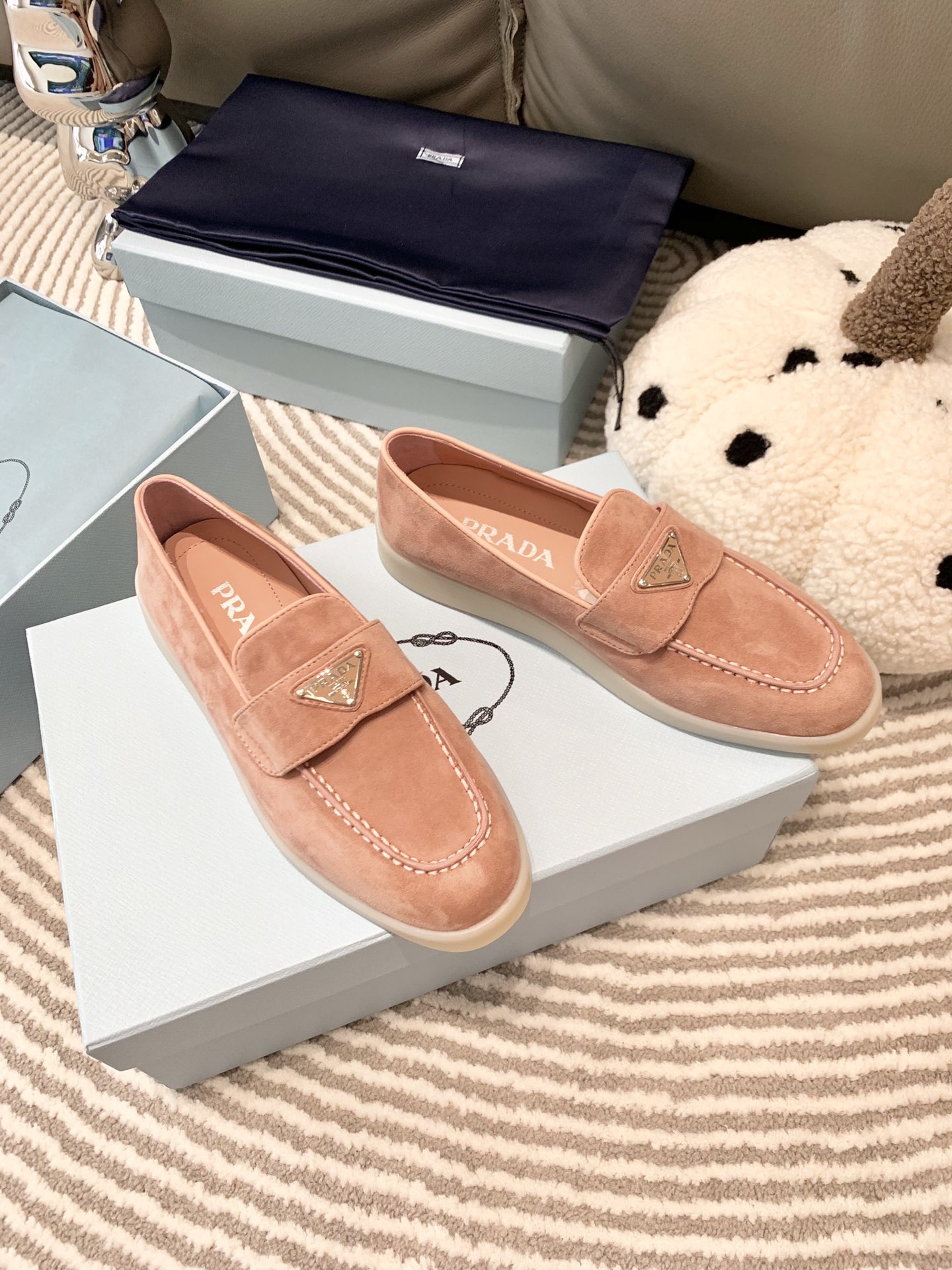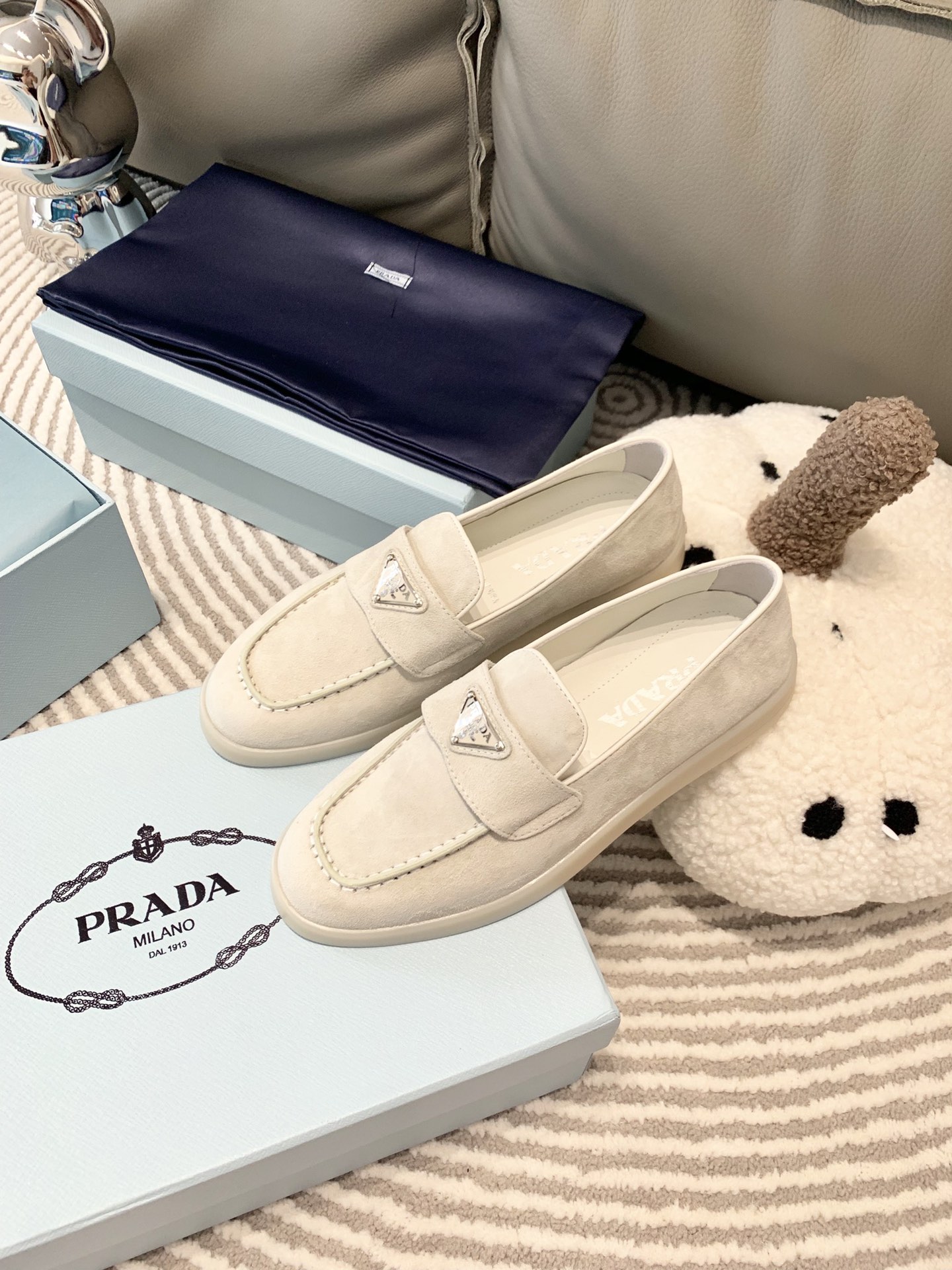 NIGO Prada Men's And Women's Spring/Summer Solid Color Fashionable Casual Round Toe Slip On Loafers In Cow Suede With Triangular Logo Shoes #nigo78267