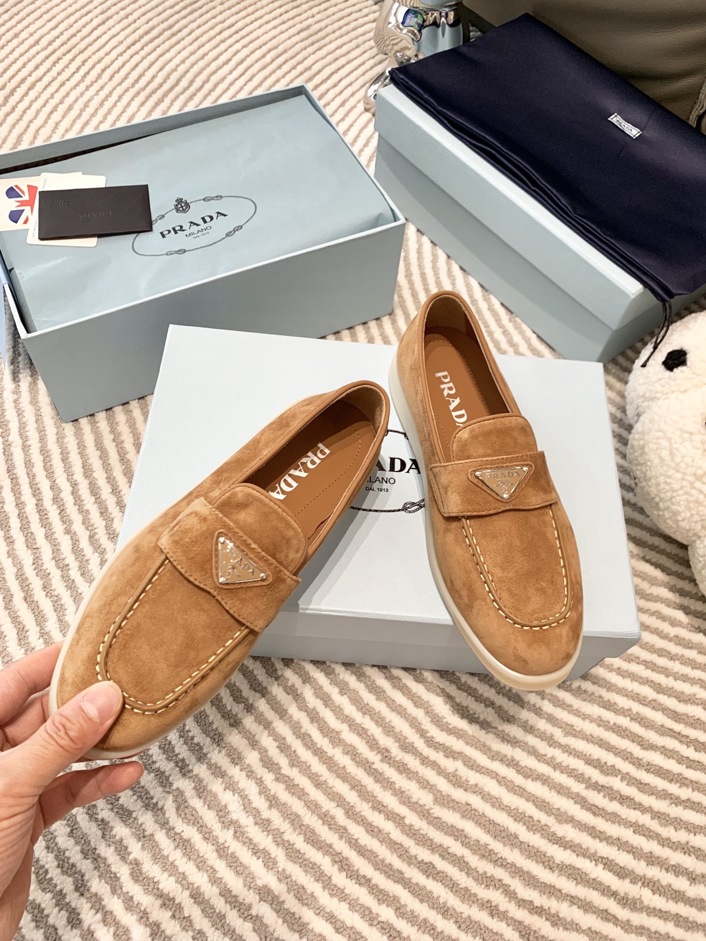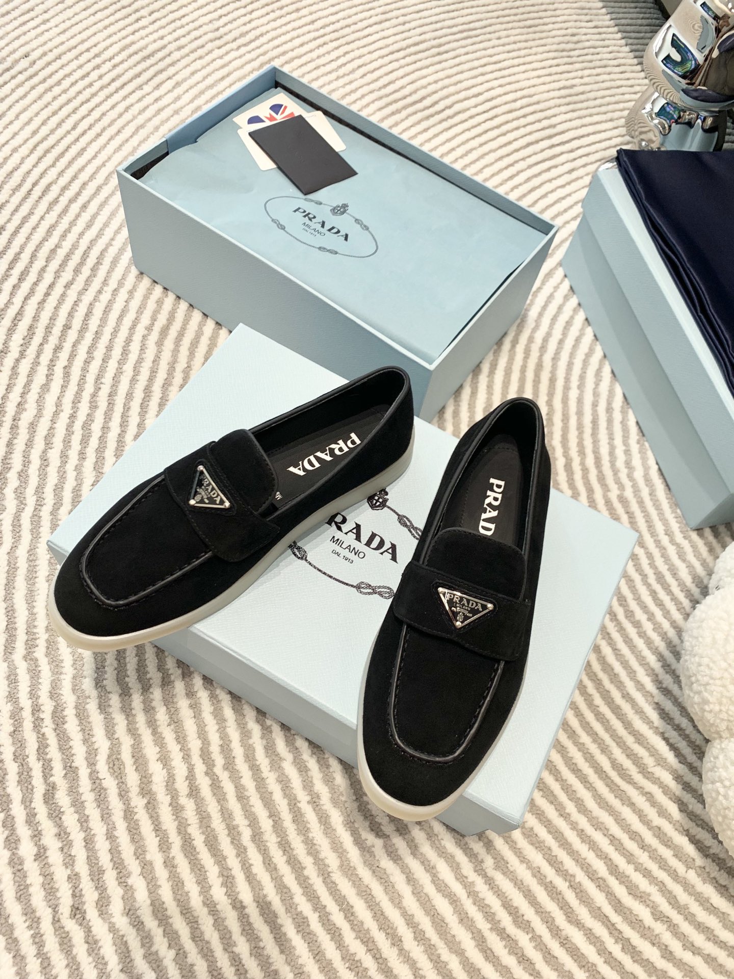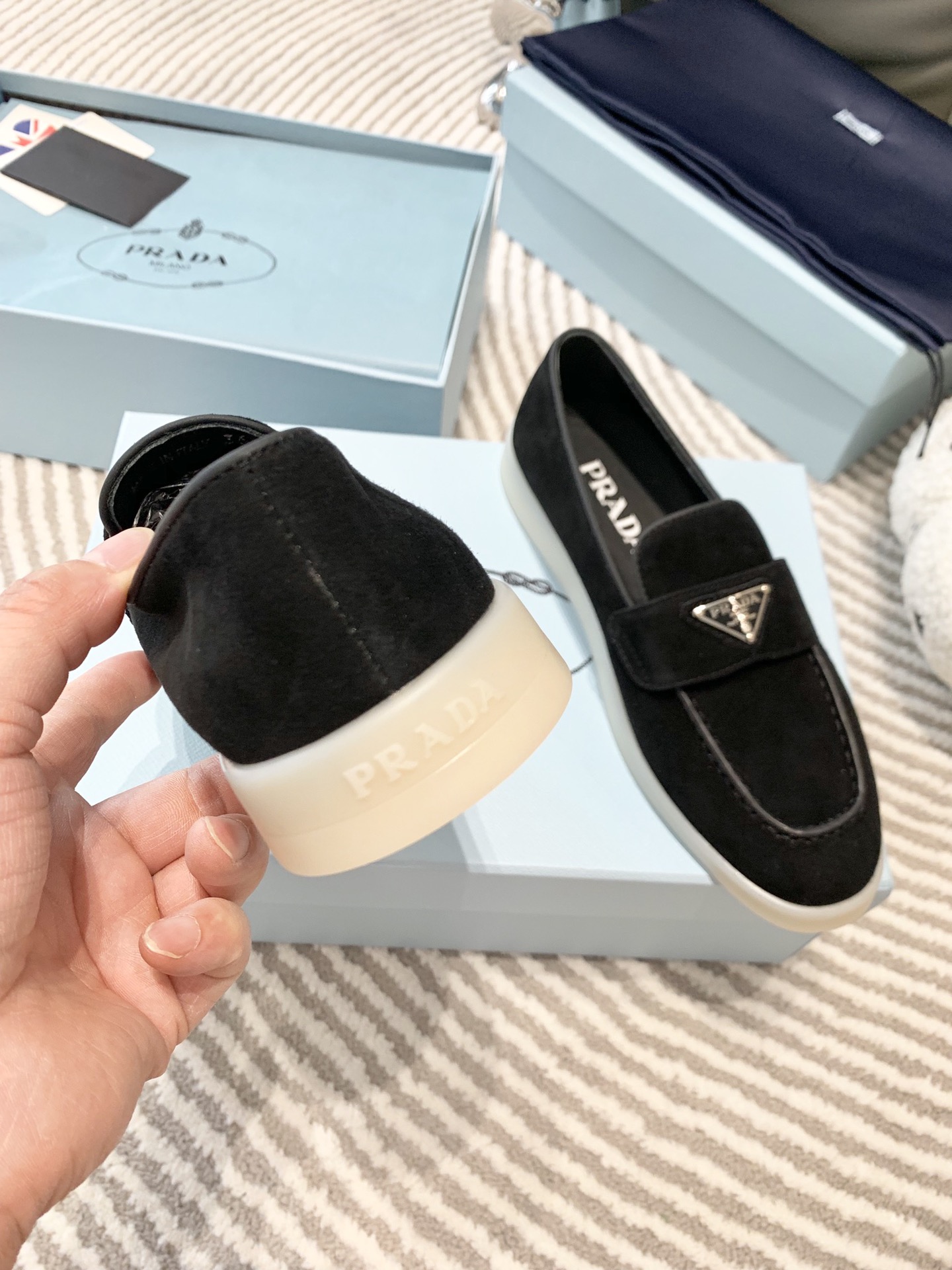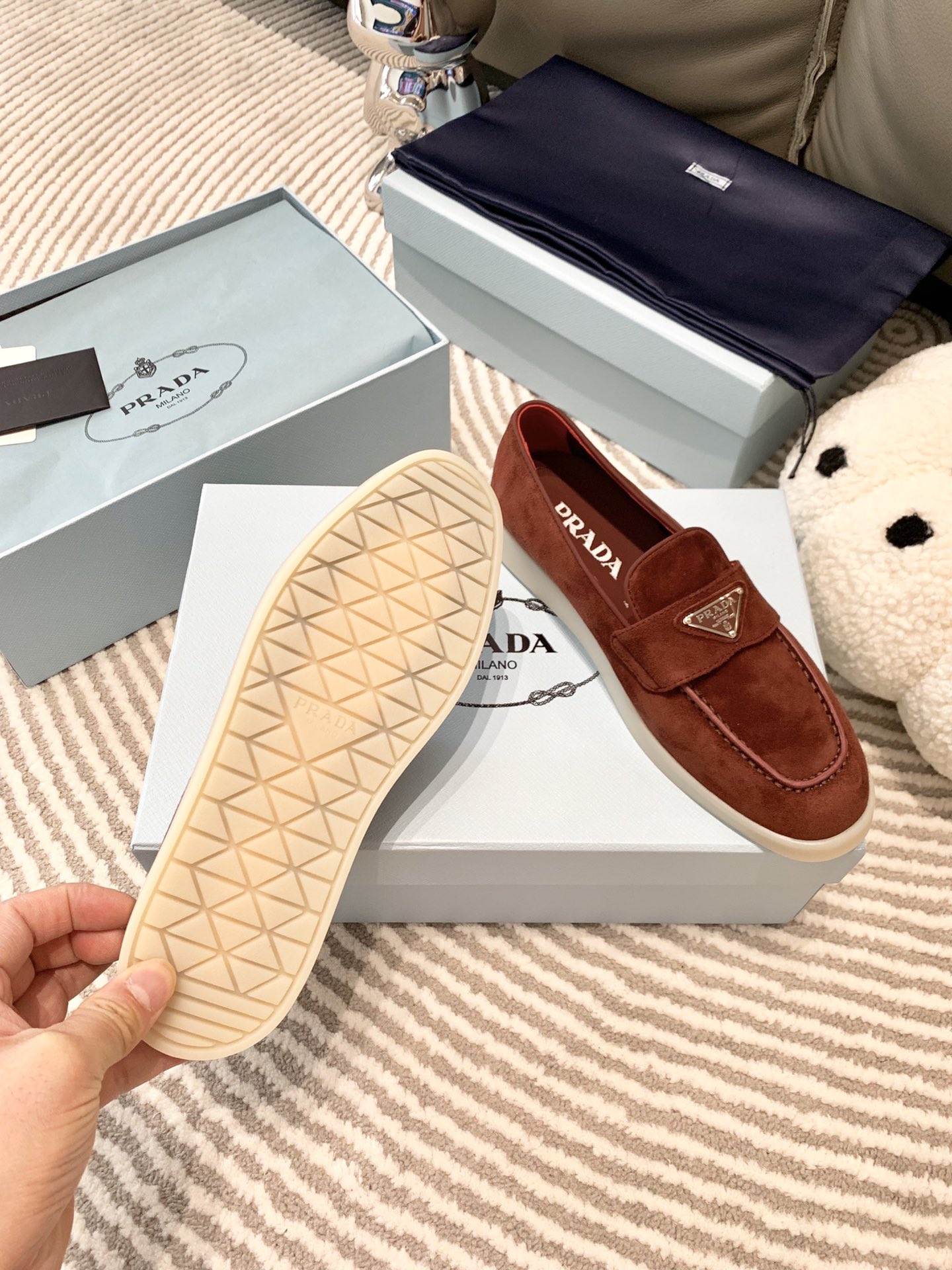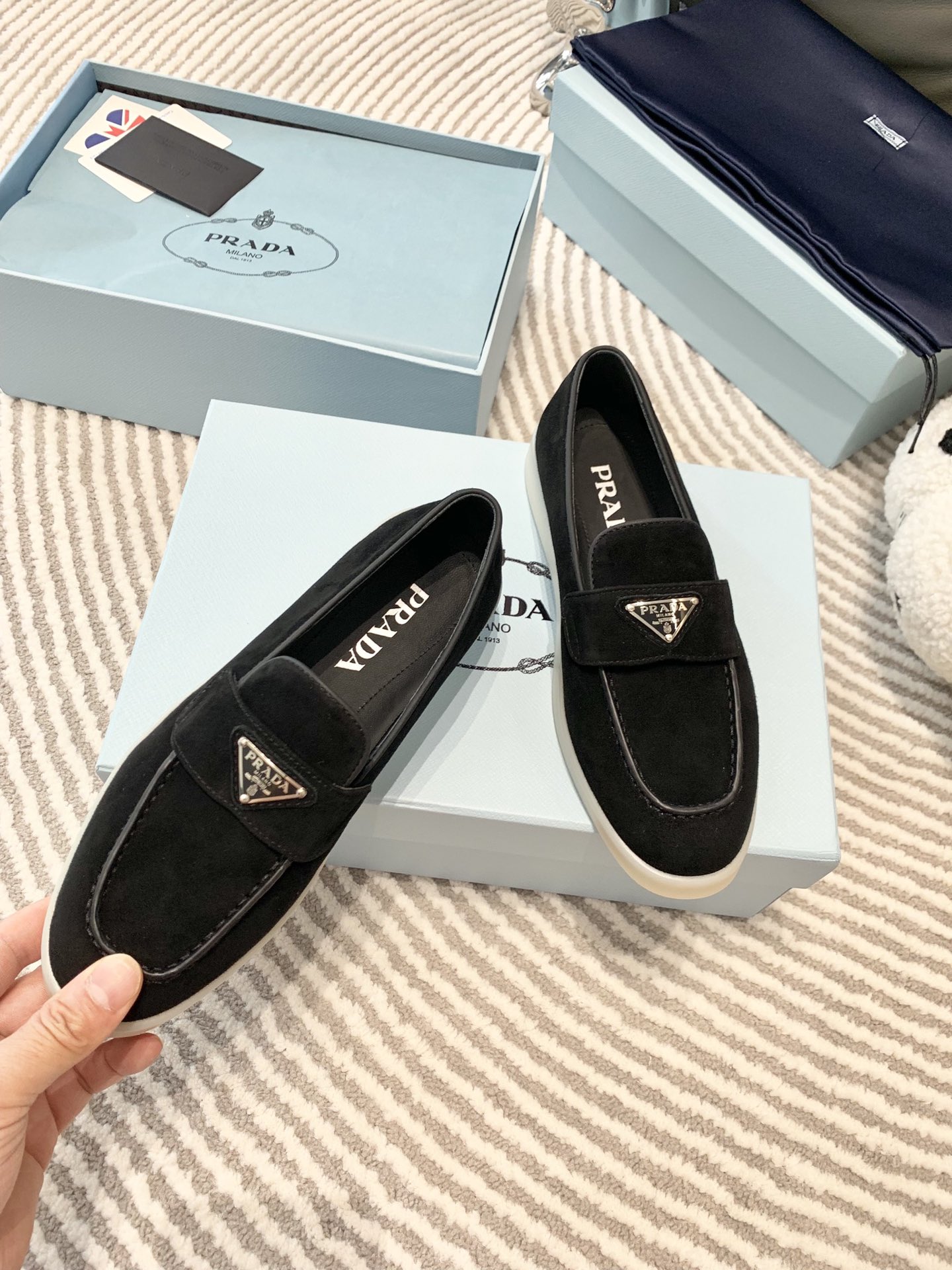 NIGO Prada Men's And Women's Spring/Summer Solid Color Fashionable Casual Round Toe Slip On Loafers In Cow Suede With Triangular Logo Shoes #nigo78267