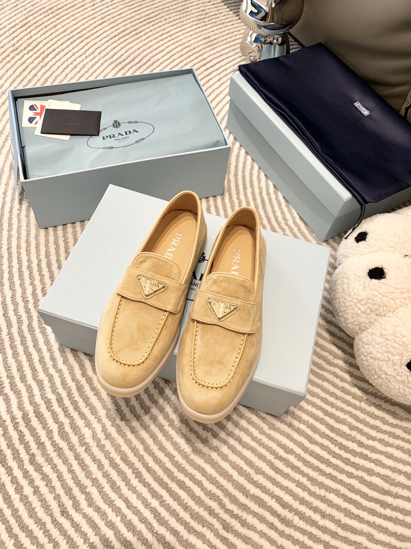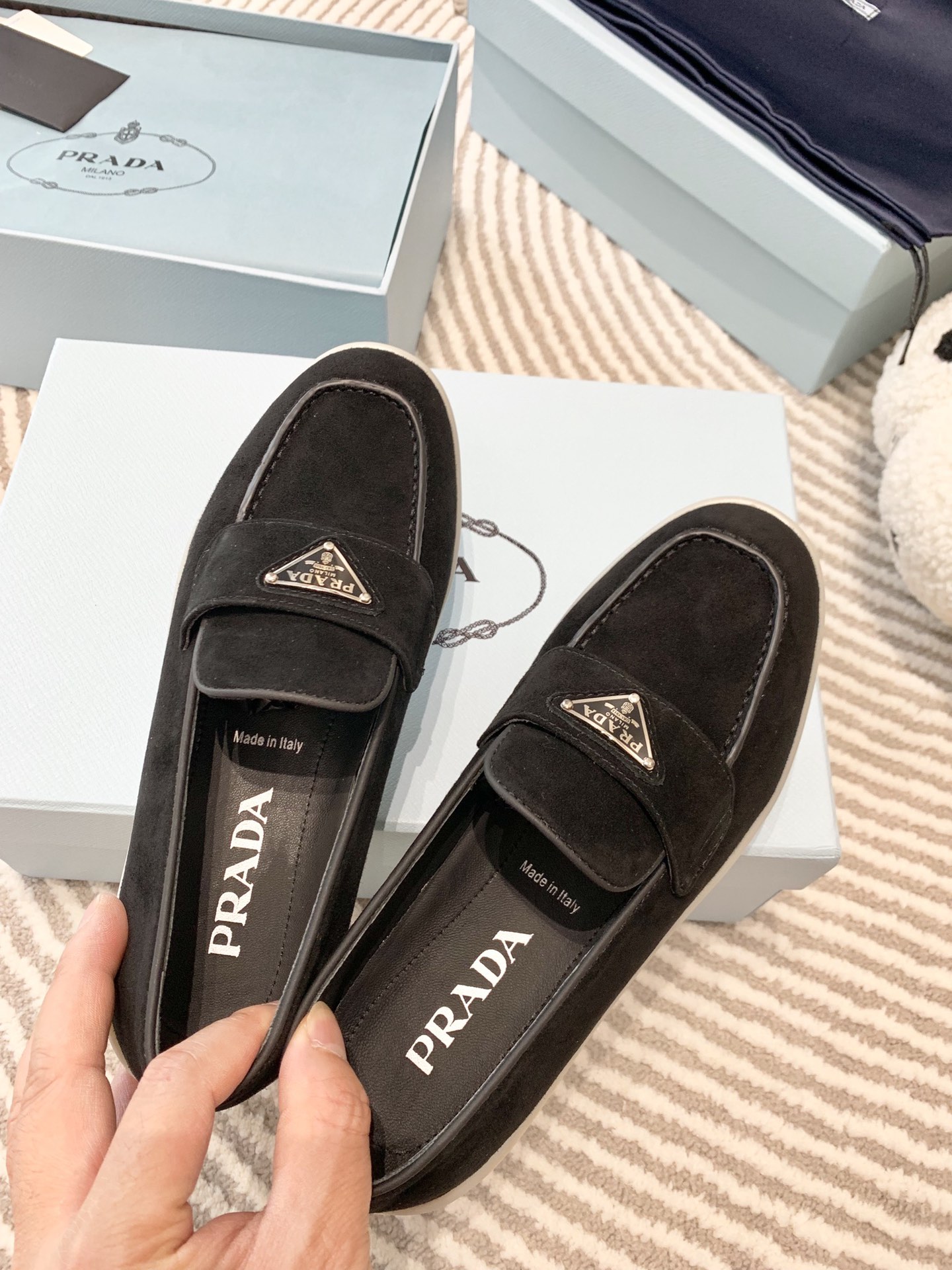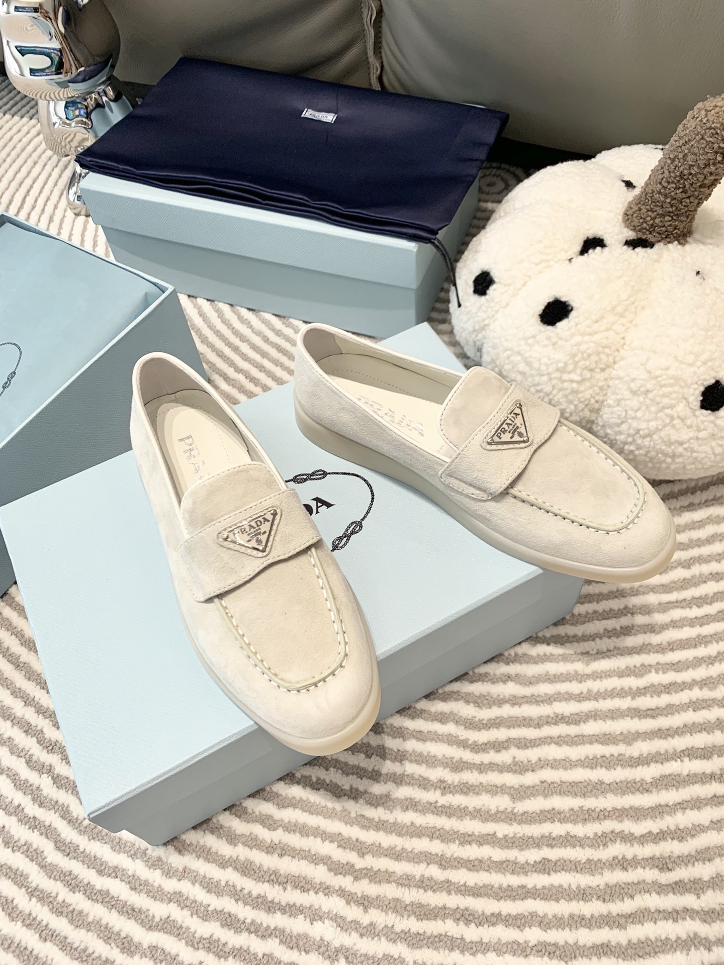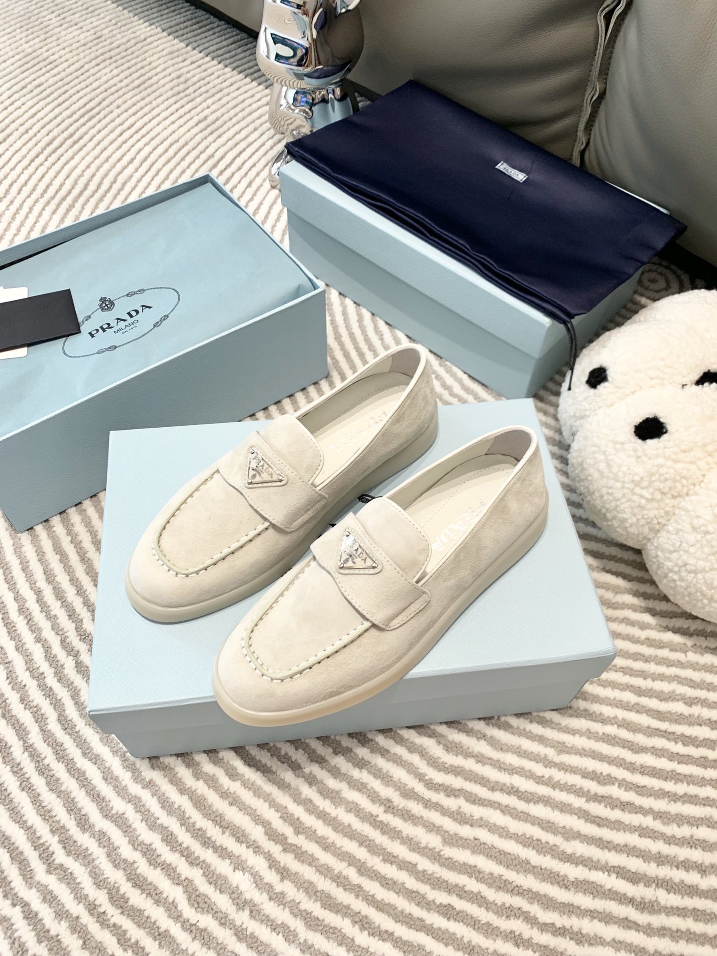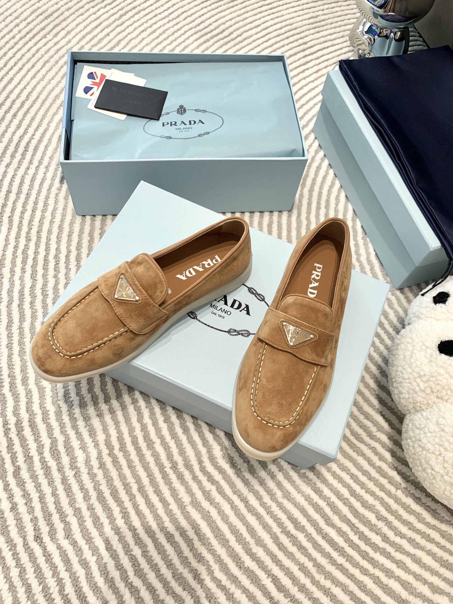 NIGO Prada Men's And Women's Spring/Summer Solid Color Fashionable Casual Round Toe Slip On Loafers In Cow Suede With Triangular Logo Shoes #nigo78267