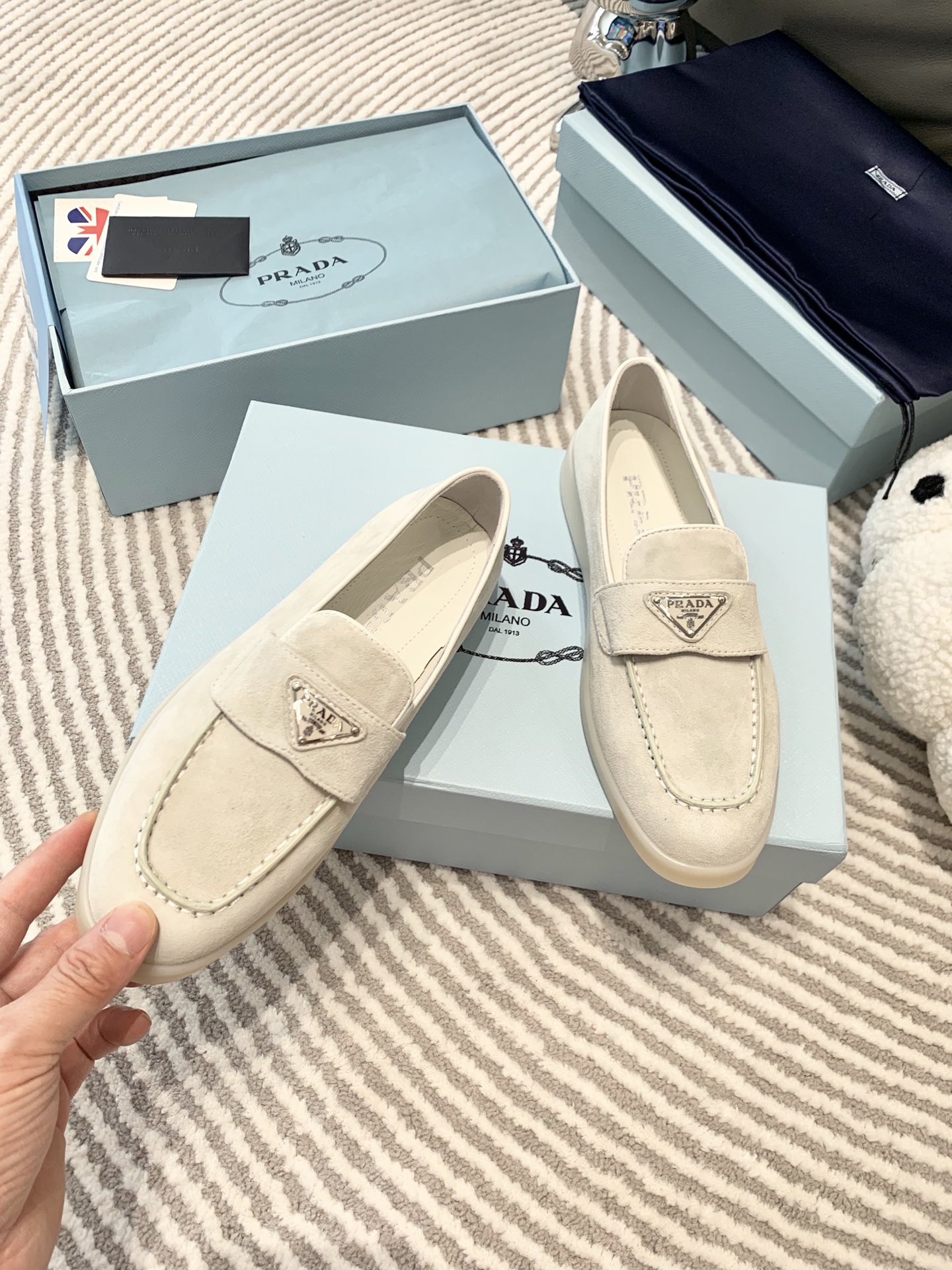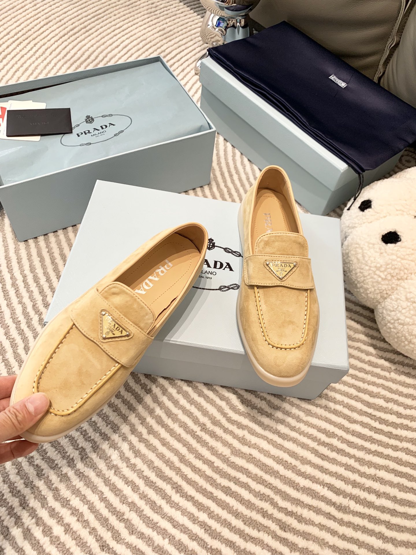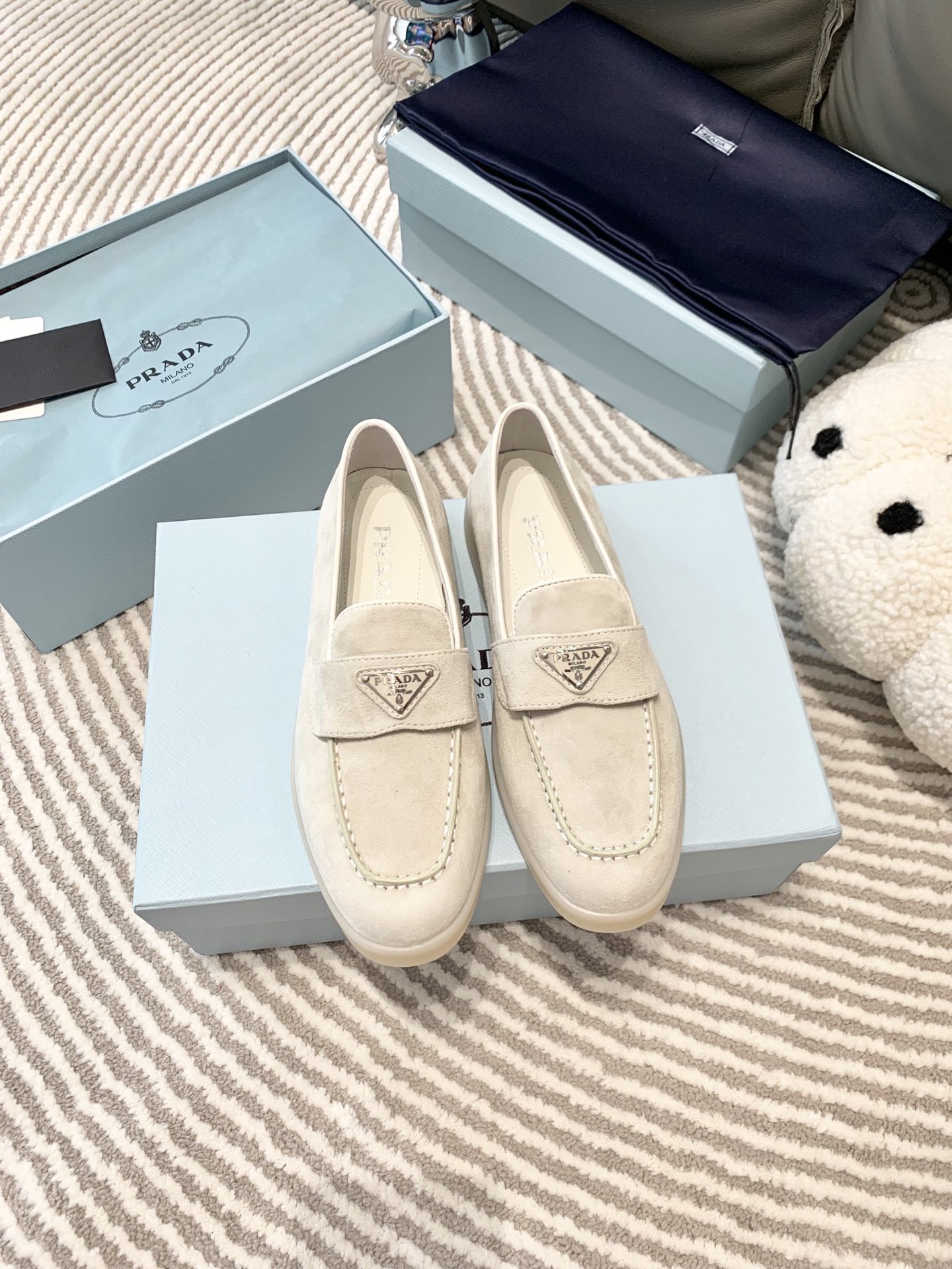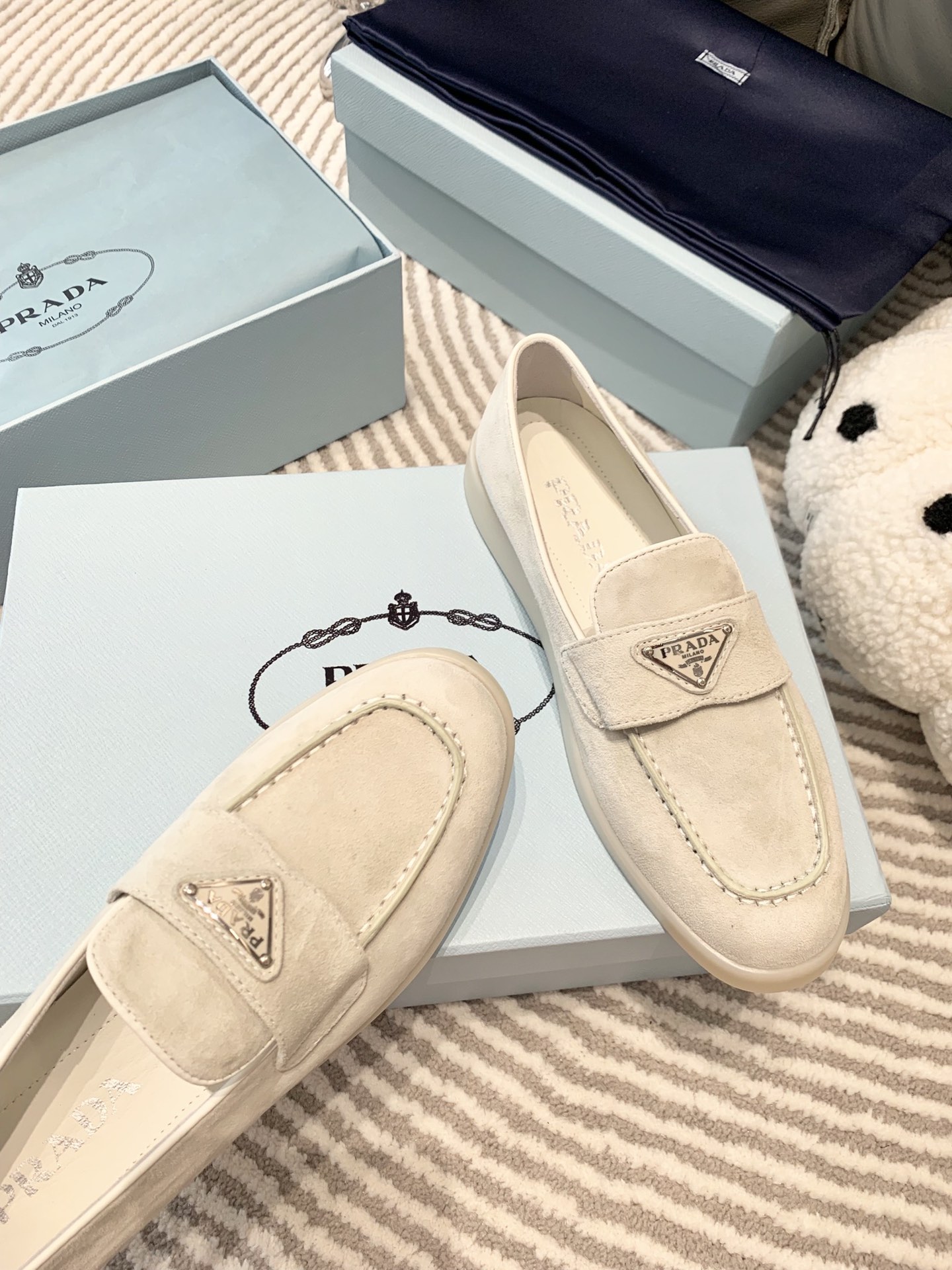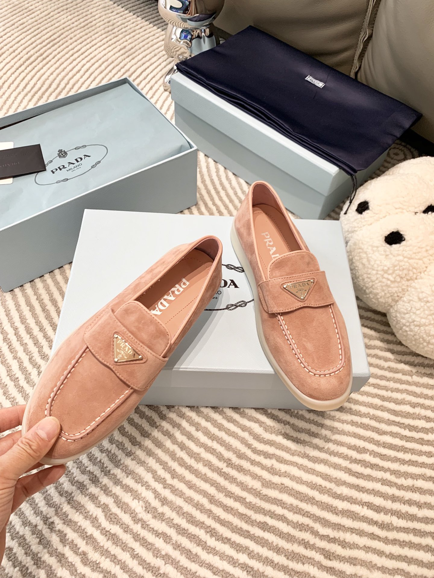 NIGO Prada Men's And Women's Spring/Summer Solid Color Fashionable Casual Round Toe Slip On Loafers In Cow Suede With Triangular Logo Shoes #nigo78267