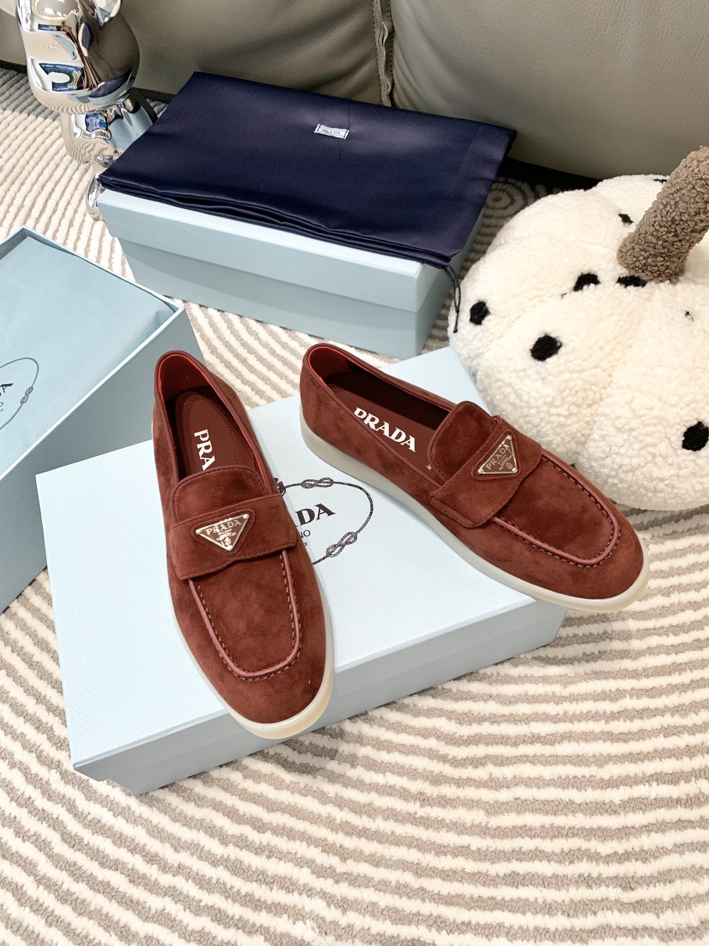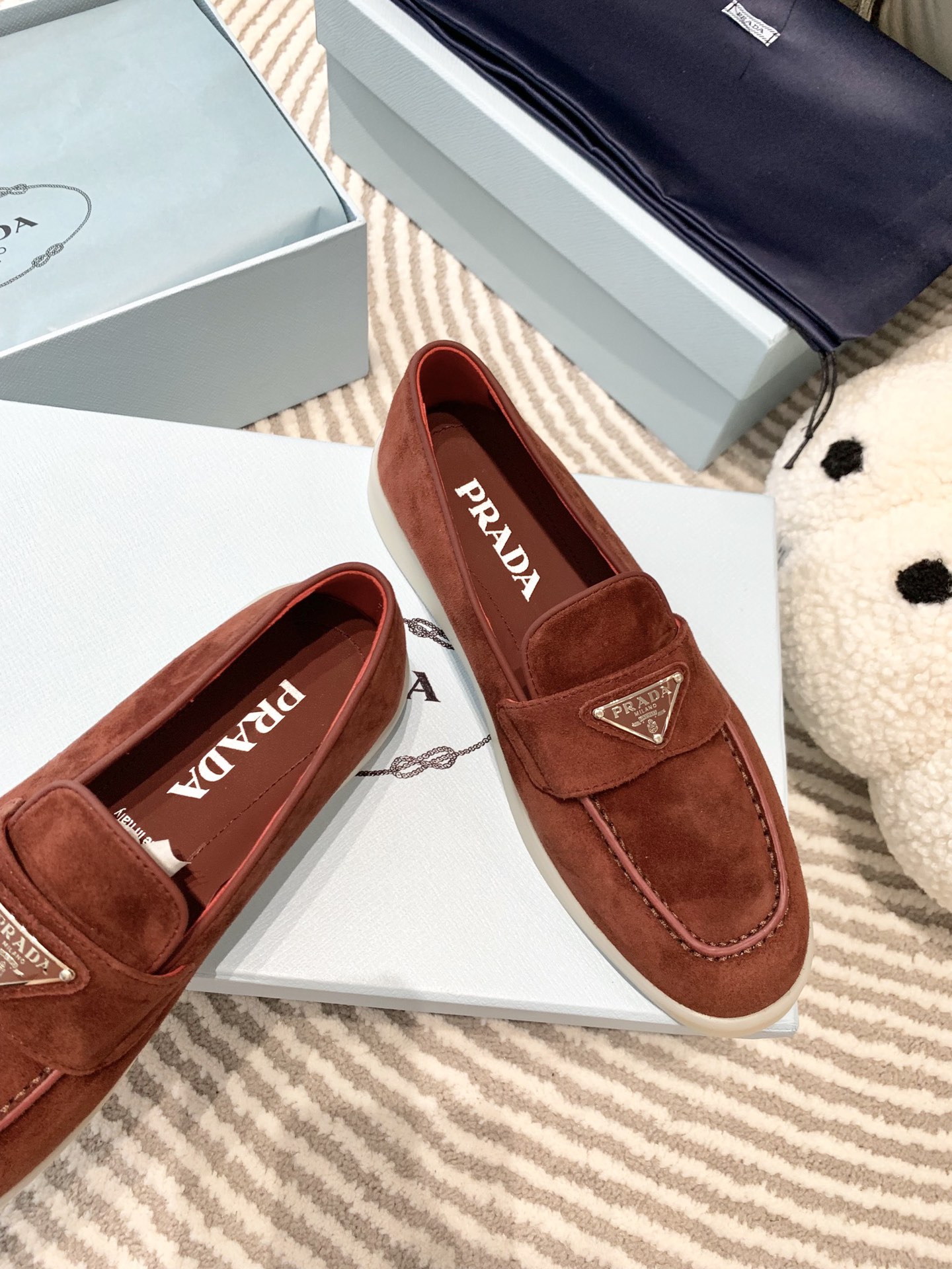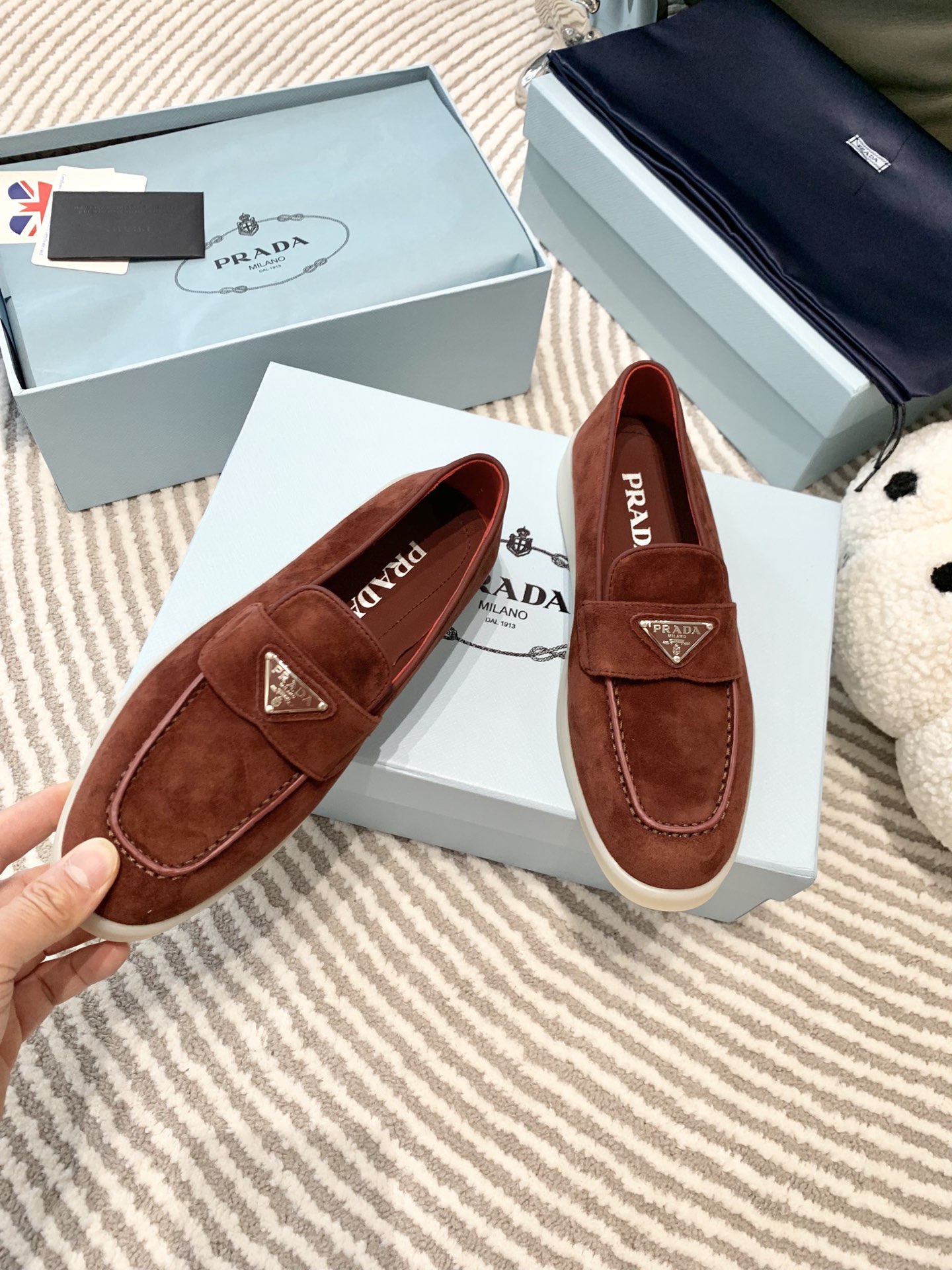 This Prada shoes showcases the brand's exceptional craftsmanship and attention to detail. Crafted from premium suede, this piece combines timeless luxury with modern style.