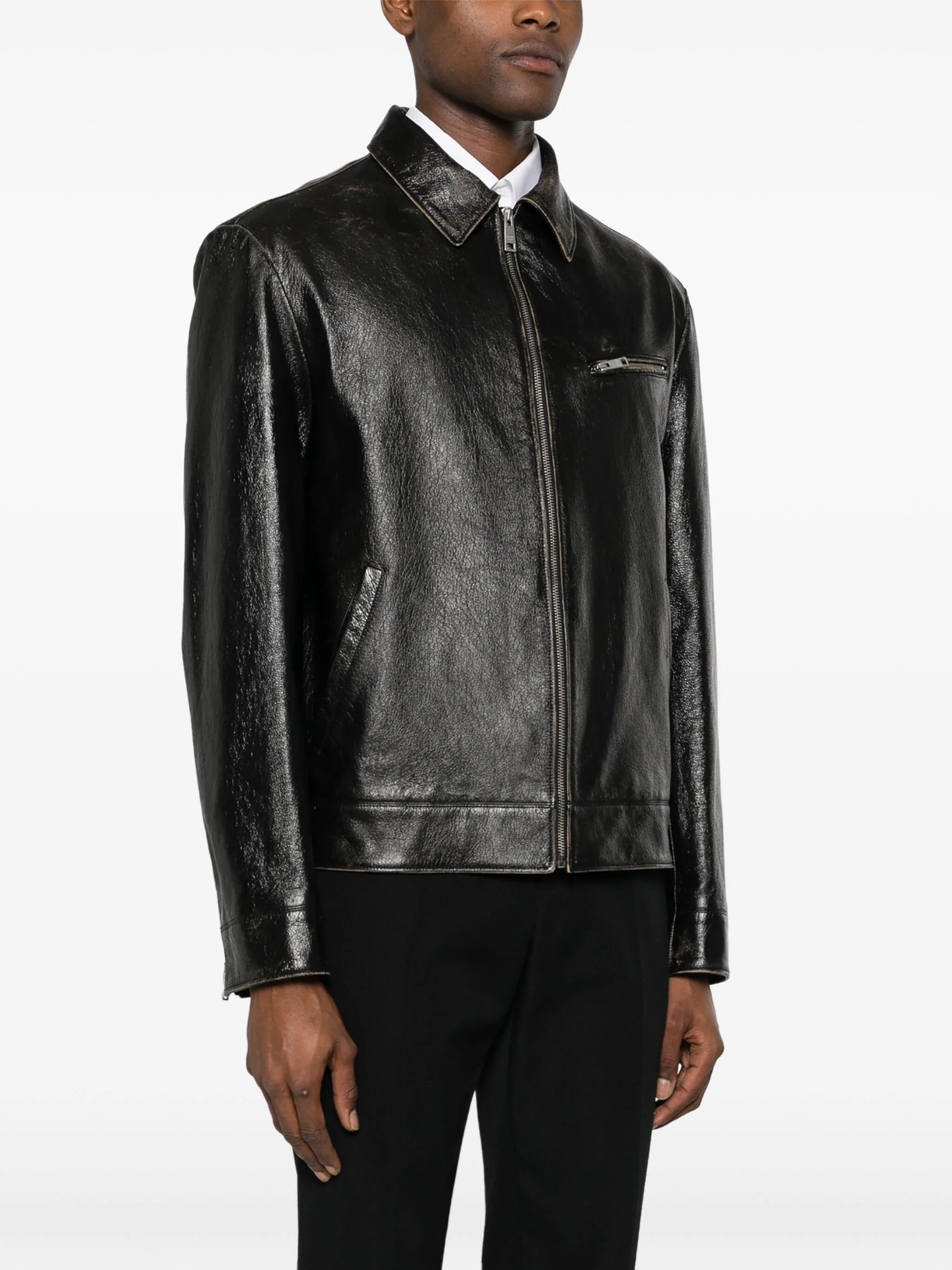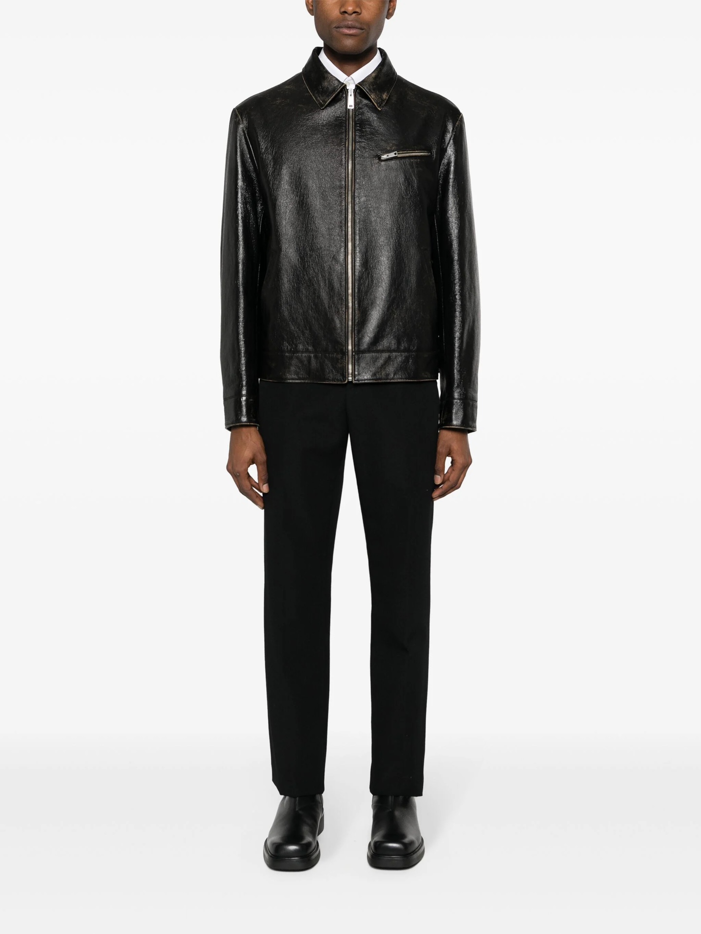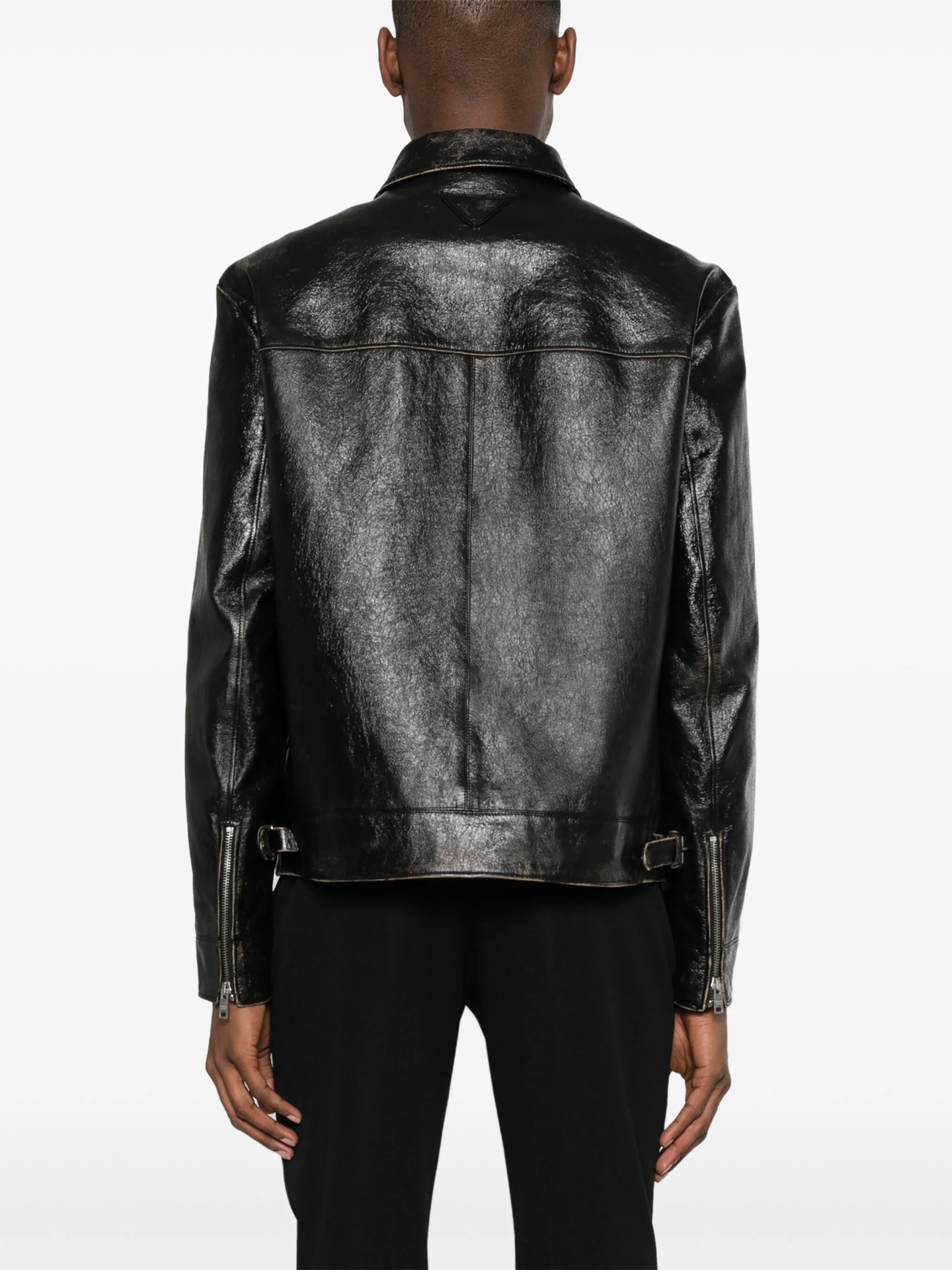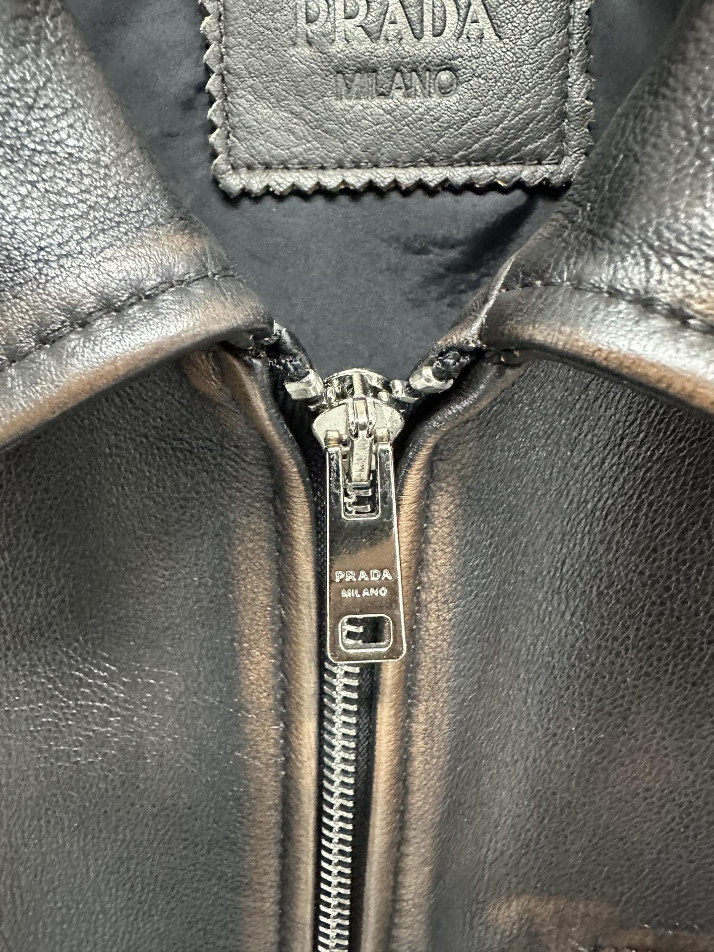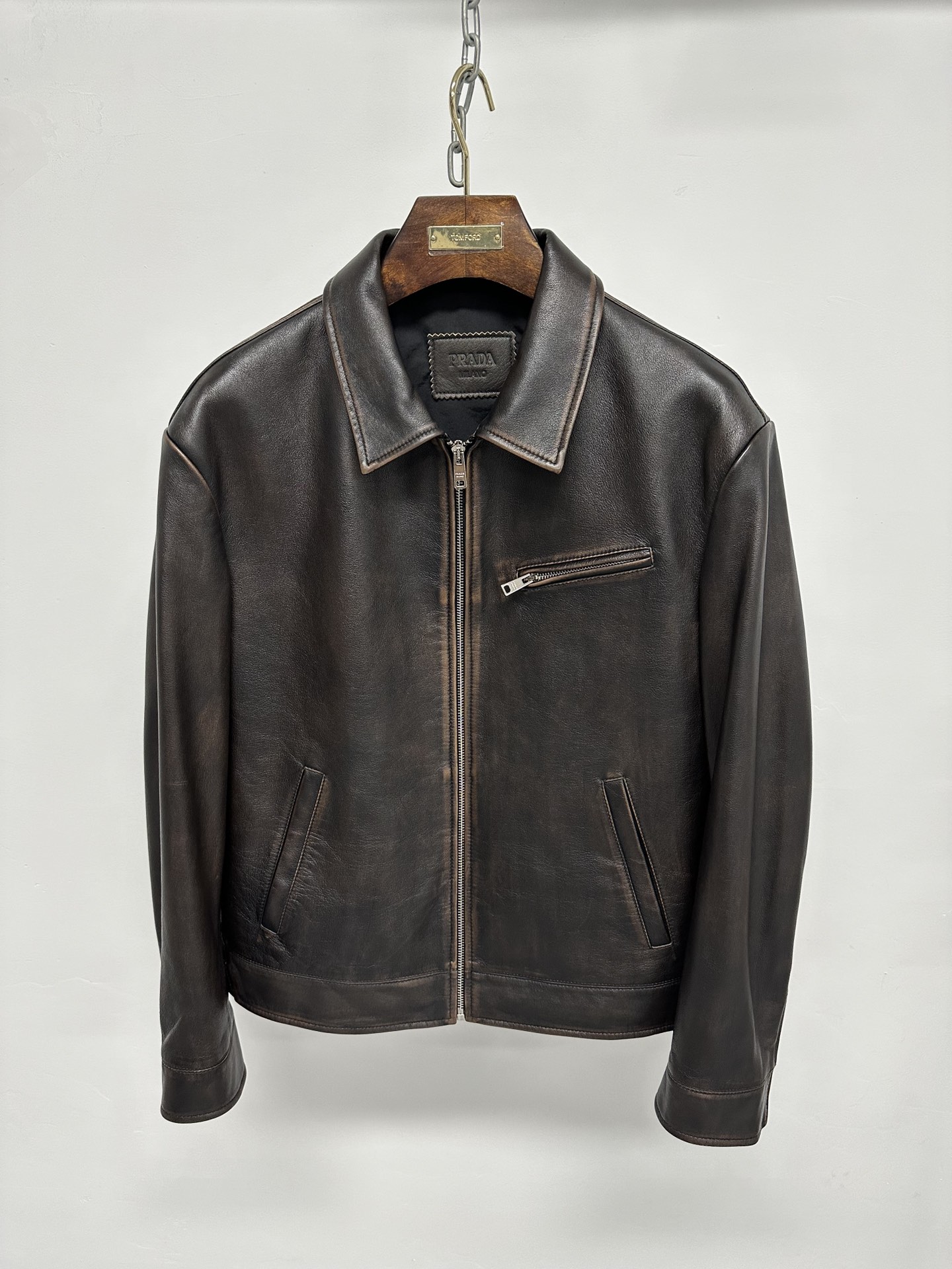 NIGO Prada Men's Autumn and Winter Solid Color Fit Lapel Zipper Long Sleeve Leather Jacket #nigo73774